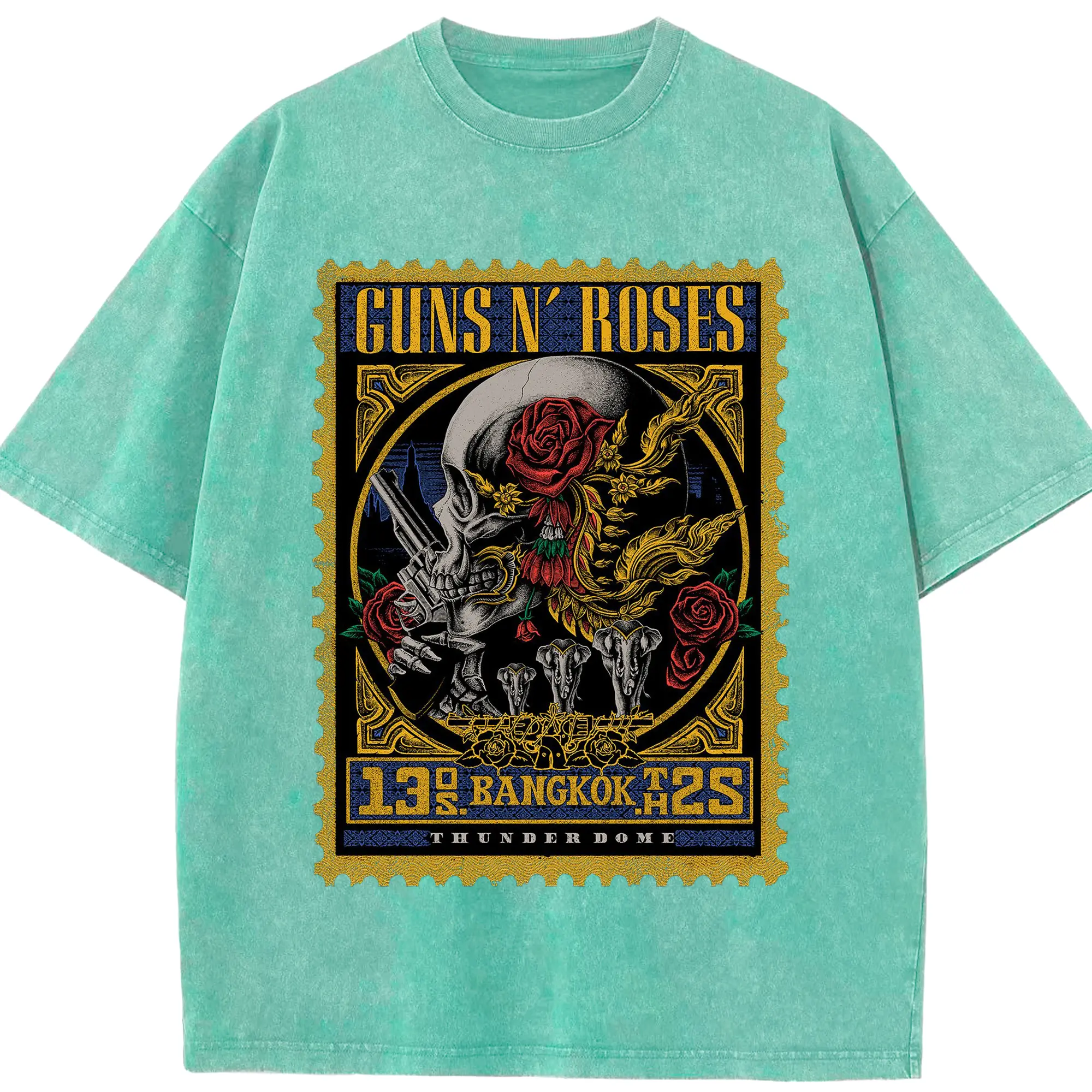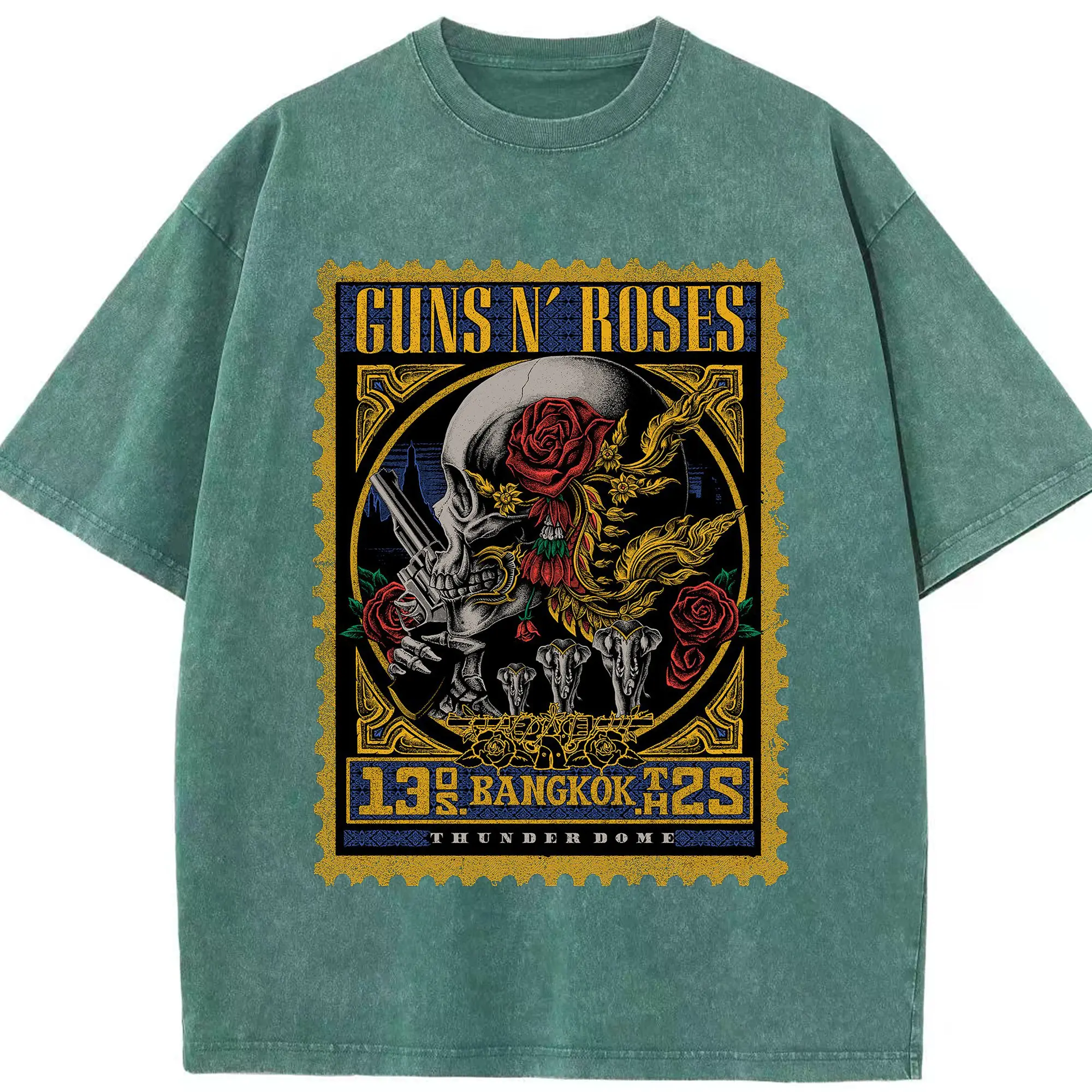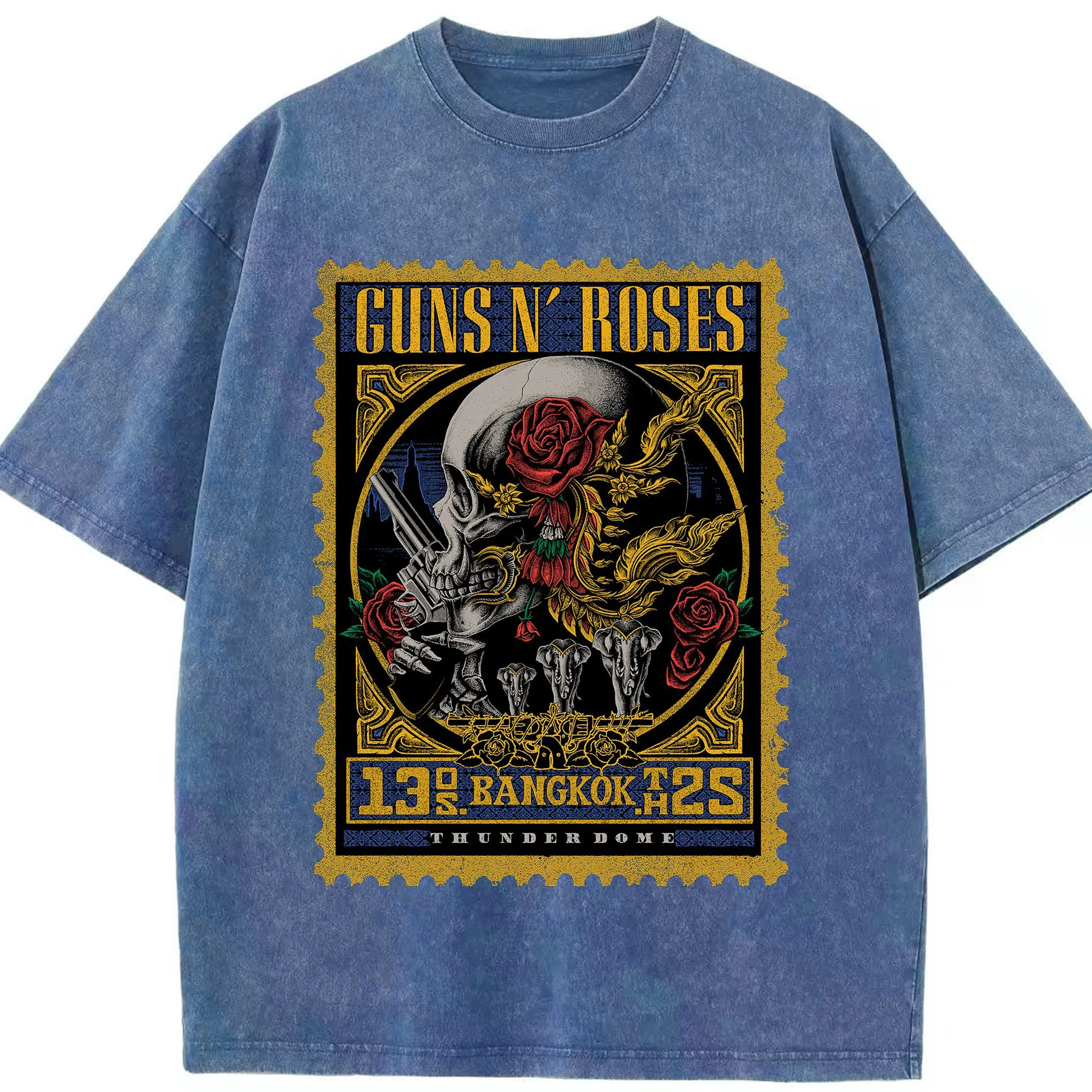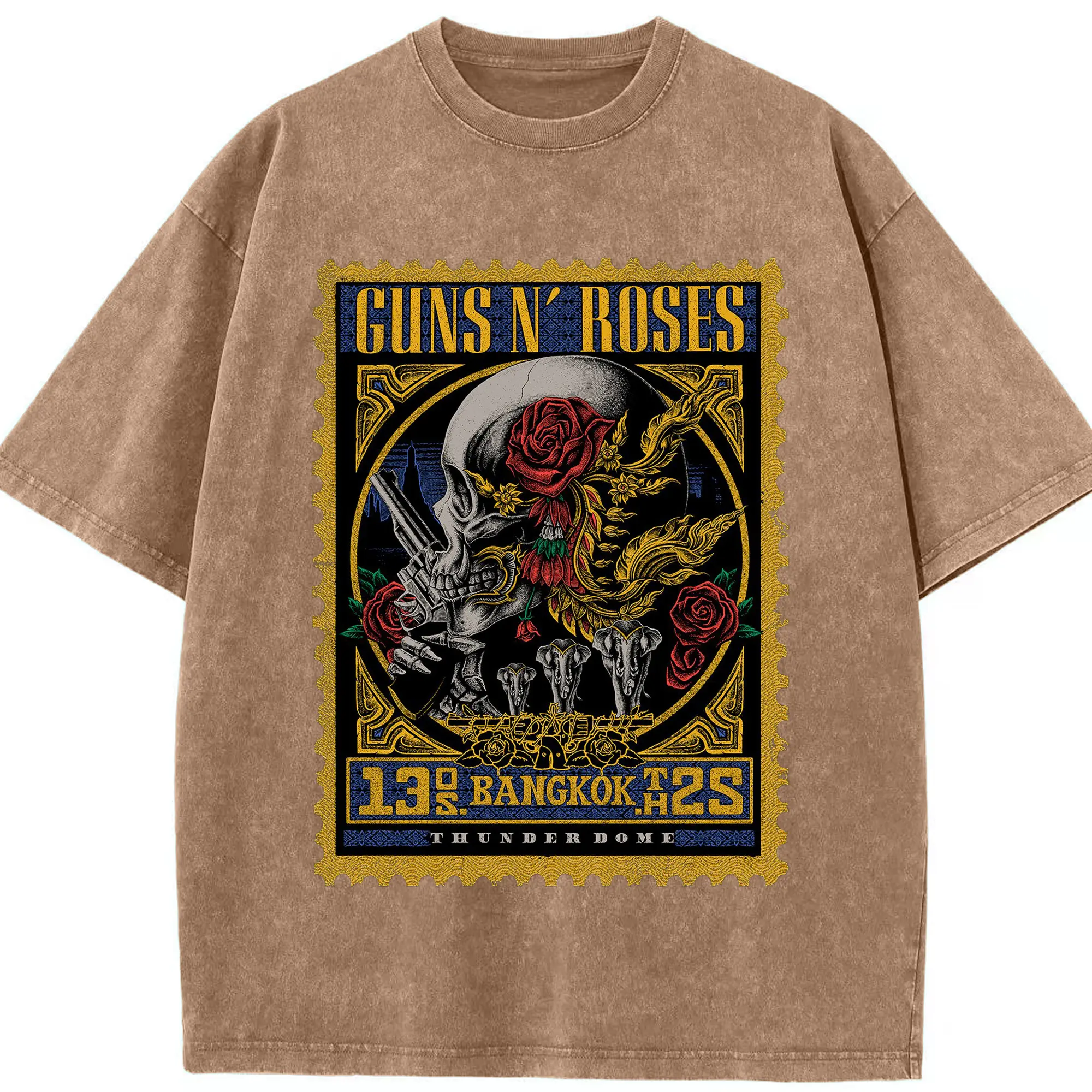 Guns N' Roses BANGKOK City Limited Shirt - Washed Vintage Look 230g Cotton Oversized T-Shirt With Front Heat Transfer Print – Soft, Lightweight, Stylish Fit – Comfortable Casual Wear For Sports & Everyday Use