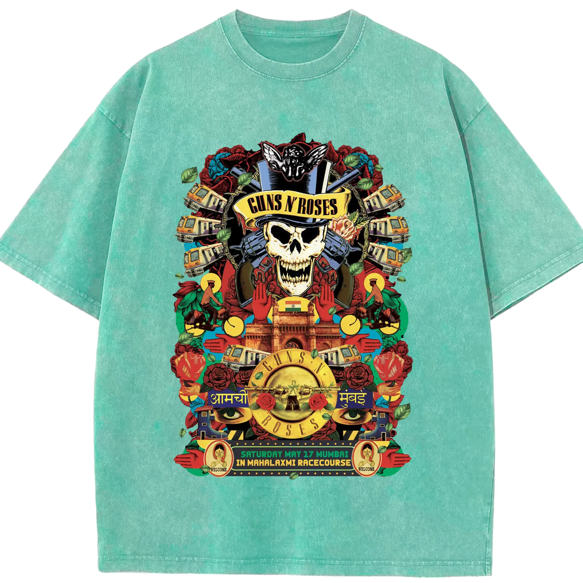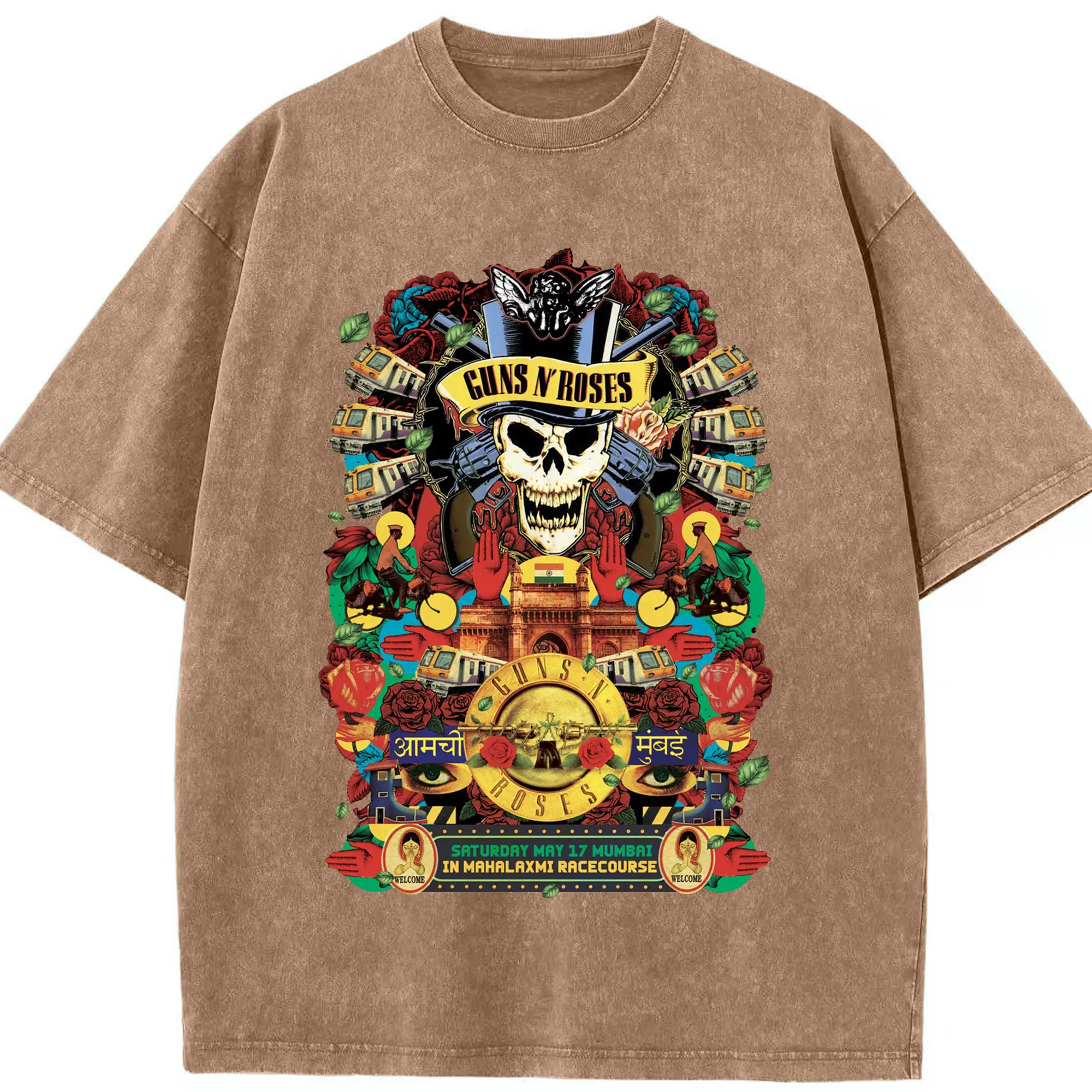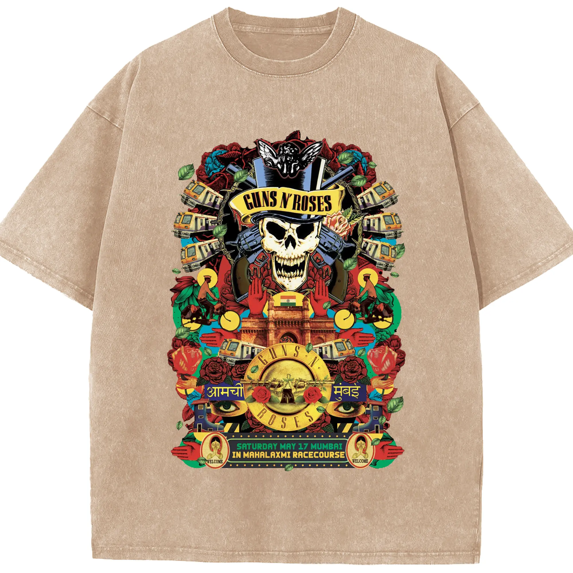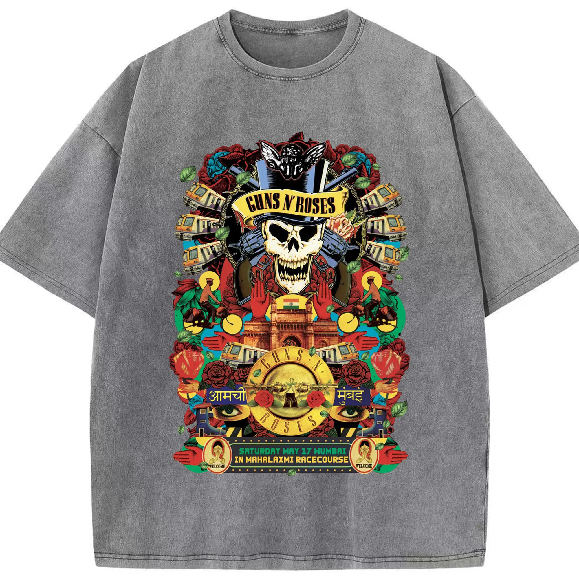 Guns N' Roses Mumbai City Limited Shirt - Washed Vintage Look 230g Cotton Oversized T-Shirt With Front Heat Transfer Print – Soft, Lightweight, Stylish Fit – Comfortable Casual Wear For Sports & Everyday Use