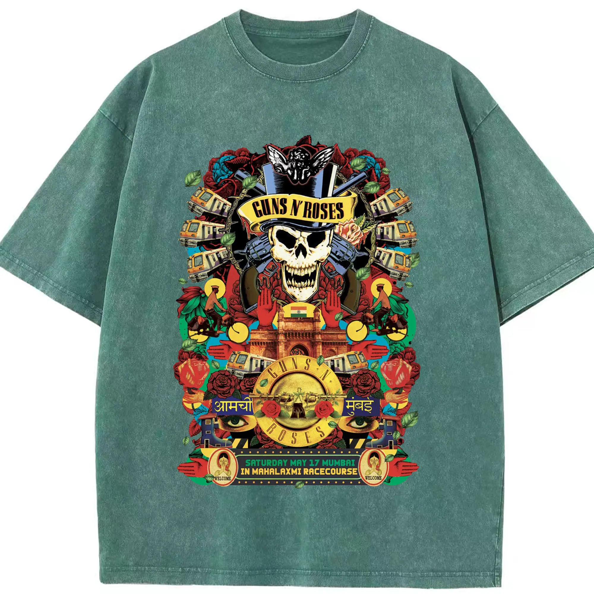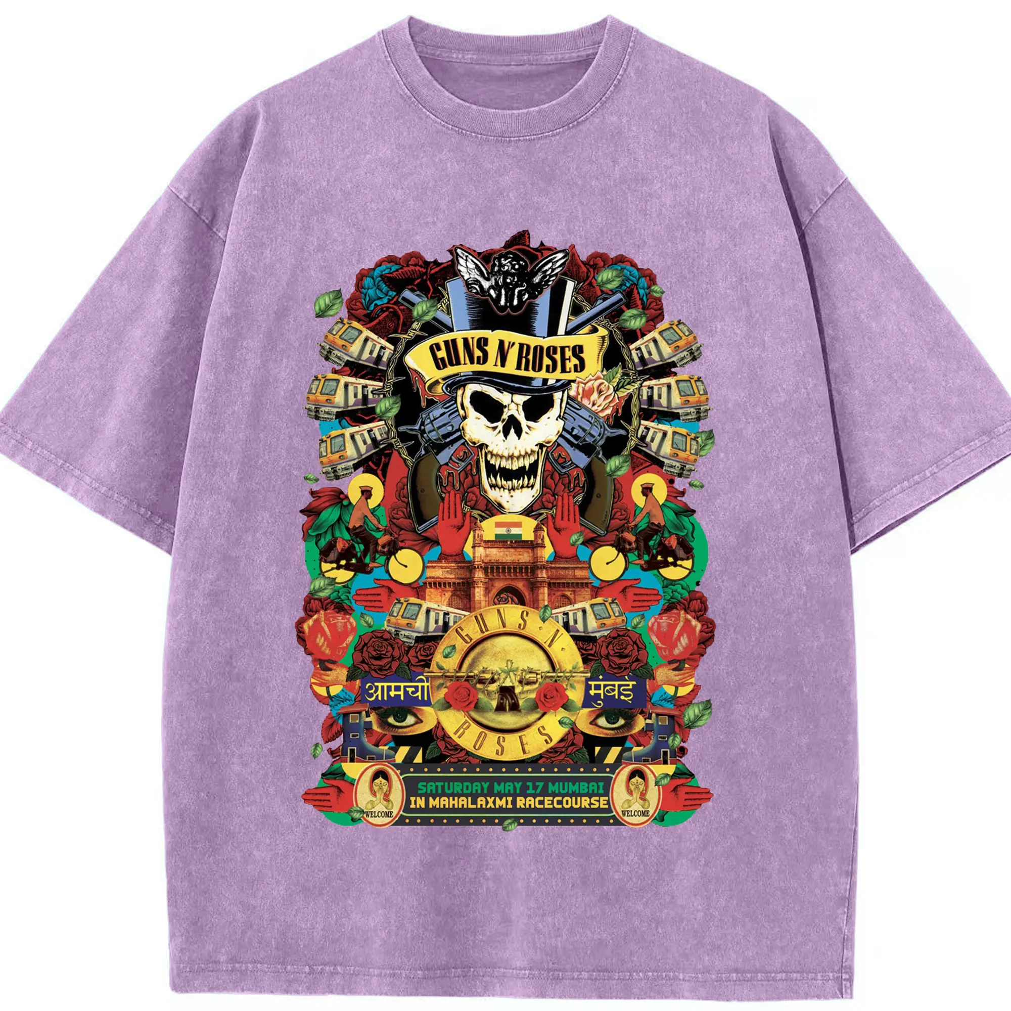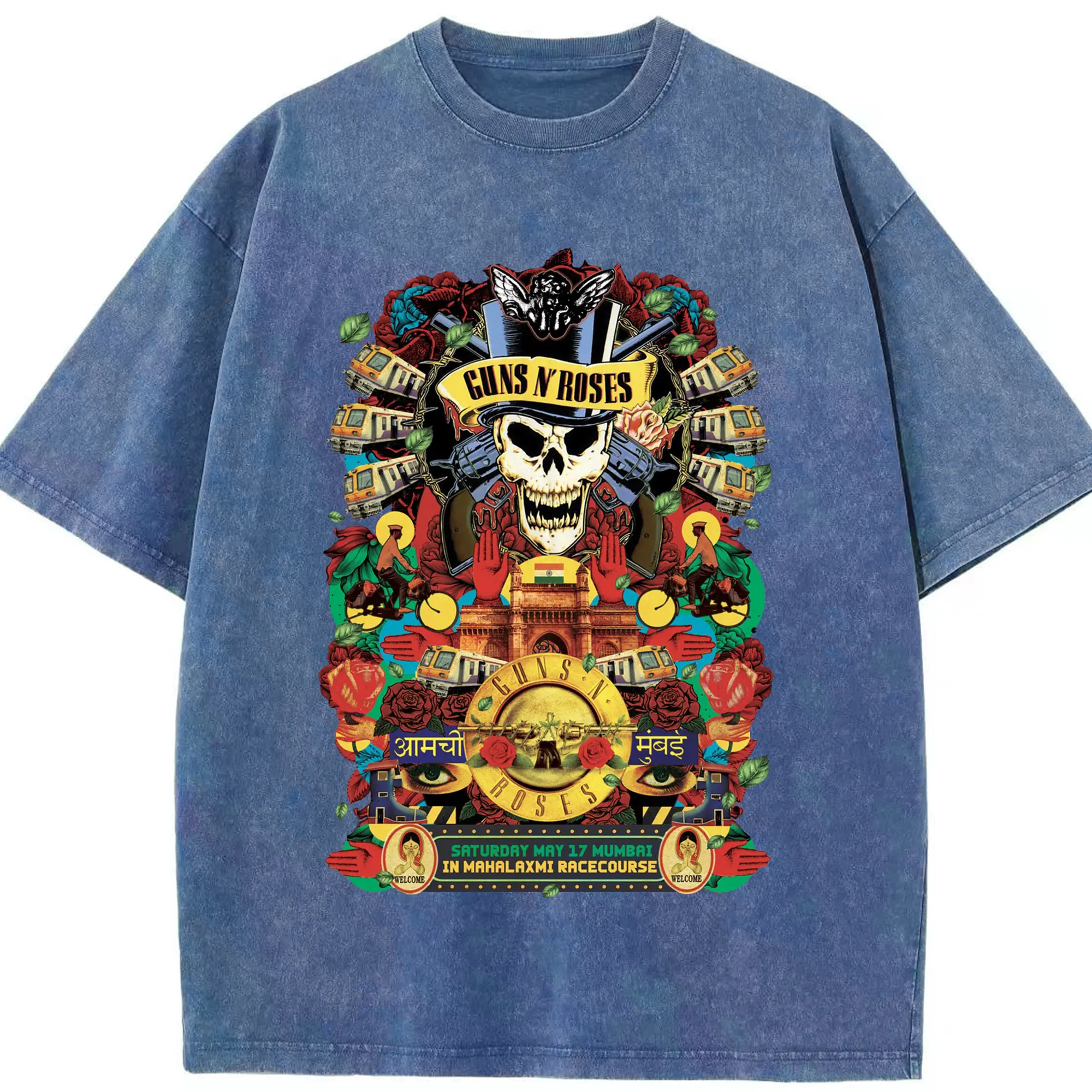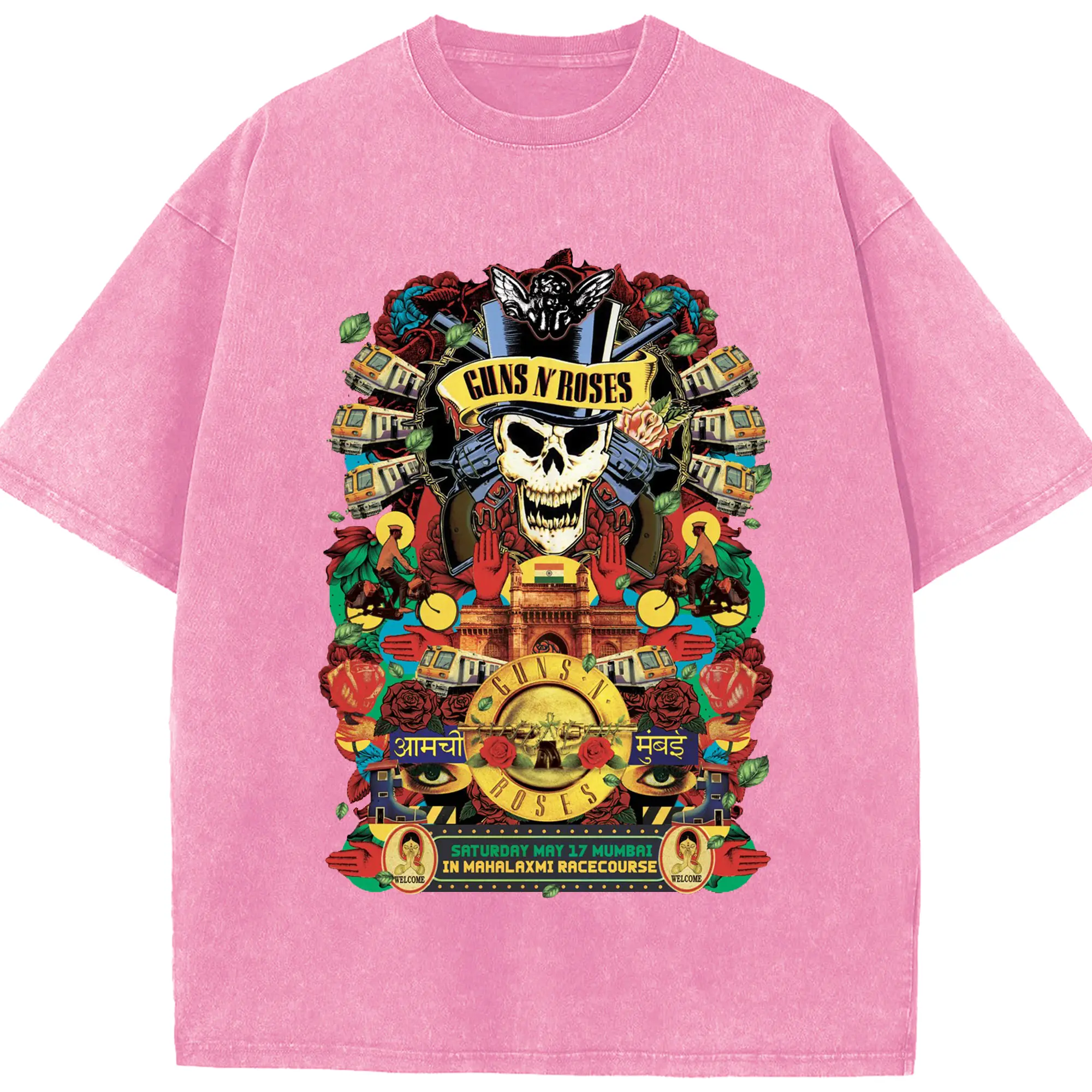 Guns N' Roses Mumbai City Limited Shirt - Washed Vintage Look 230g Cotton Oversized T-Shirt With Front Heat Transfer Print – Soft, Lightweight, Stylish Fit – Comfortable Casual Wear For Sports & Everyday Use