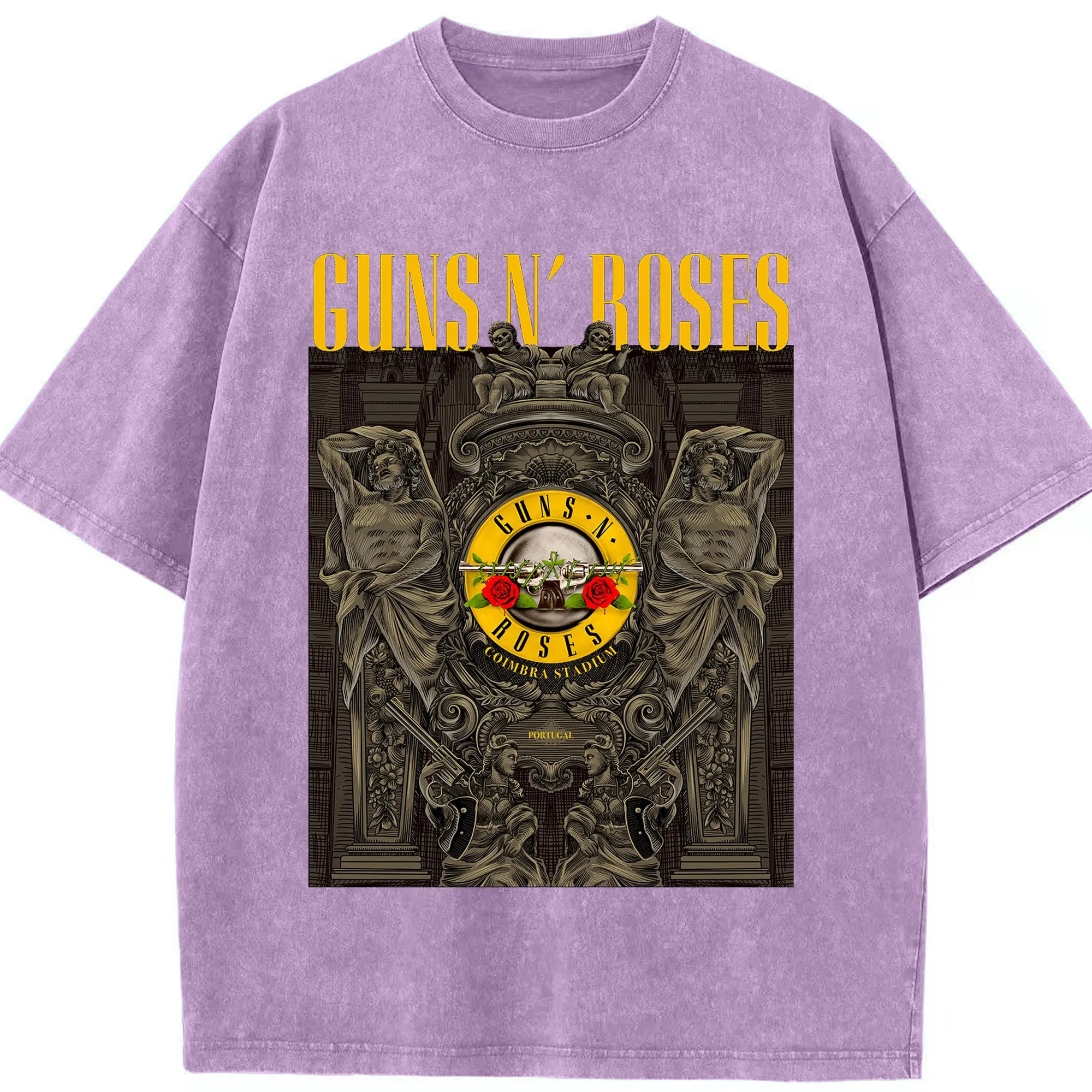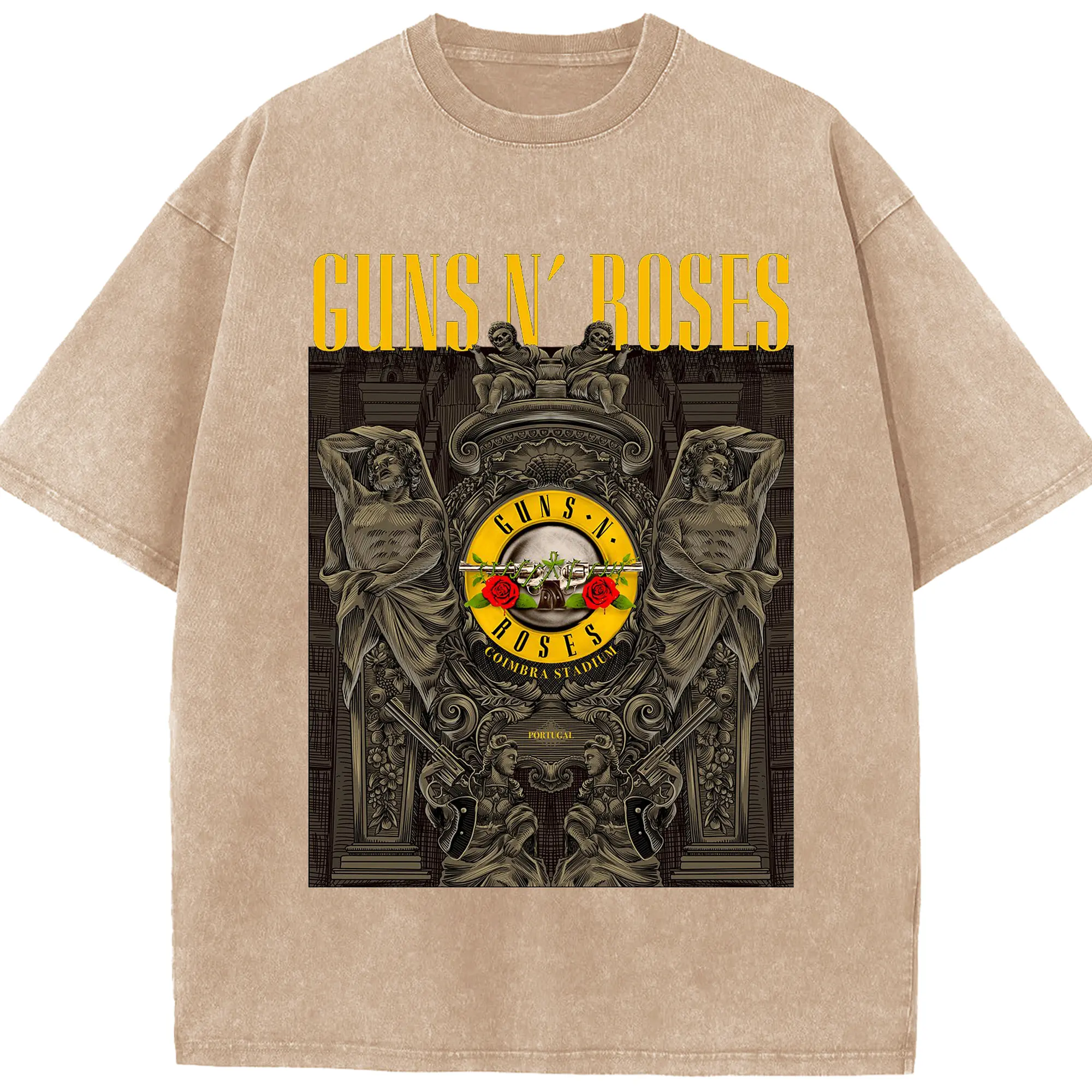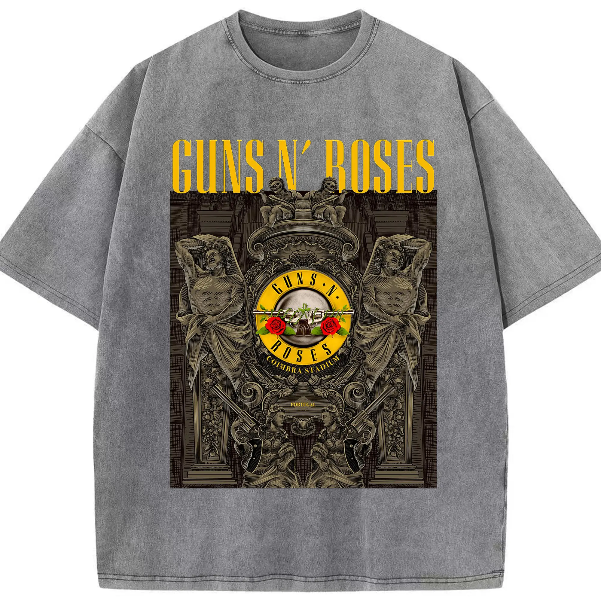 Guns N' Roses PORTUGAL City Limited Shirt - Washed Vintage Look 230g Cotton Oversized T-Shirt With Front Heat Transfer Print – Soft, Lightweight, Stylish Fit – Comfortable Casual Wear For Sports & Everyday Use