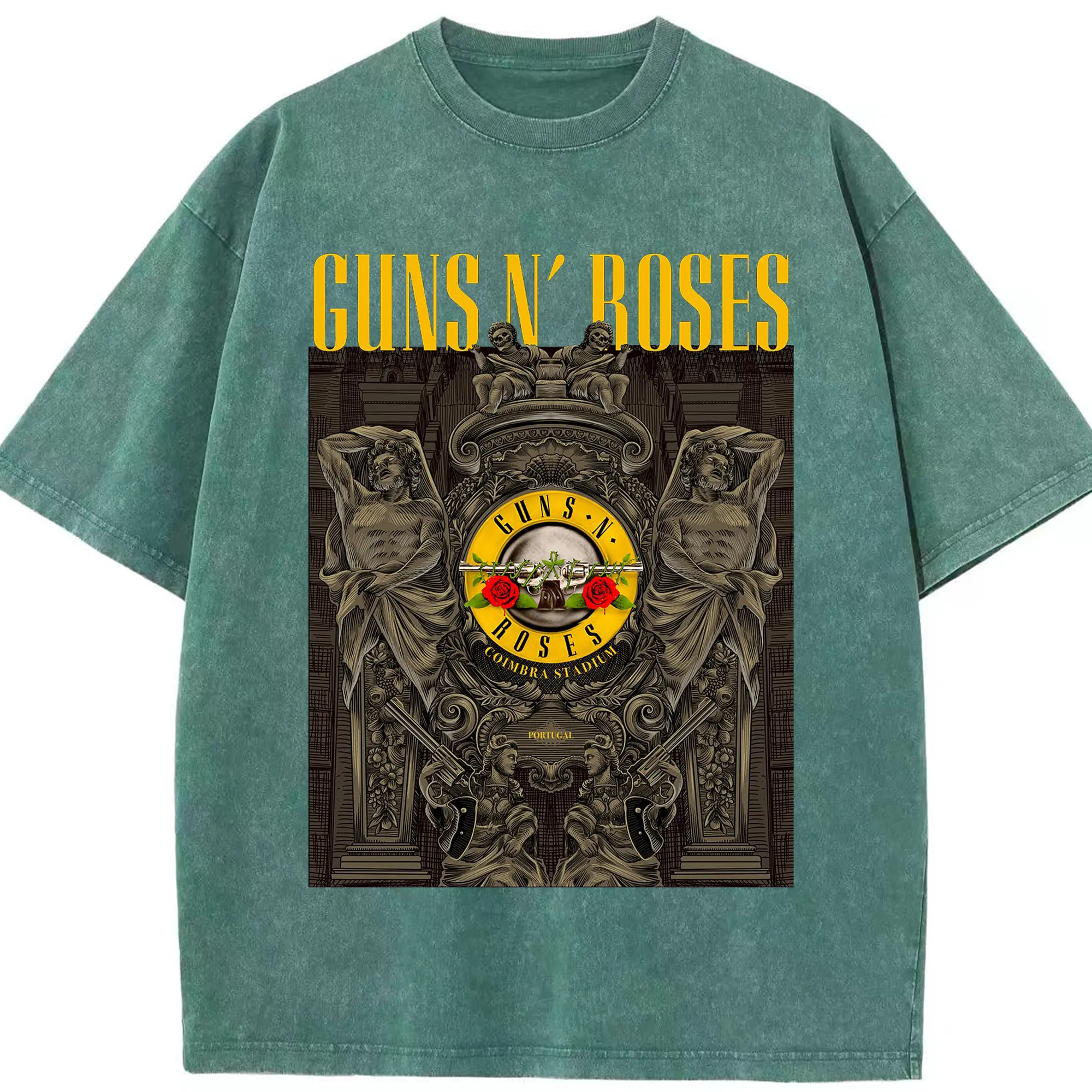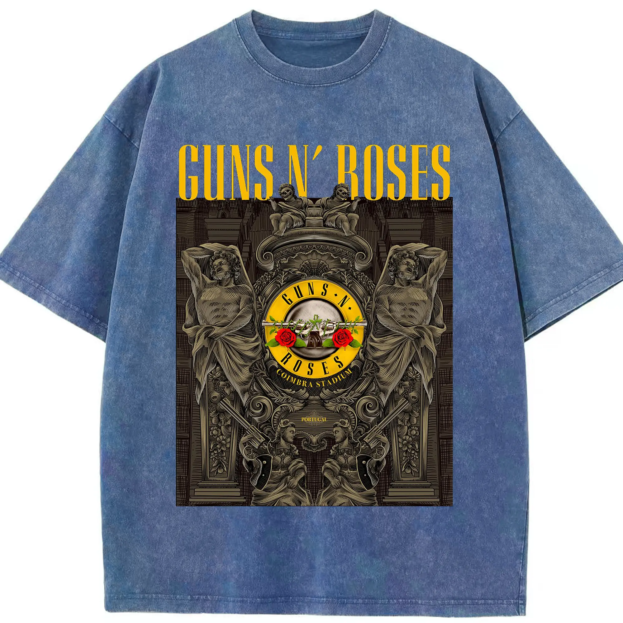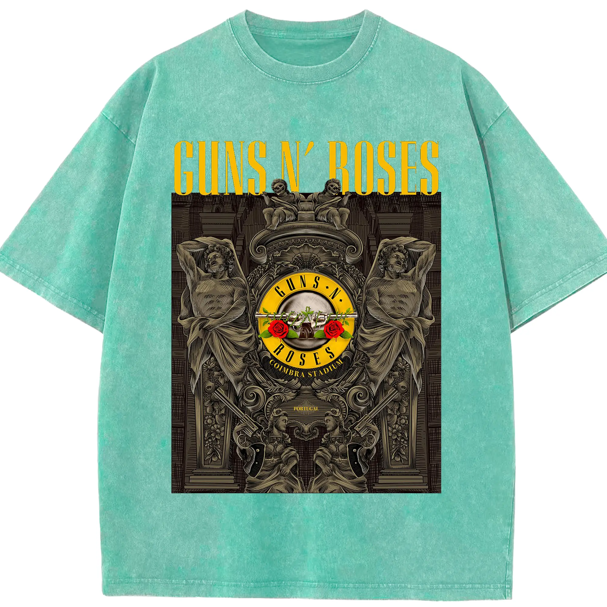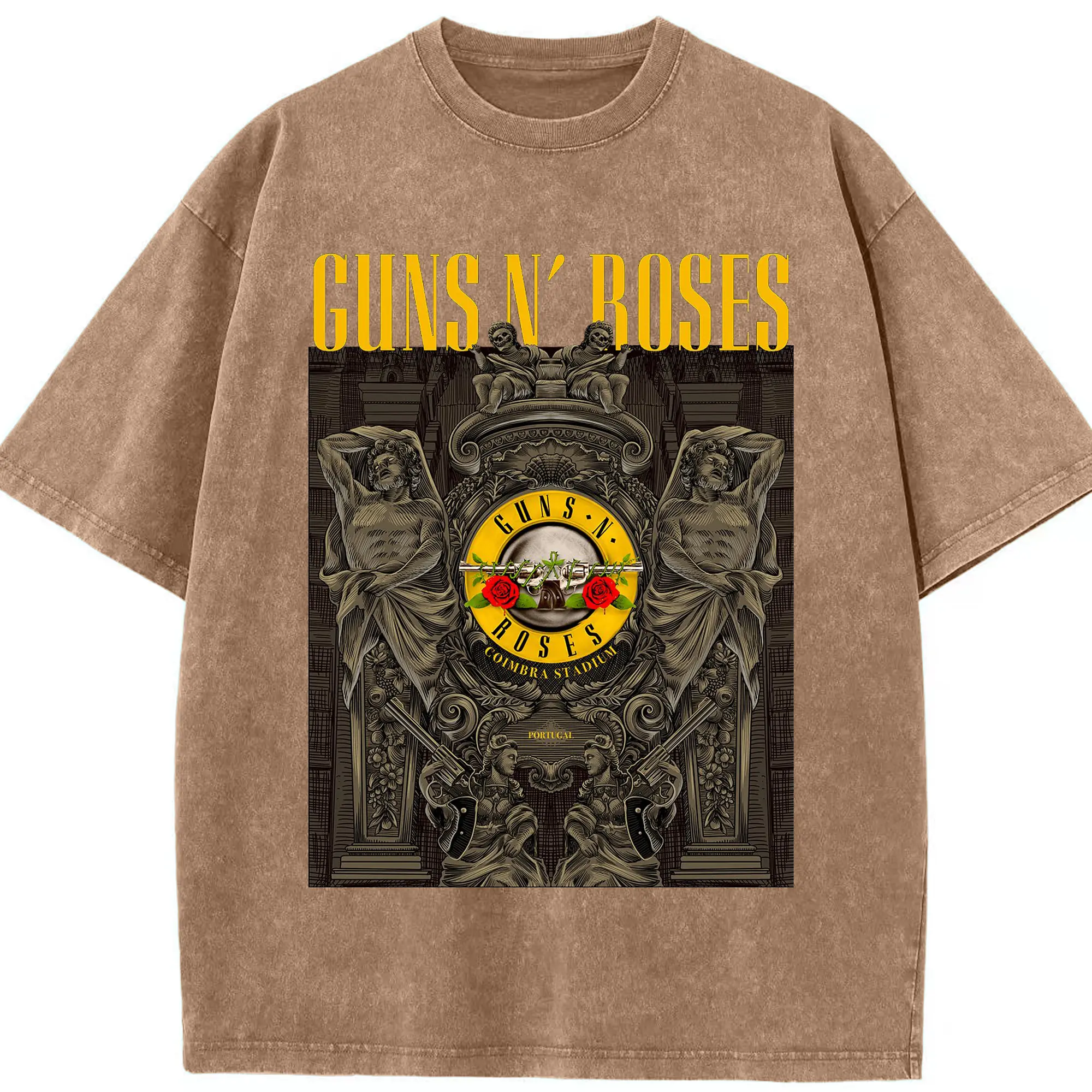 Guns N' Roses PORTUGAL City Limited Shirt - Washed Vintage Look 230g Cotton Oversized T-Shirt With Front Heat Transfer Print – Soft, Lightweight, Stylish Fit – Comfortable Casual Wear For Sports & Everyday Use