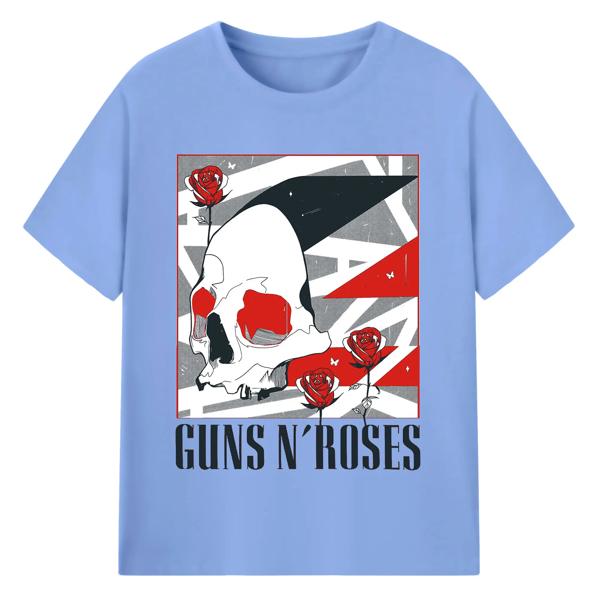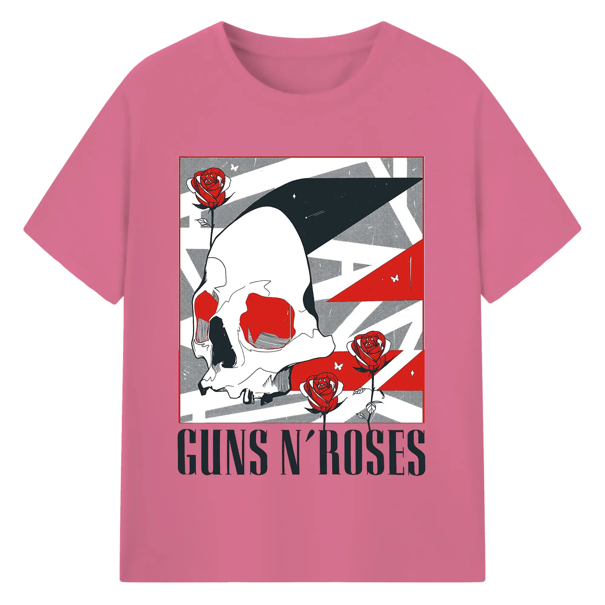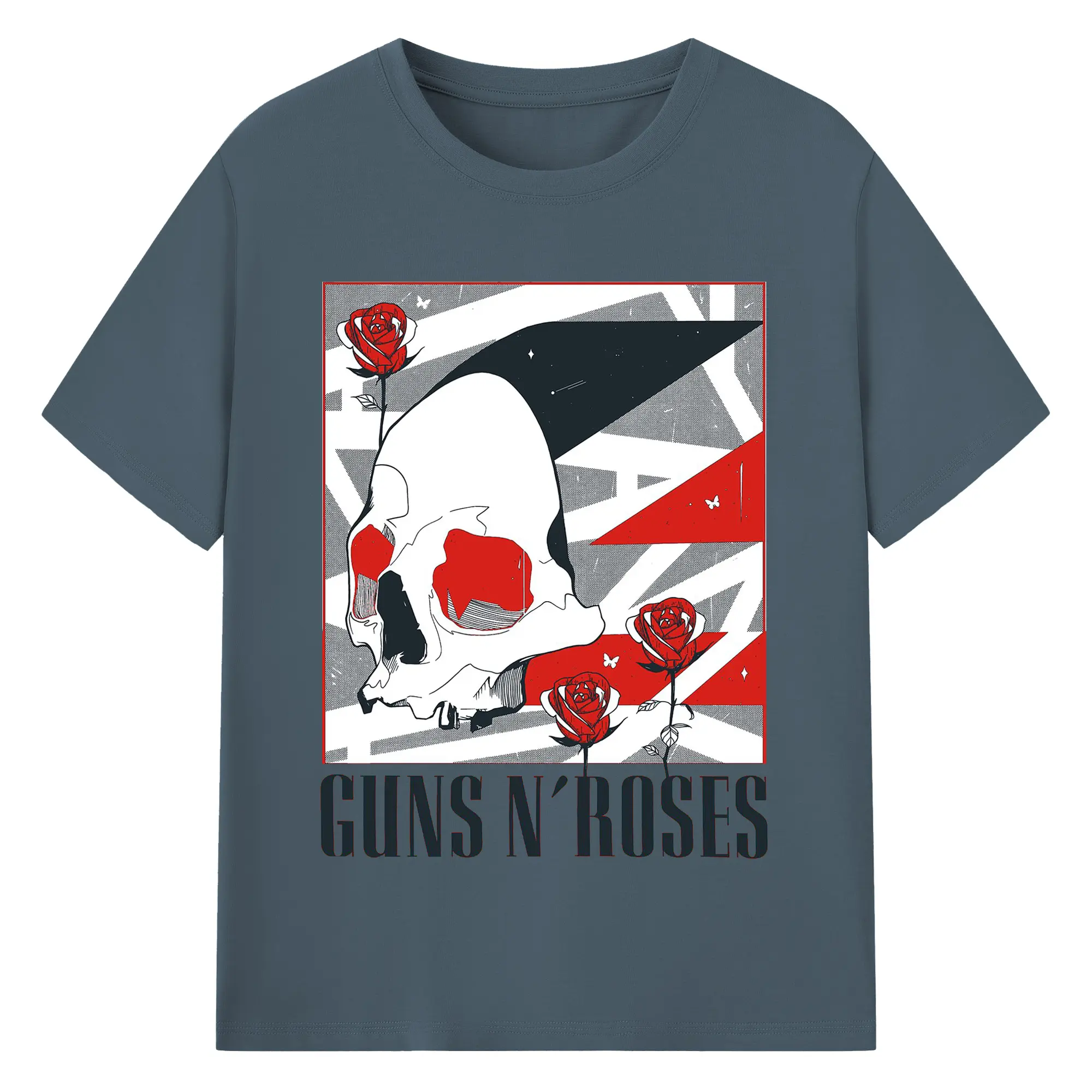 Guns N' Roses Skull Rose Rock DIY Shirt - 180g Cotton T-Shirt With Front Heat Transfer Print – Soft, Lightweight, Fitted Design – Comfortable Casual Wear For Sports & Everyday Use