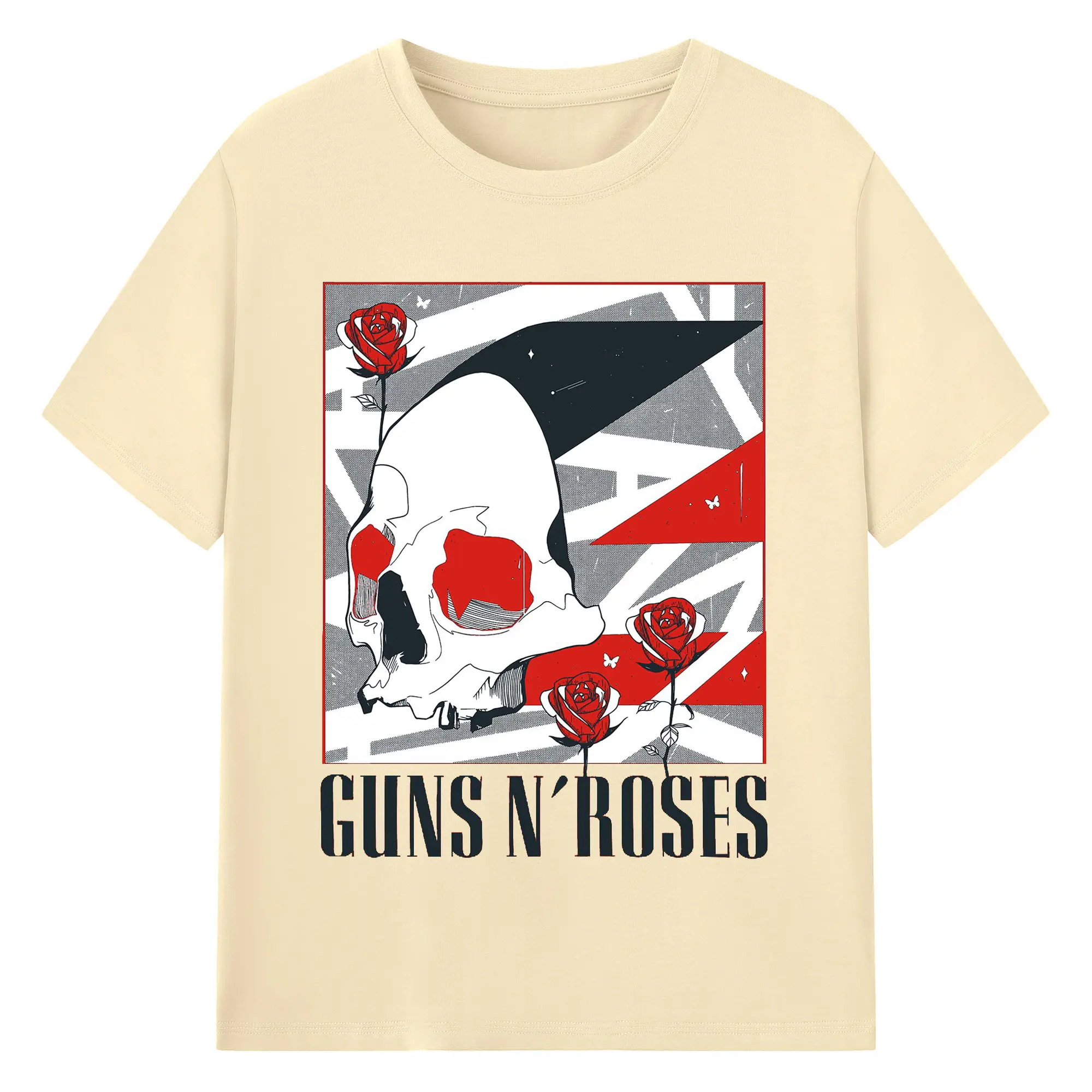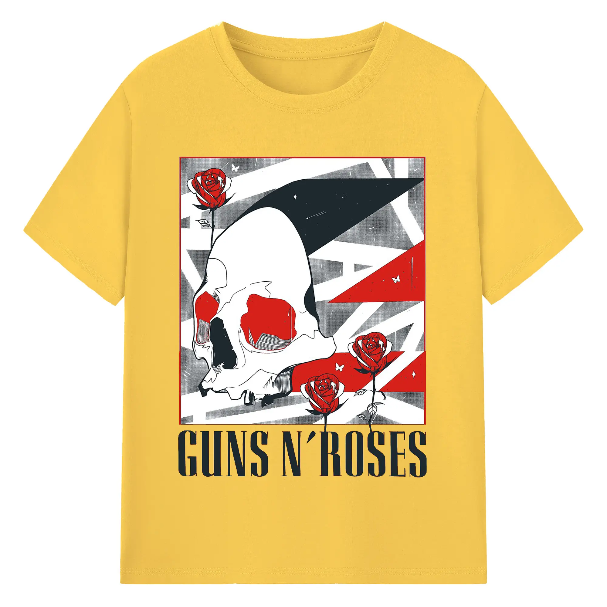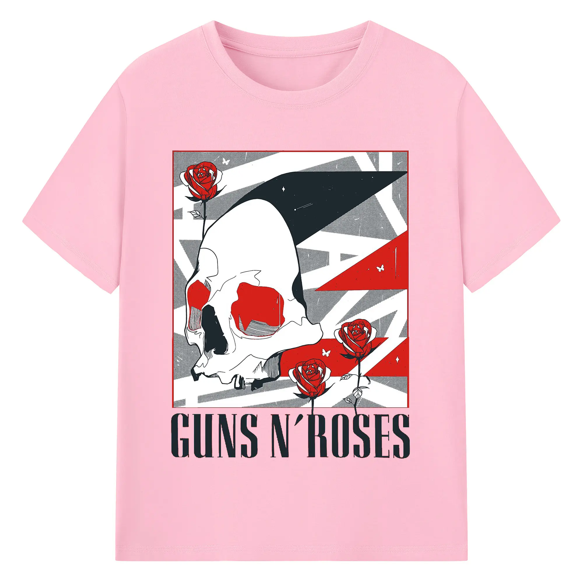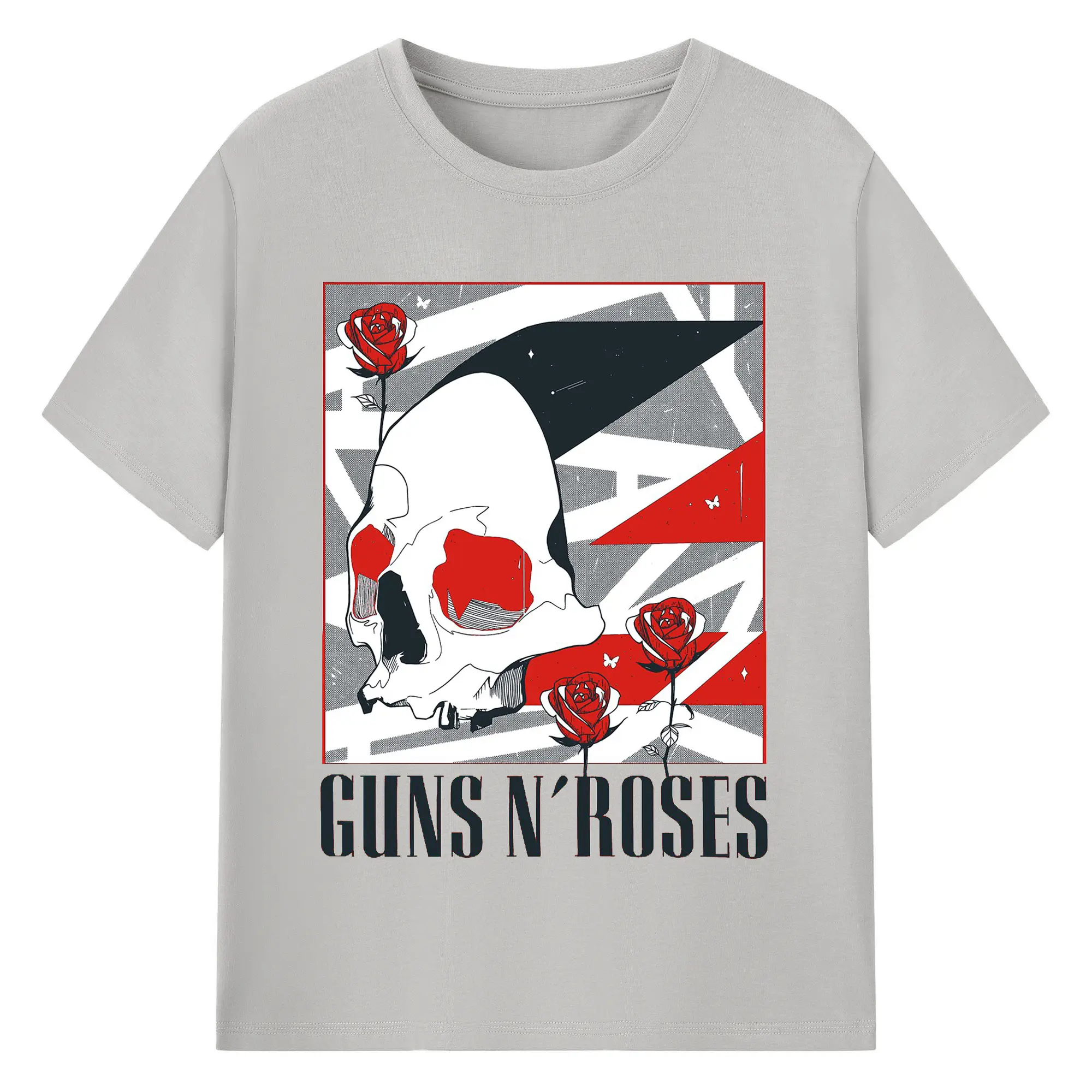 Guns N' Roses Skull Rose Rock DIY Shirt - 180g Cotton T-Shirt With Front Heat Transfer Print – Soft, Lightweight, Fitted Design – Comfortable Casual Wear For Sports & Everyday Use