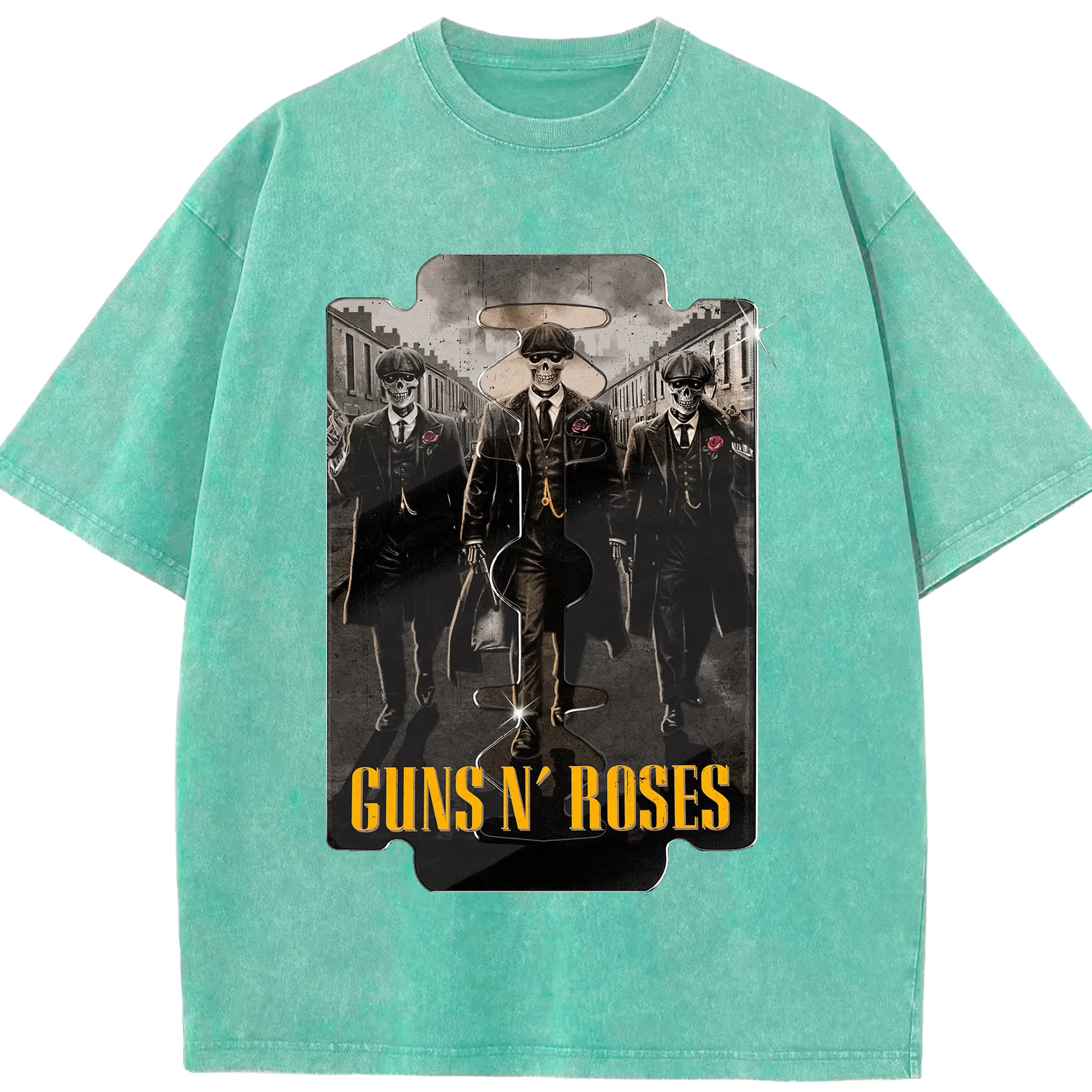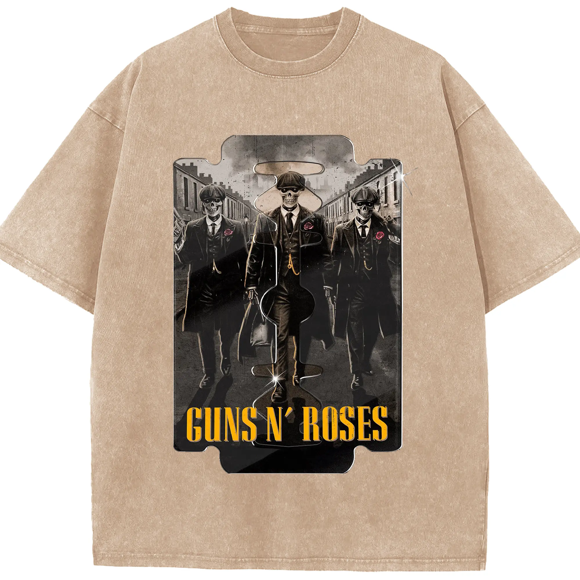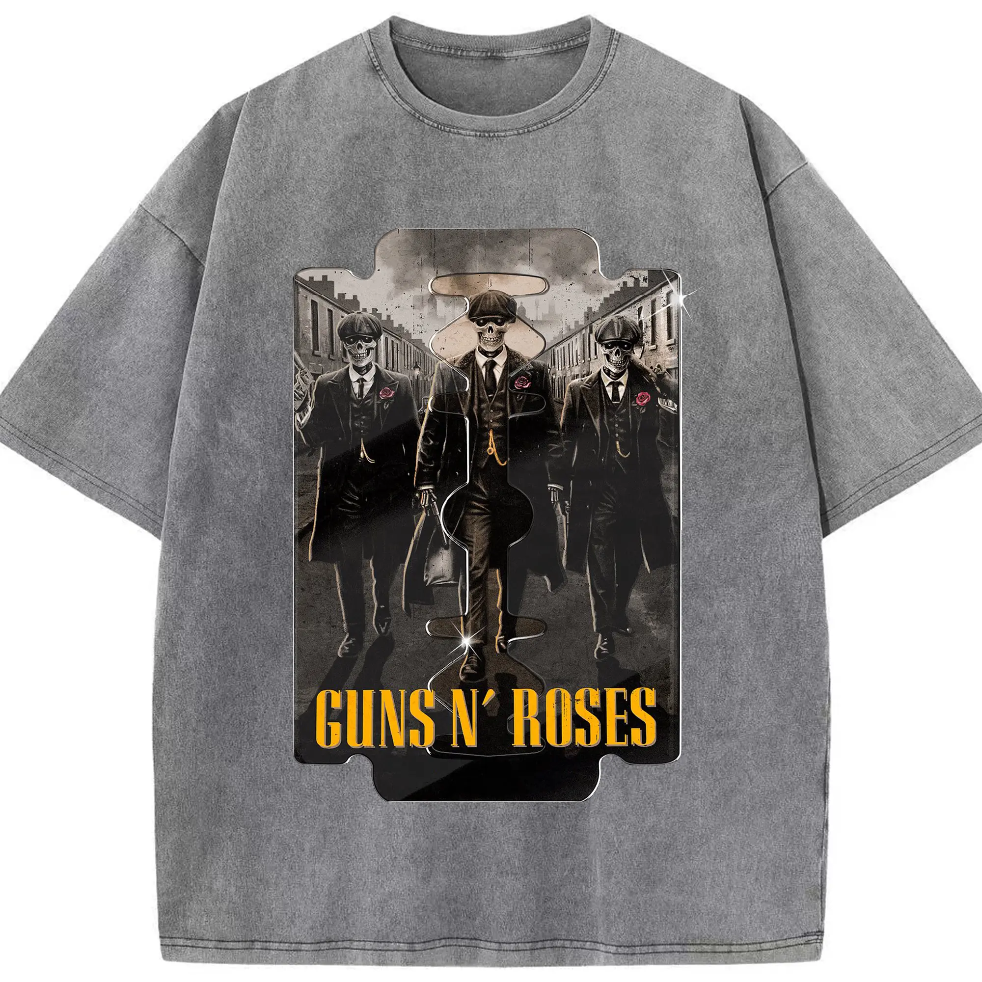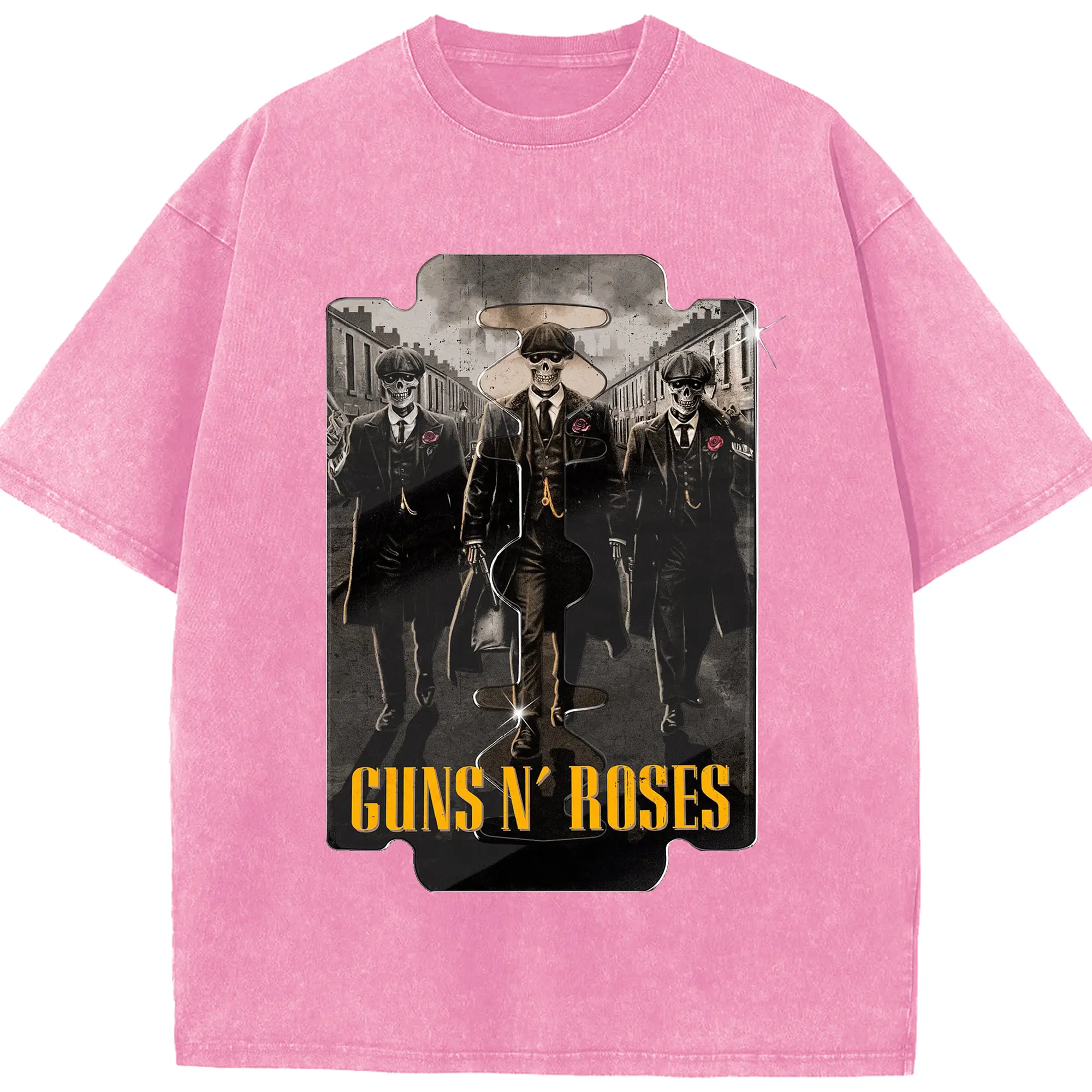 Guns N' Roses Vintage Gangster Skull DIY Shirt - Washed Vintage Look 230g Cotton Oversized T-Shirt With Front Heat Transfer Print – Soft, Lightweight, Stylish Fit – Comfortable Casual Wear For Sports & Everyday Use