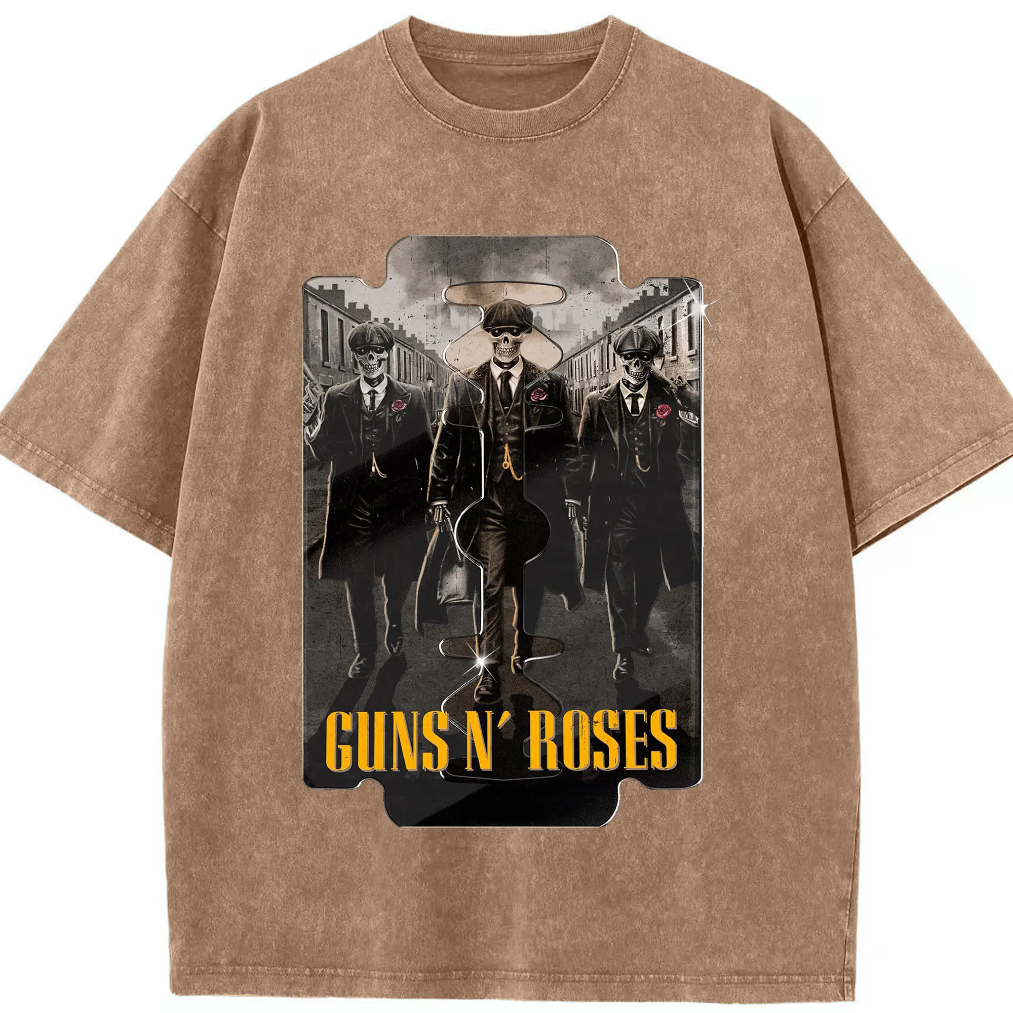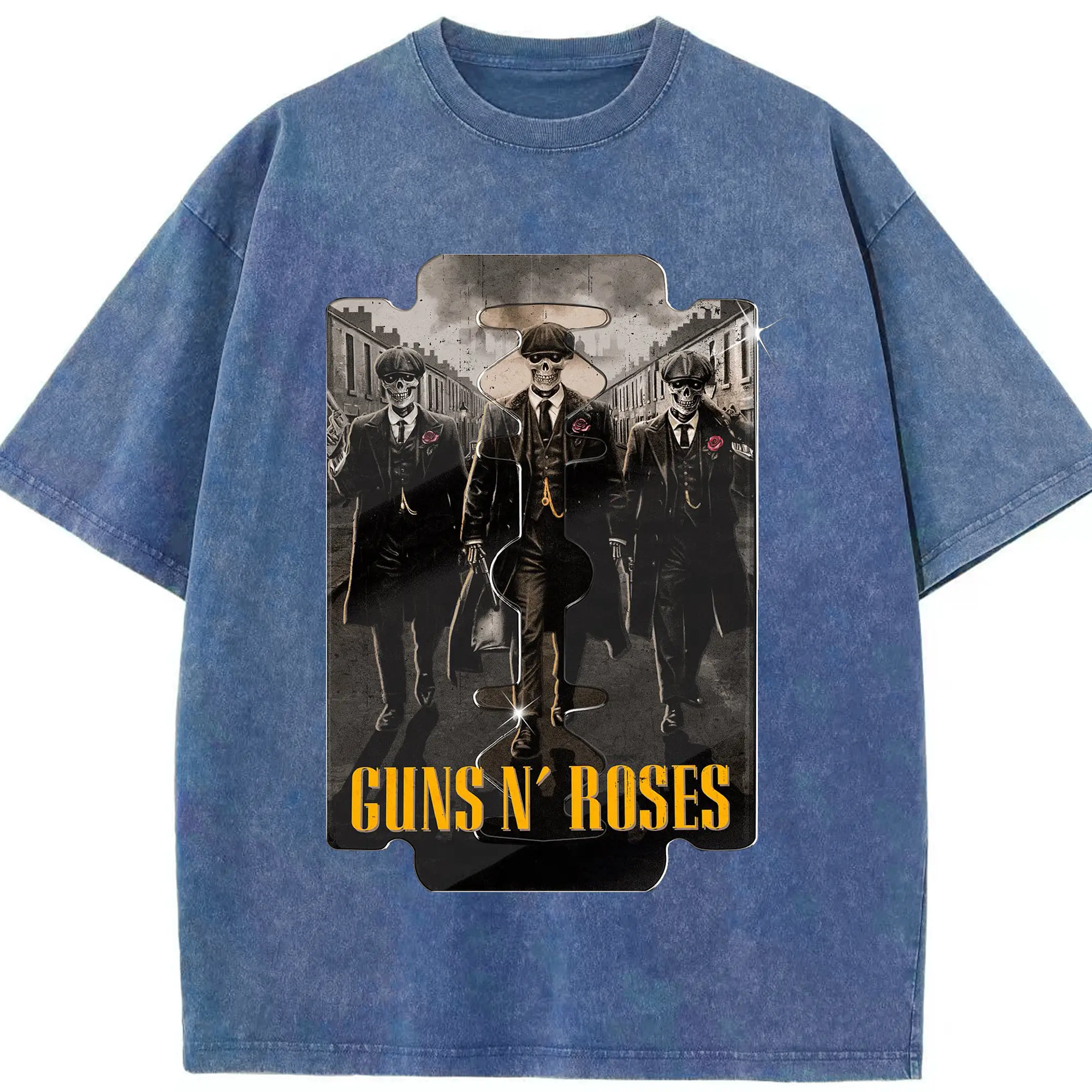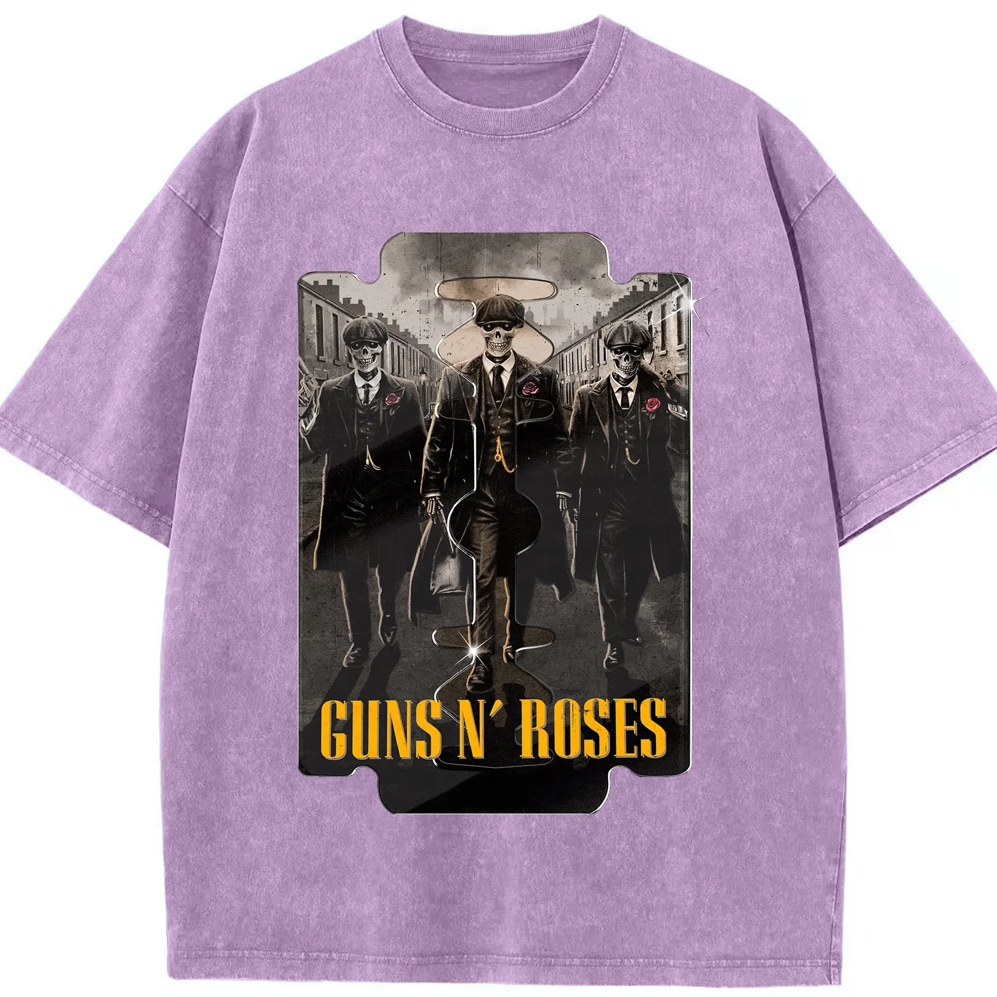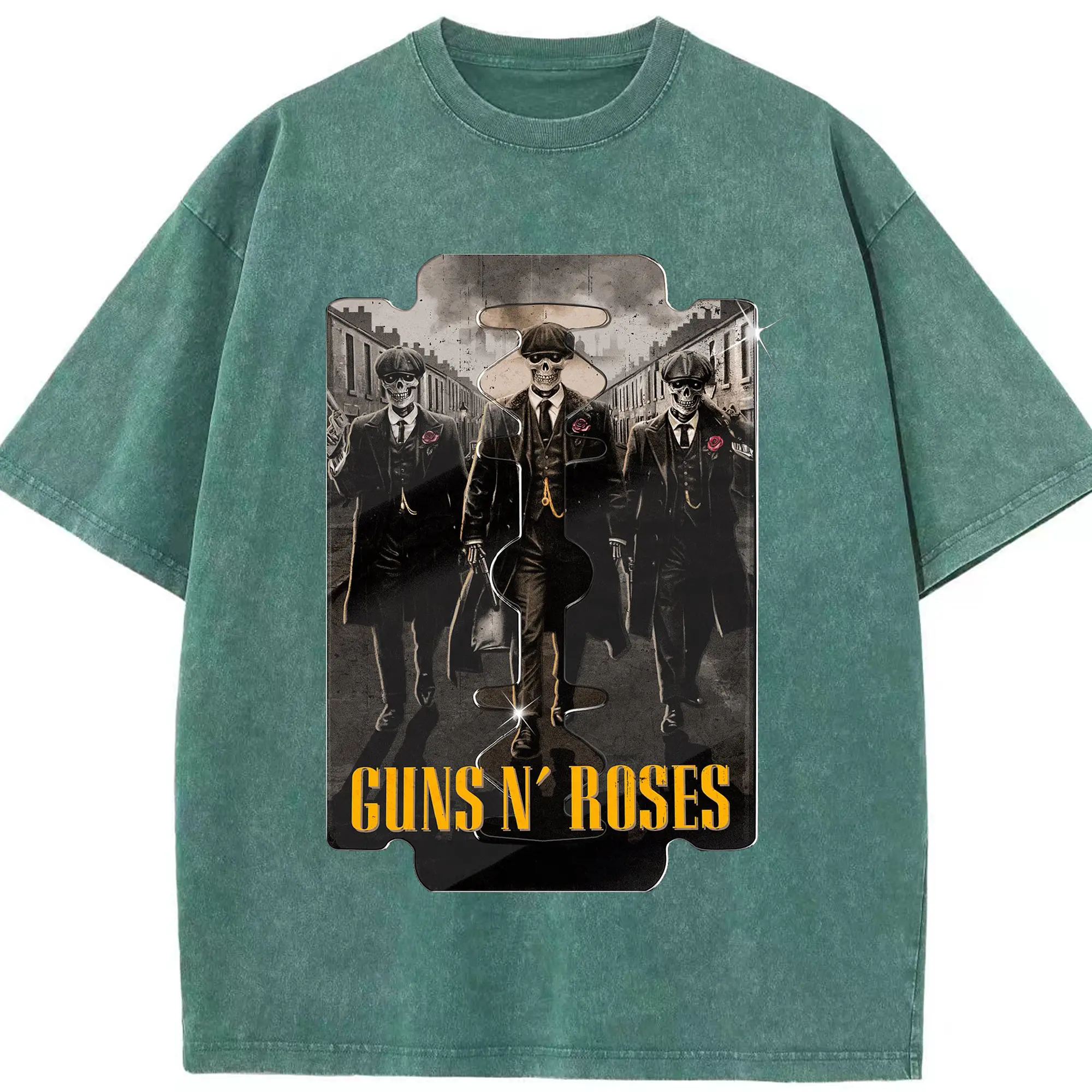 Guns N' Roses Vintage Gangster Skull DIY Shirt - Washed Vintage Look 230g Cotton Oversized T-Shirt With Front Heat Transfer Print – Soft, Lightweight, Stylish Fit – Comfortable Casual Wear For Sports & Everyday Use