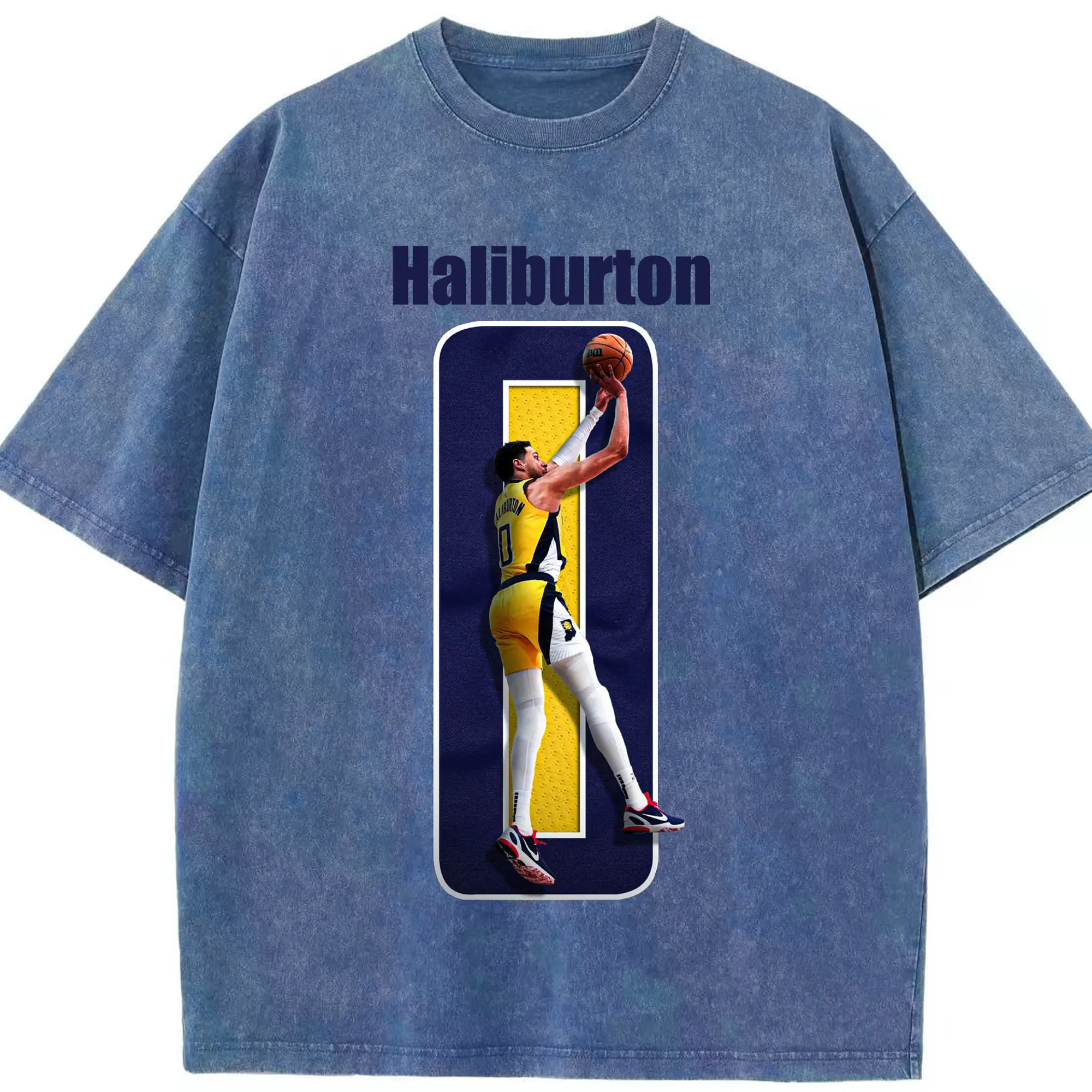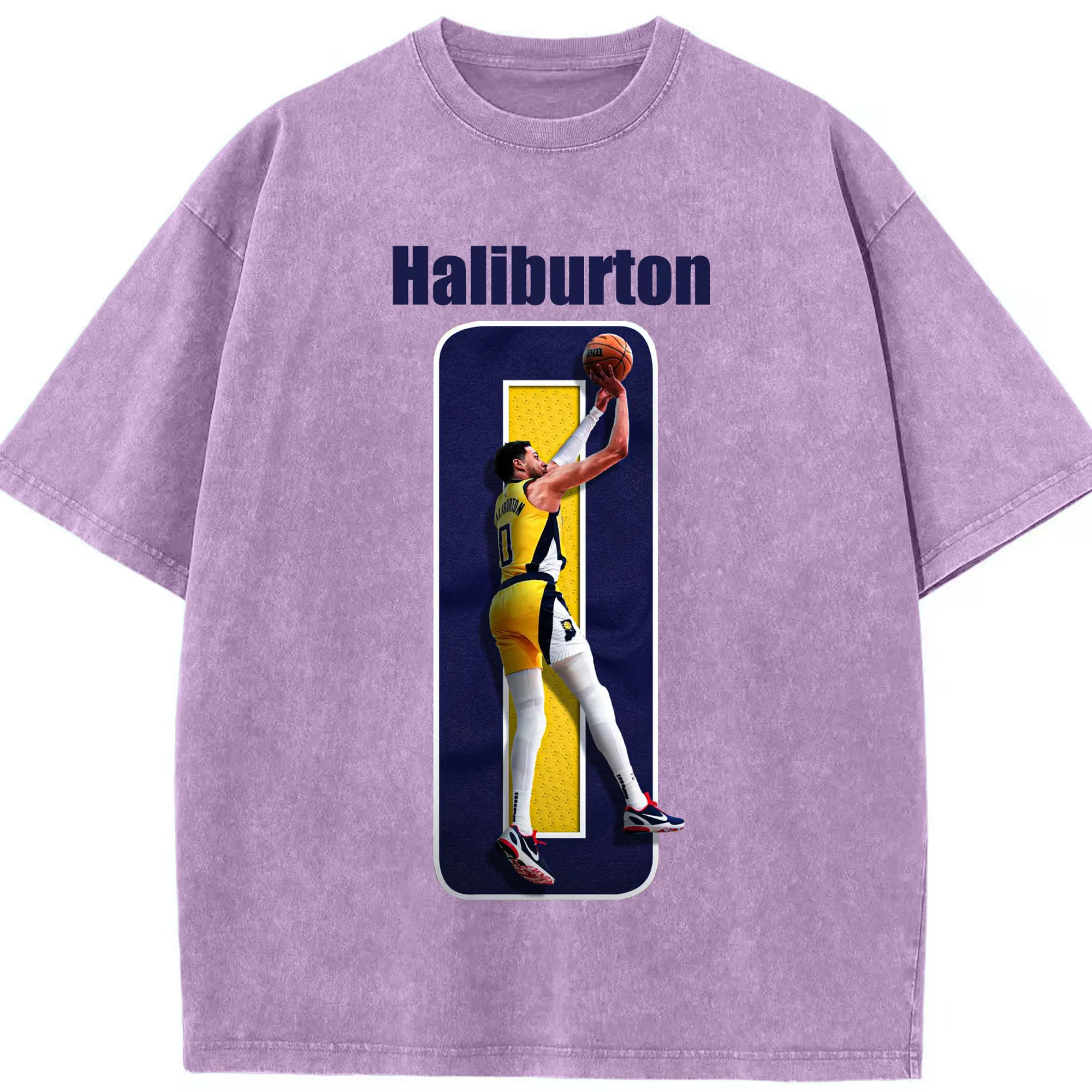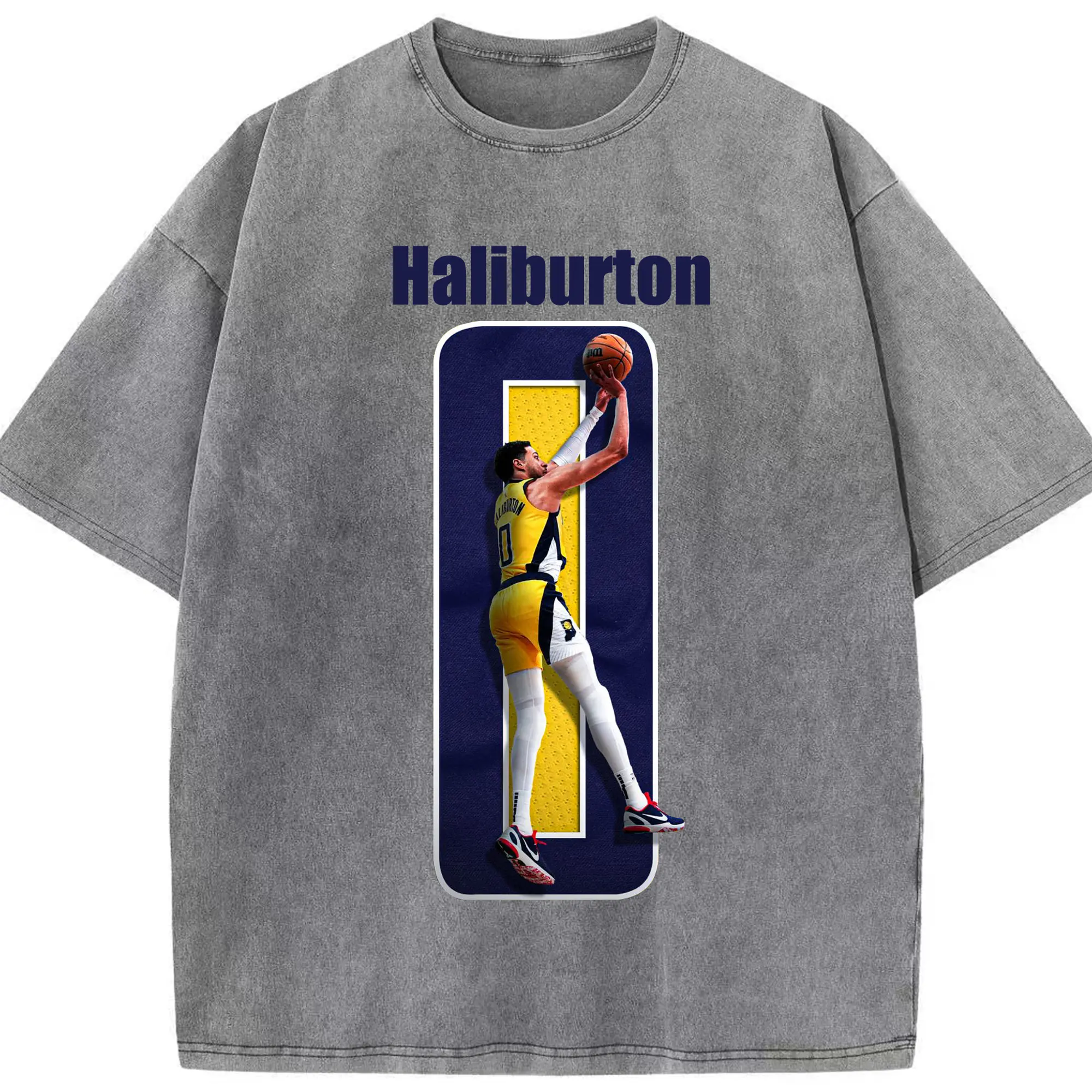 Haliburton #0 Custom Graphic Shirt - Washed Vintage Look 230g Cotton Oversized T-Shirt With Front Heat Transfer Print – Soft, Lightweight, Stylish Fit – Comfortable Casual Wear For Sports & Everyday Use