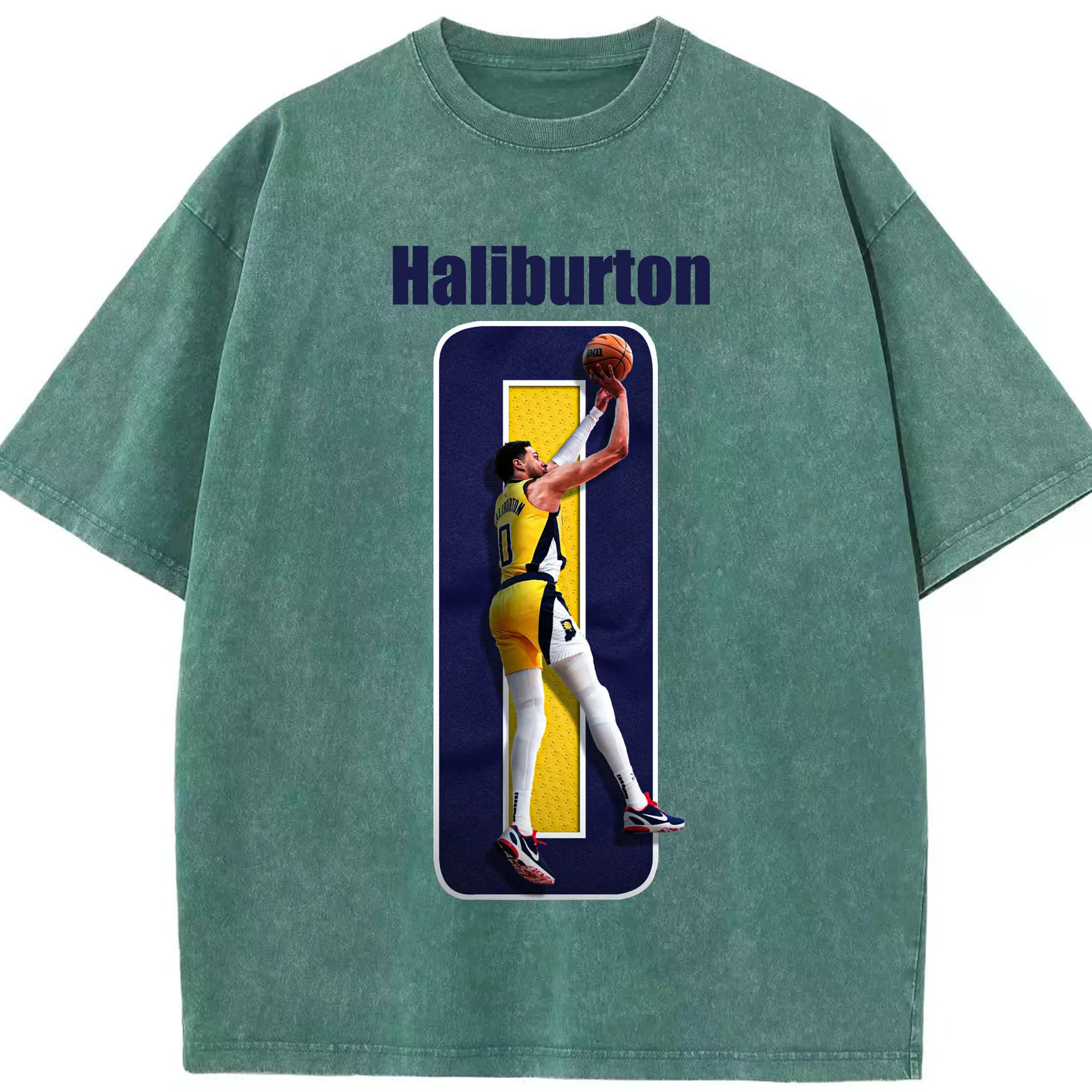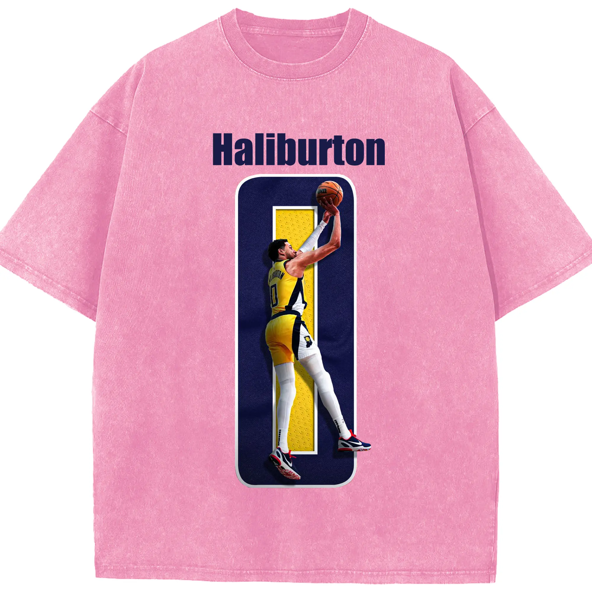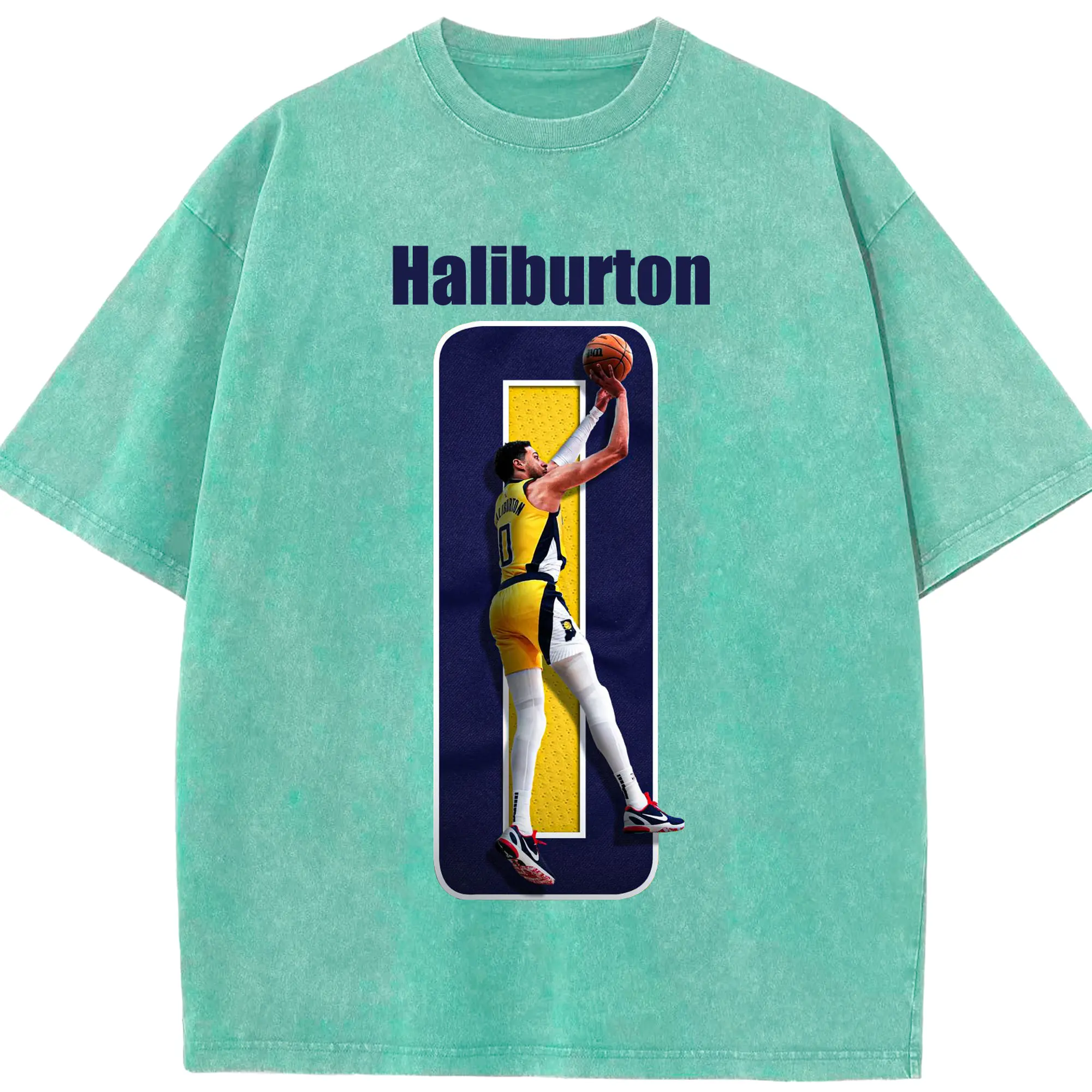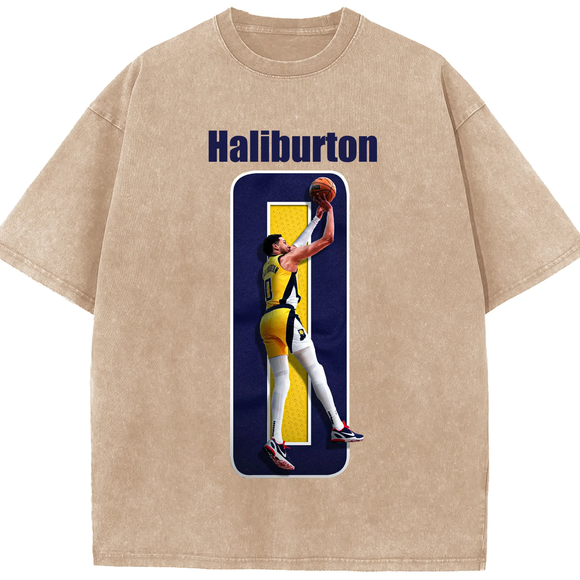 Haliburton #0 Custom Graphic Shirt - Washed Vintage Look 230g Cotton Oversized T-Shirt With Front Heat Transfer Print – Soft, Lightweight, Stylish Fit – Comfortable Casual Wear For Sports & Everyday Use