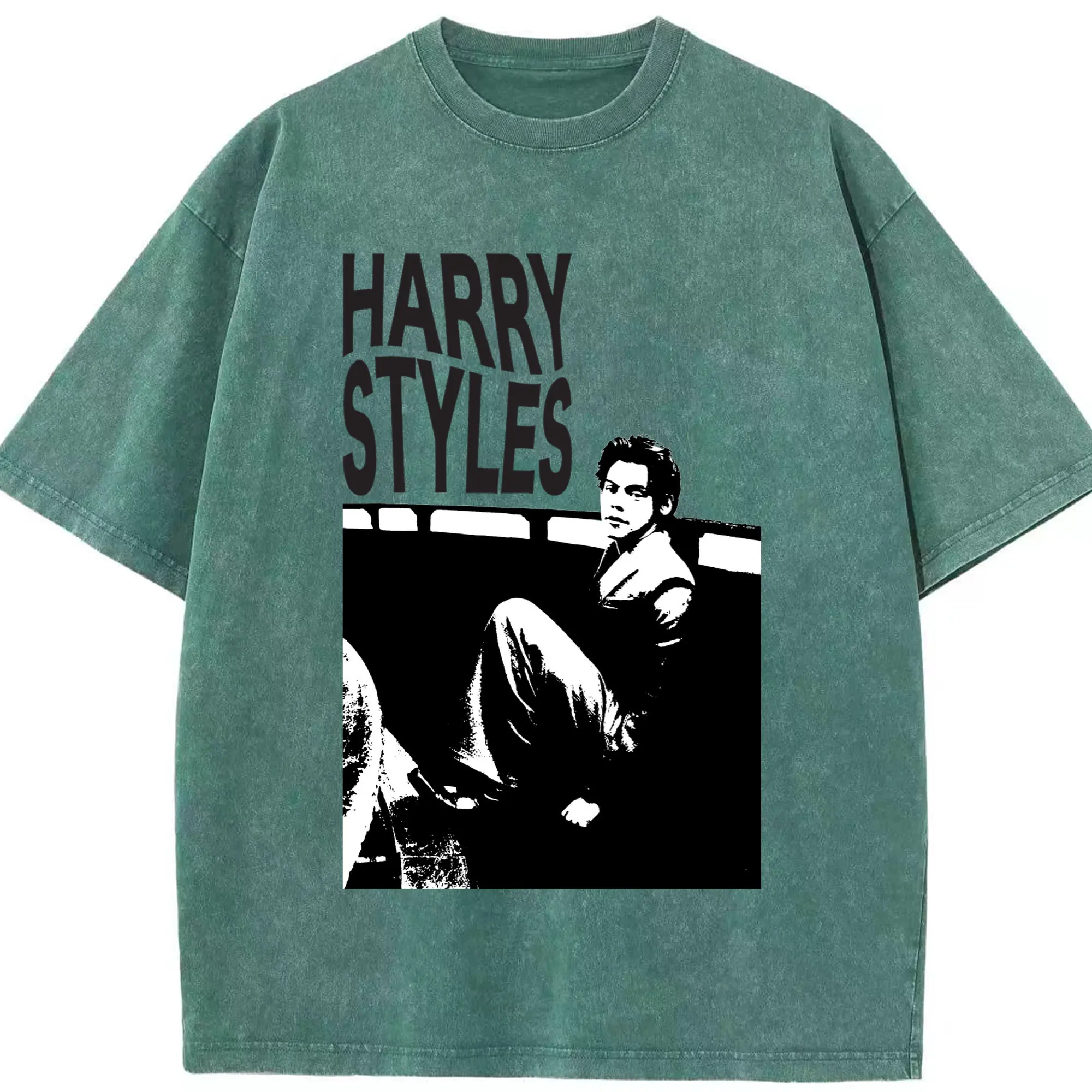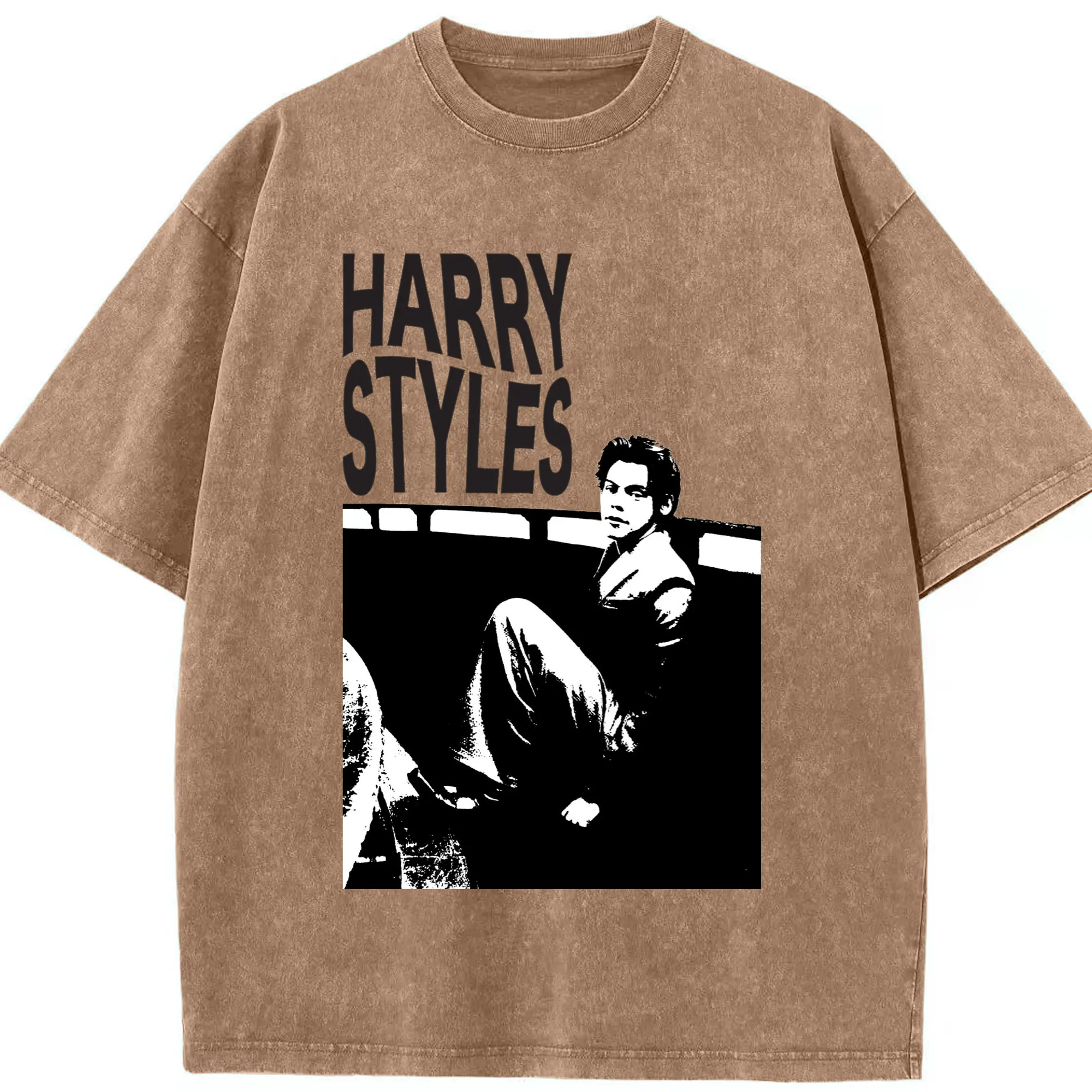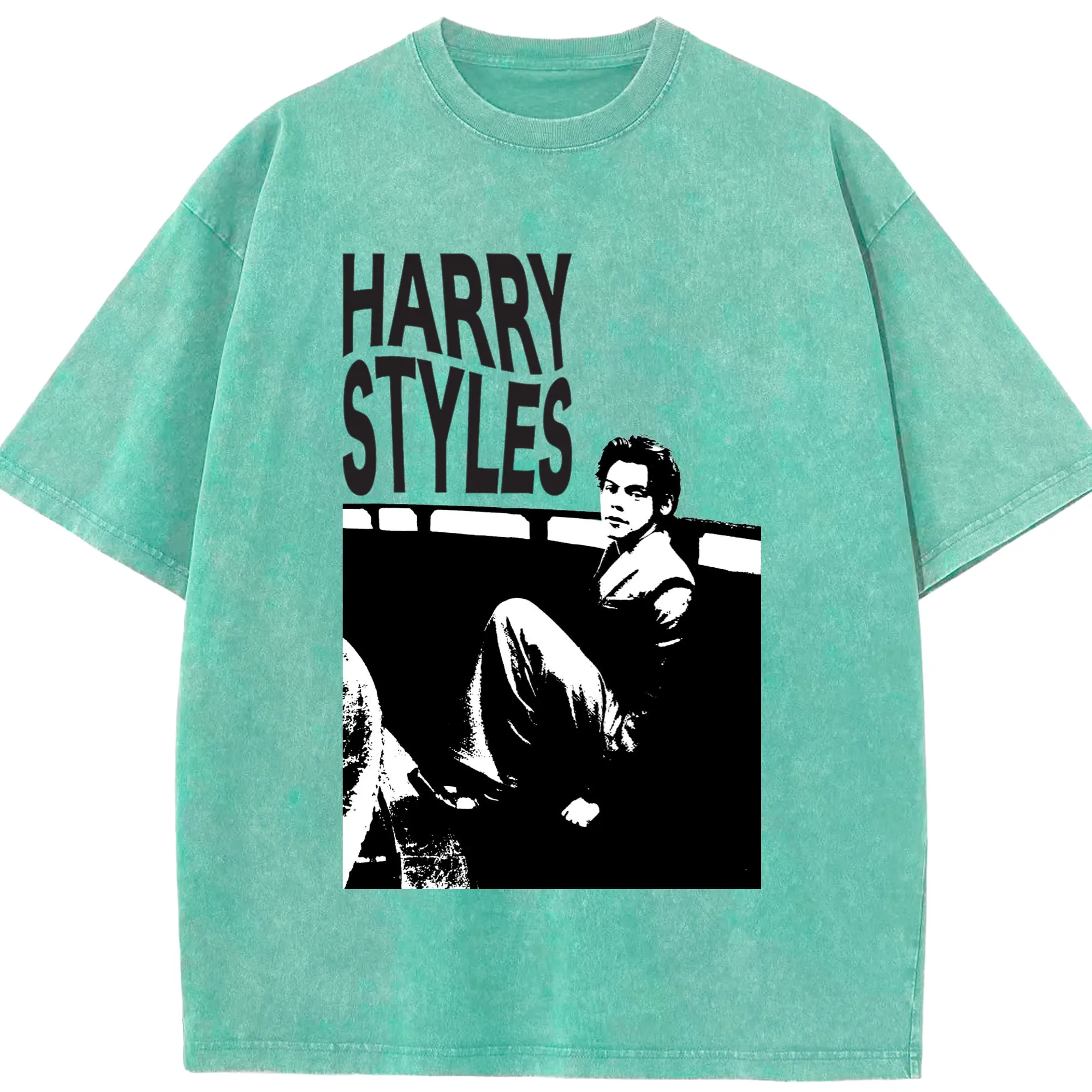 Harry Styles Black And White Retro Art Style DIY - Washed Vintage Look 230g Cotton Oversized T-Shirt With Front Heat Transfer Print – Soft, Lightweight, Stylish Fit – Comfortable Casual Wear For Sports & Everyday Use