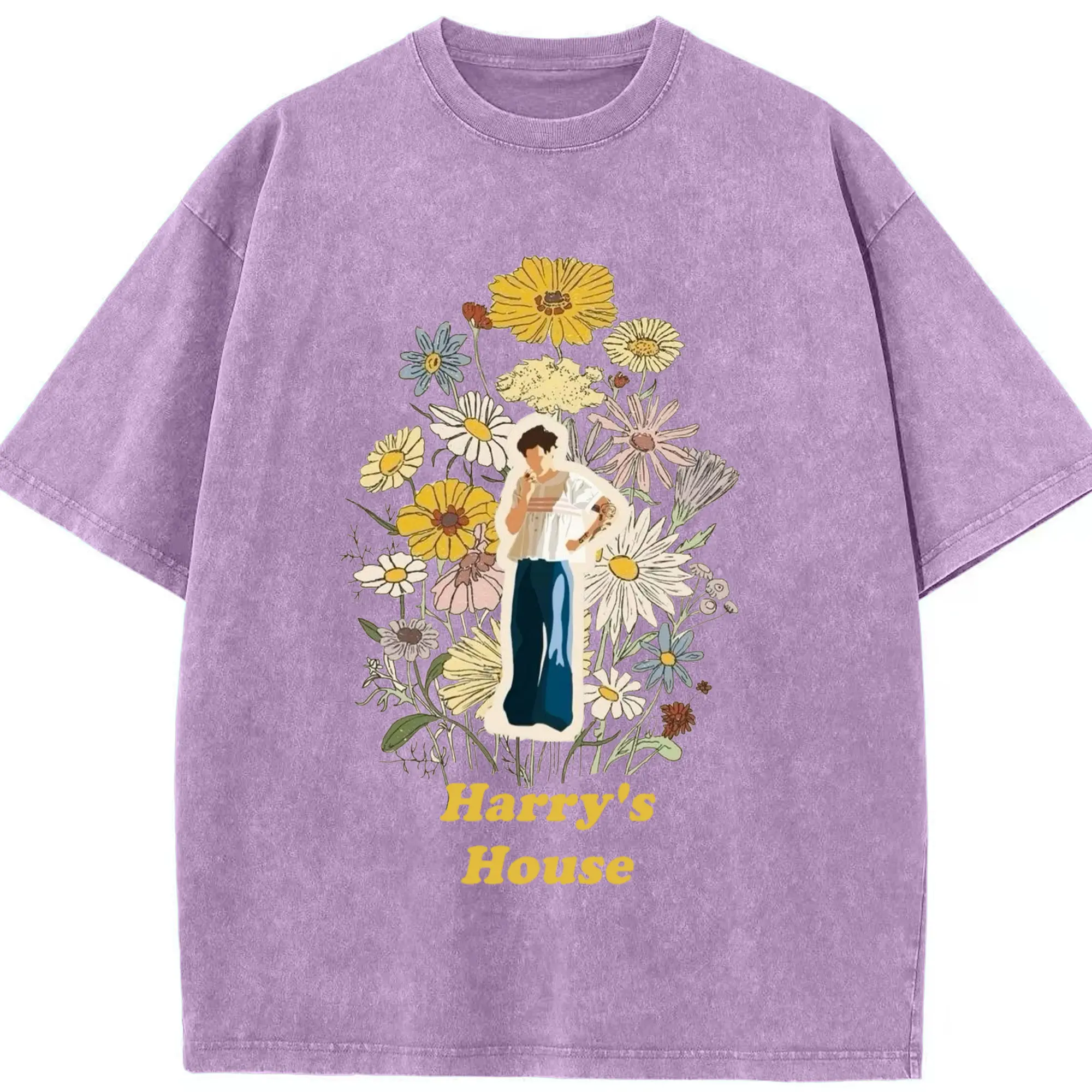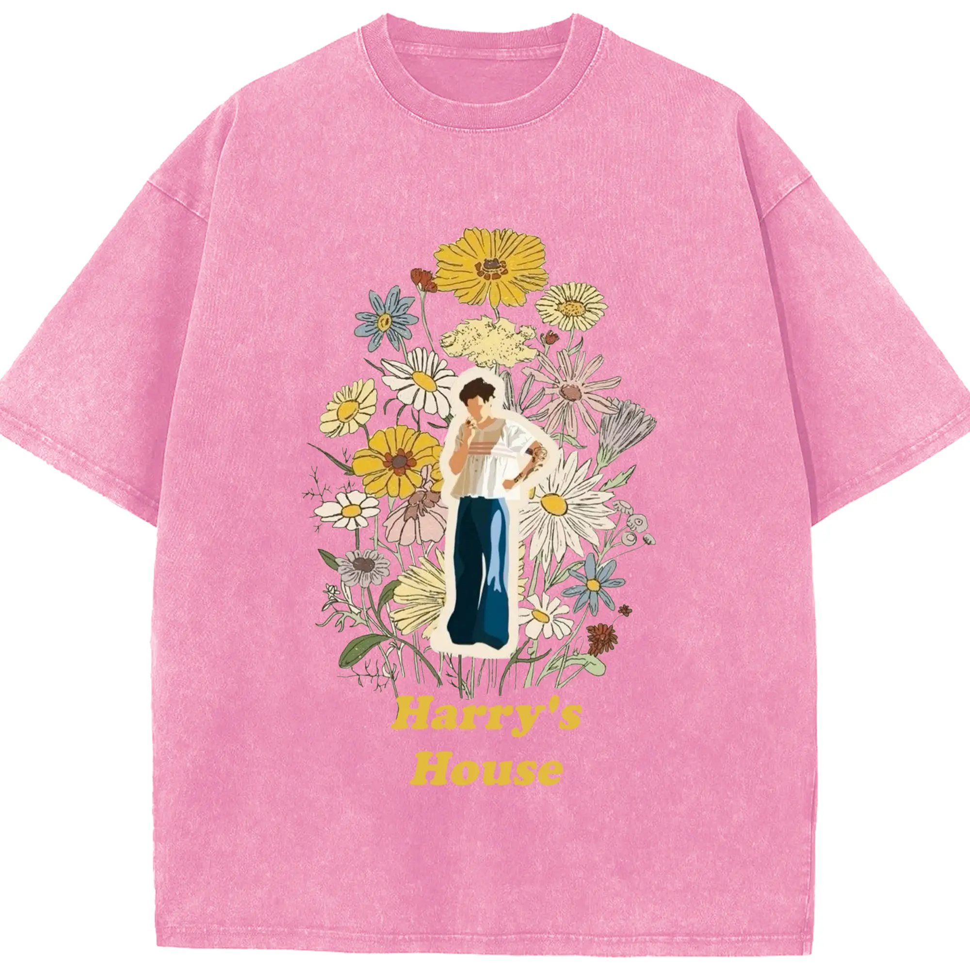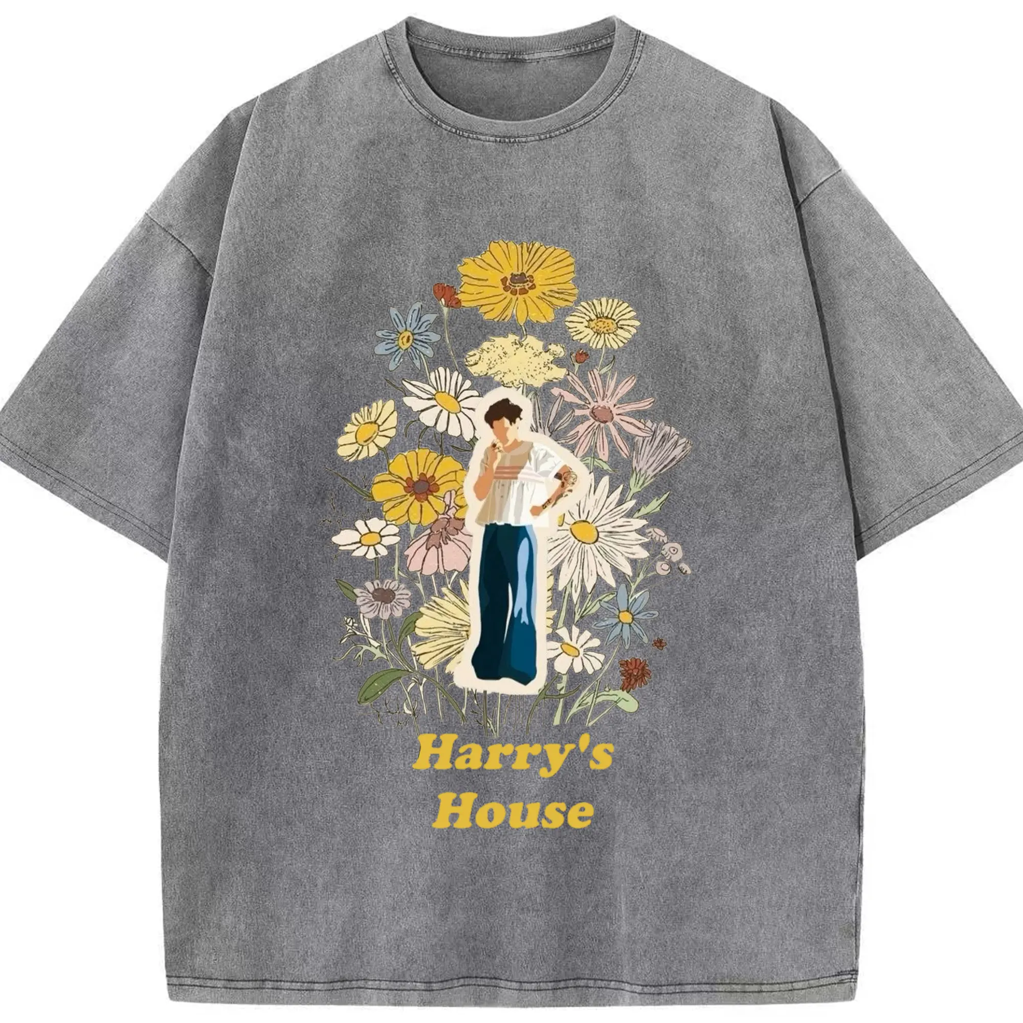 Harry Styles Harry's House Retro Floral DIY - Washed Vintage Look 230g Cotton Oversized T-Shirt With Front Heat Transfer Print – Soft, Lightweight, Stylish Fit – Comfortable Casual Wear For Sports & Everyday Use