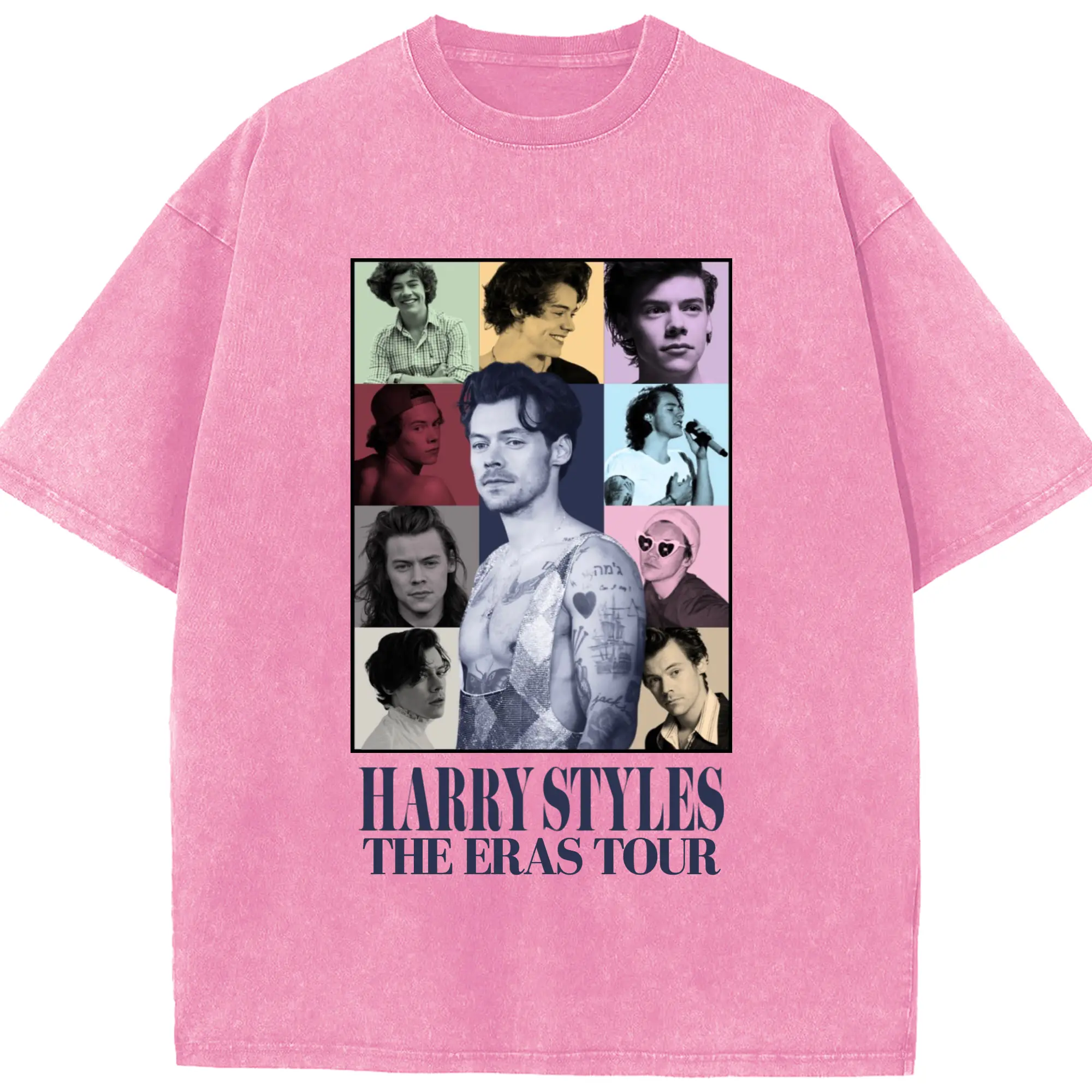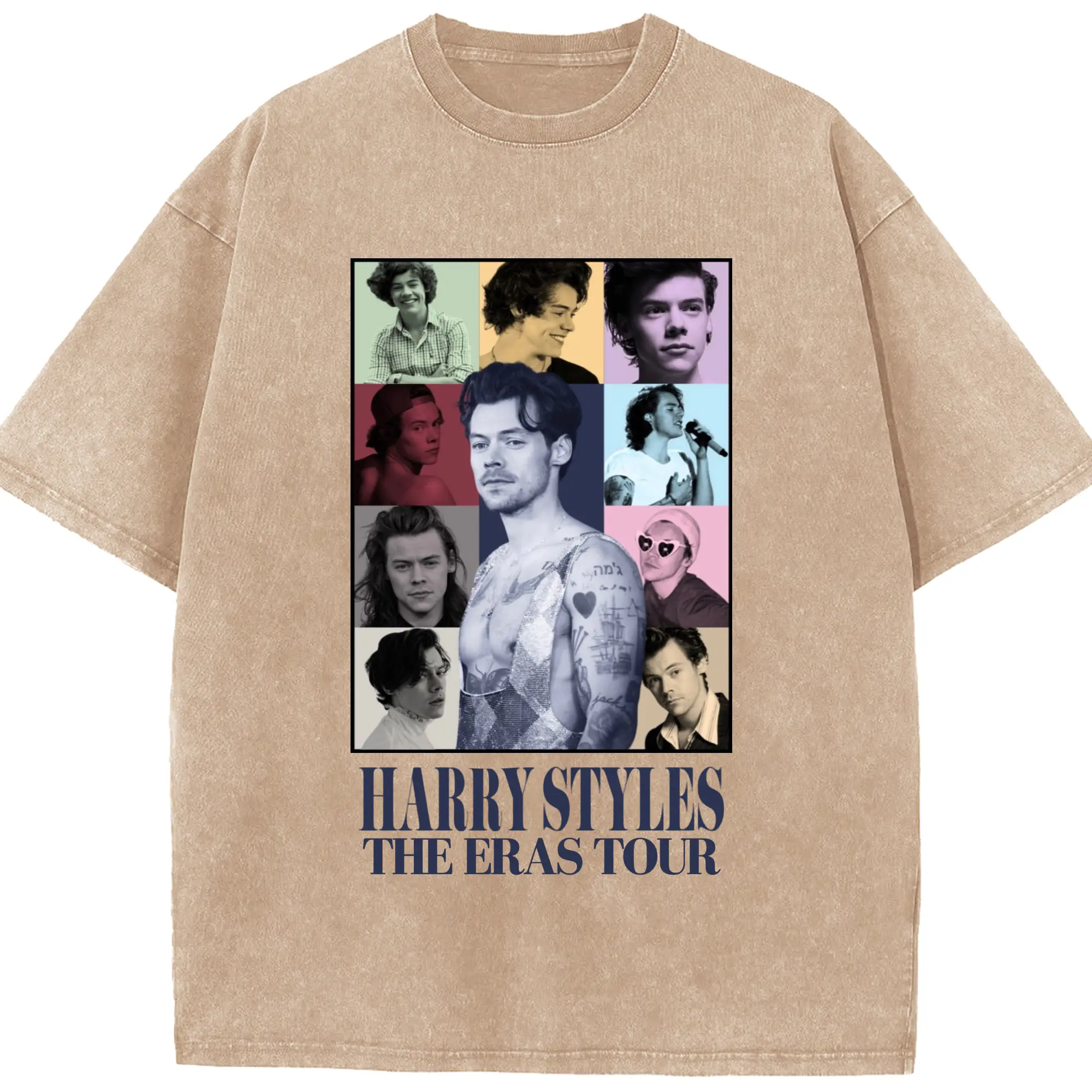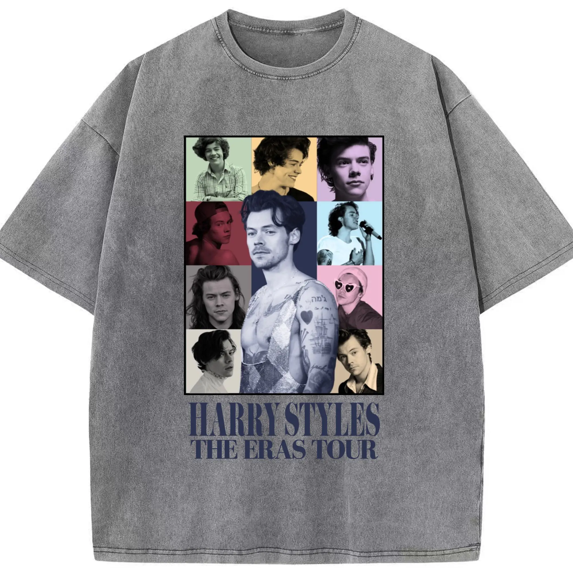 Harry Styles The Eras Tour Collage DIY - Washed Vintage Look 230g Cotton Oversized T-Shirt With Front Heat Transfer Print – Soft, Lightweight, Stylish Fit – Comfortable Casual Wear For Sports & Everyday Use