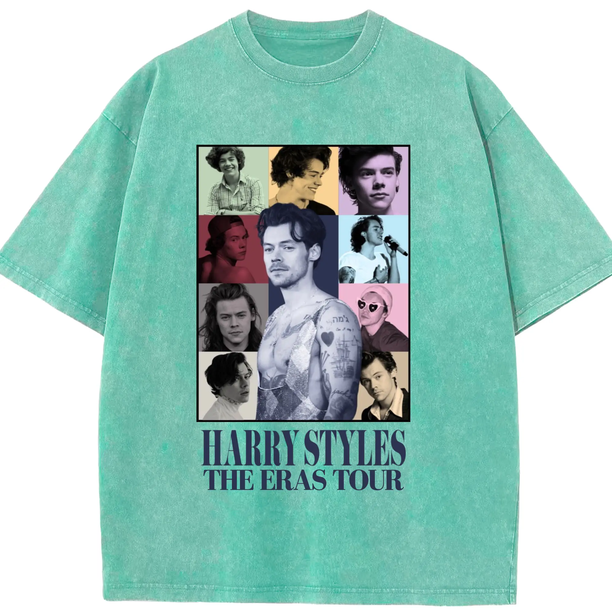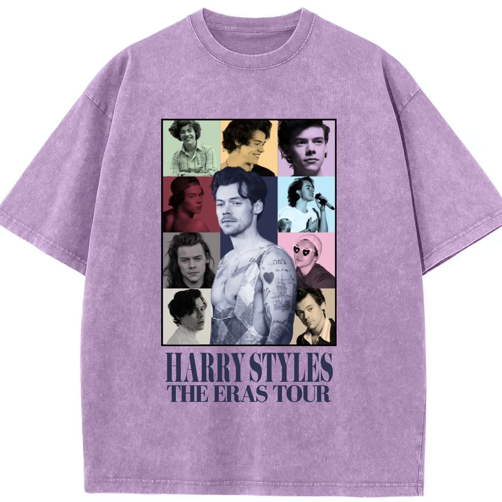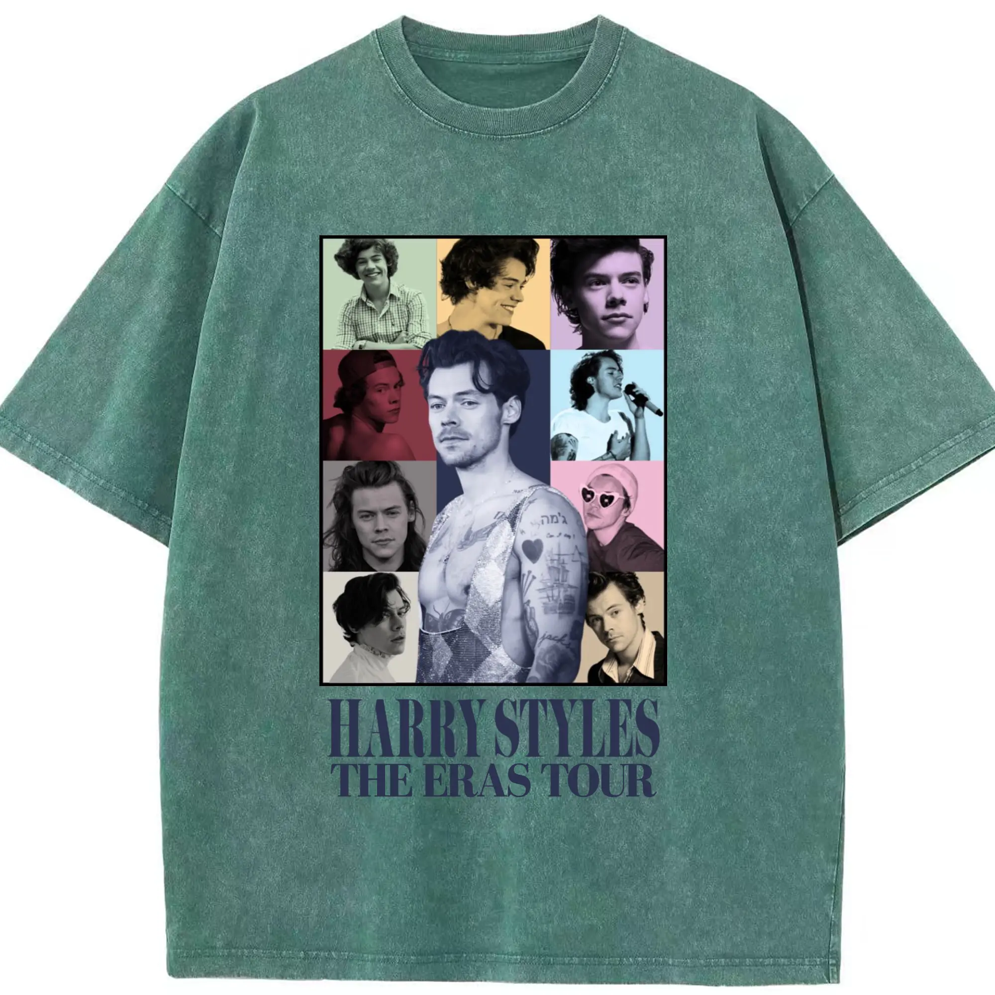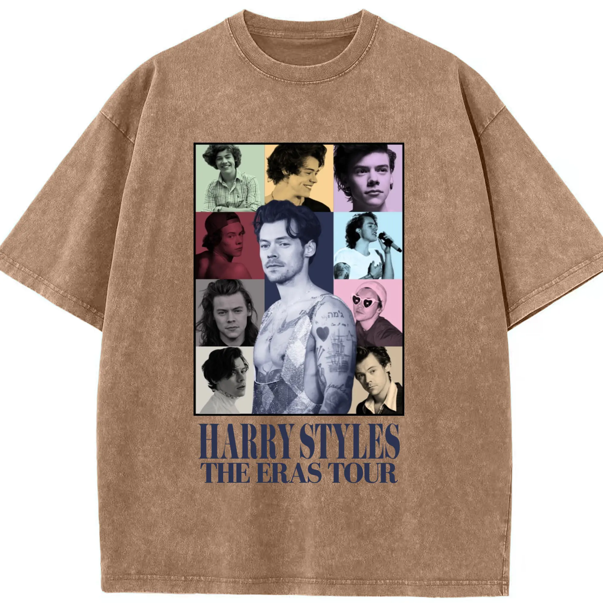 Harry Styles The Eras Tour Collage DIY - Washed Vintage Look 230g Cotton Oversized T-Shirt With Front Heat Transfer Print – Soft, Lightweight, Stylish Fit – Comfortable Casual Wear For Sports & Everyday Use