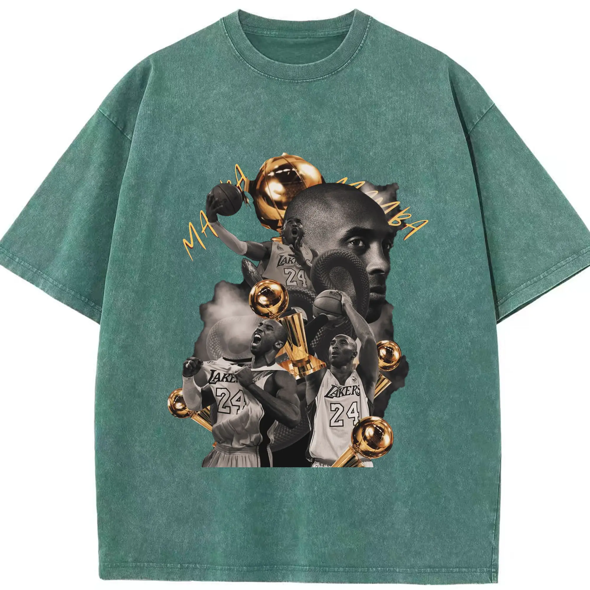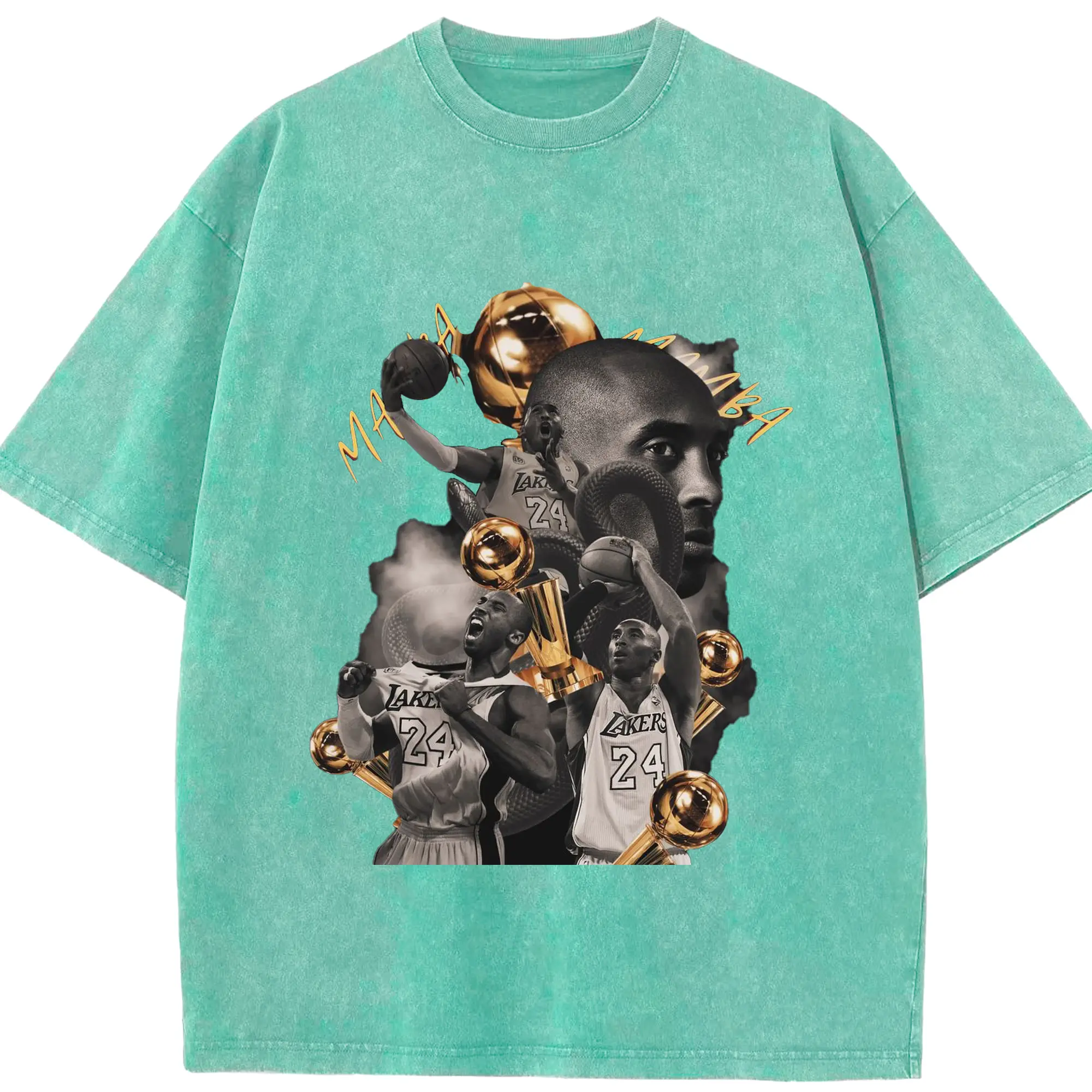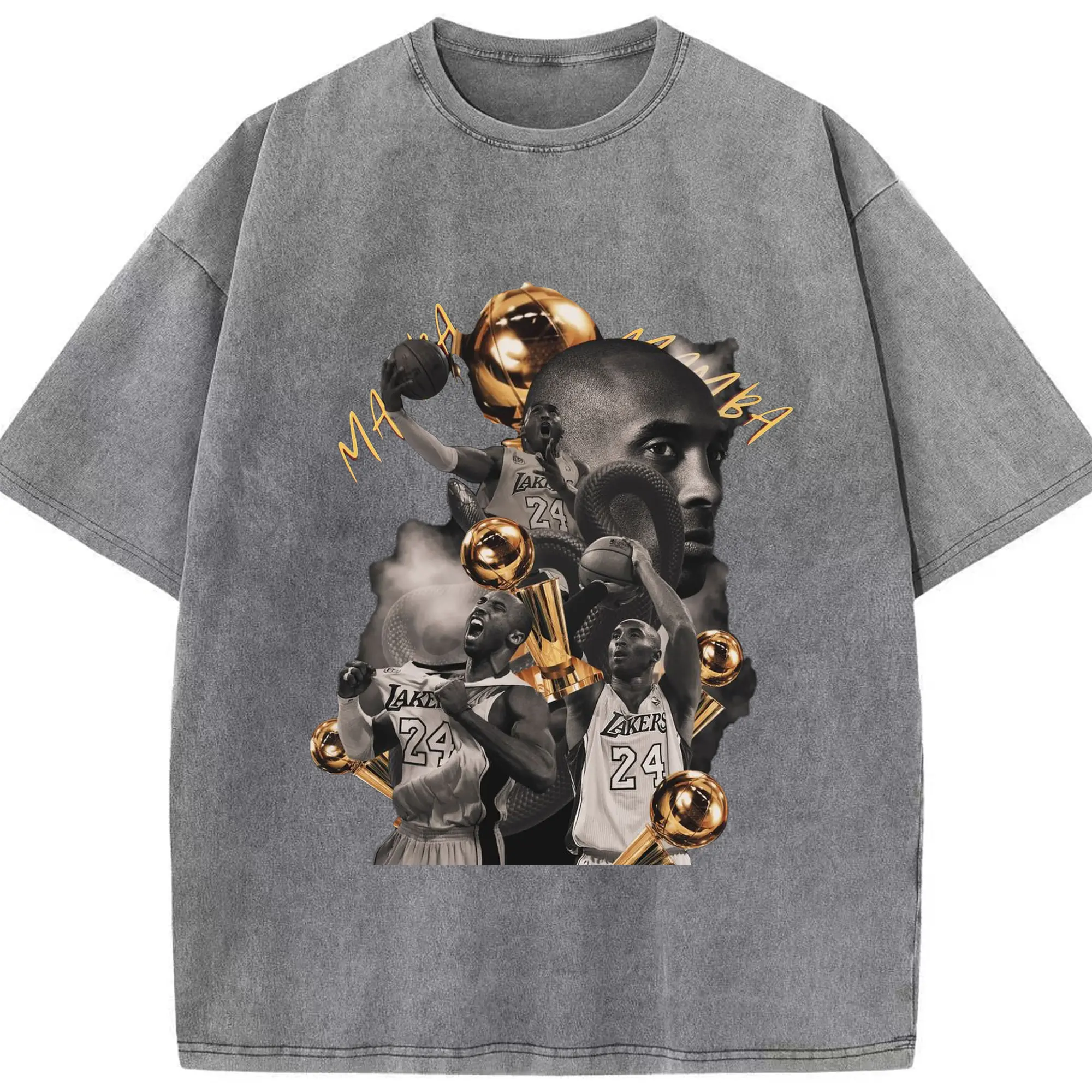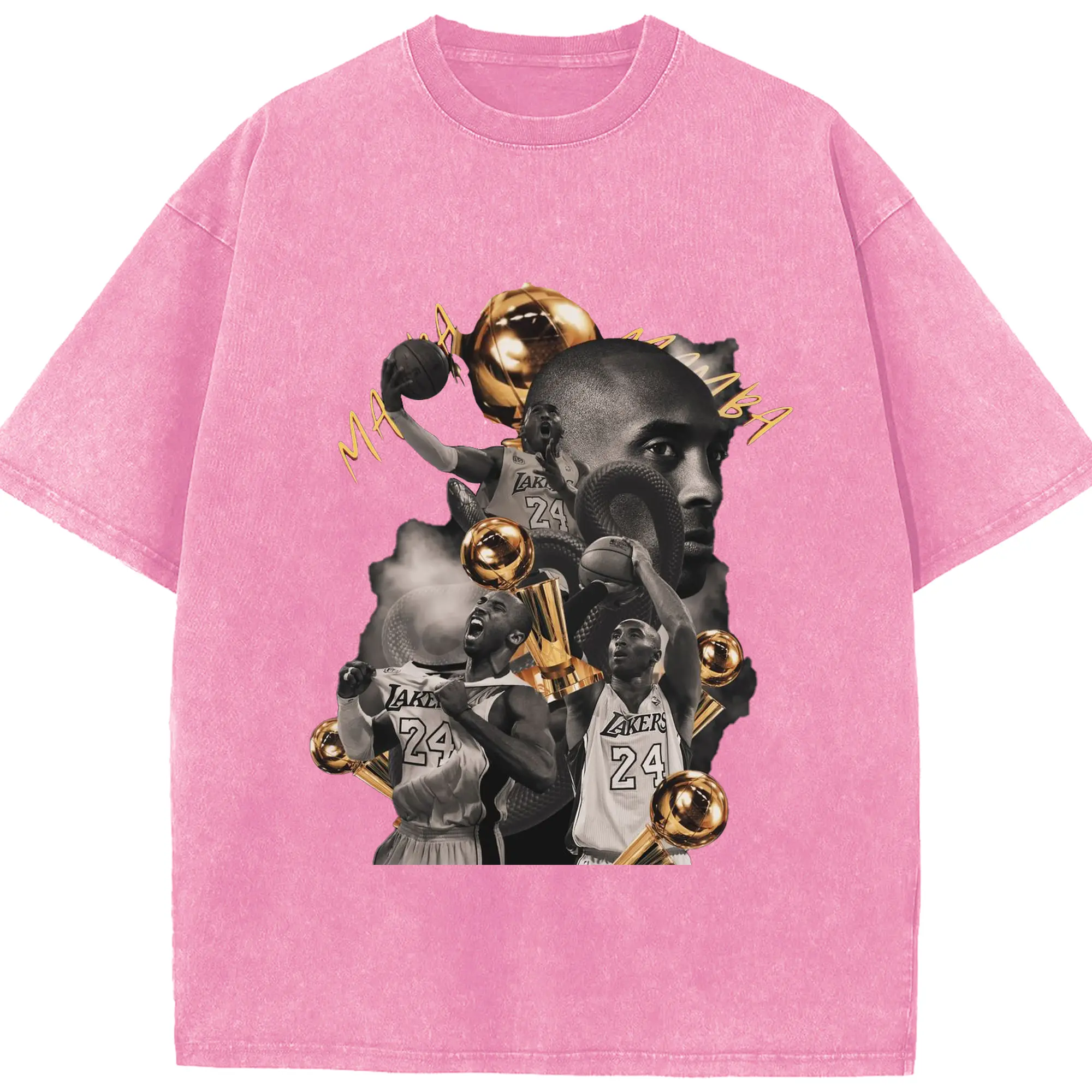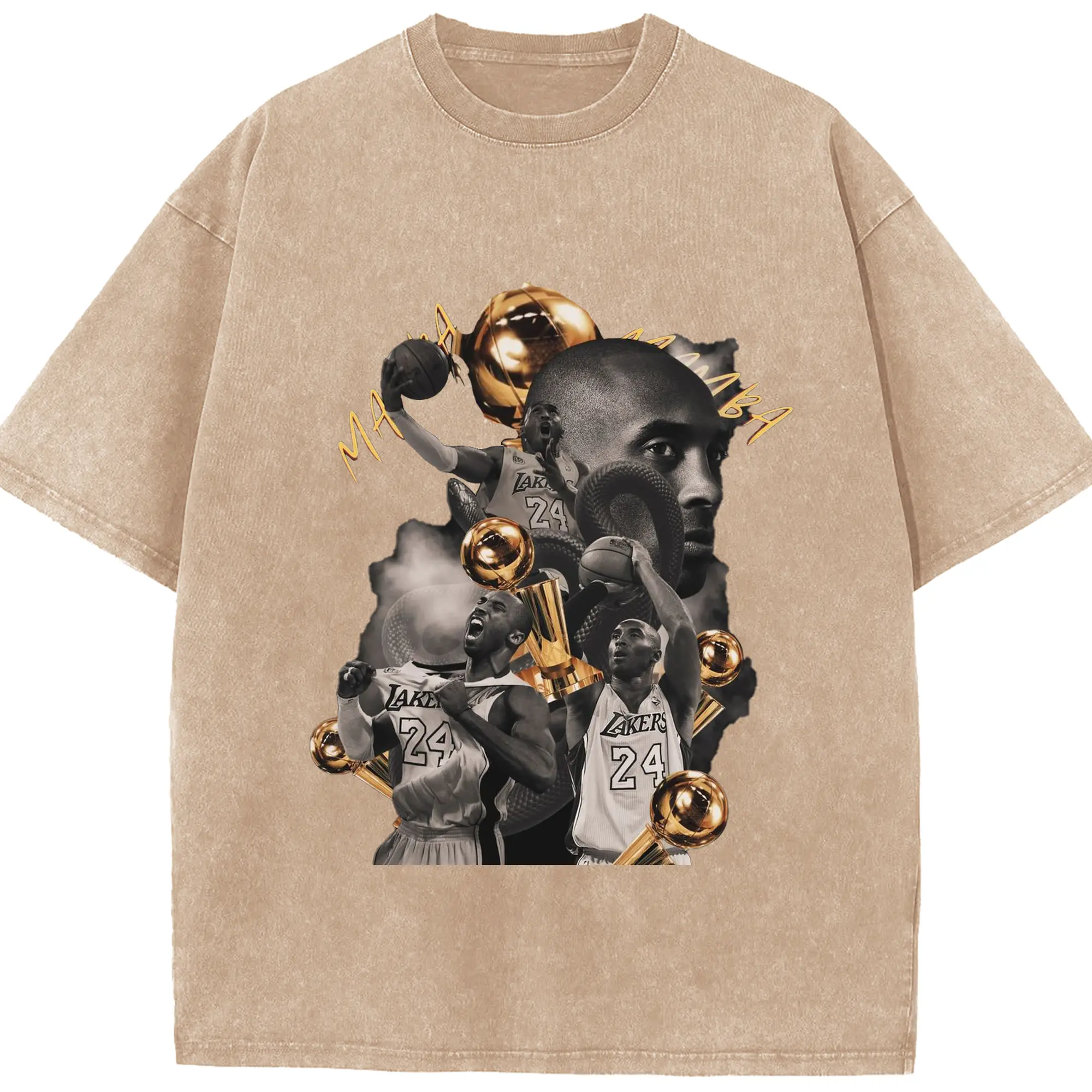 Honor Kobe Bryant with this "Mamba" Championship Shirt - Washed Vintage Look 230g Cotton Oversized T-Shirt With Front Heat Transfer Print – Soft, Lightweight, Stylish Fit – Comfortable Casual Wear For Sports & Everyday Use
