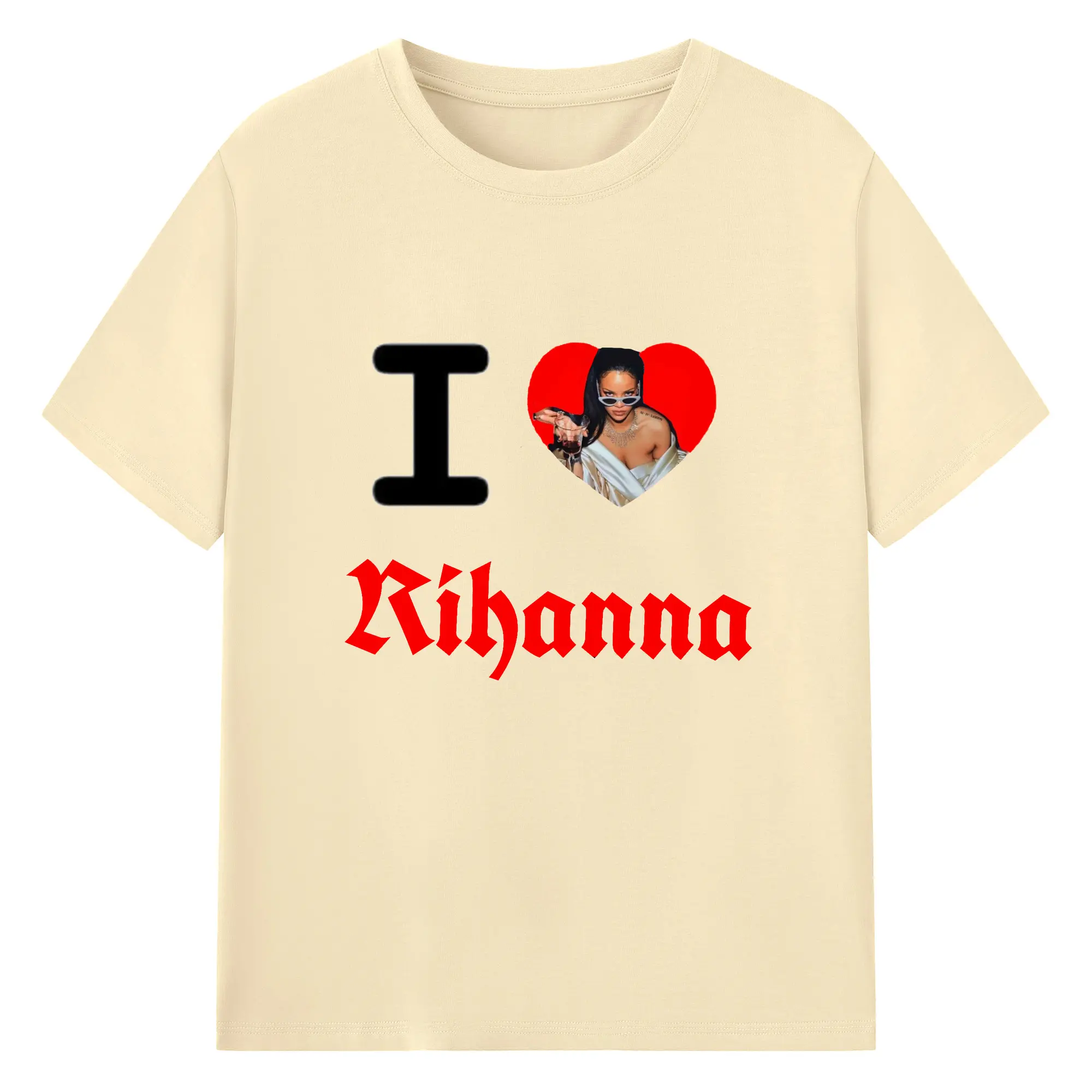 I Love Rihanna Heart Gothic DIY - 180g Cotton T-Shirt With Front Heat Transfer Print – Soft, Lightweight, Fitted Design – Comfortable Casual Wear For Sports & Everyday Use