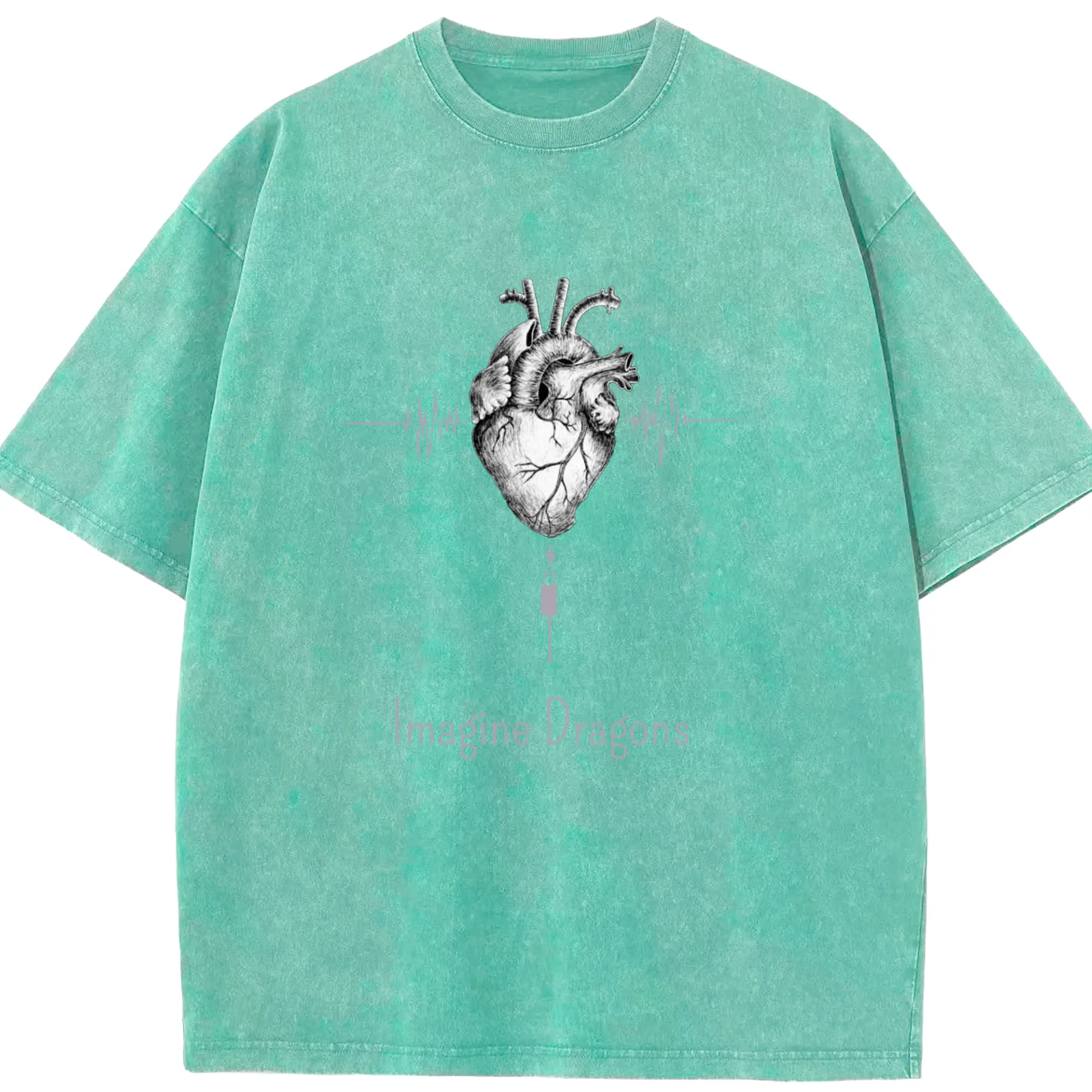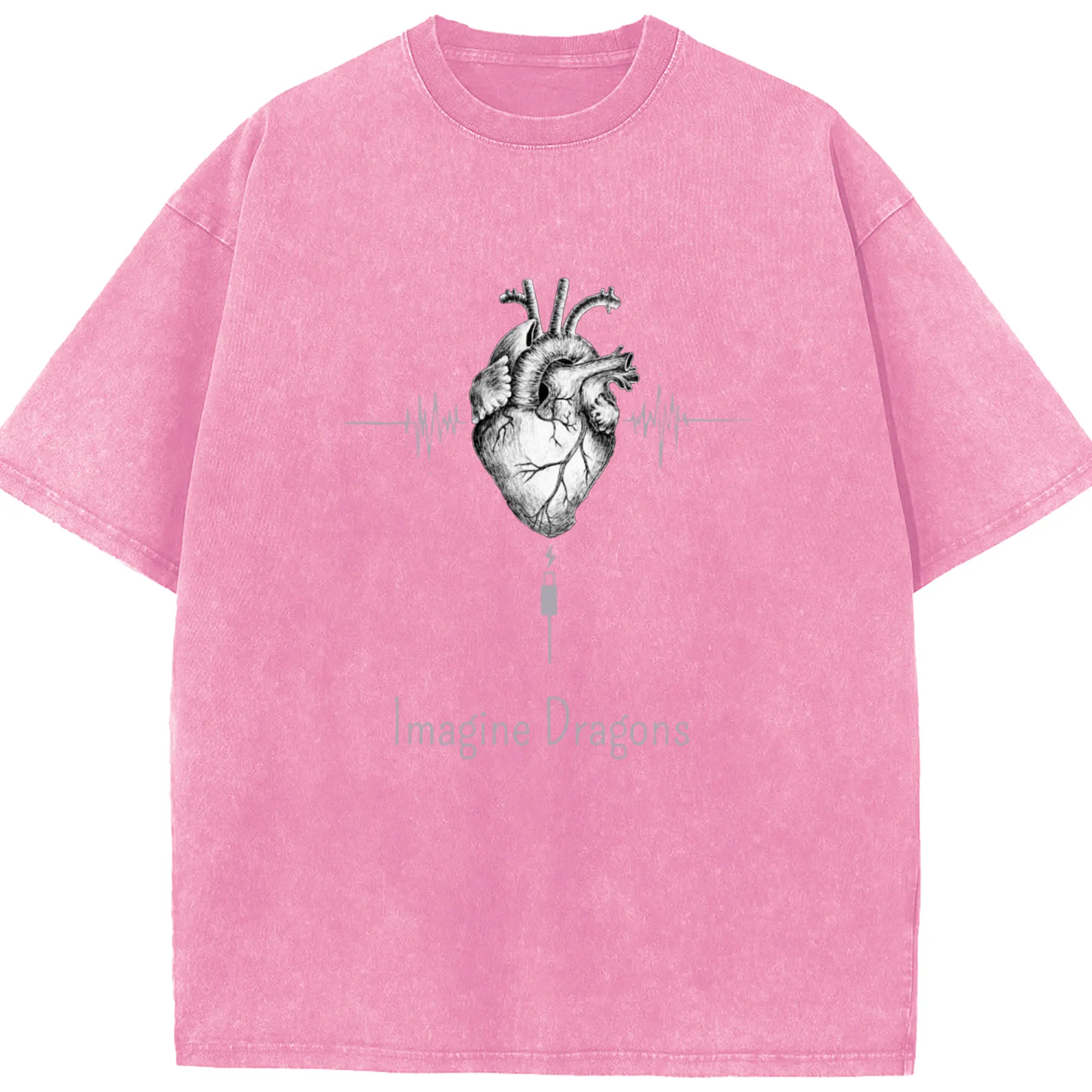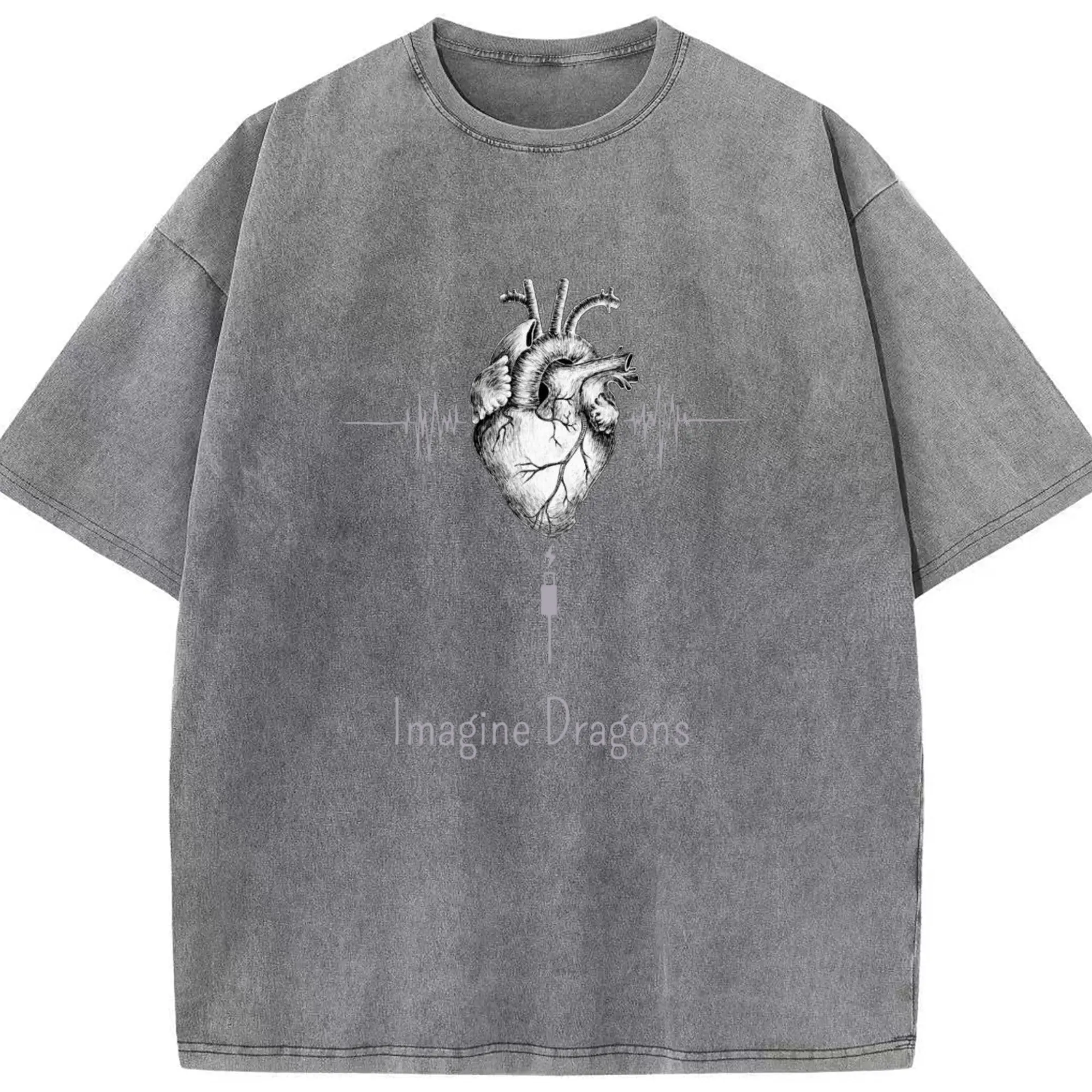 Imagine Dragons Anatomical Heart Music Pulse DIY - Washed Vintage Look 230g Cotton Oversized T-Shirt With Front Heat Transfer Print – Soft, Lightweight, Stylish Fit – Comfortable Casual Wear For Sports & Everyday Use
