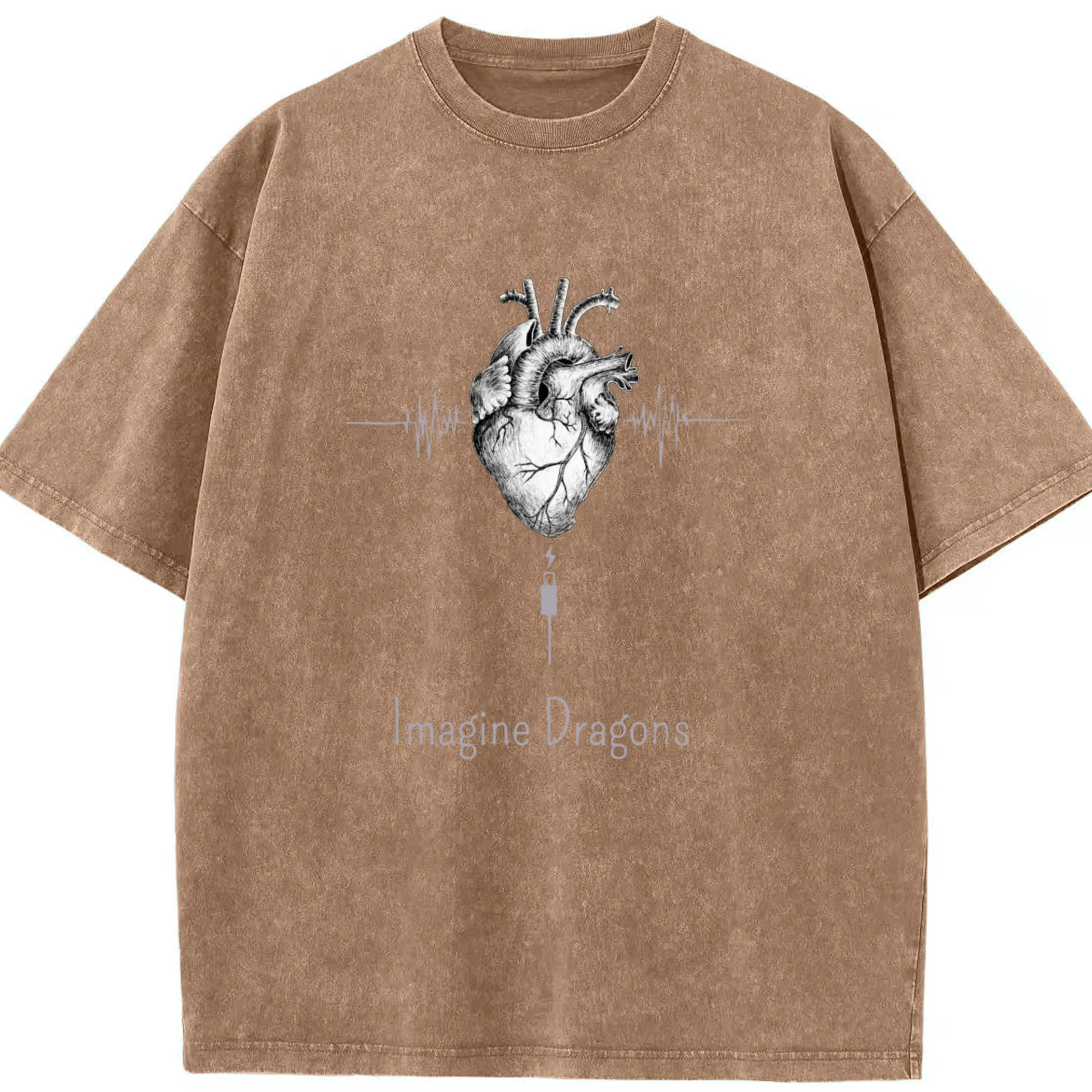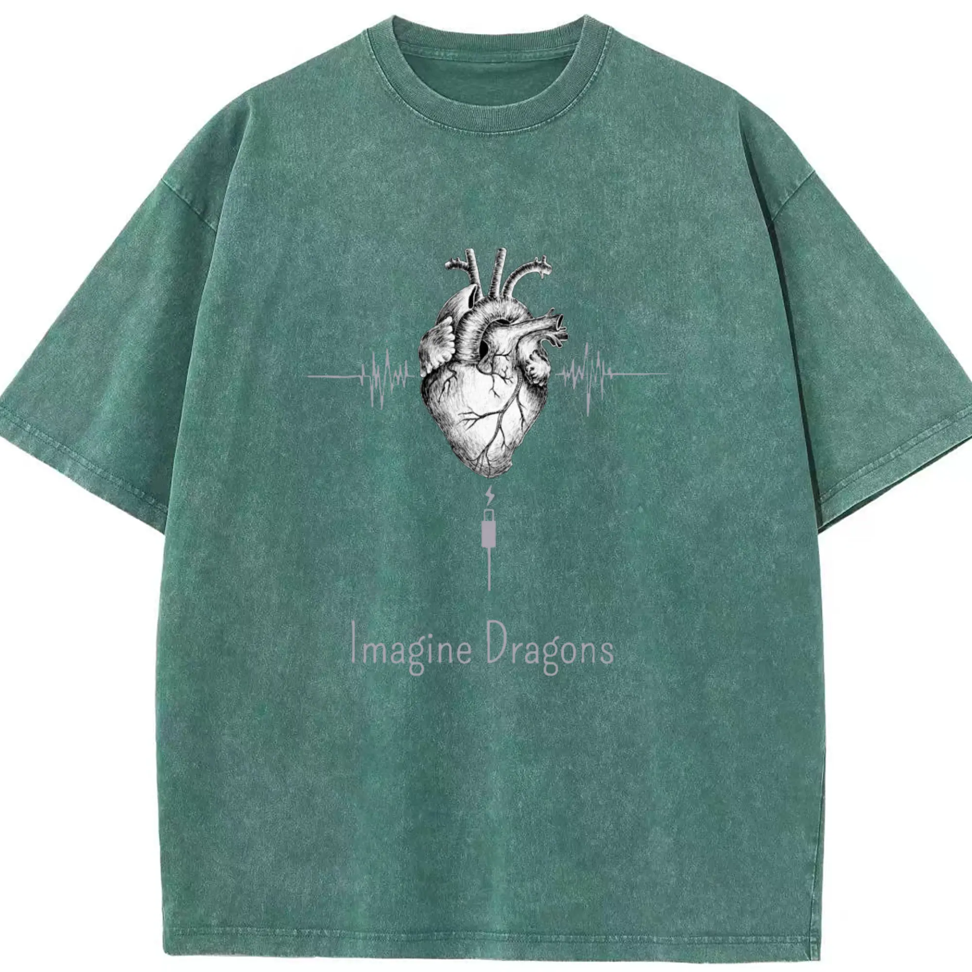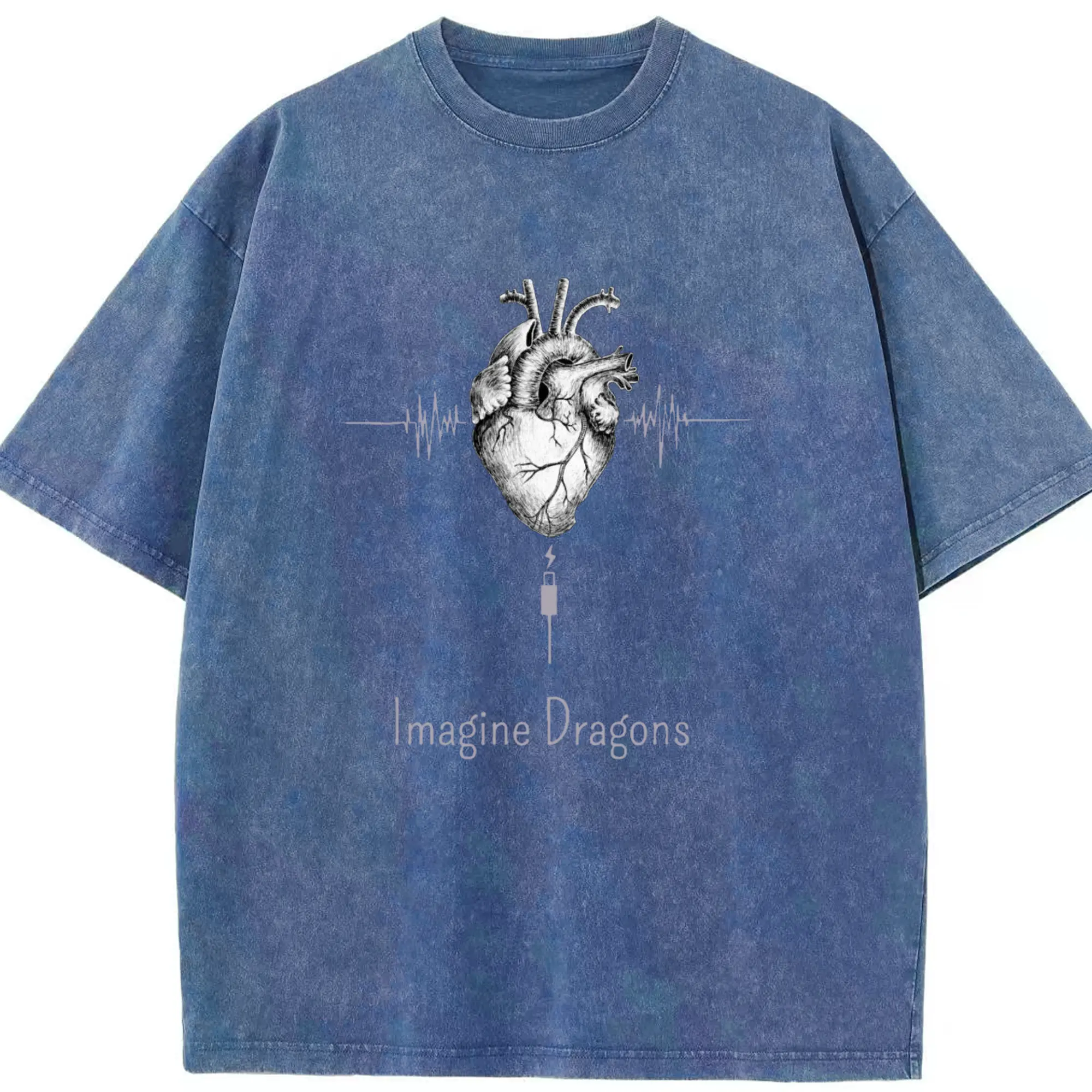 Imagine Dragons Anatomical Heart Music Pulse DIY - Washed Vintage Look 230g Cotton Oversized T-Shirt With Front Heat Transfer Print – Soft, Lightweight, Stylish Fit – Comfortable Casual Wear For Sports & Everyday Use