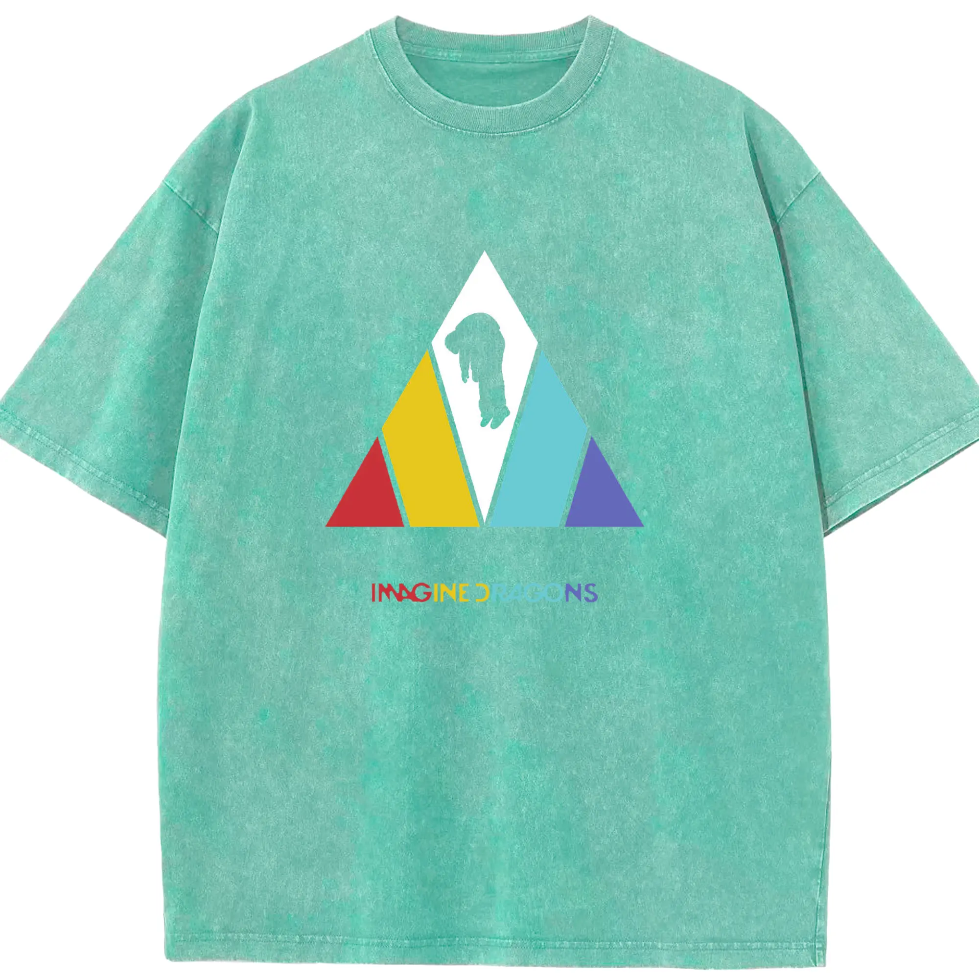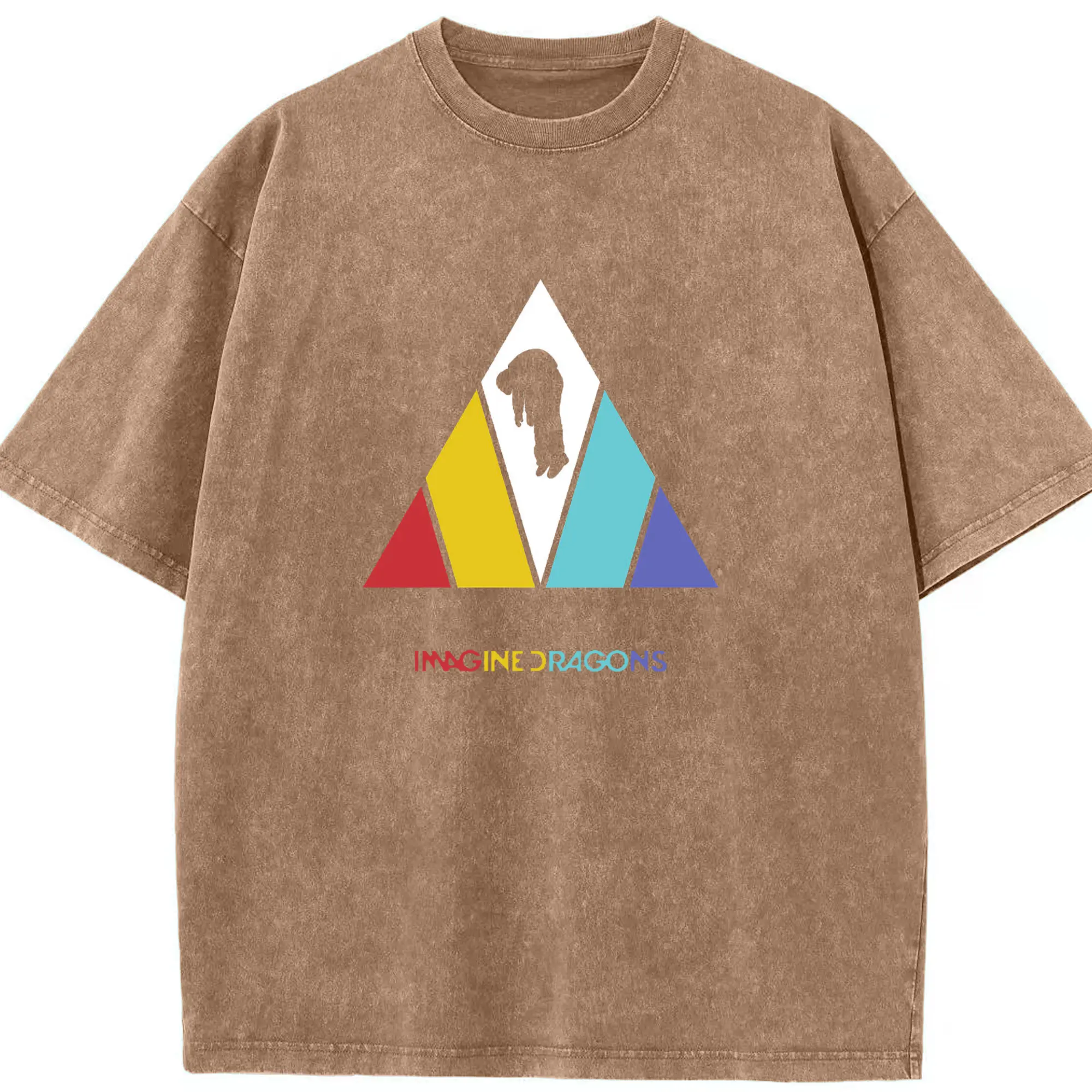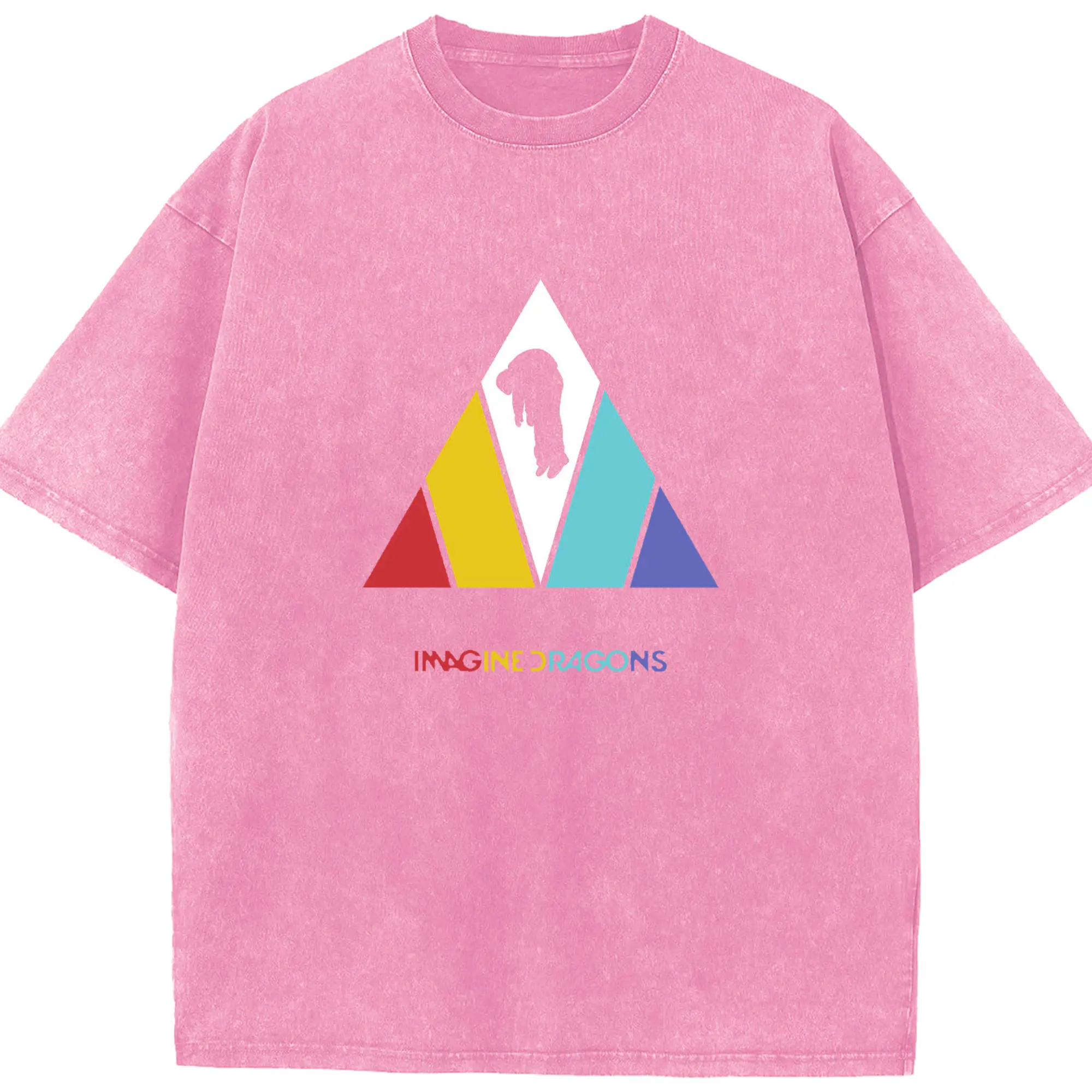 Imagine Dragons Colorful Geometric DIY - Washed Vintage Look 230g Cotton Oversized T-Shirt With Front Heat Transfer Print – Soft, Lightweight, Stylish Fit – Comfortable Casual Wear For Sports & Everyday Use