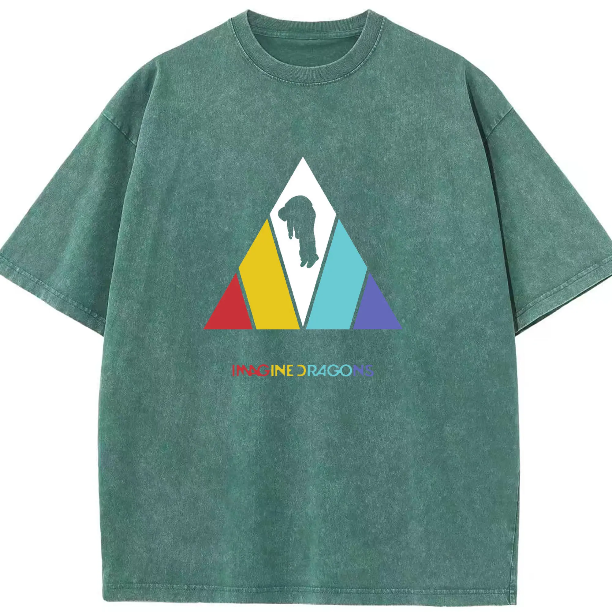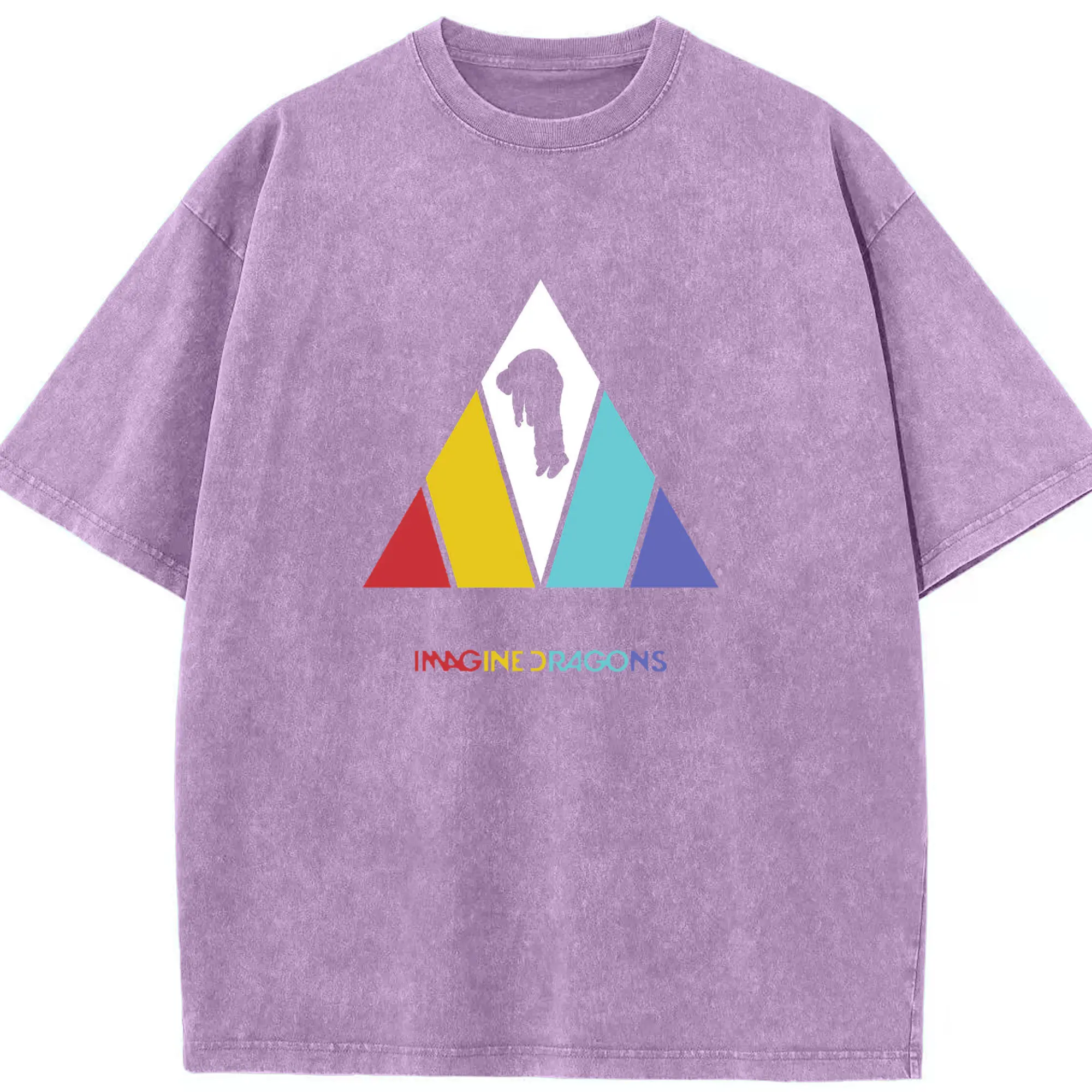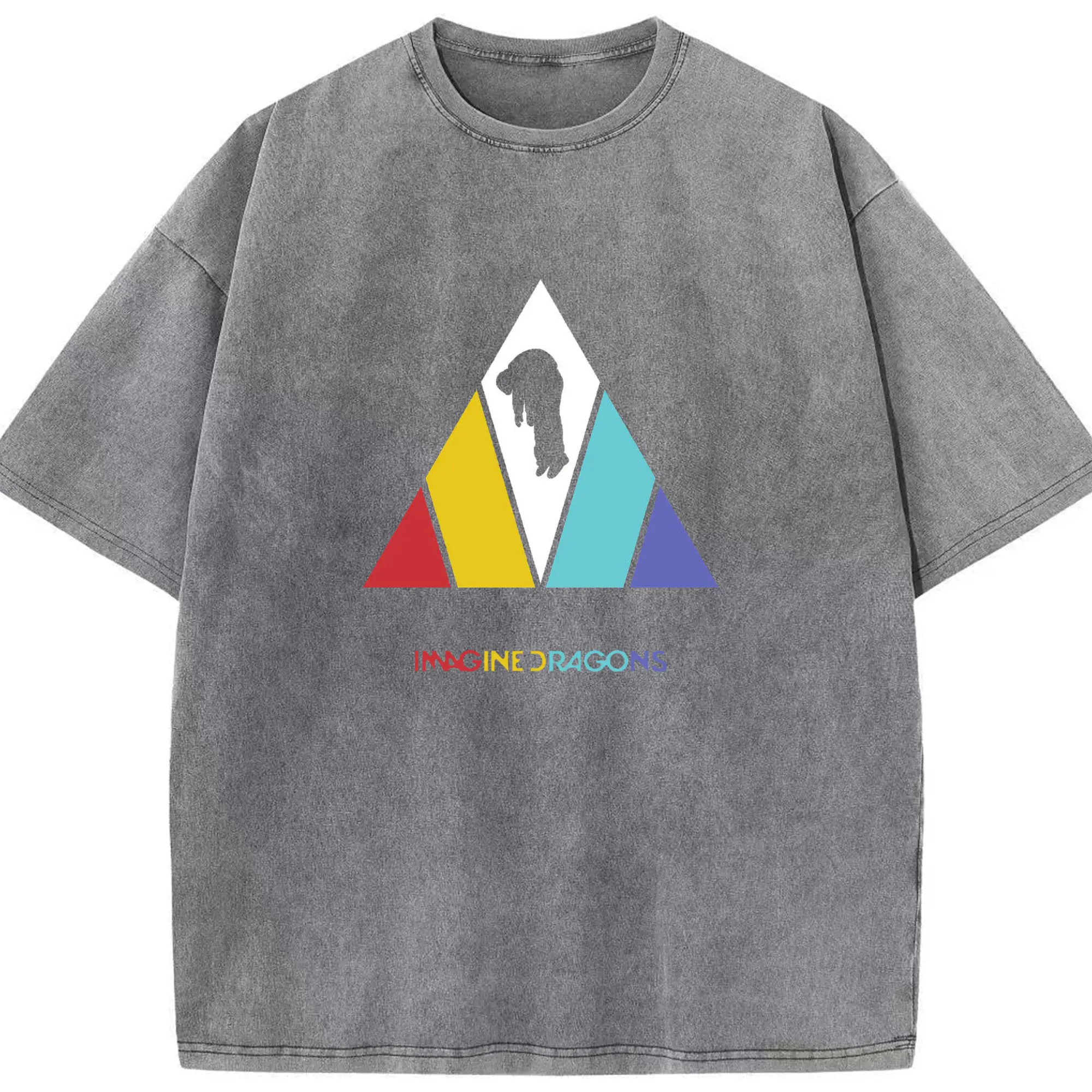 Imagine Dragons Colorful Geometric DIY - Washed Vintage Look 230g Cotton Oversized T-Shirt With Front Heat Transfer Print – Soft, Lightweight, Stylish Fit – Comfortable Casual Wear For Sports & Everyday Use