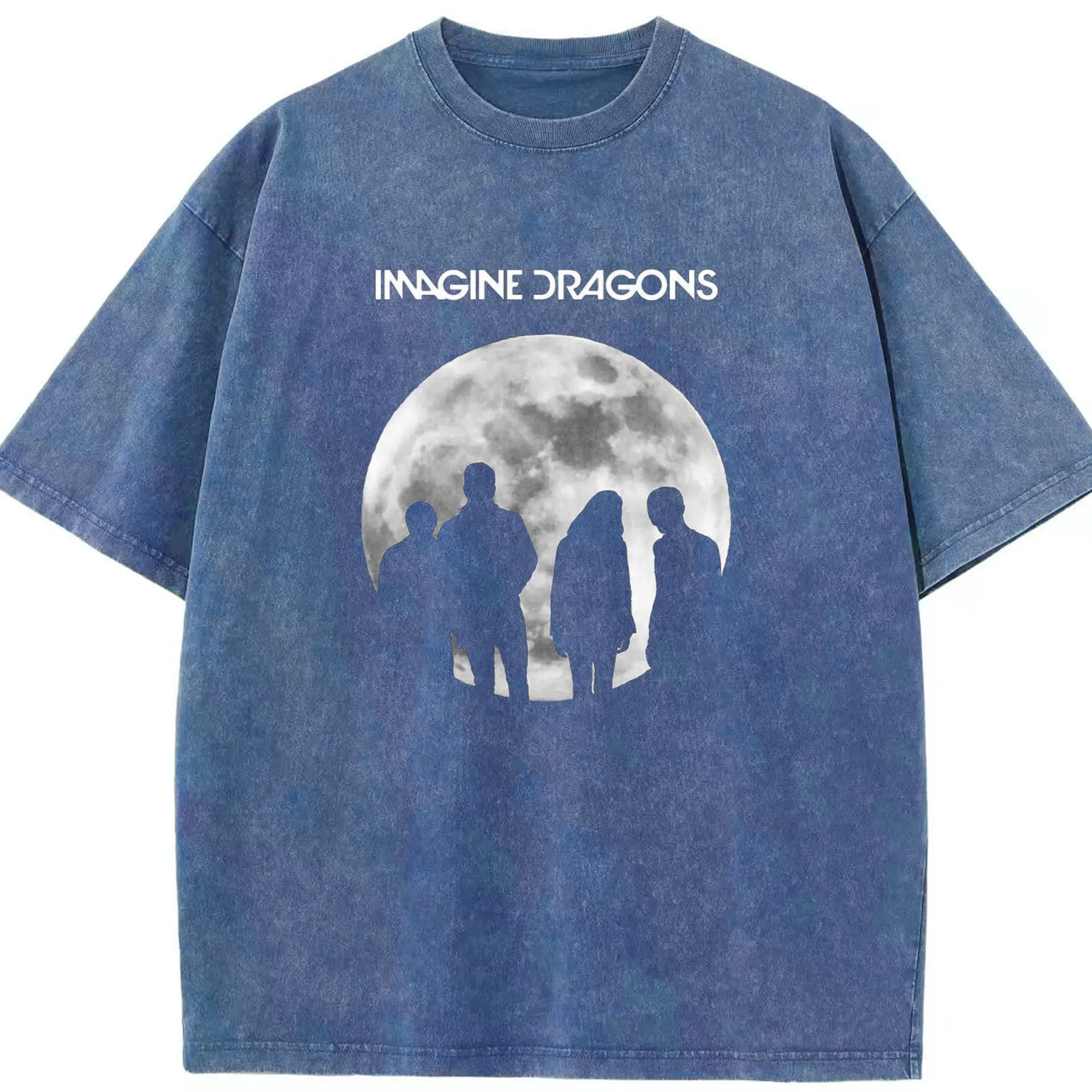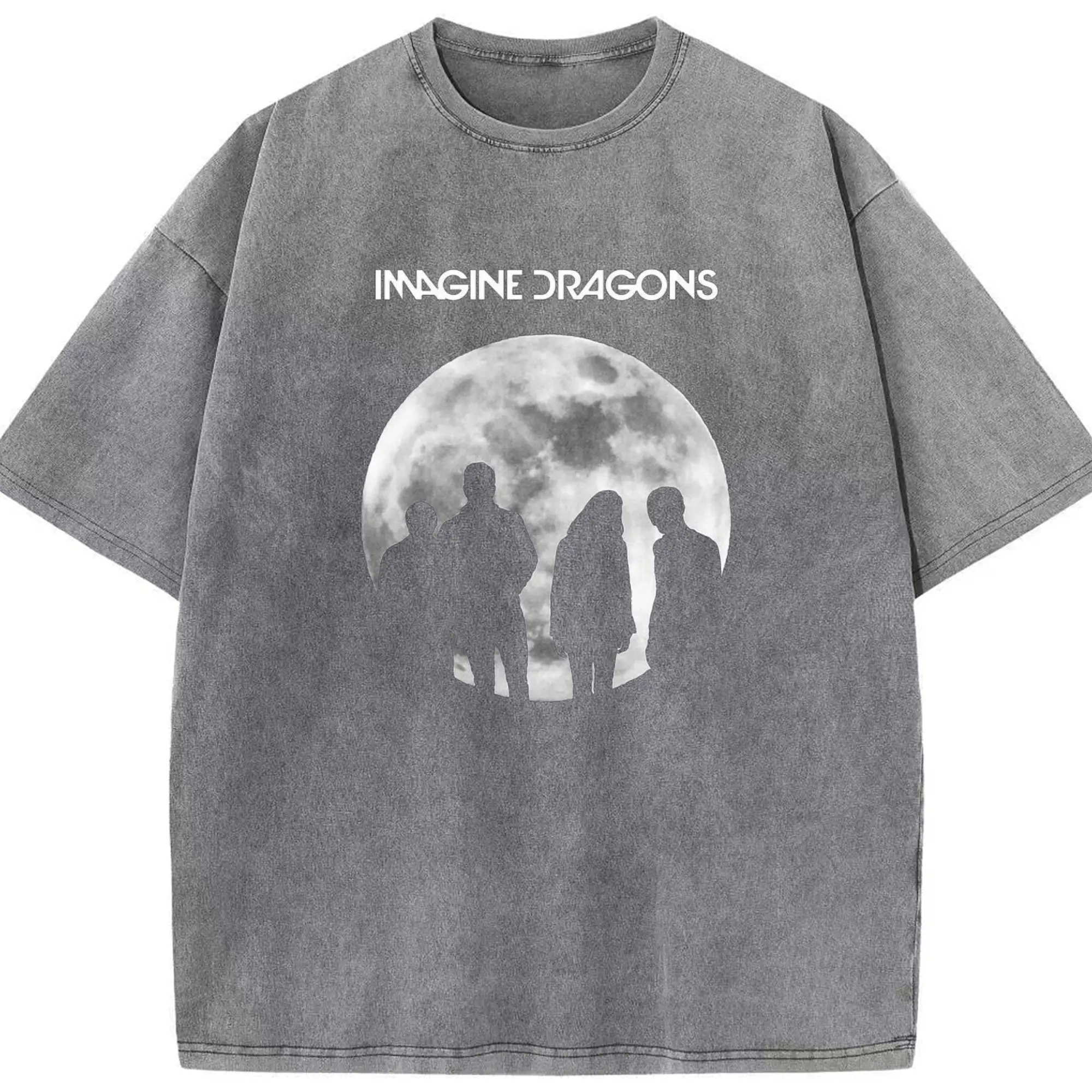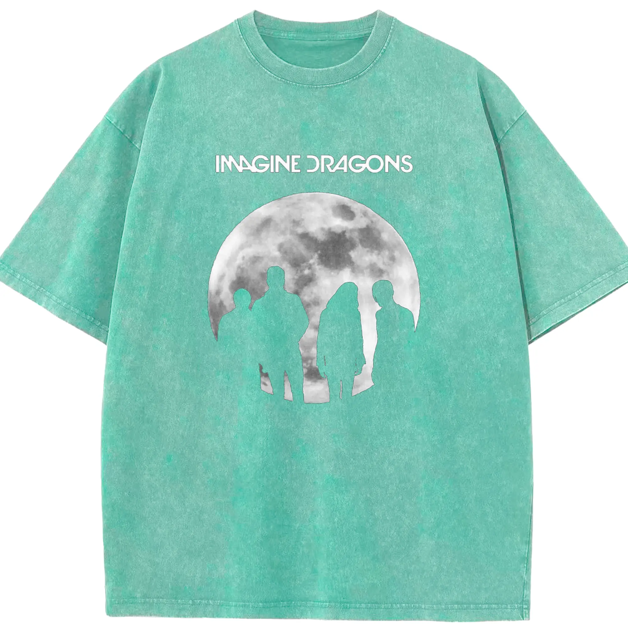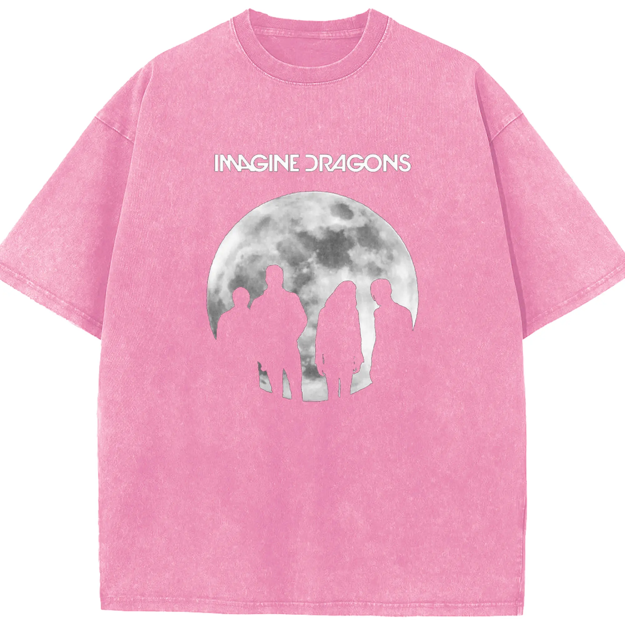 Imagine Dragons Moon Silhouette DIY - Washed Vintage Look 230g Cotton Oversized T-Shirt With Front Heat Transfer Print – Soft, Lightweight, Stylish Fit – Comfortable Casual Wear For Sports & Everyday Use