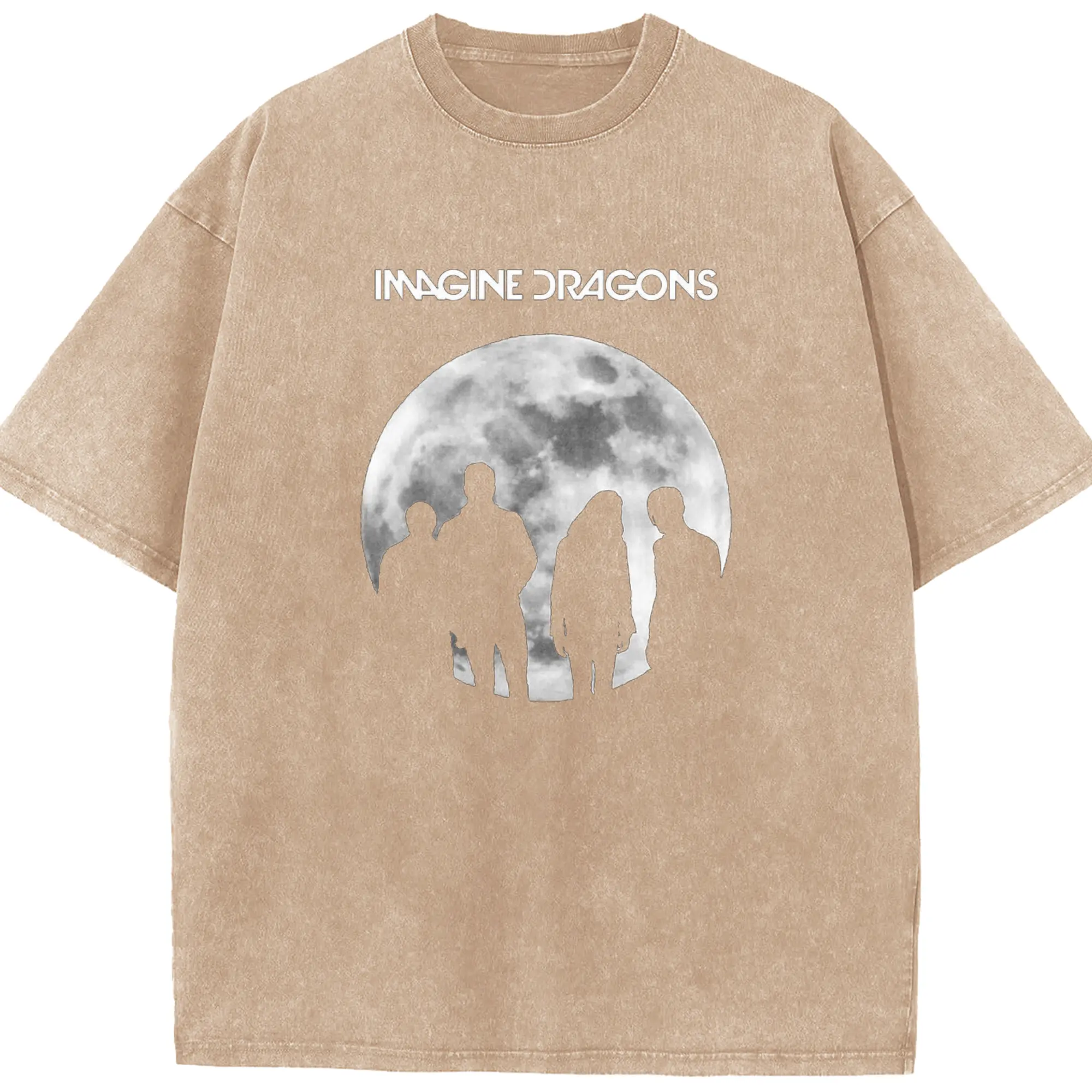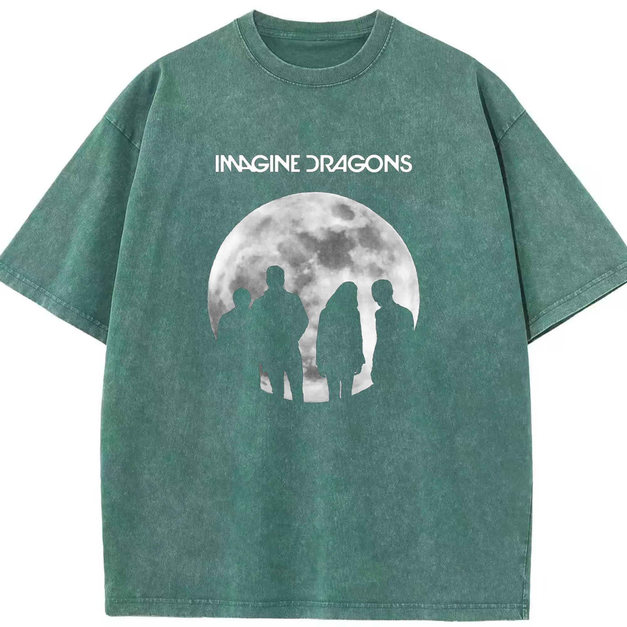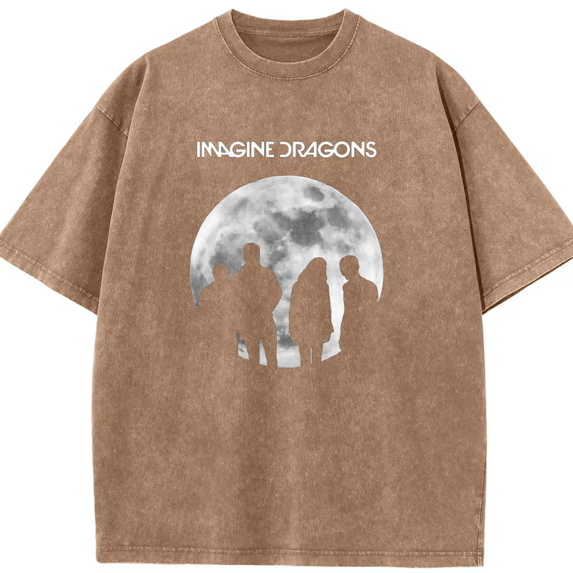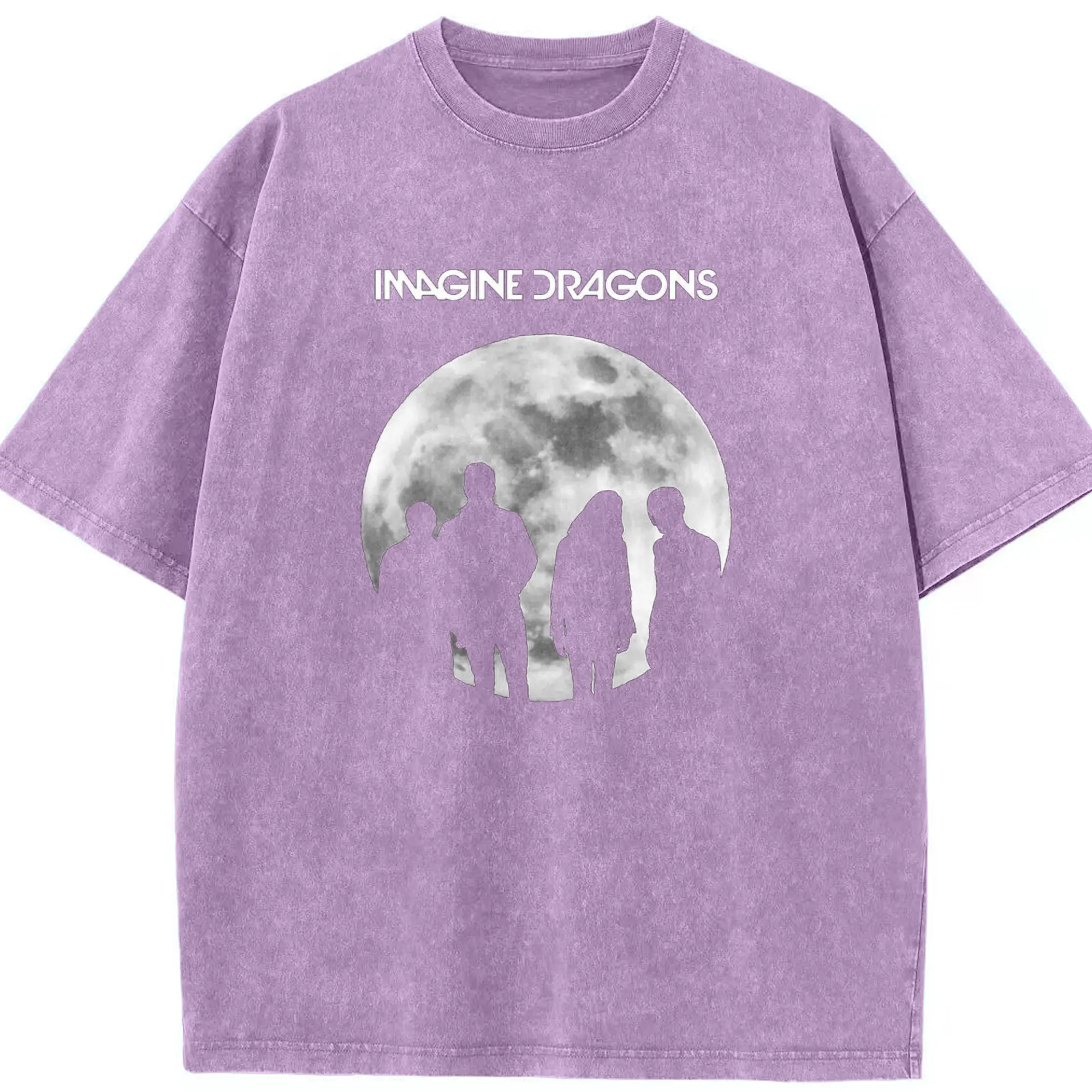 Imagine Dragons Moon Silhouette DIY - Washed Vintage Look 230g Cotton Oversized T-Shirt With Front Heat Transfer Print – Soft, Lightweight, Stylish Fit – Comfortable Casual Wear For Sports & Everyday Use