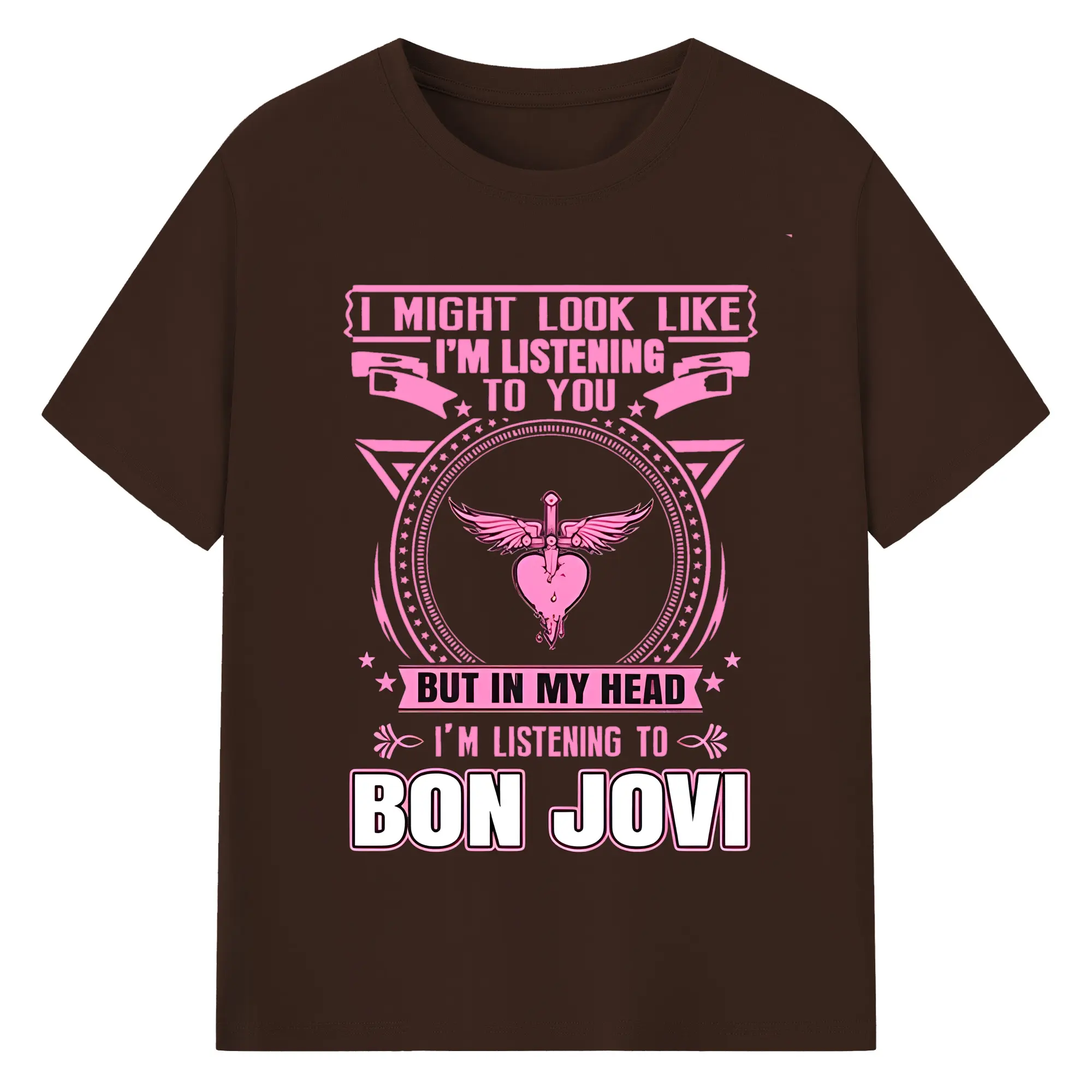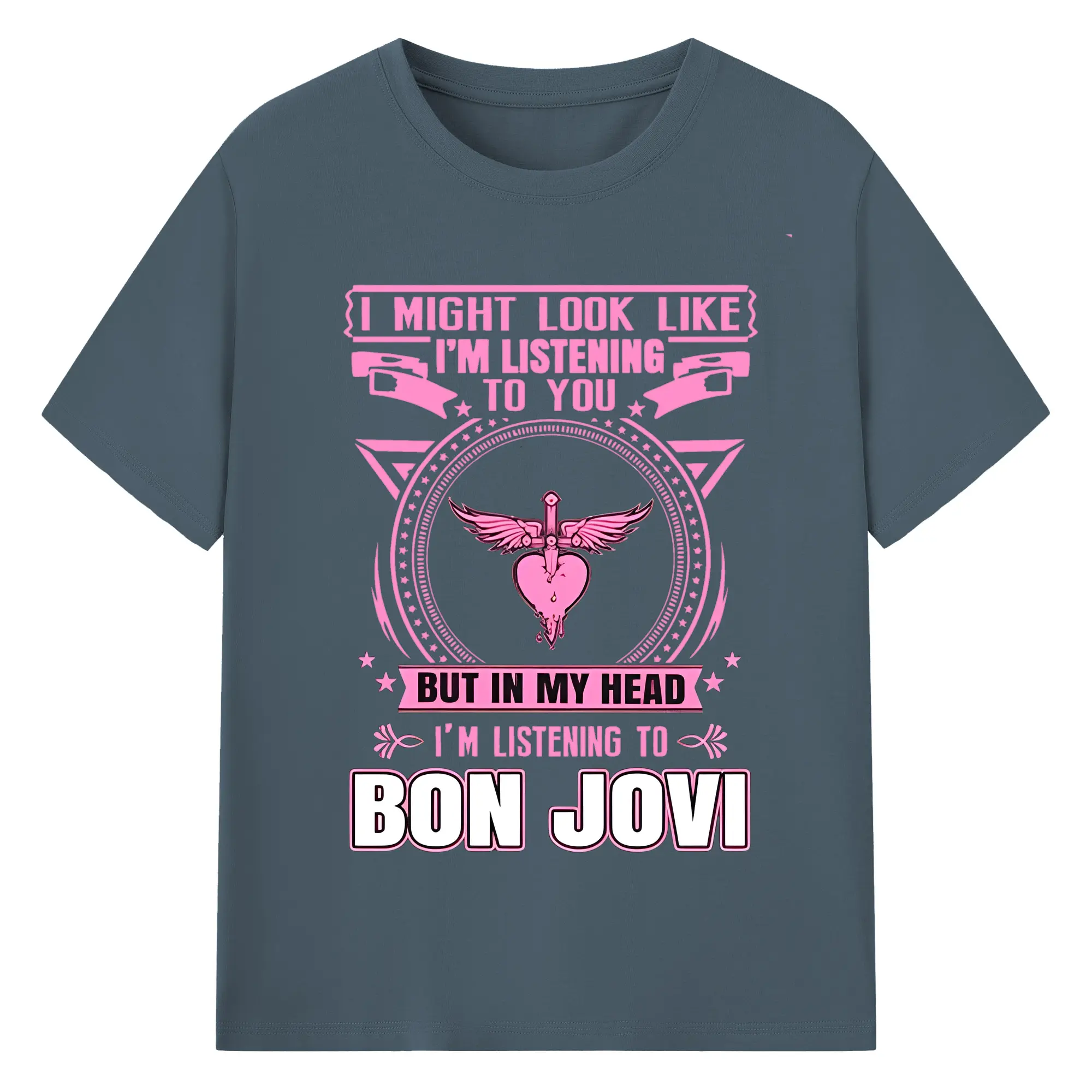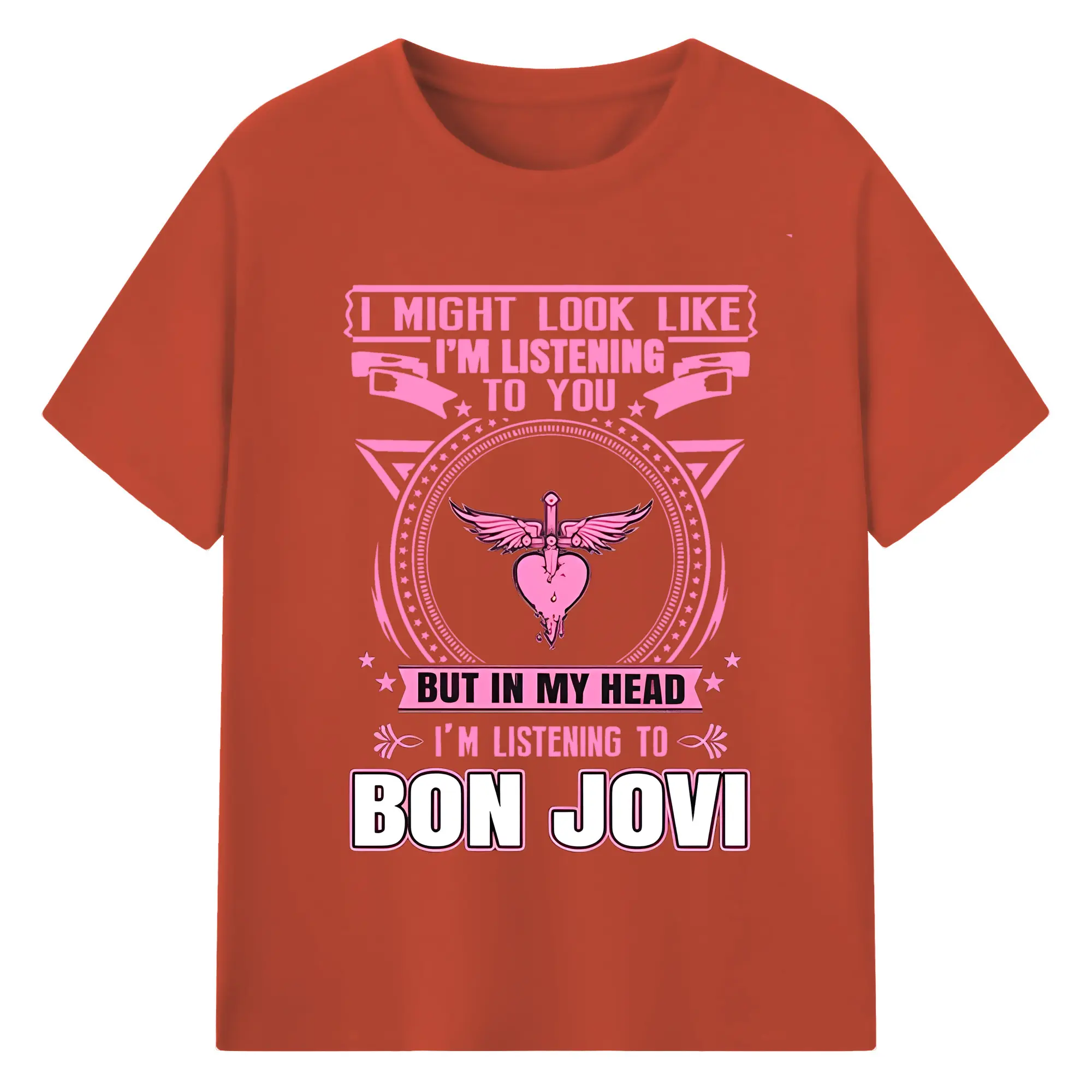 “In My Head I’m Listening To Bon Jovi” Bon Jovi Fan Shirt - 180g Cotton T-Shirt With Front Heat Transfer Print – Soft, Lightweight, Fitted Design – Comfortable Casual Wear For Sports & Everyday Use