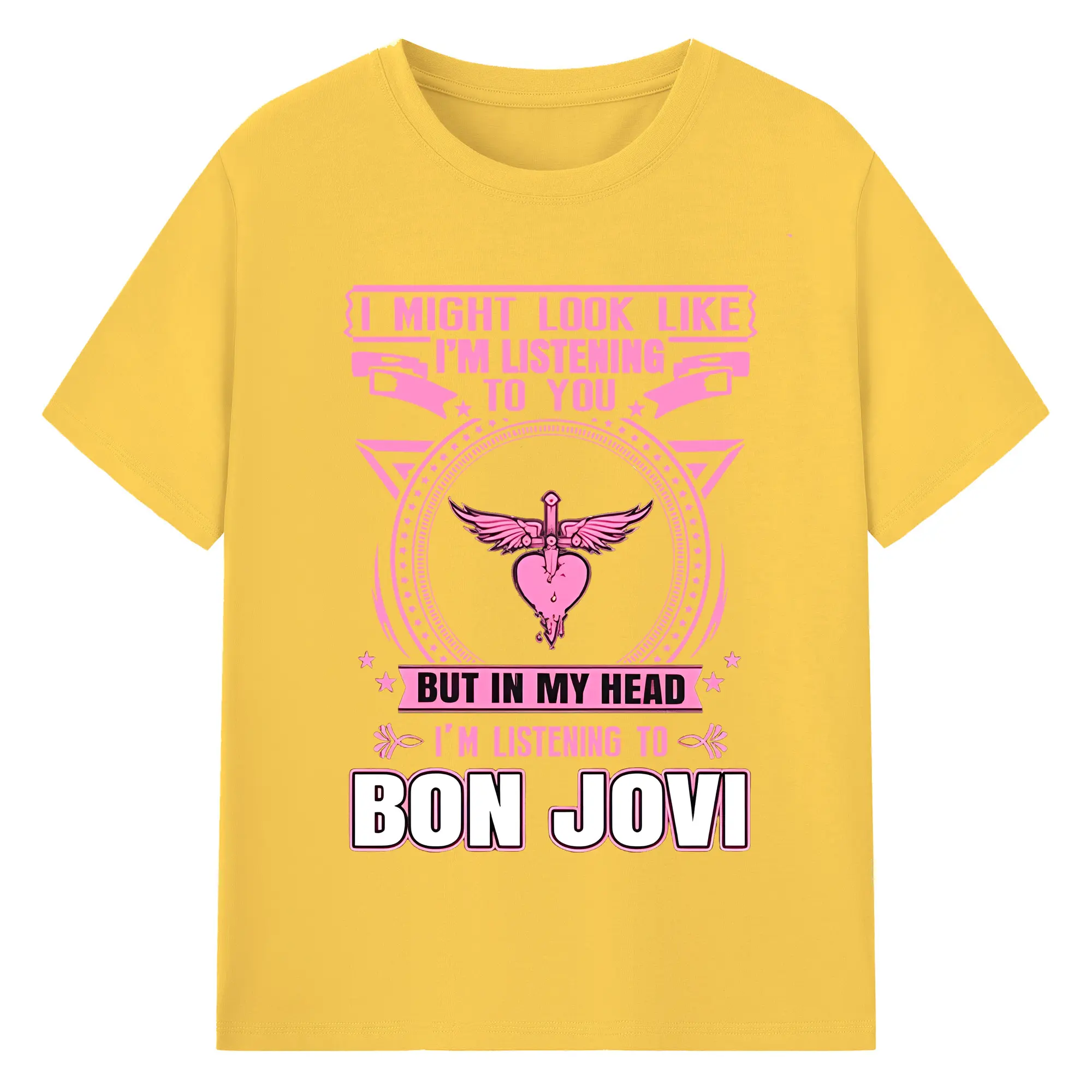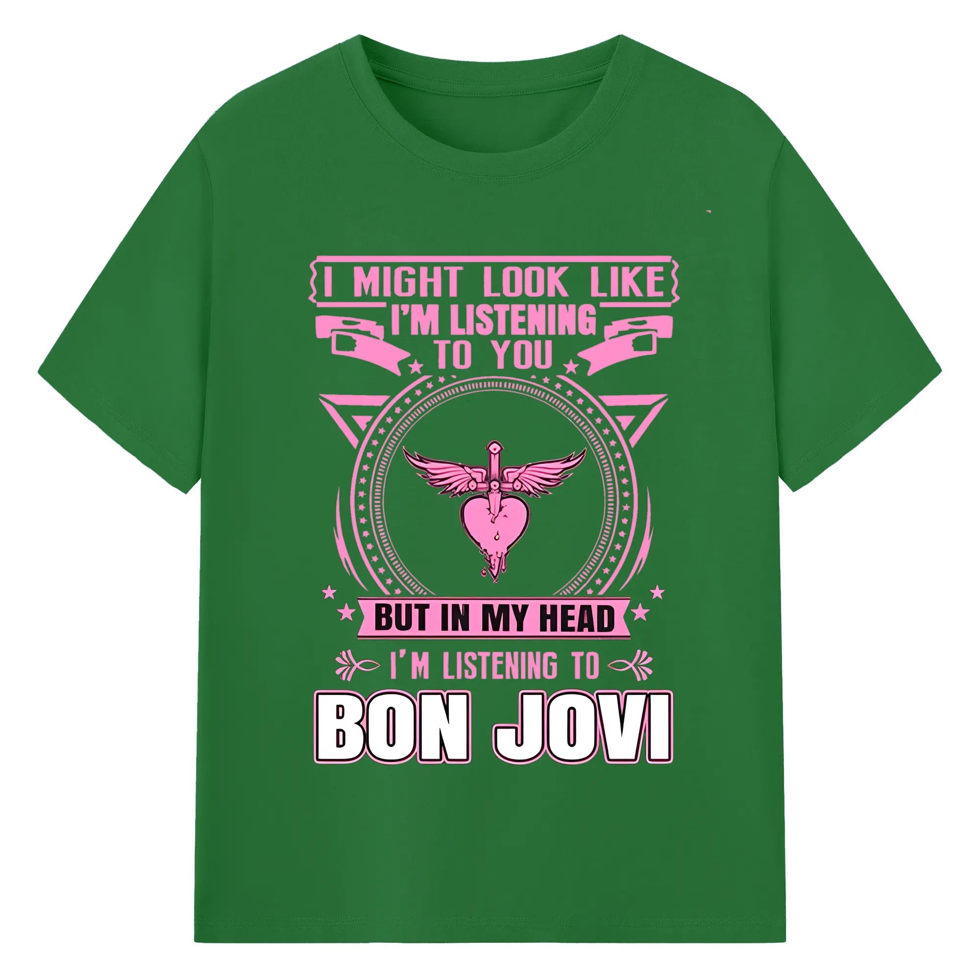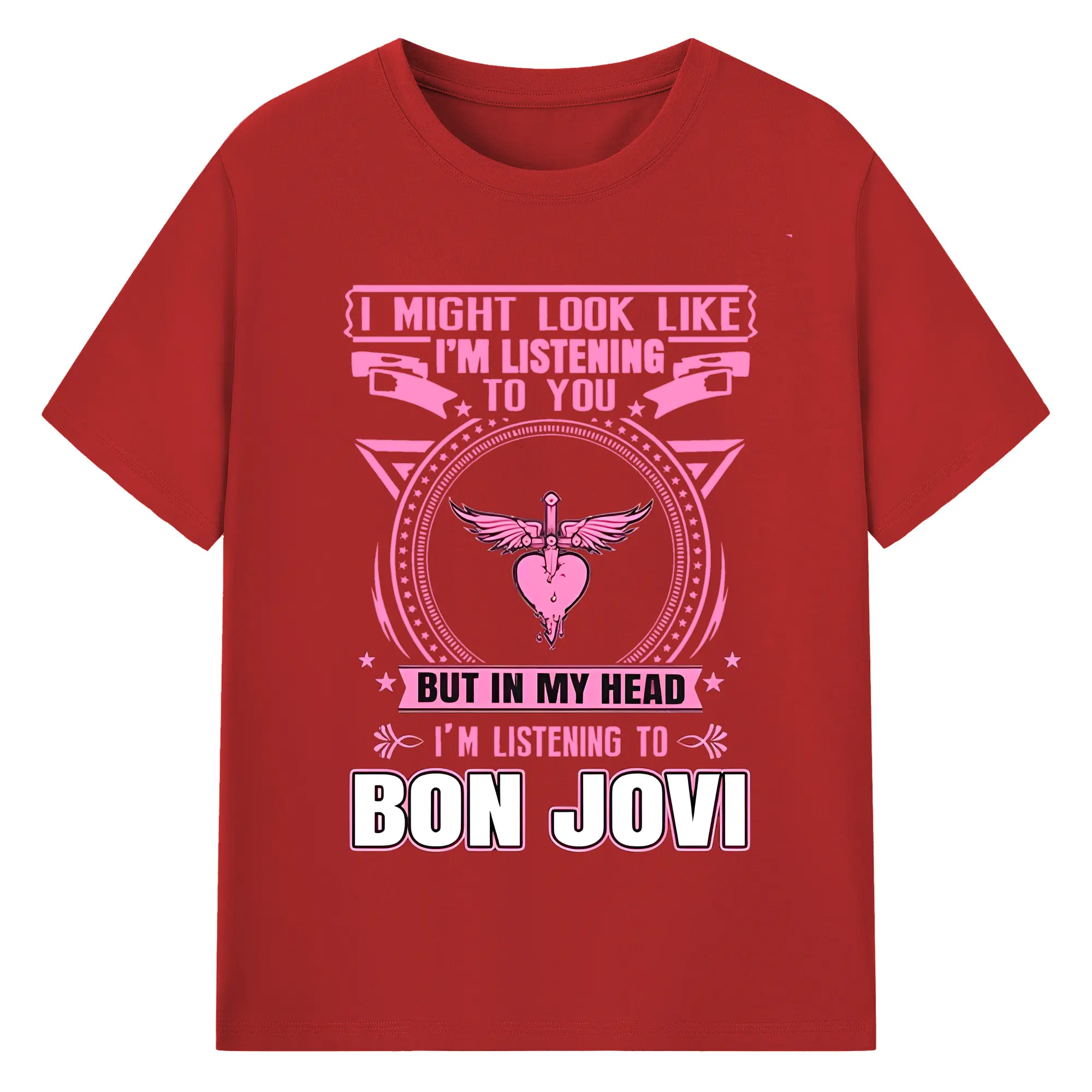 “In My Head I’m Listening To Bon Jovi” Bon Jovi Fan Shirt - 180g Cotton T-Shirt With Front Heat Transfer Print – Soft, Lightweight, Fitted Design – Comfortable Casual Wear For Sports & Everyday Use