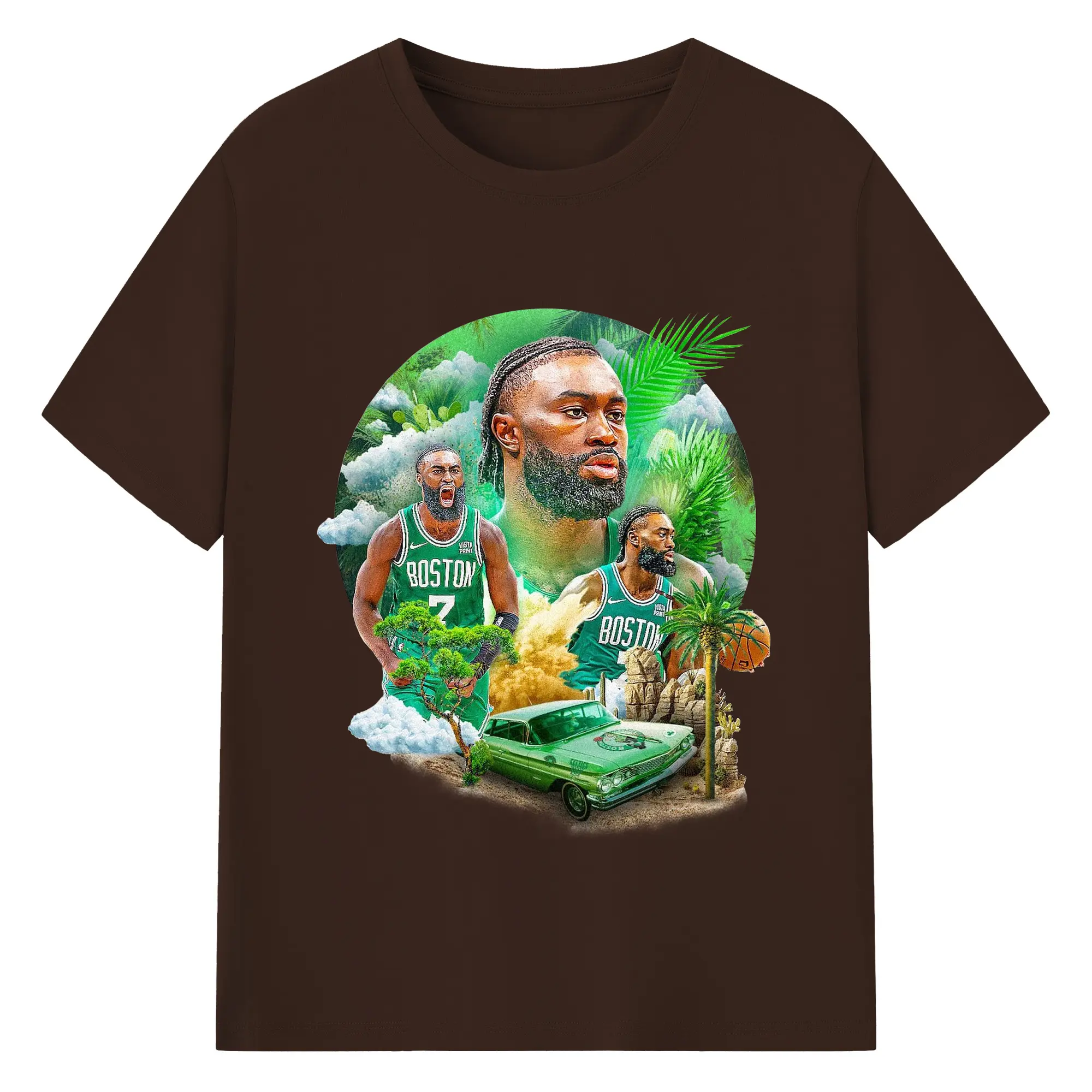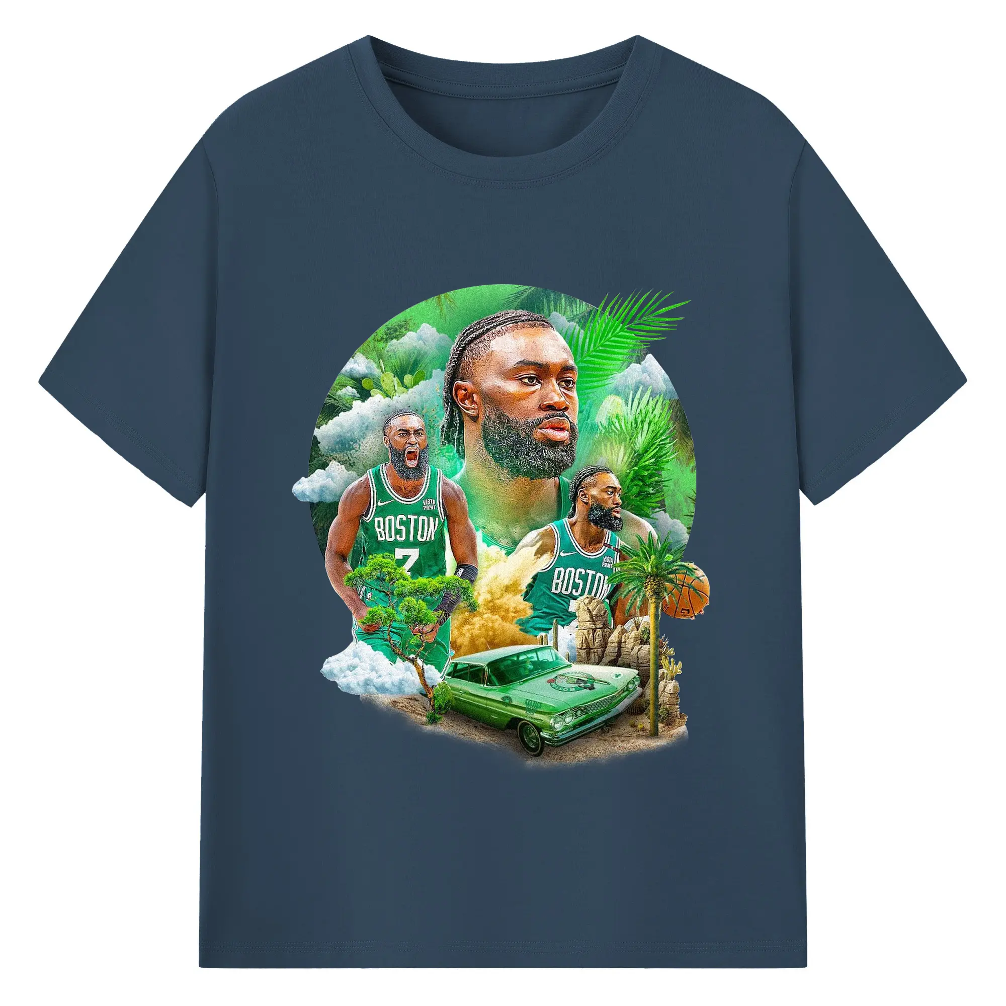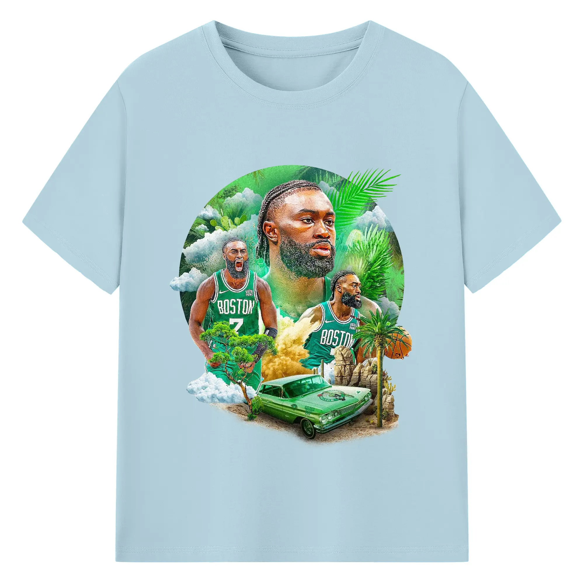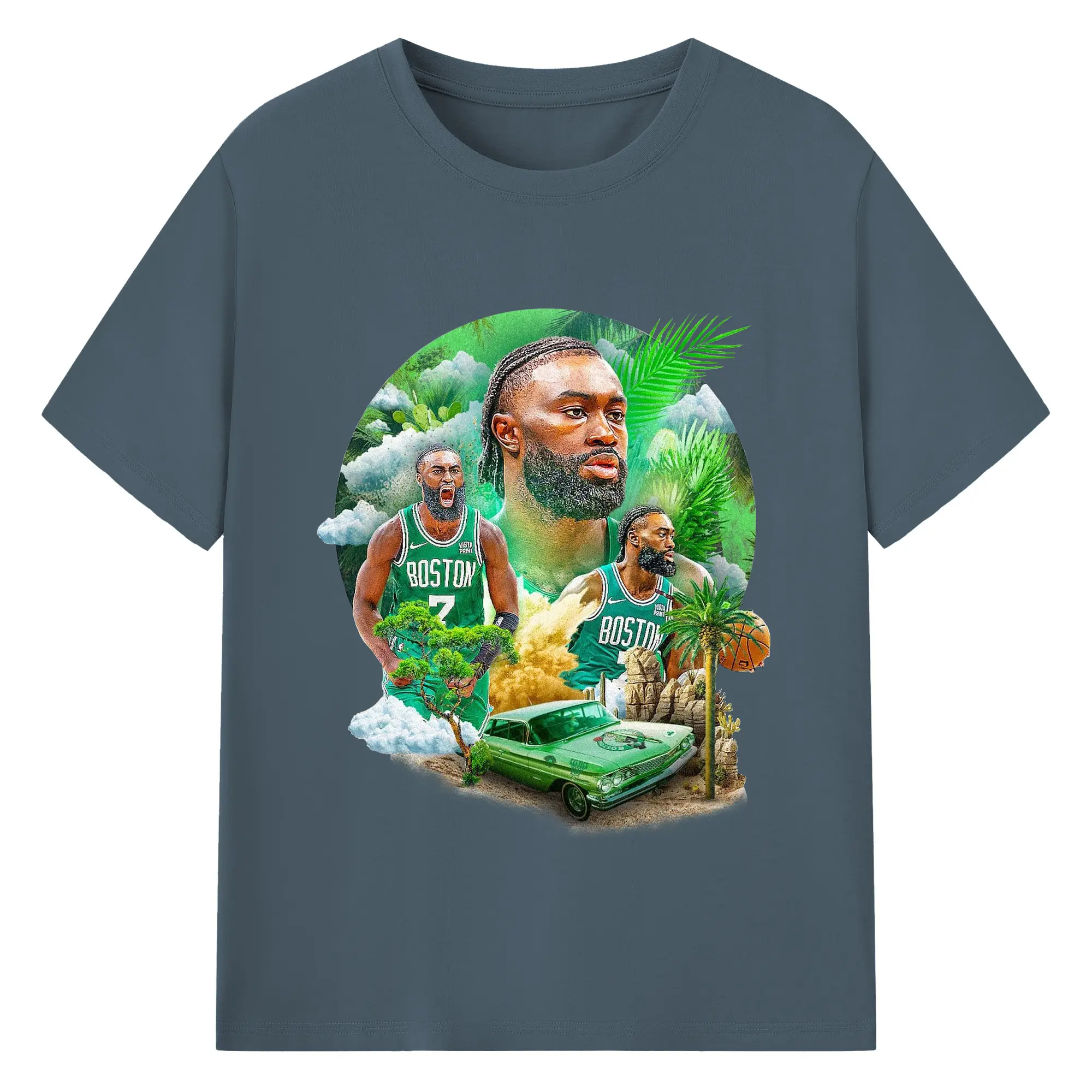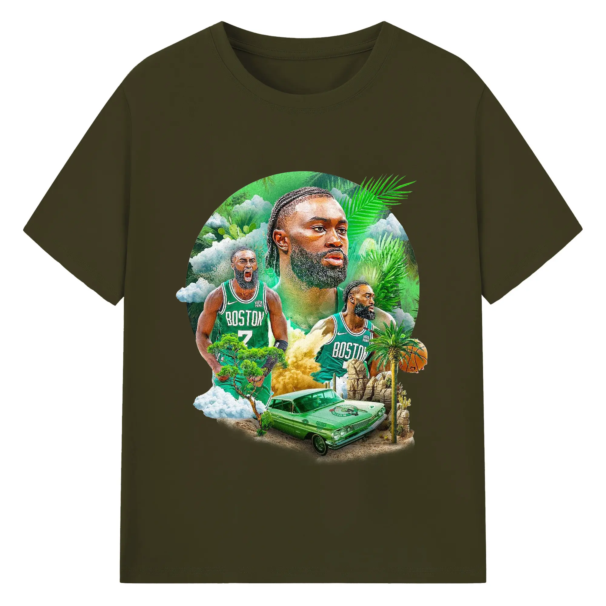 “Island of Green” Jaylen Brown Fantasy Shirt - 180g Cotton T-Shirt With Front Heat Transfer Print – Soft, Lightweight, Fitted Design – Comfortable Casual Wear For Sports & Everyday Use