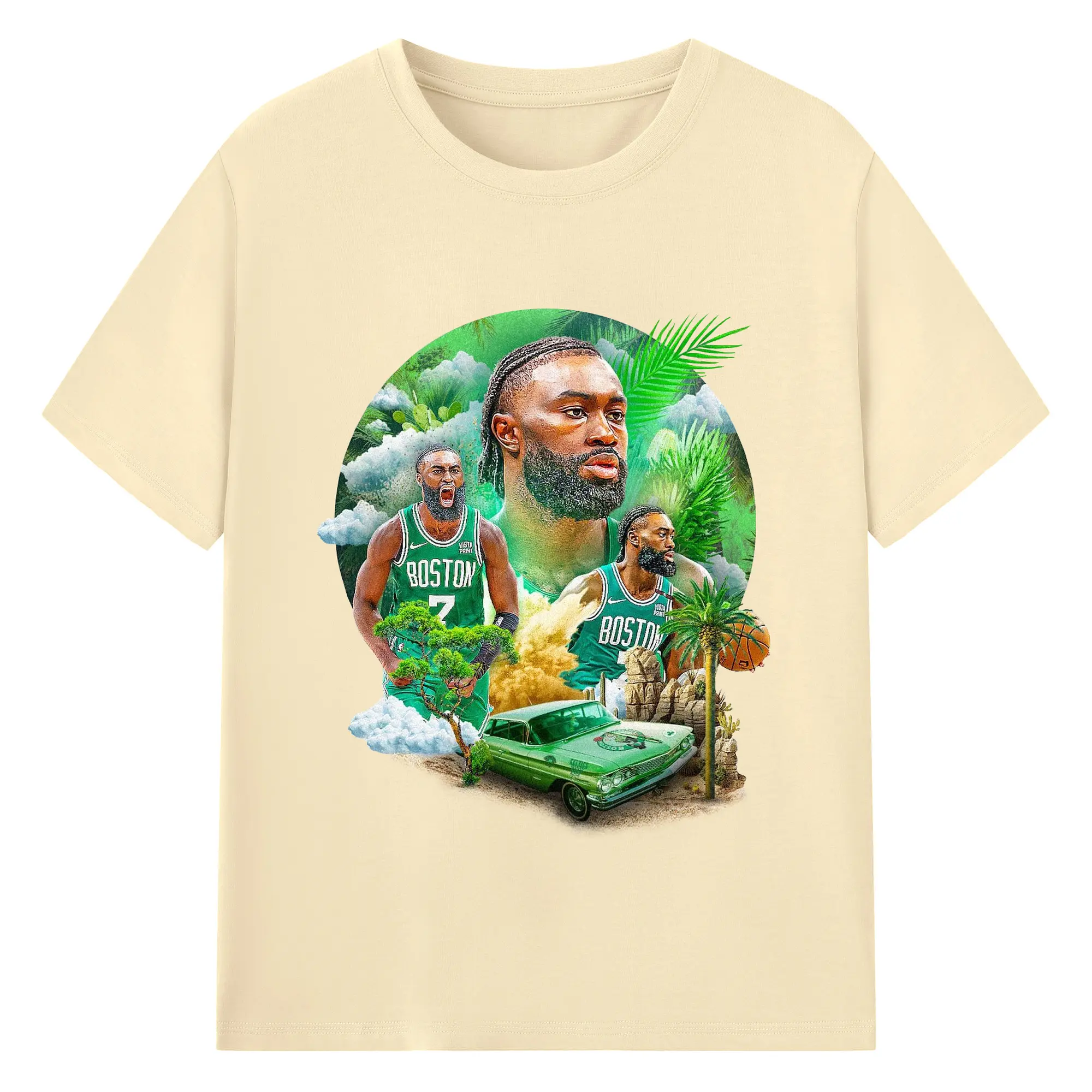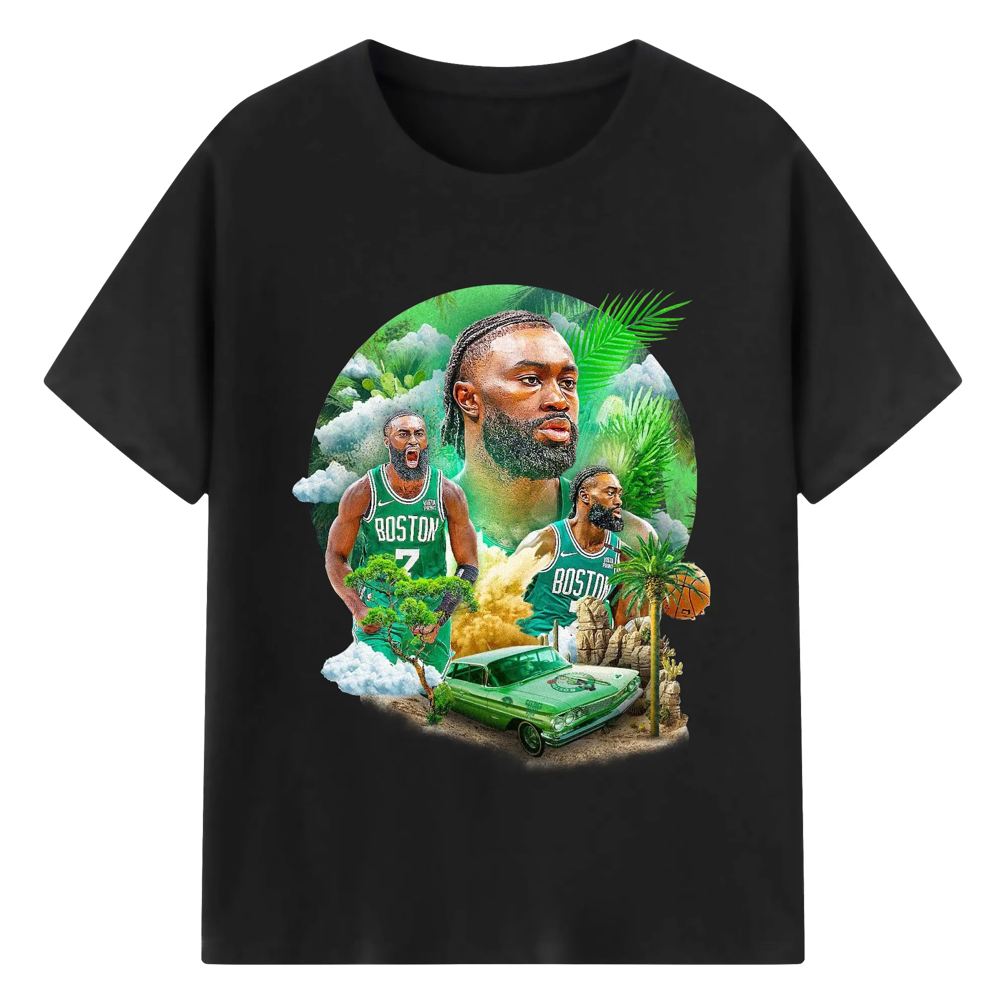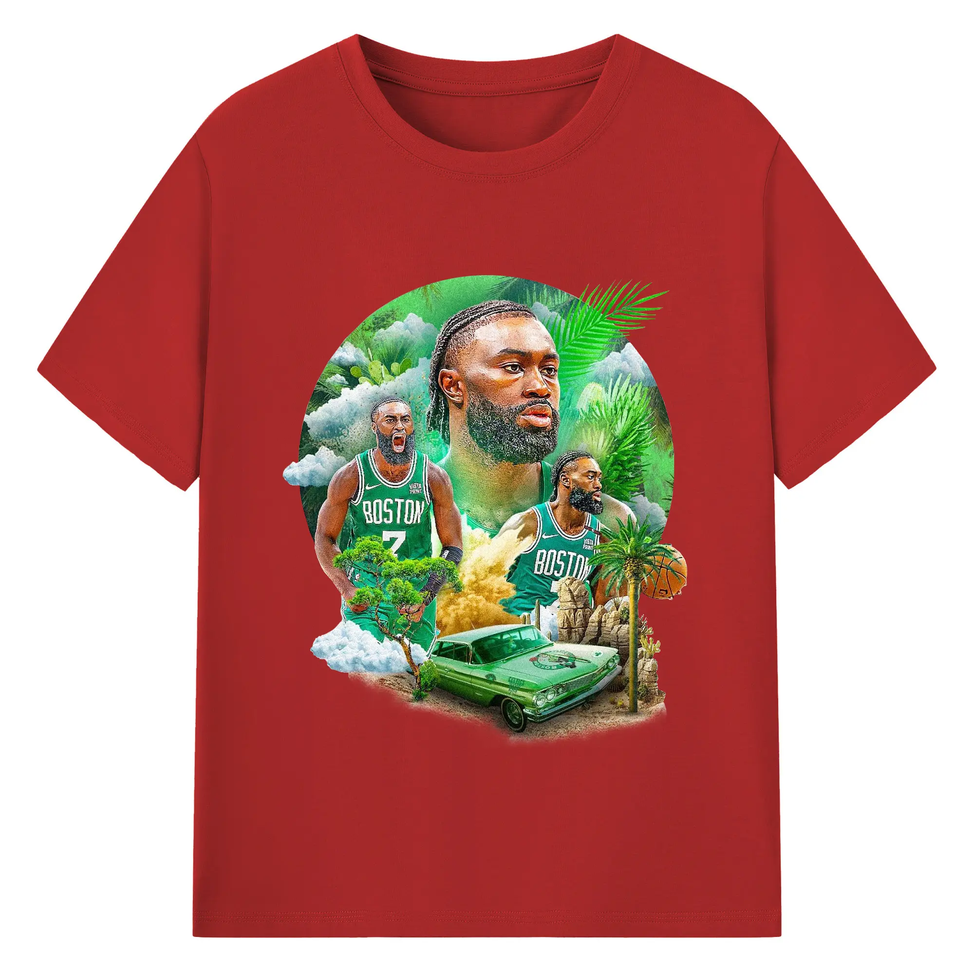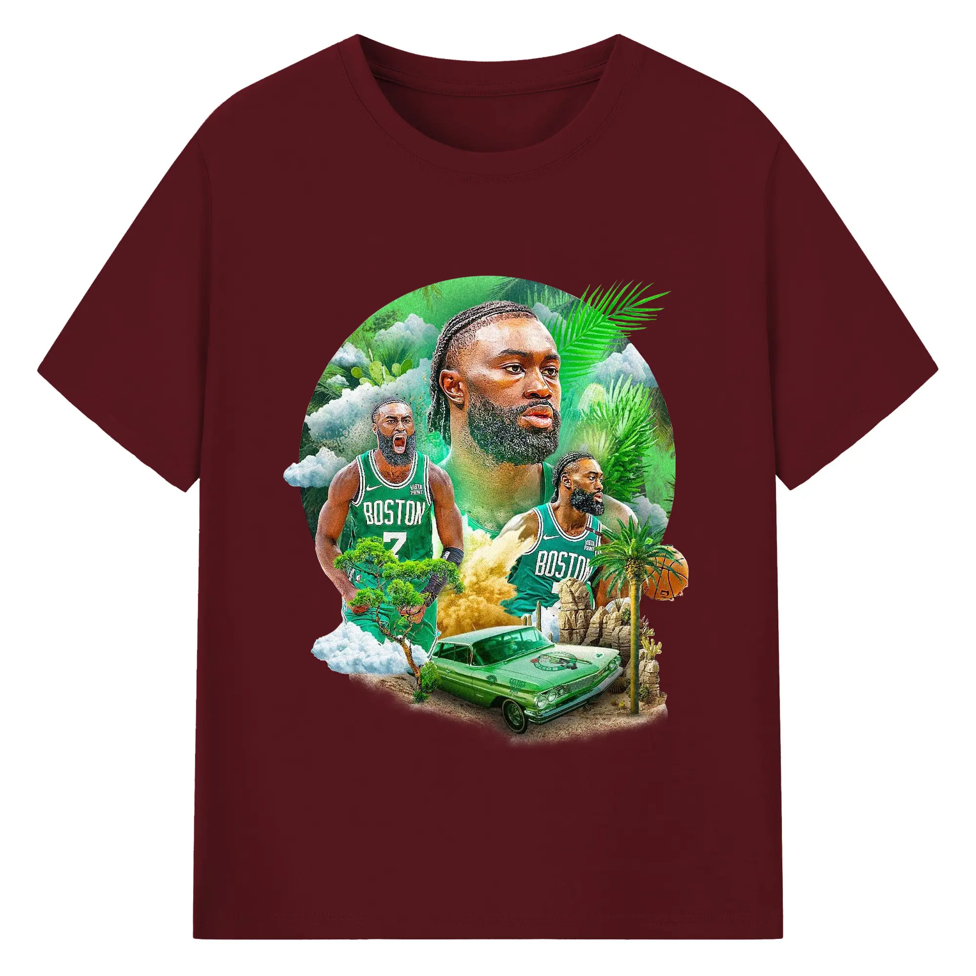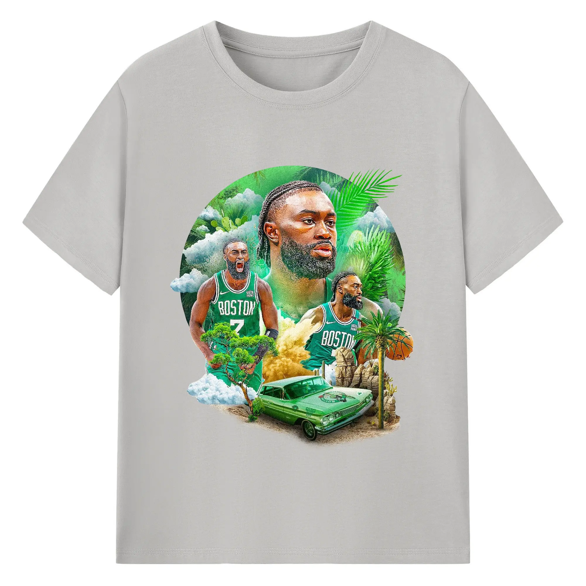 “Island of Green” Jaylen Brown Fantasy Shirt - 180g Cotton T-Shirt With Front Heat Transfer Print – Soft, Lightweight, Fitted Design – Comfortable Casual Wear For Sports & Everyday Use