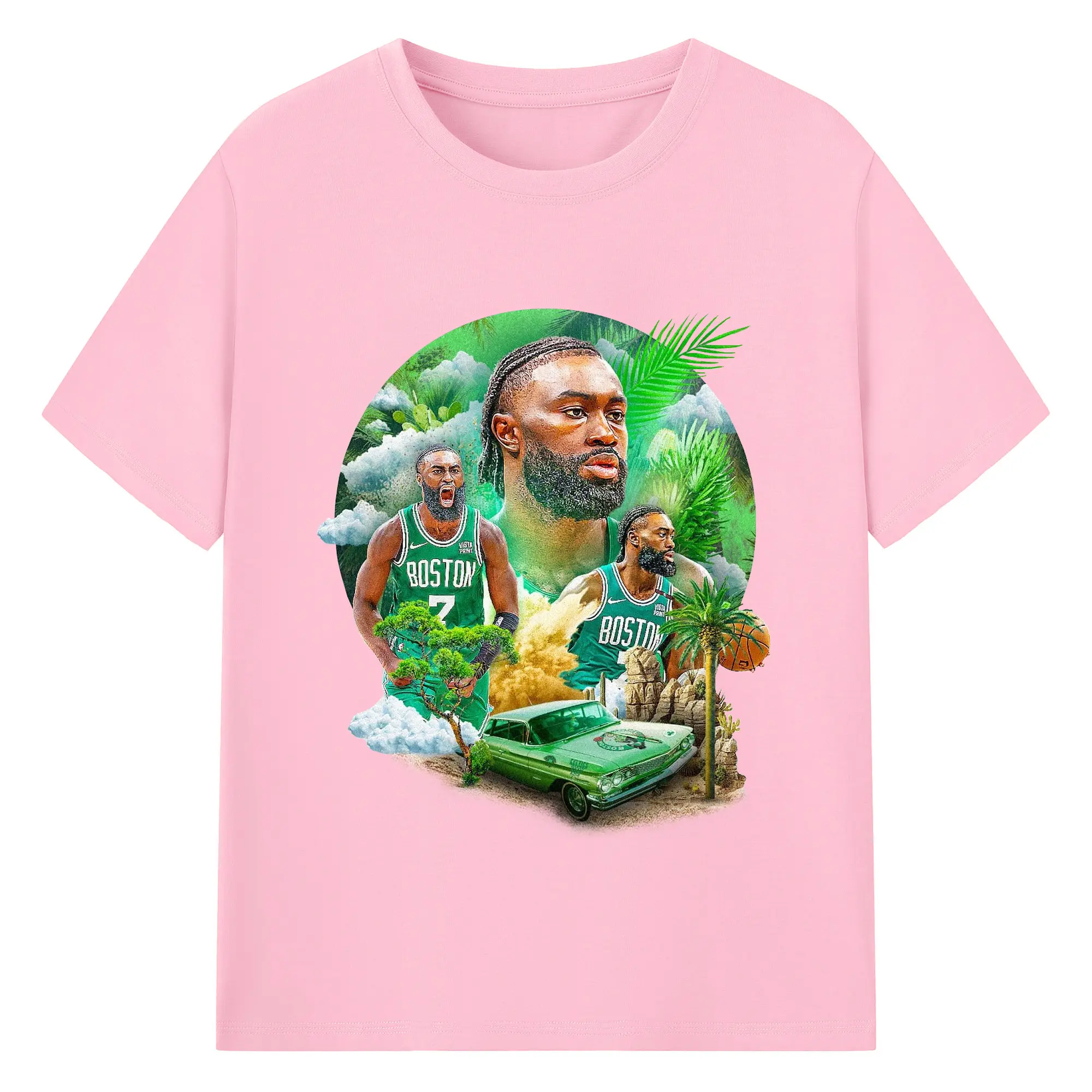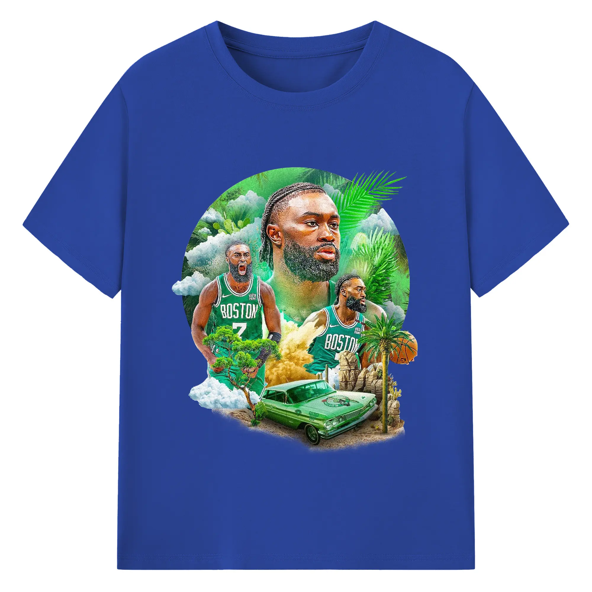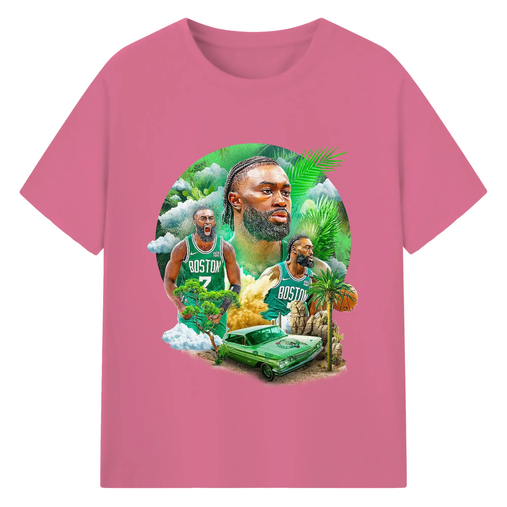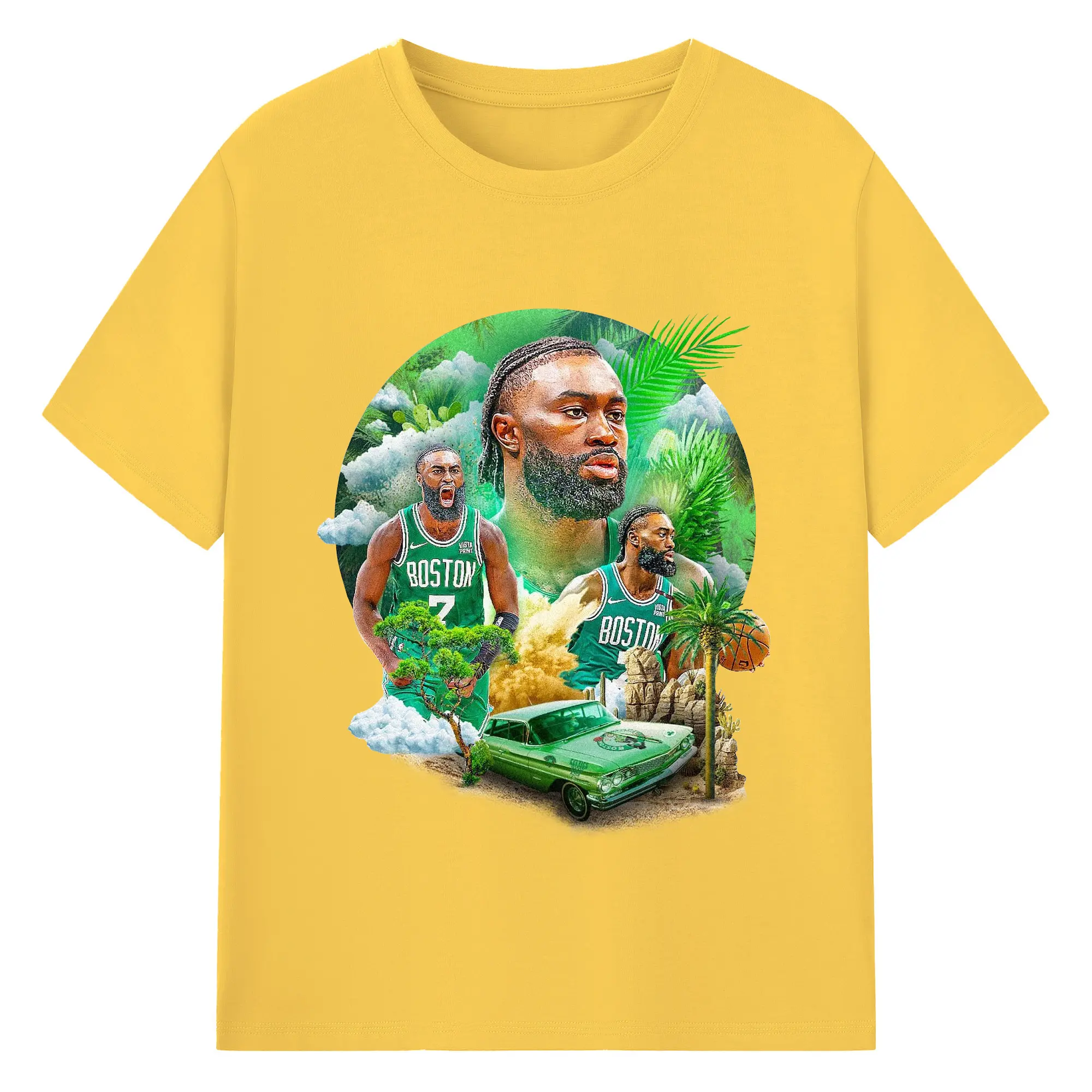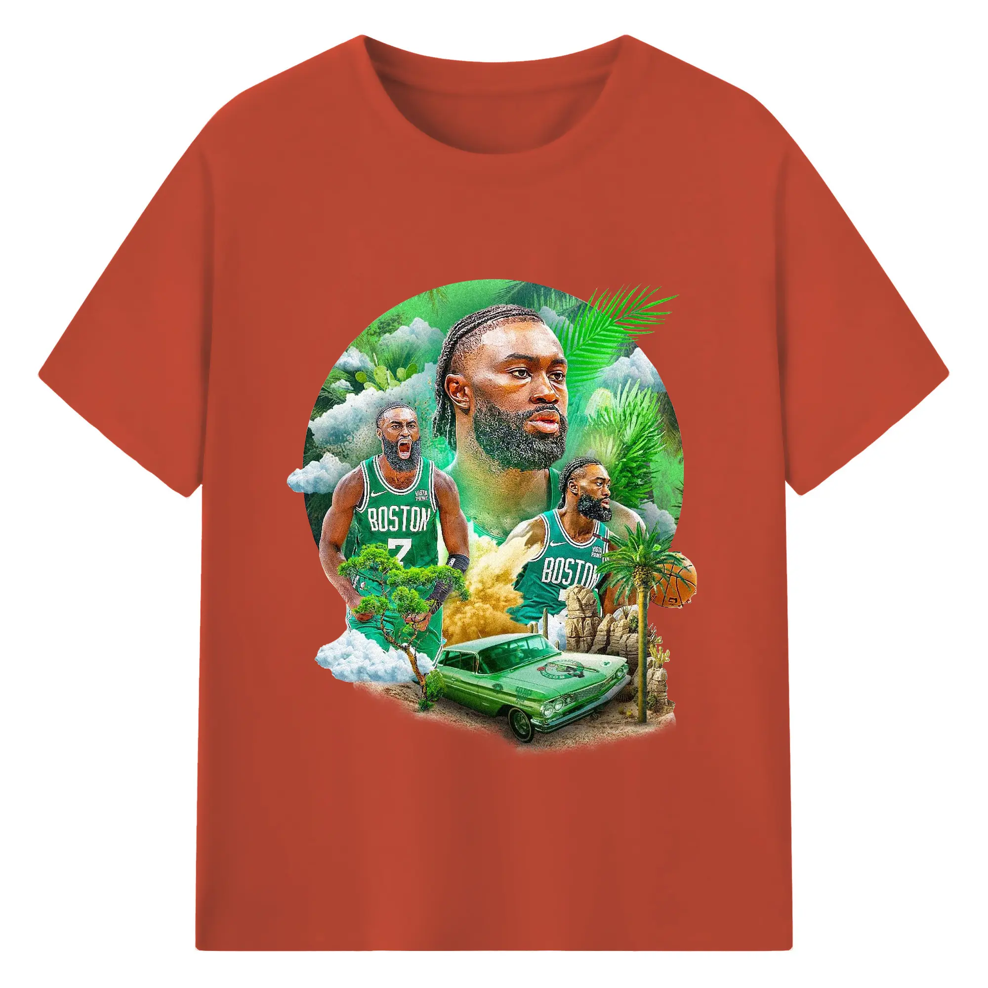 “Island of Green” Jaylen Brown Fantasy Shirt - 180g Cotton T-Shirt With Front Heat Transfer Print – Soft, Lightweight, Fitted Design – Comfortable Casual Wear For Sports & Everyday Use