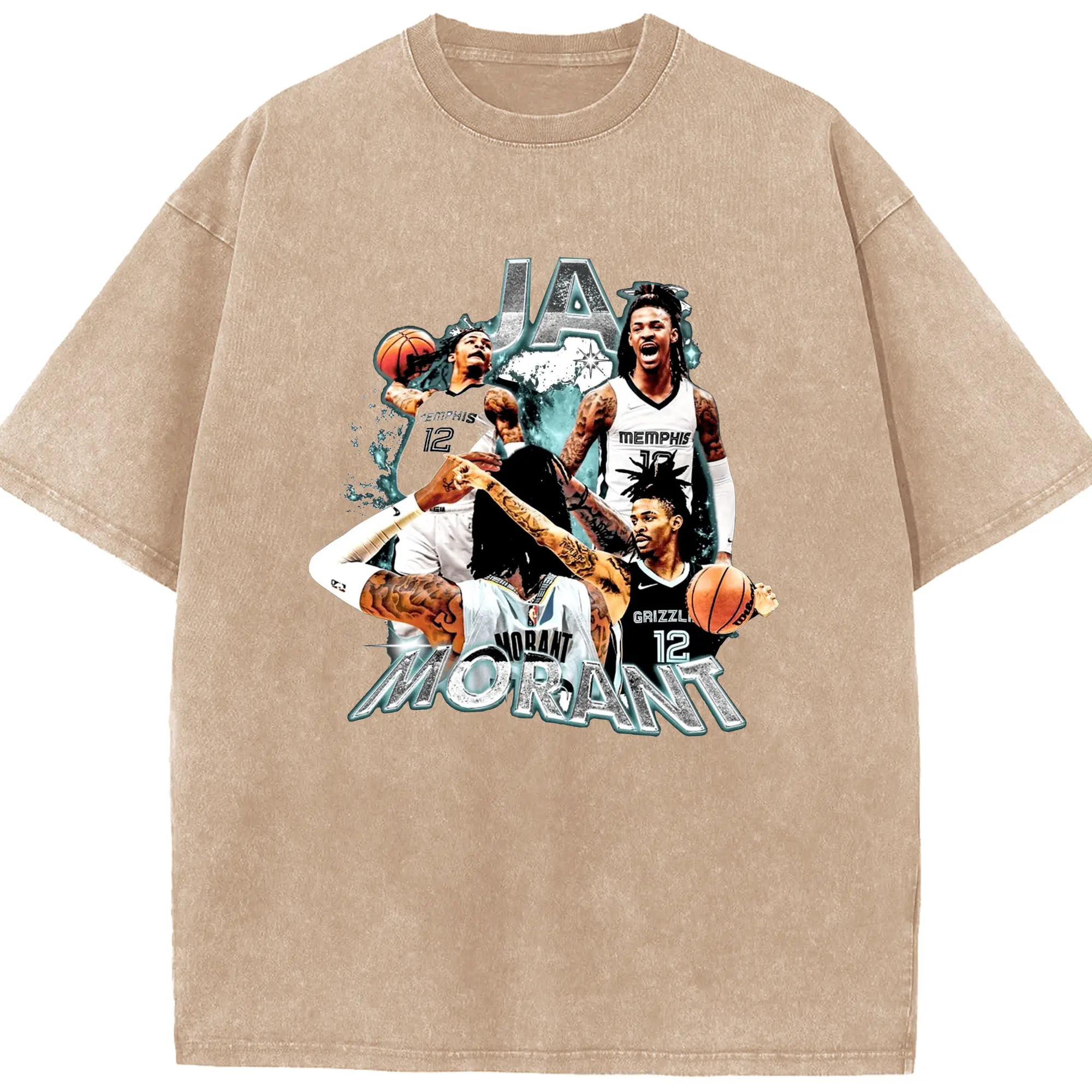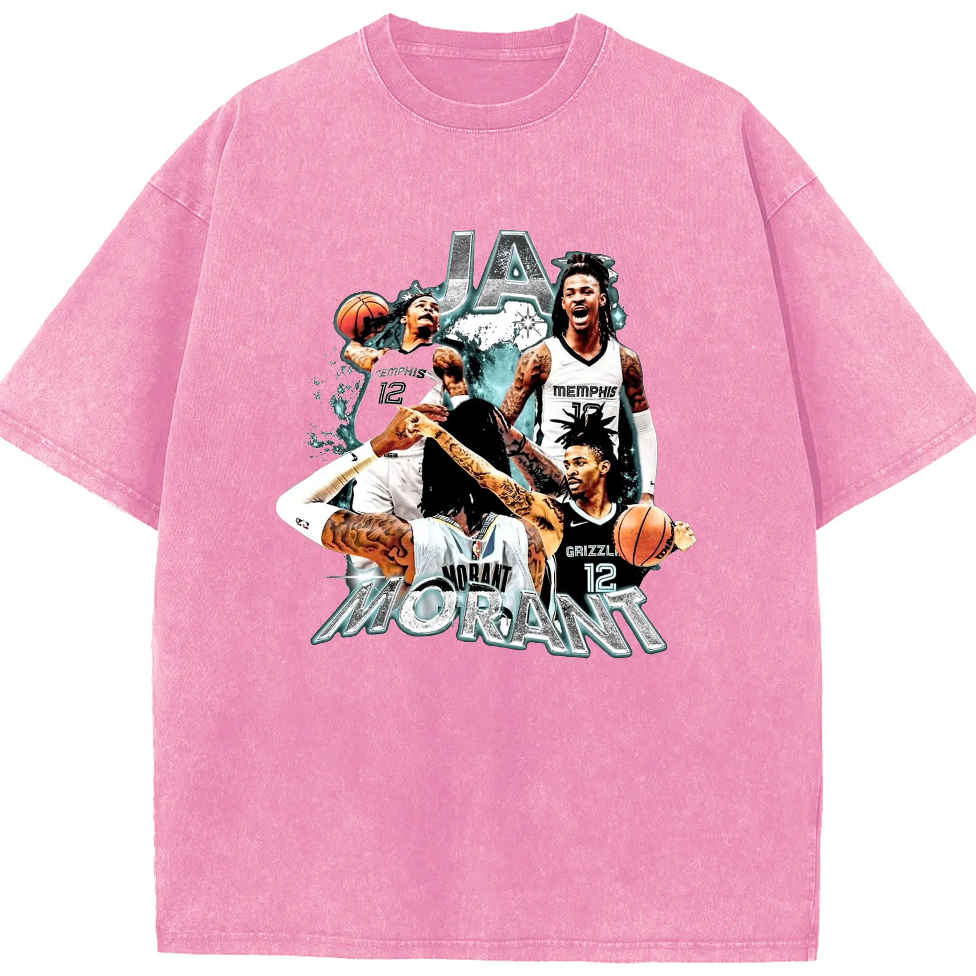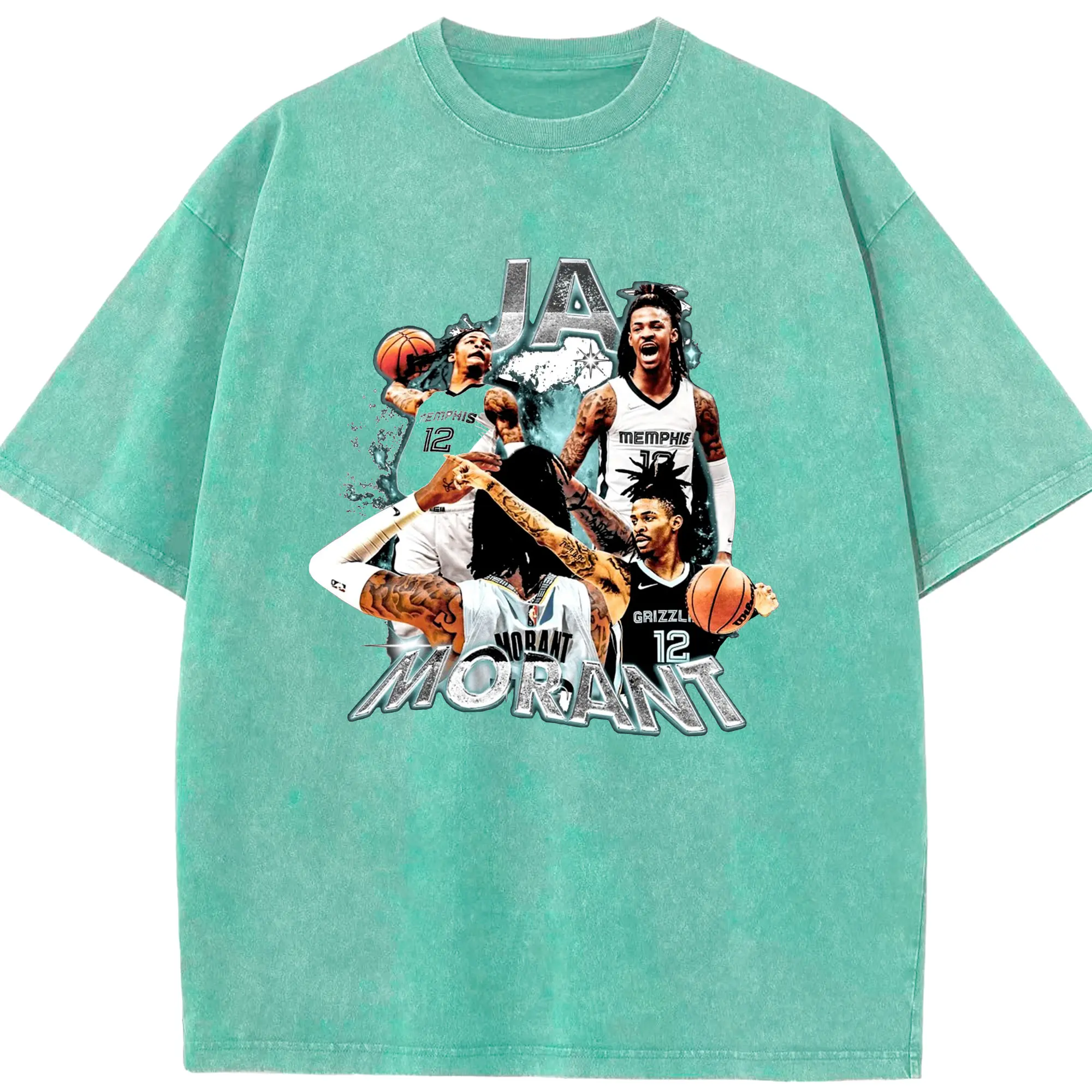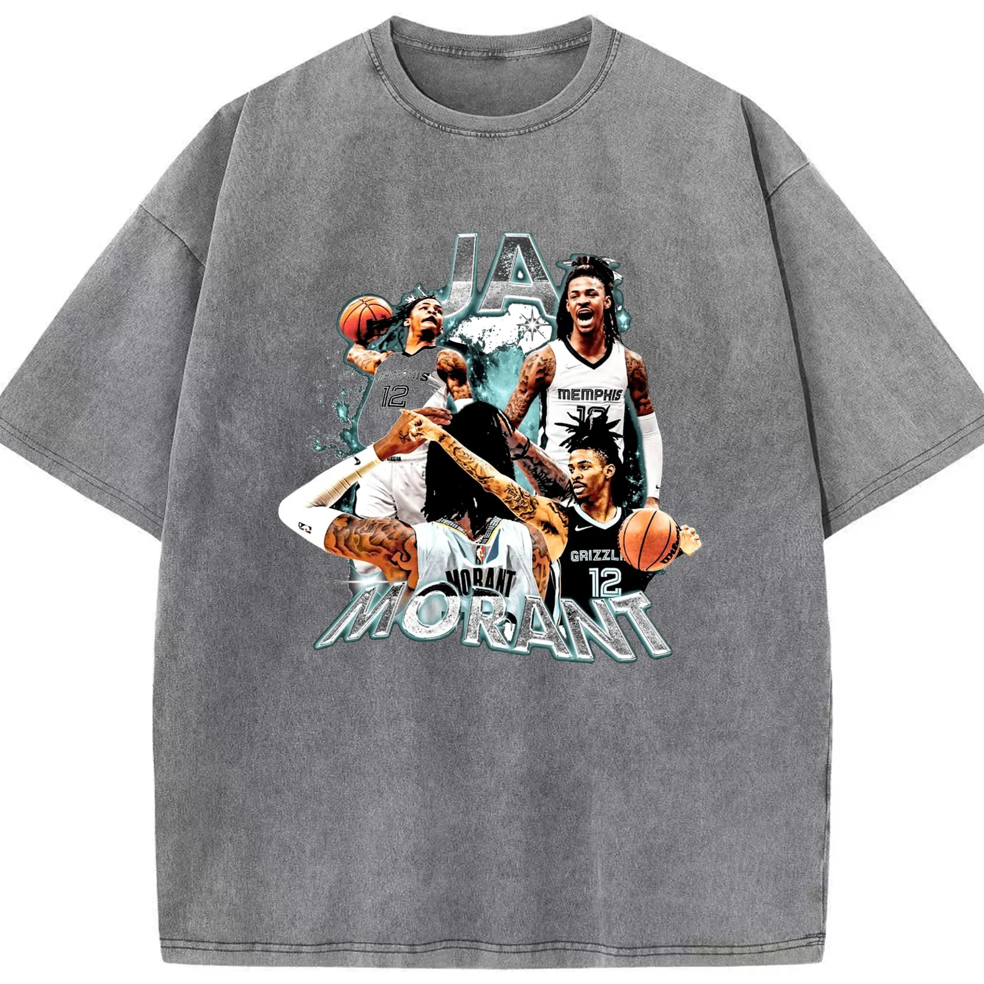Ja Morant Memphis Grizzlies Vintage Shirt - Washed Vintage Look 230g Cotton Oversized T-Shirt With Front Heat Transfer Print – Soft, Lightweight, Stylish Fit – Comfortable Casual Wear For Sports & Everyday Use