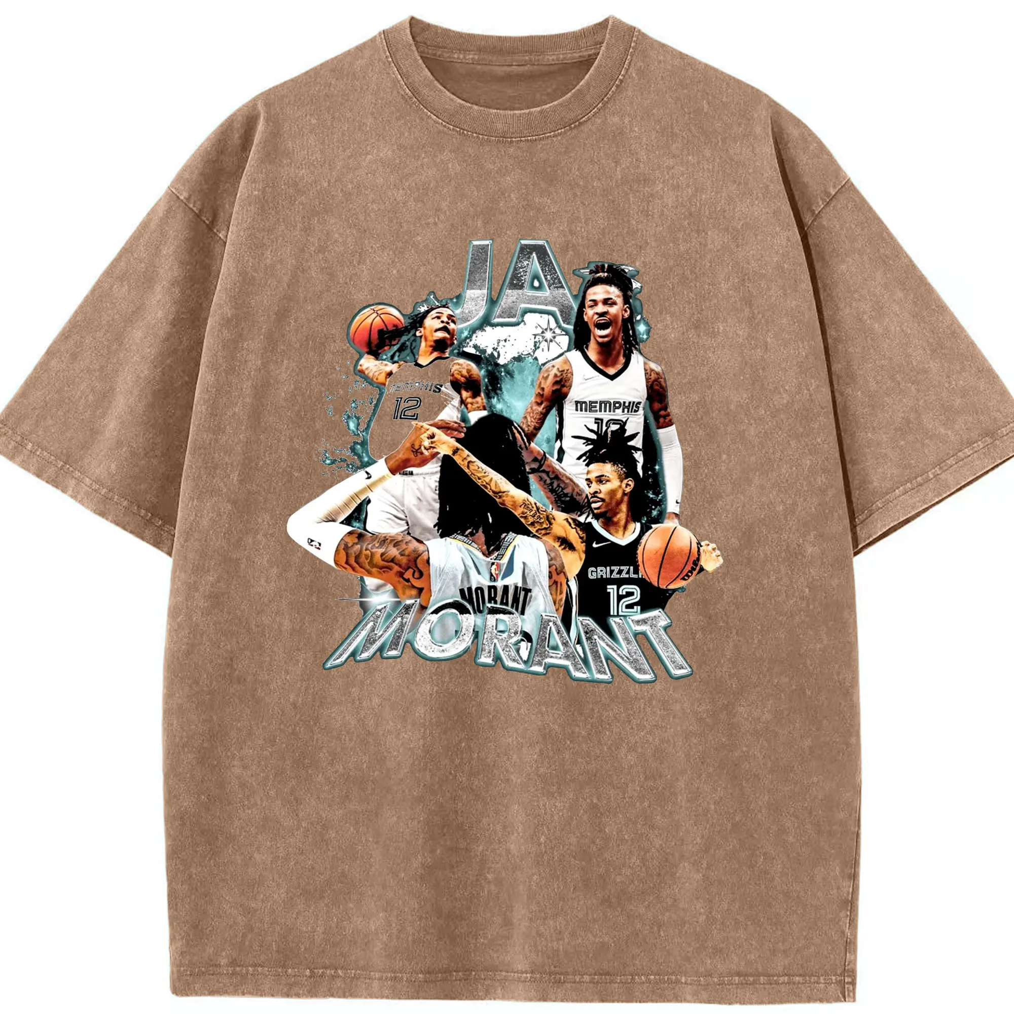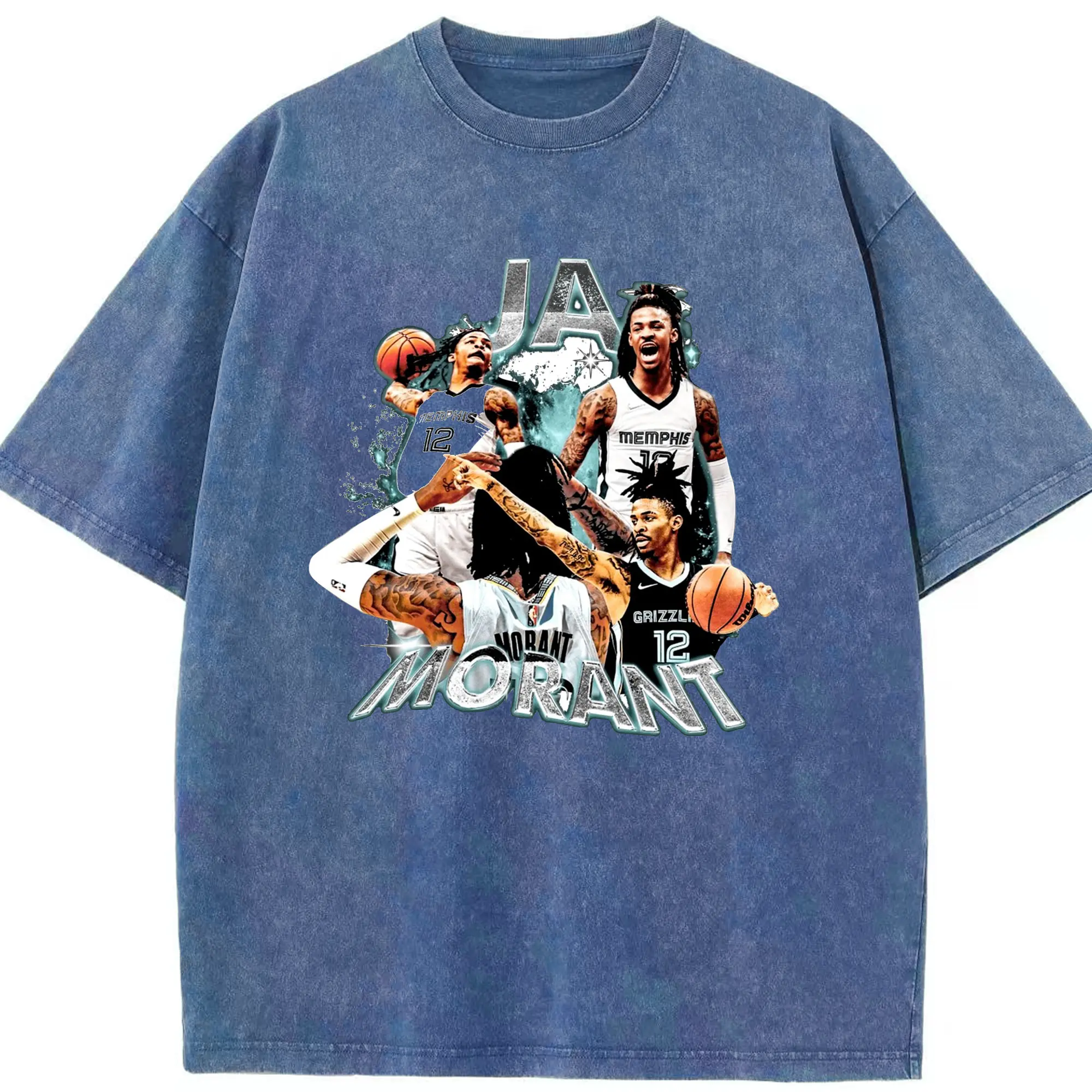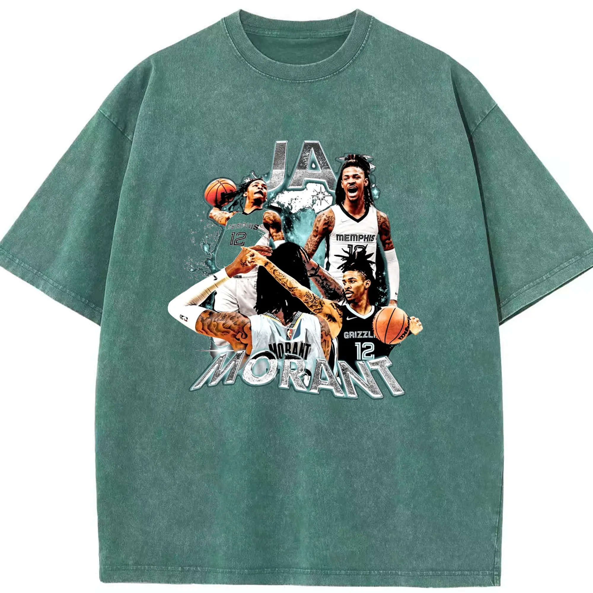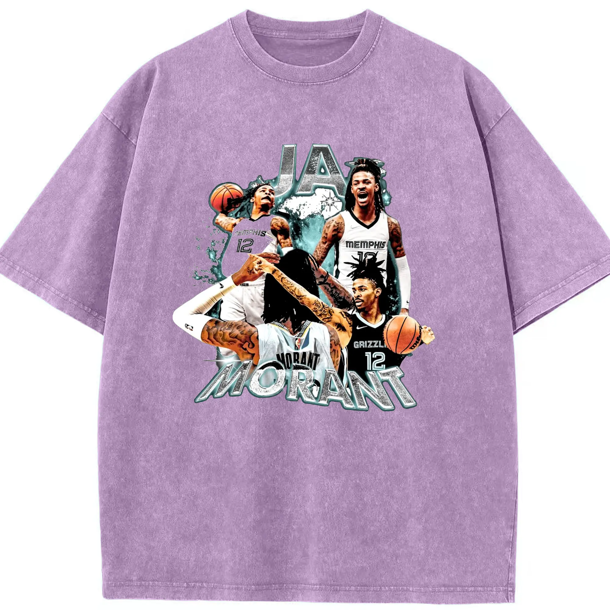 Ja Morant Memphis Grizzlies Vintage Shirt - Washed Vintage Look 230g Cotton Oversized T-Shirt With Front Heat Transfer Print – Soft, Lightweight, Stylish Fit – Comfortable Casual Wear For Sports & Everyday Use