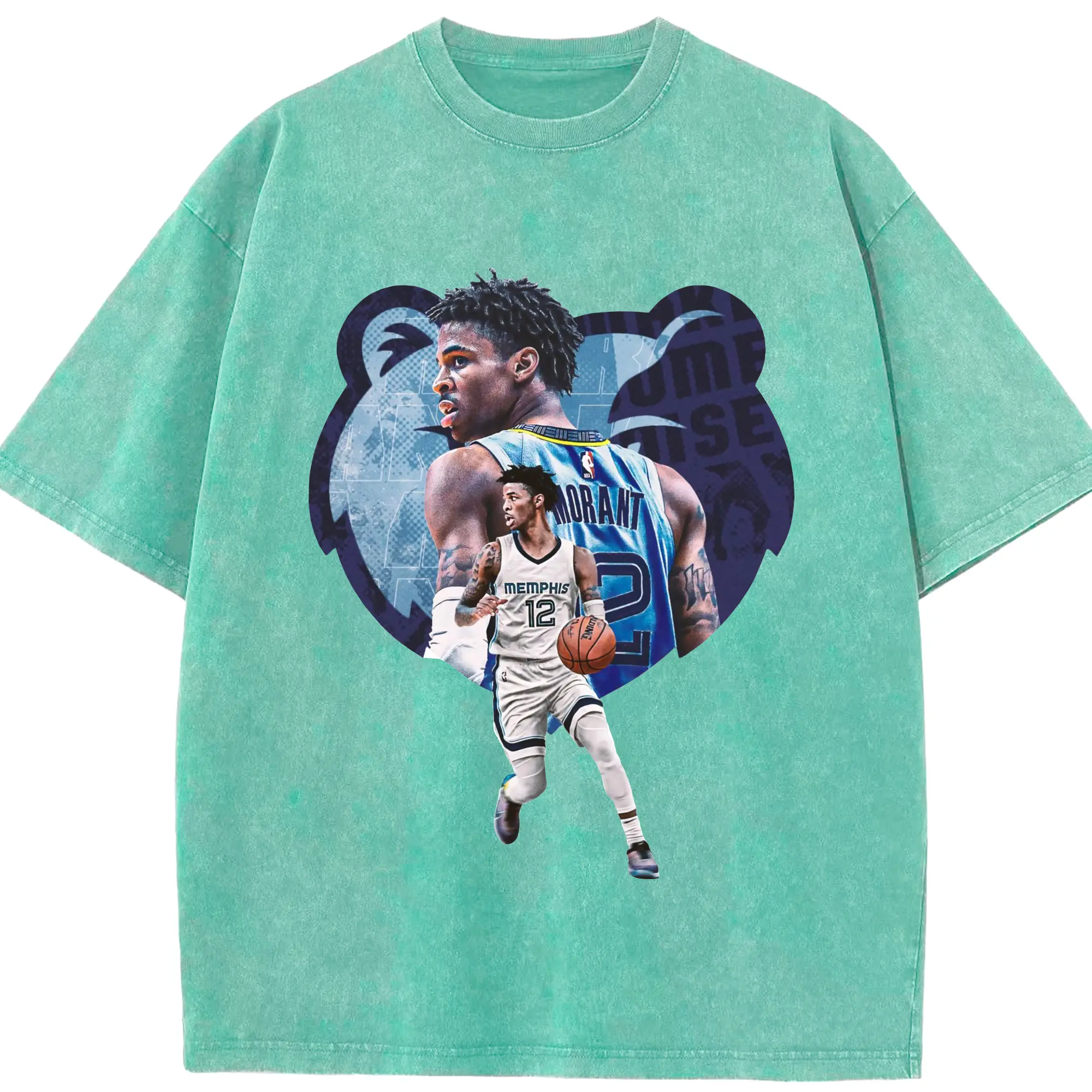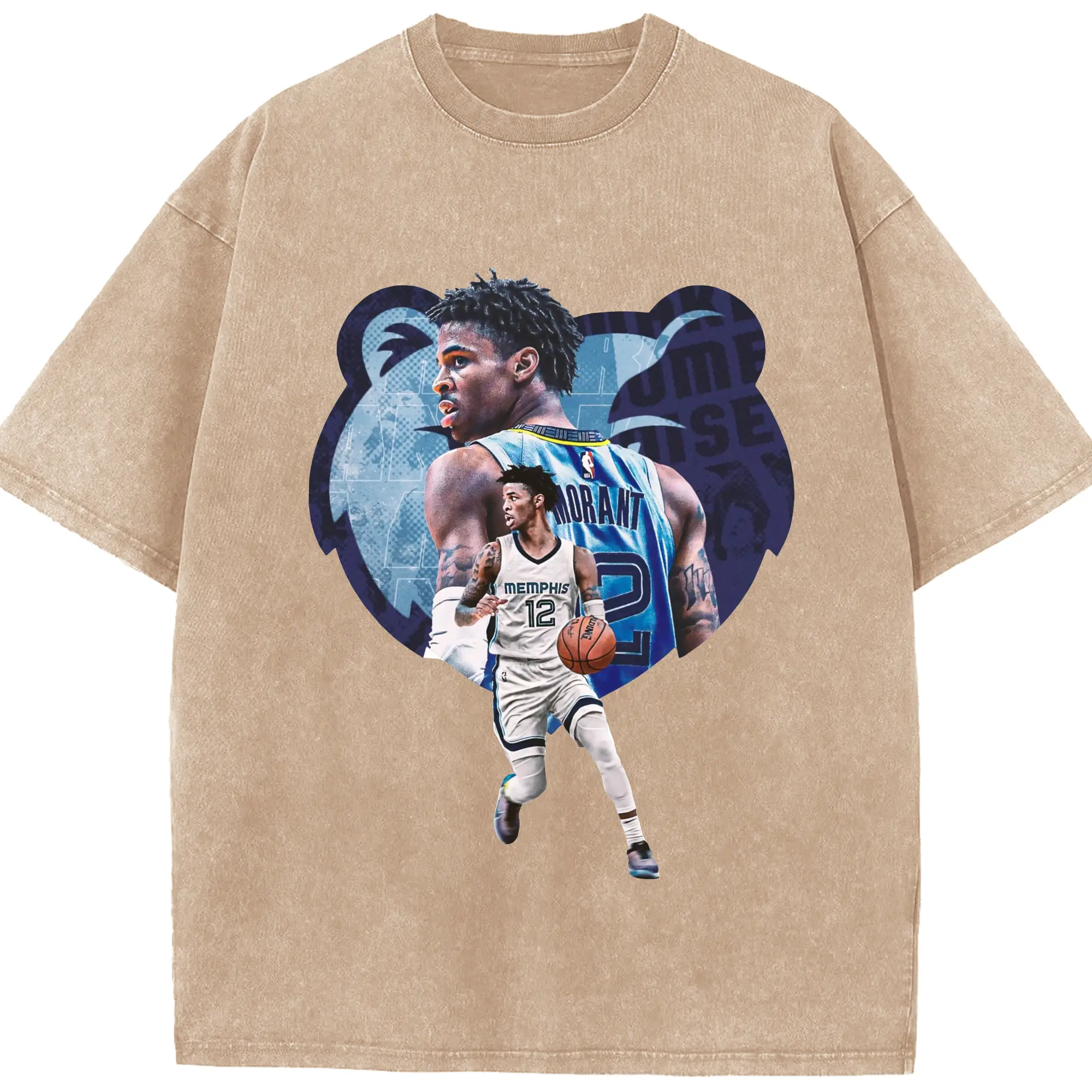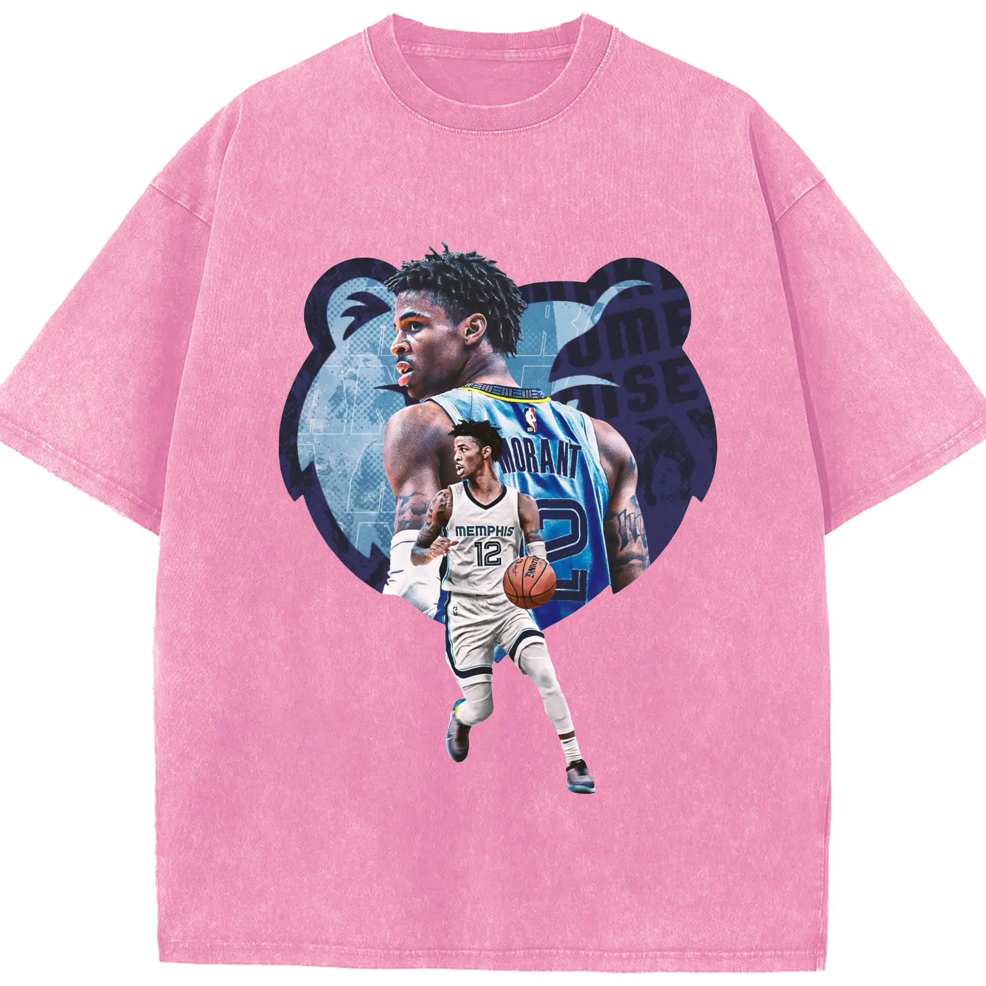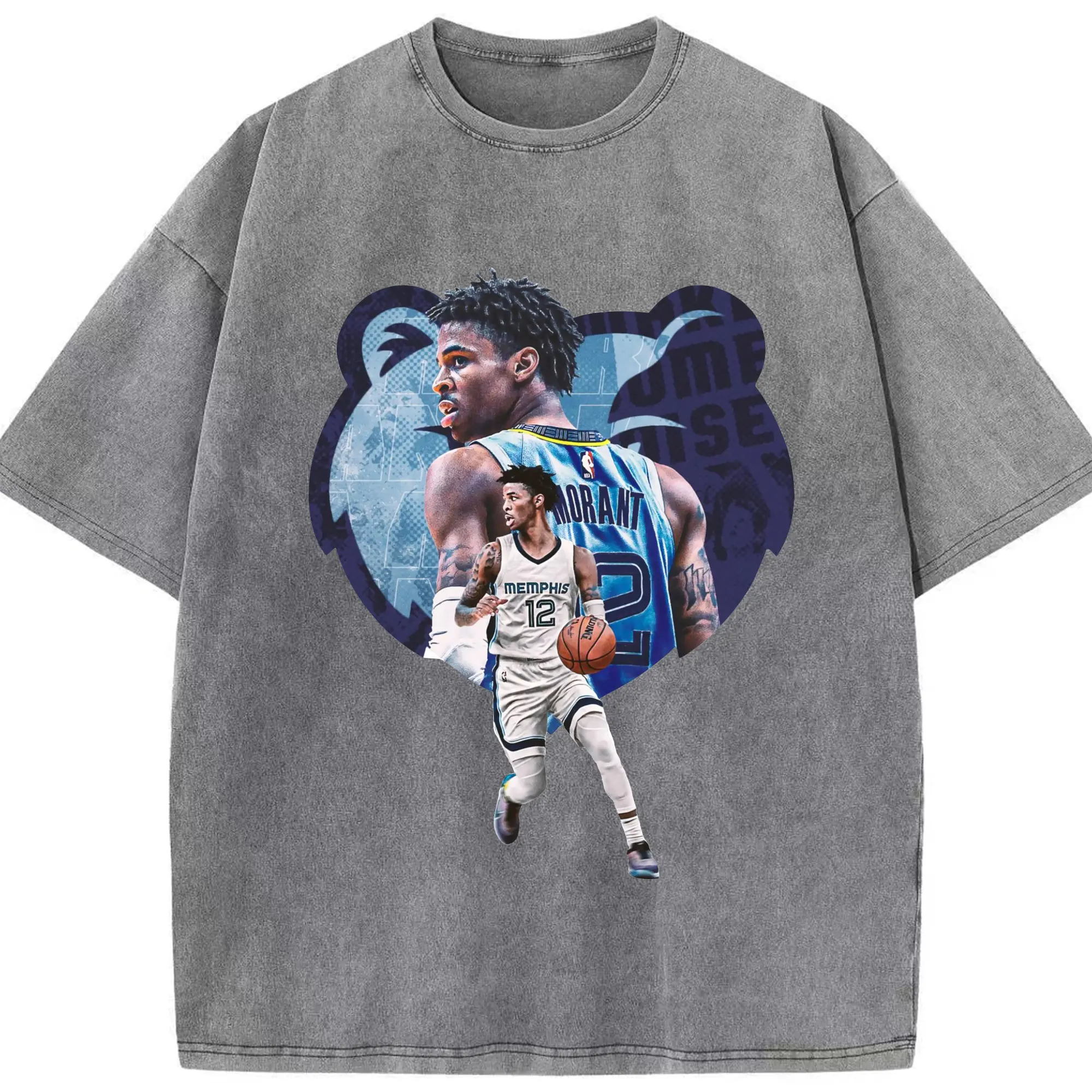 Ja Morant Motion Dribble Graphic Shirt - Washed Vintage Look 230g Cotton Oversized T-Shirt With Front Heat Transfer Print – Soft, Lightweight, Stylish Fit – Comfortable Casual Wear For Sports & Everyday Use