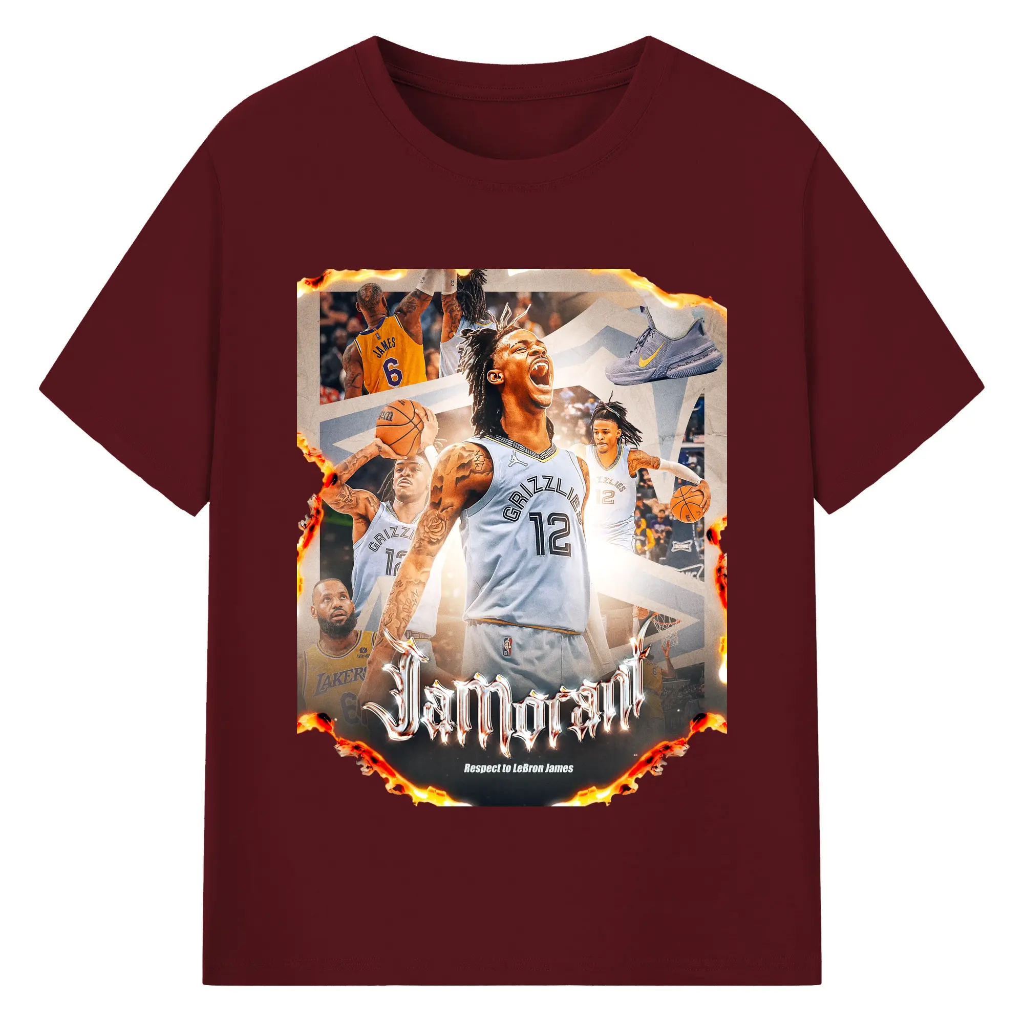 Ja Morant Respect to LeBron James Limited Edition Shirt - 180g Cotton T-Shirt With Front Heat Transfer Print – Soft, Lightweight, Fitted Design – Comfortable Casual Wear For Sports & Everyday Use