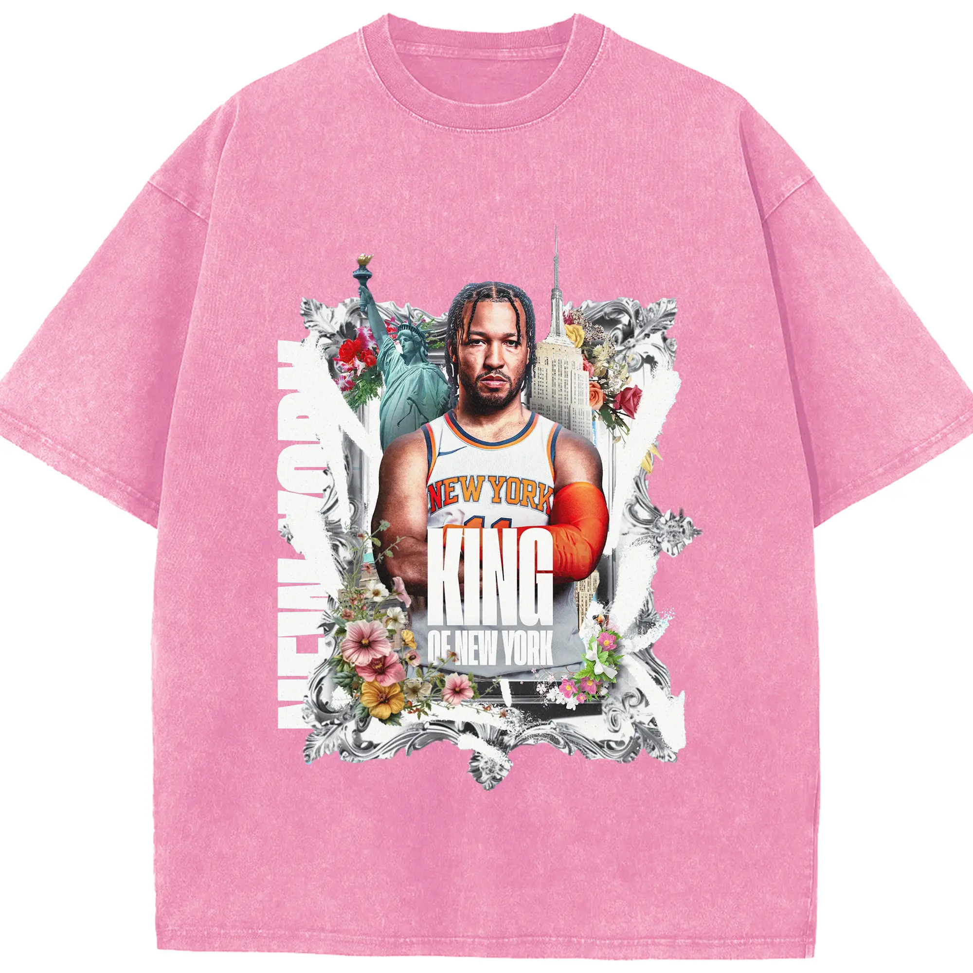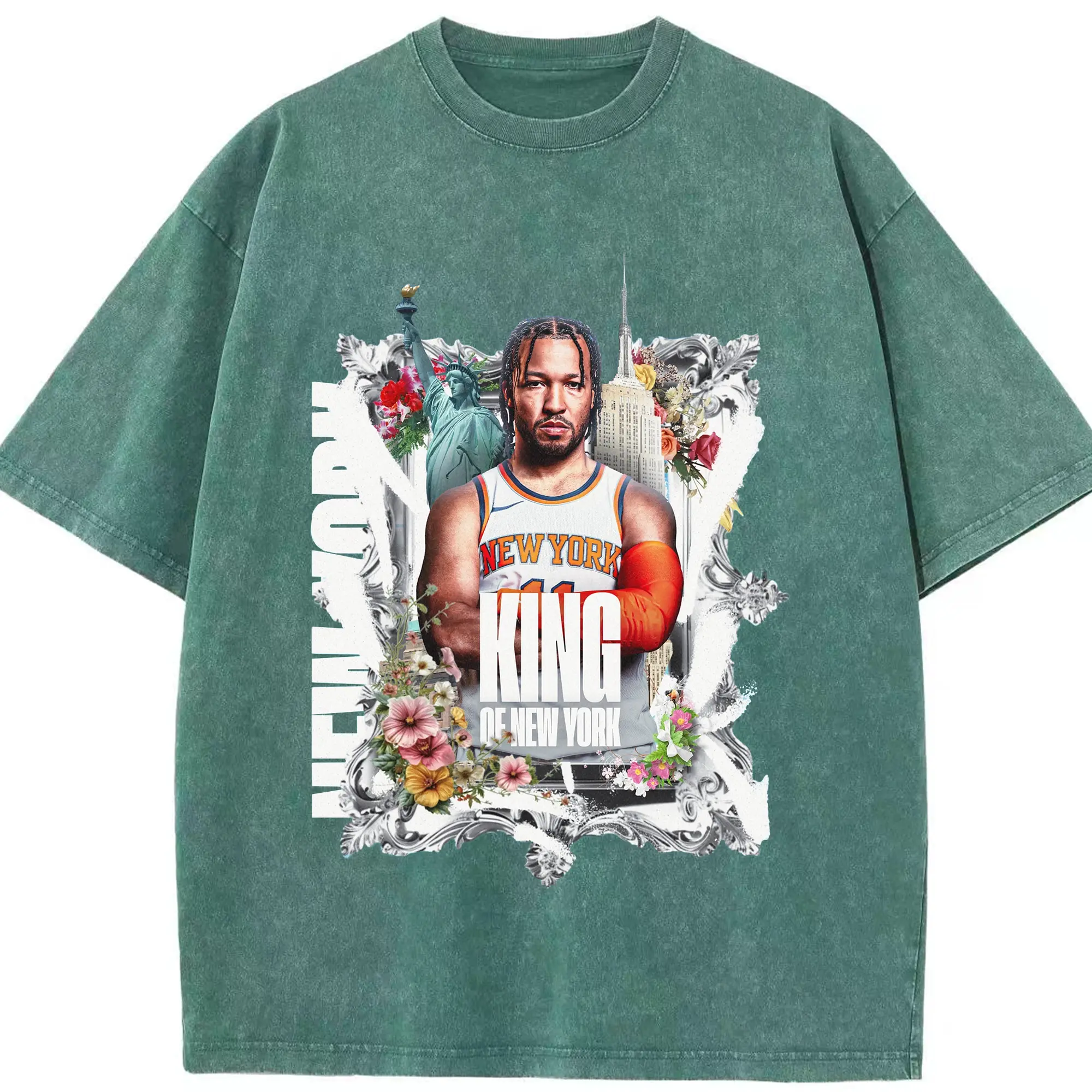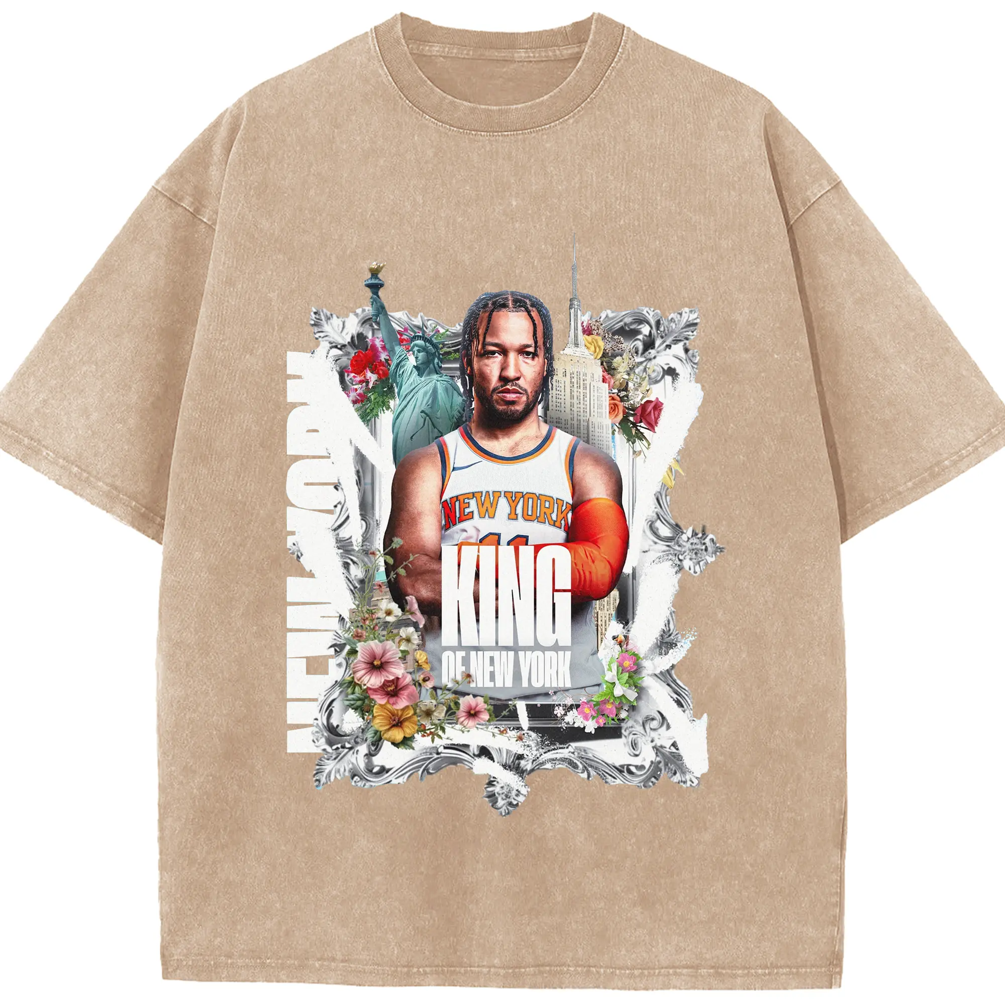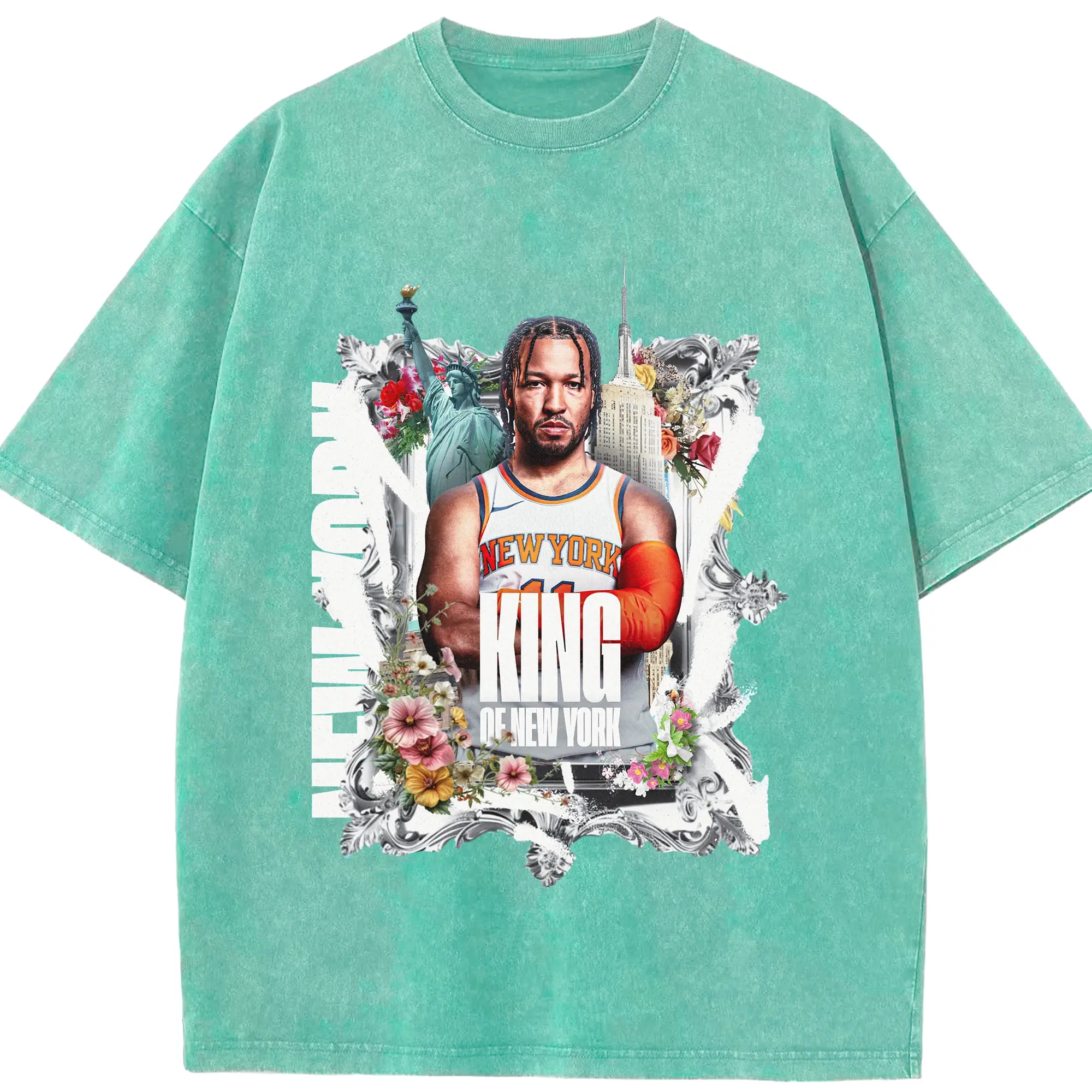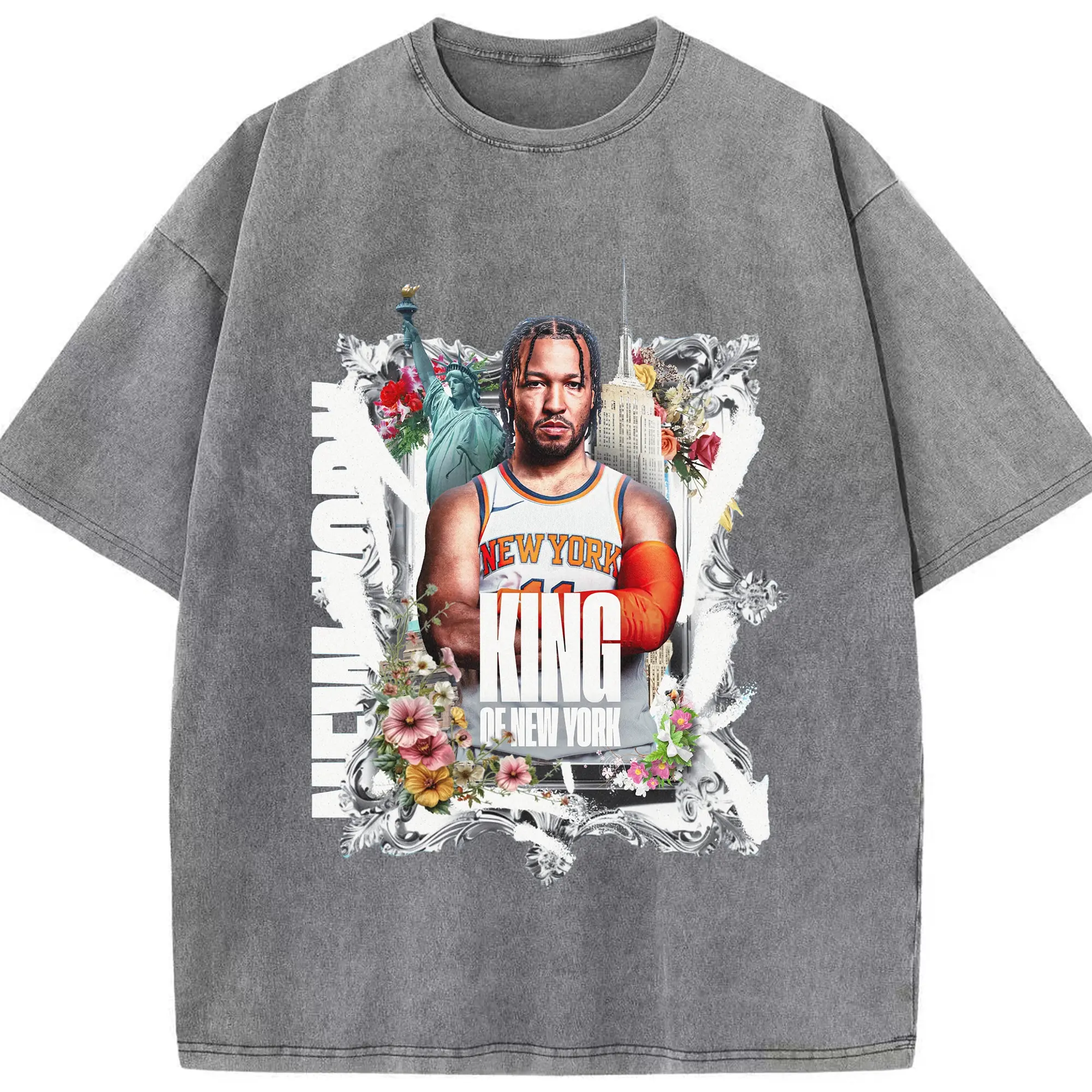 Jalen Brunson #11 King of the New York Knicks Fans Shirt - Washed Vintage Look 230g Cotton Oversized T-Shirt With Front Heat Transfer Print – Soft, Lightweight, Stylish Fit – Comfortable Casual Wear For Sports & Everyday Use