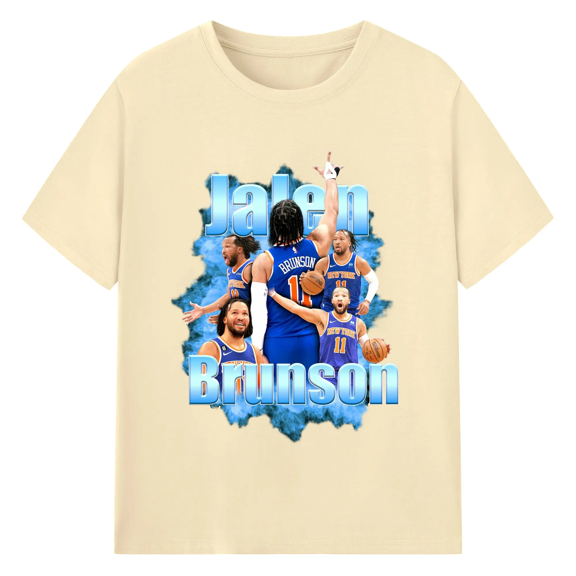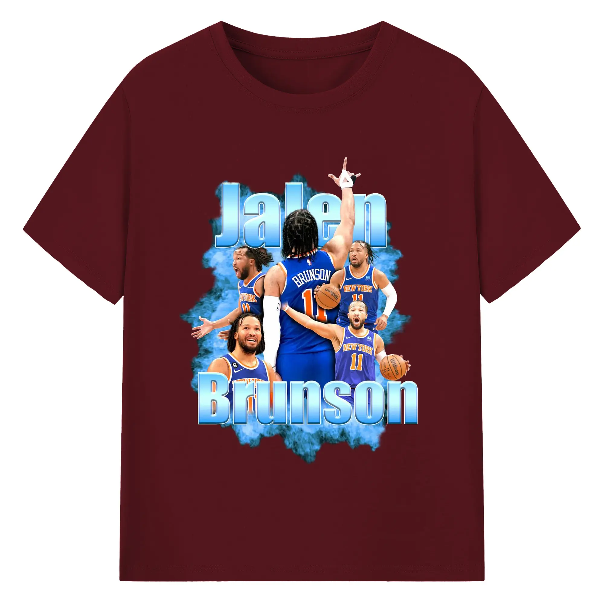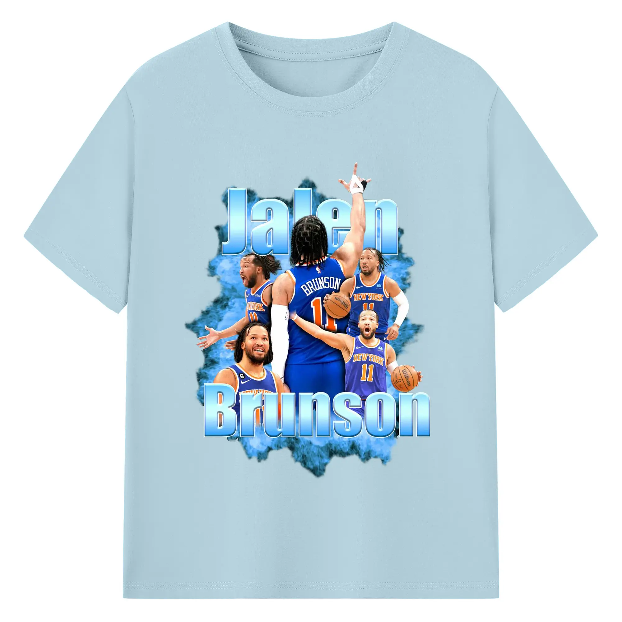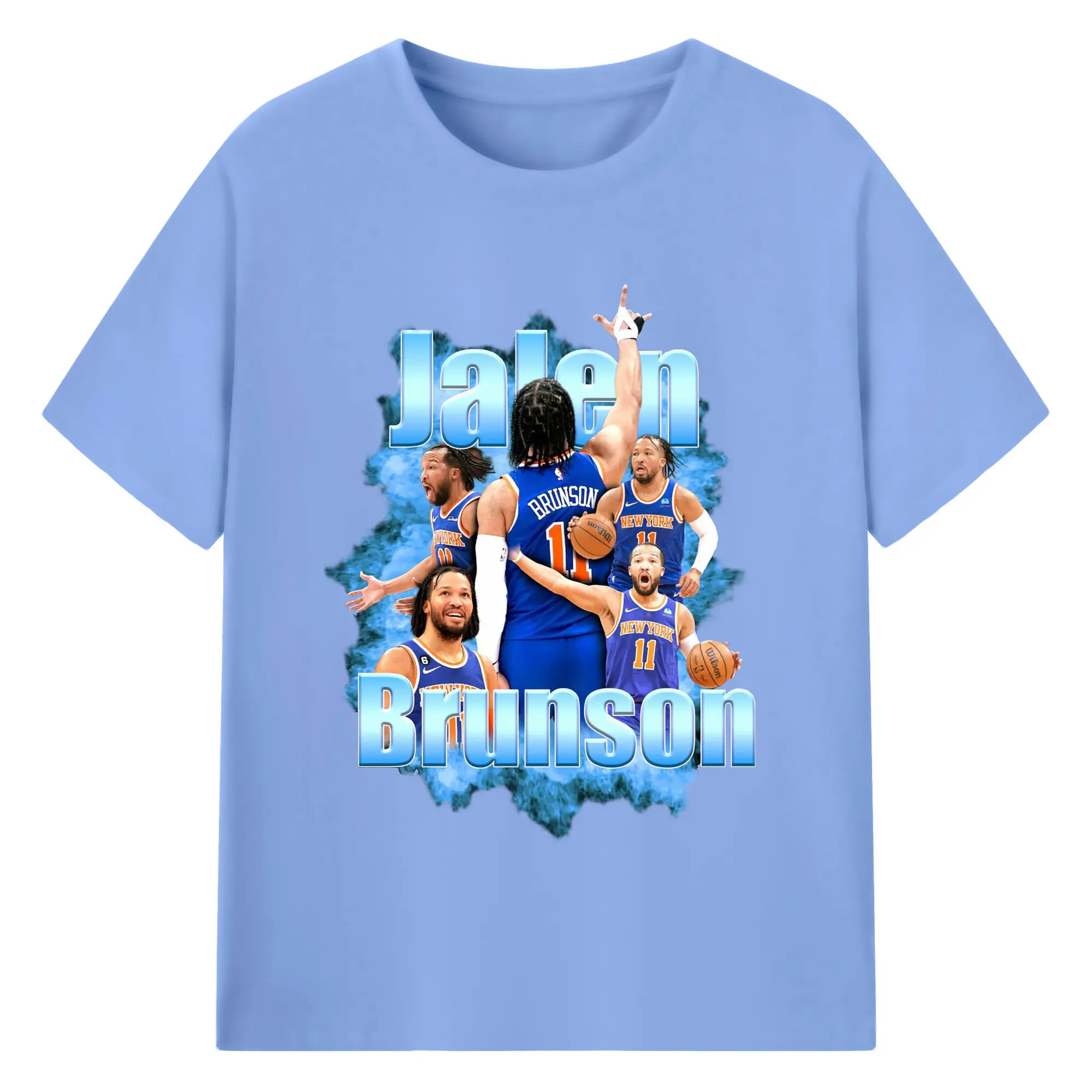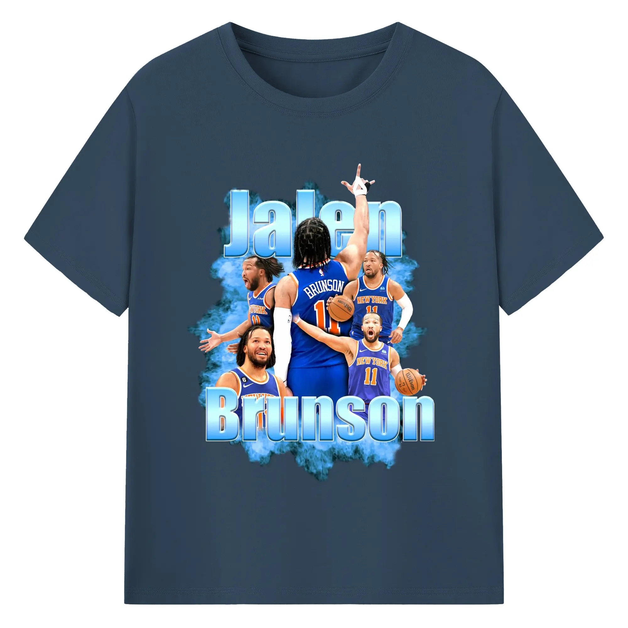 Jalen Brunson Blue Smoke Graphic Shirt - 180g Cotton T-Shirt With Front Heat Transfer Print – Soft, Lightweight, Fitted Design – Comfortable Casual Wear For Sports & Everyday Use