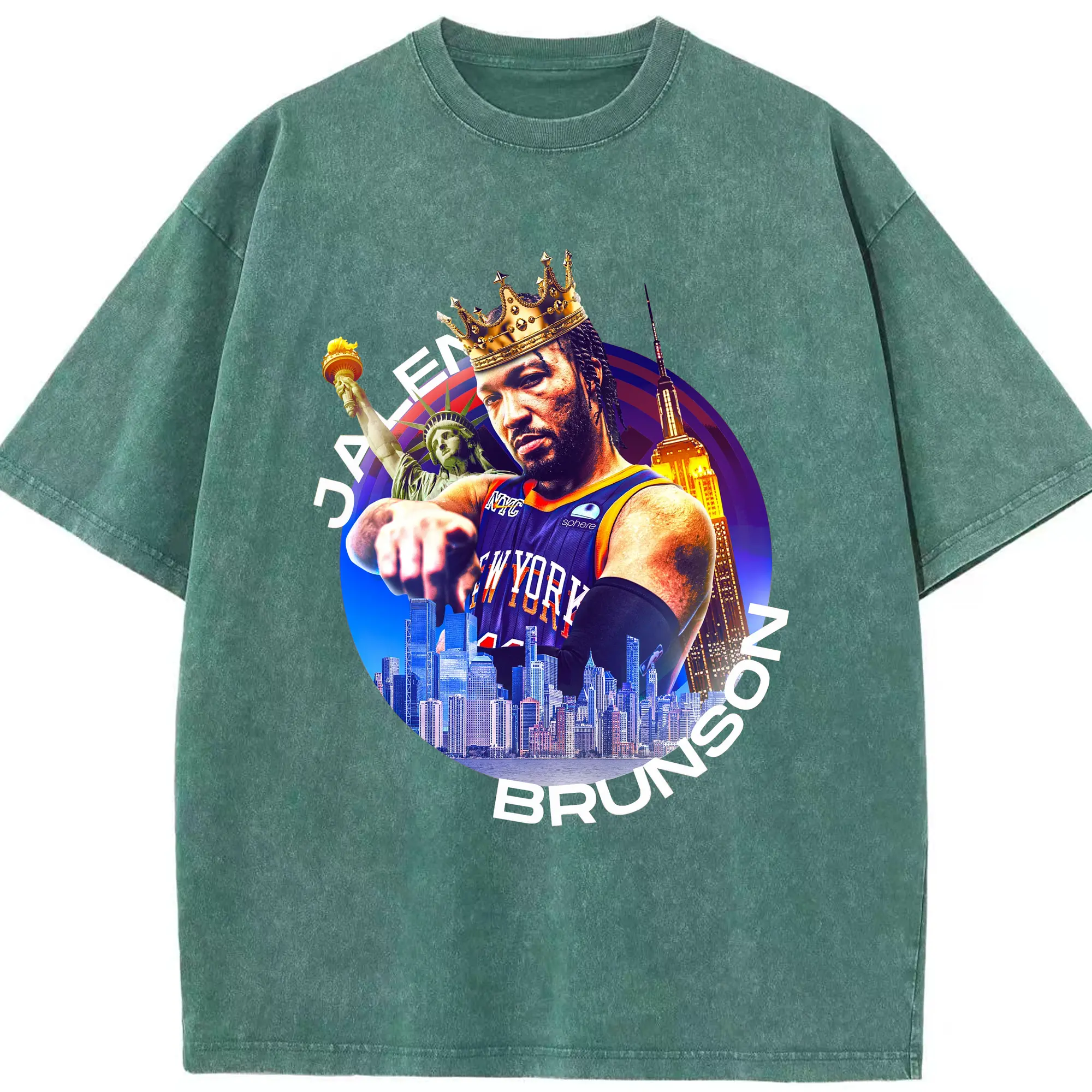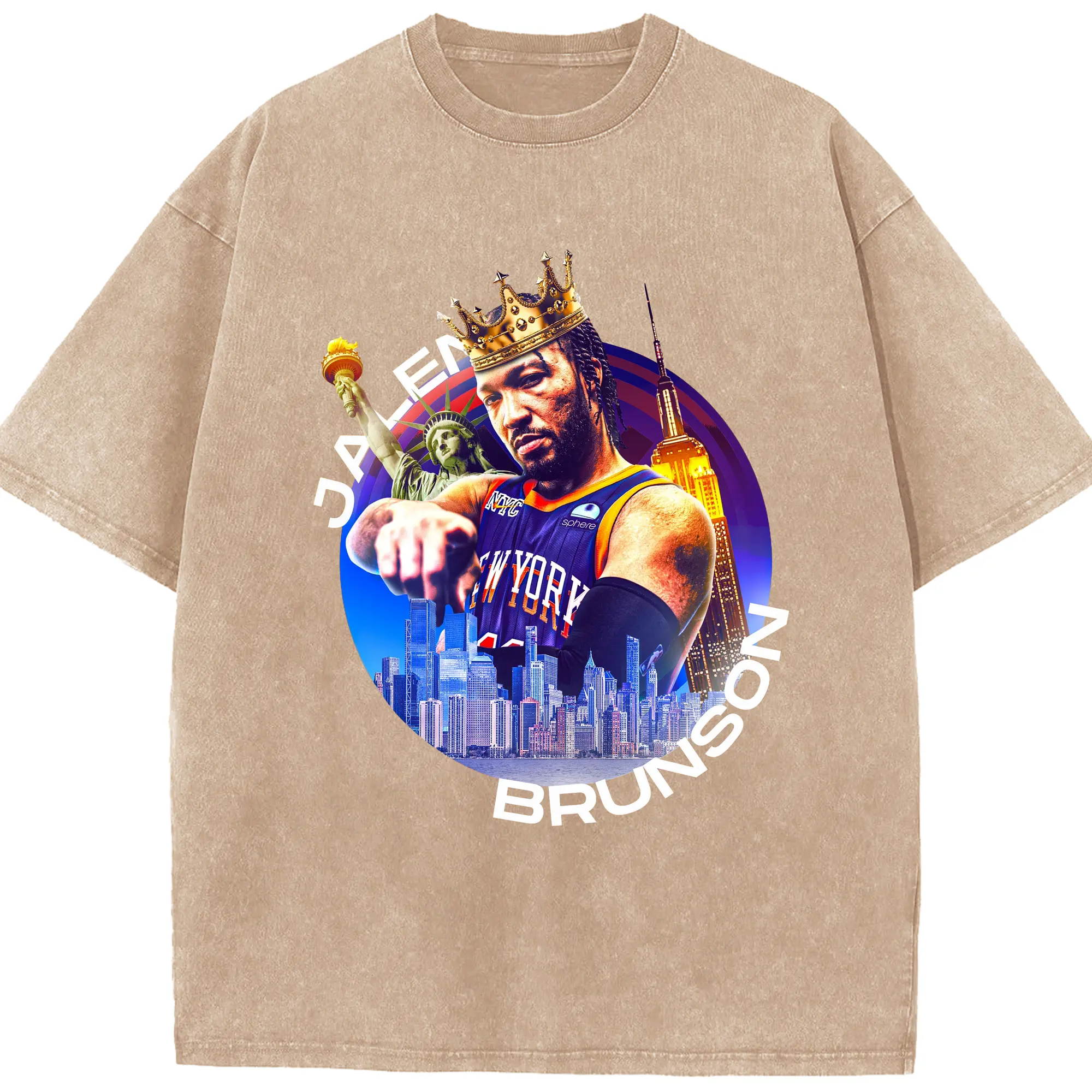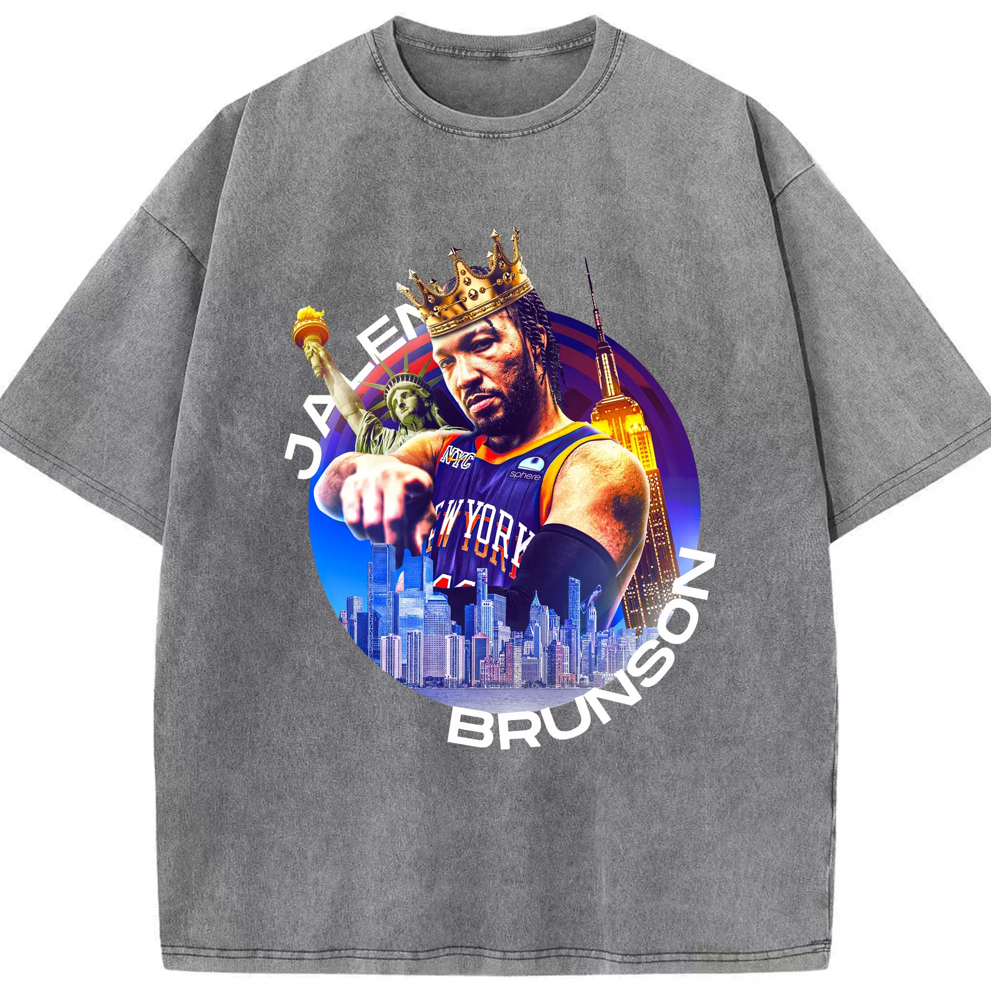 Jalen Brunson King of the New York Knicks Image Shirt - Washed Vintage Look 230g Cotton Oversized T-Shirt With Front Heat Transfer Print – Soft, Lightweight, Stylish Fit – Comfortable Casual Wear For Sports & Everyday Use