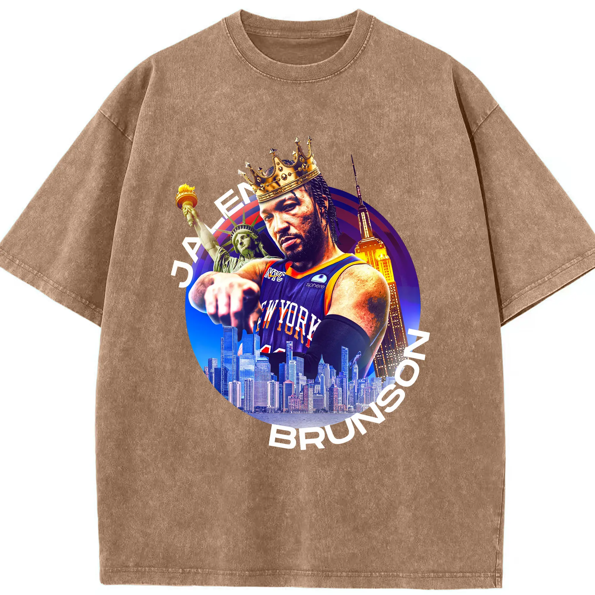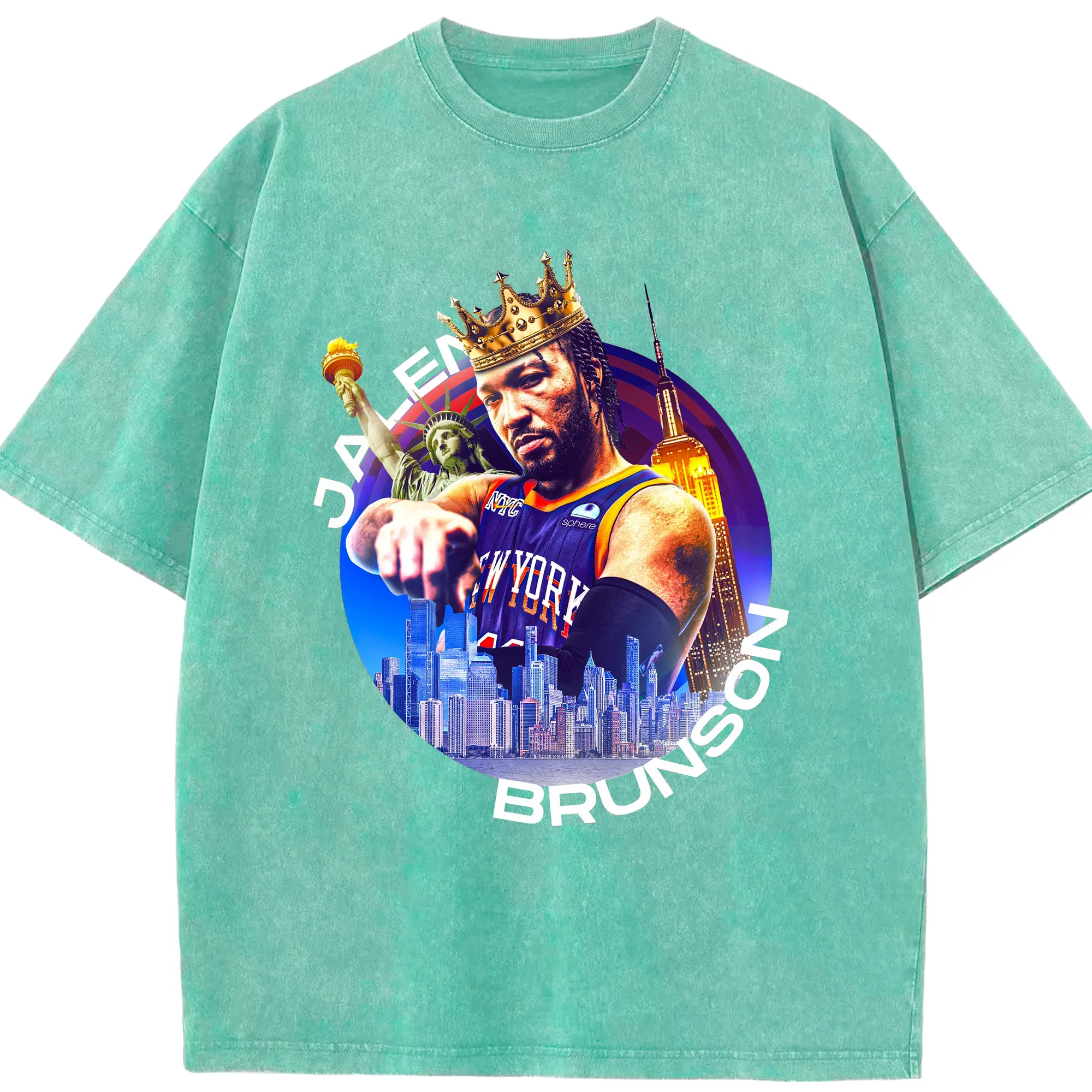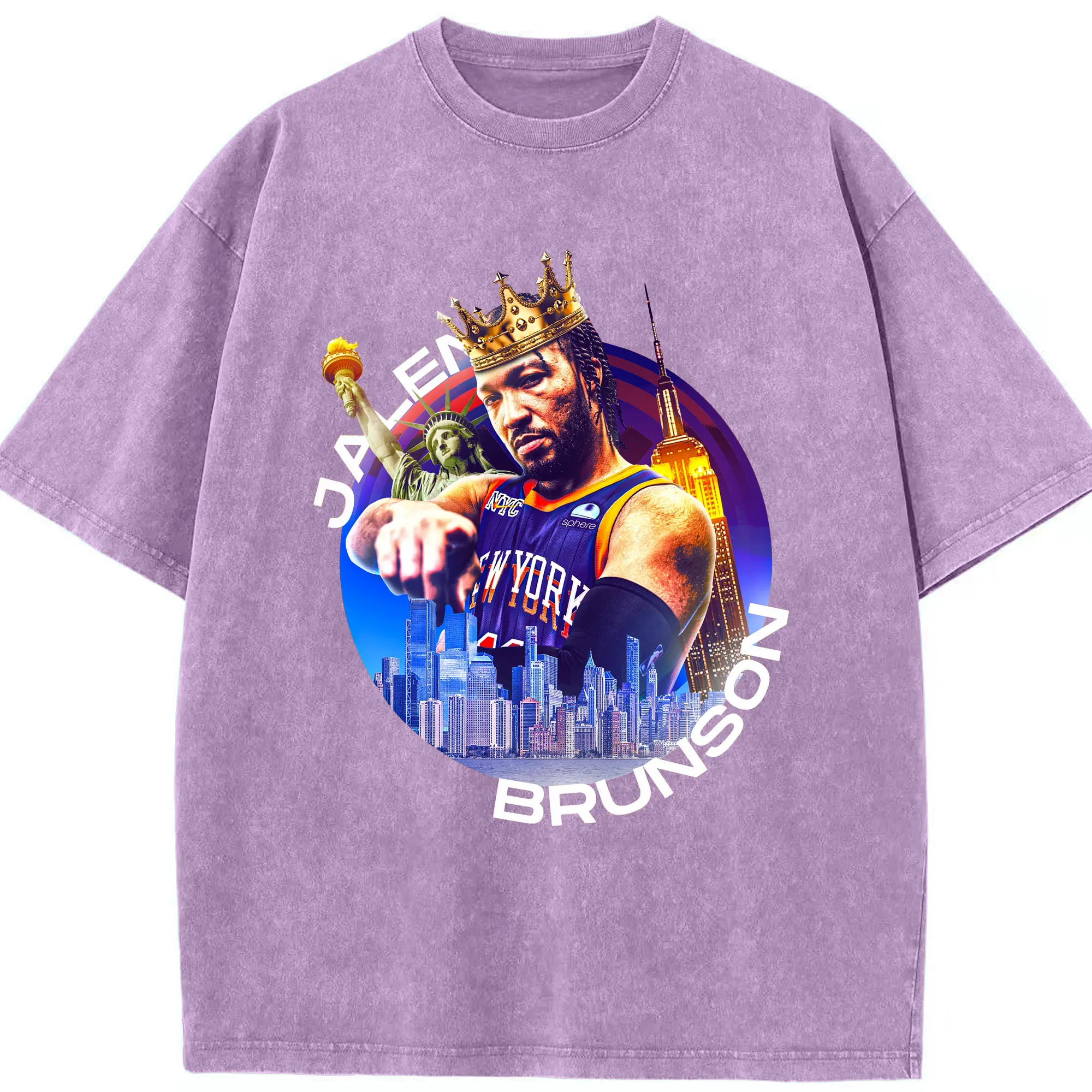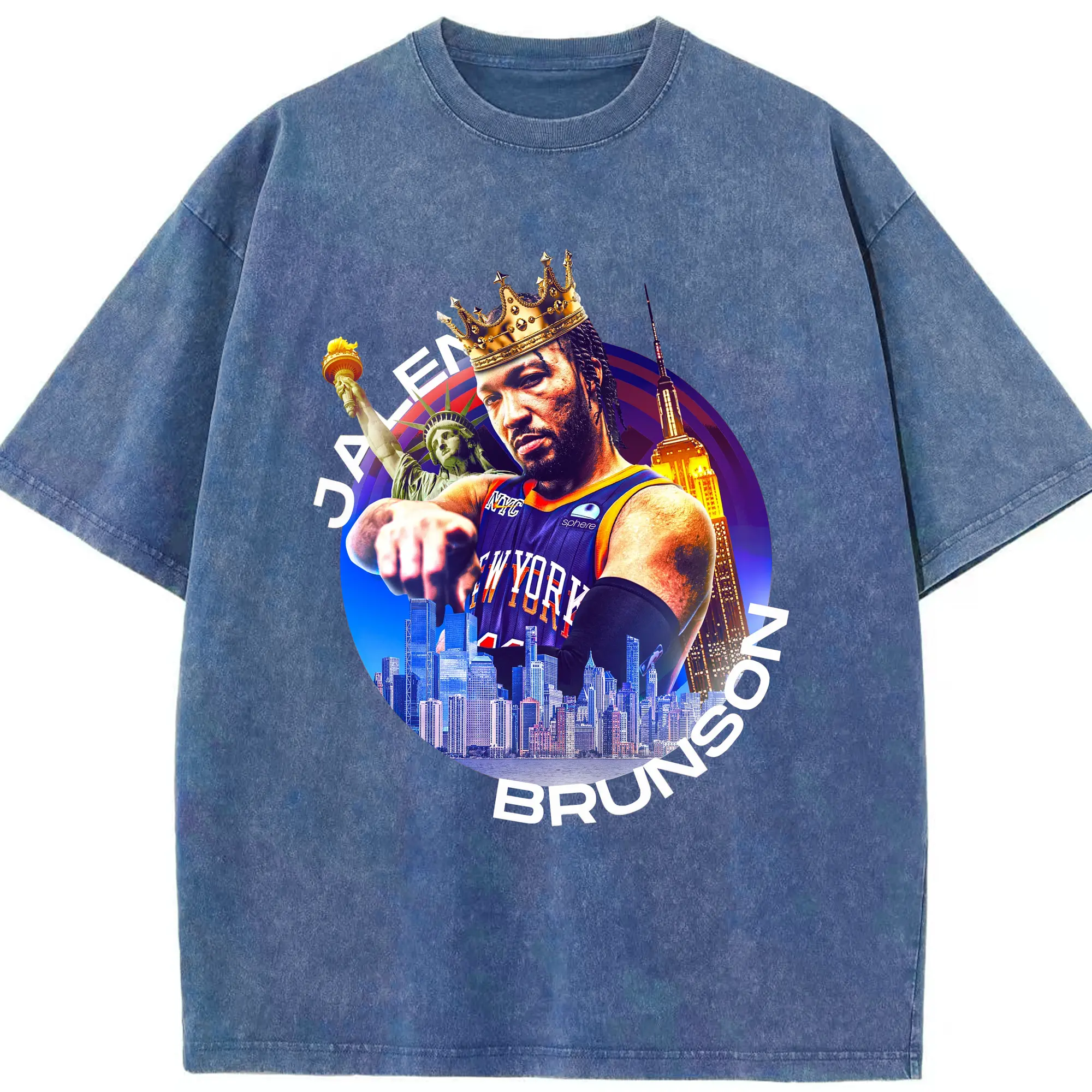 Jalen Brunson King of the New York Knicks Image Shirt - Washed Vintage Look 230g Cotton Oversized T-Shirt With Front Heat Transfer Print – Soft, Lightweight, Stylish Fit – Comfortable Casual Wear For Sports & Everyday Use