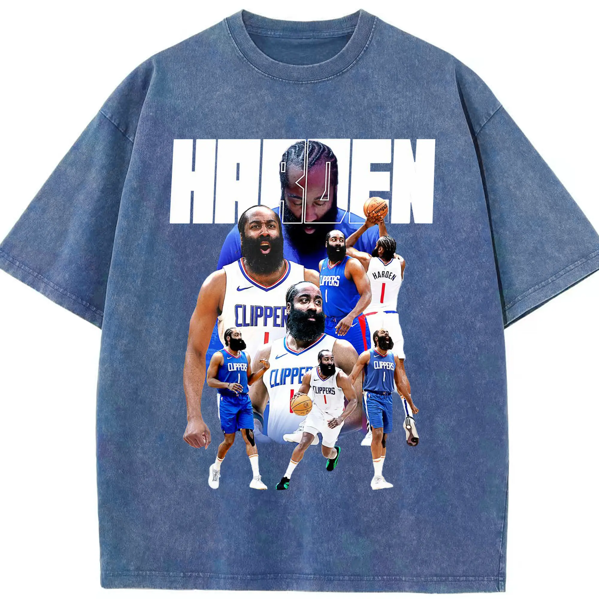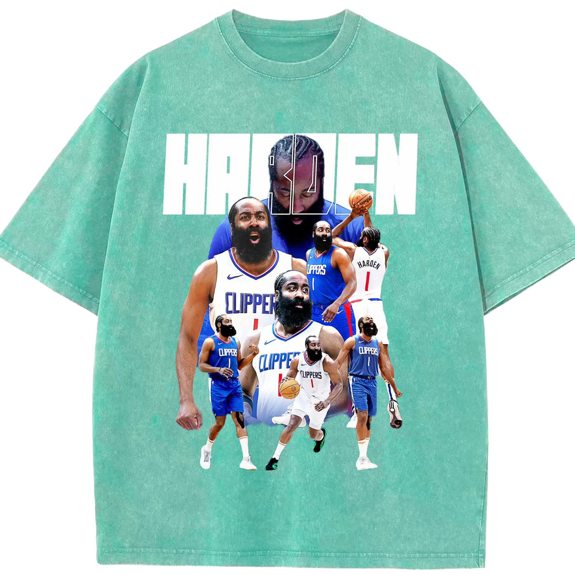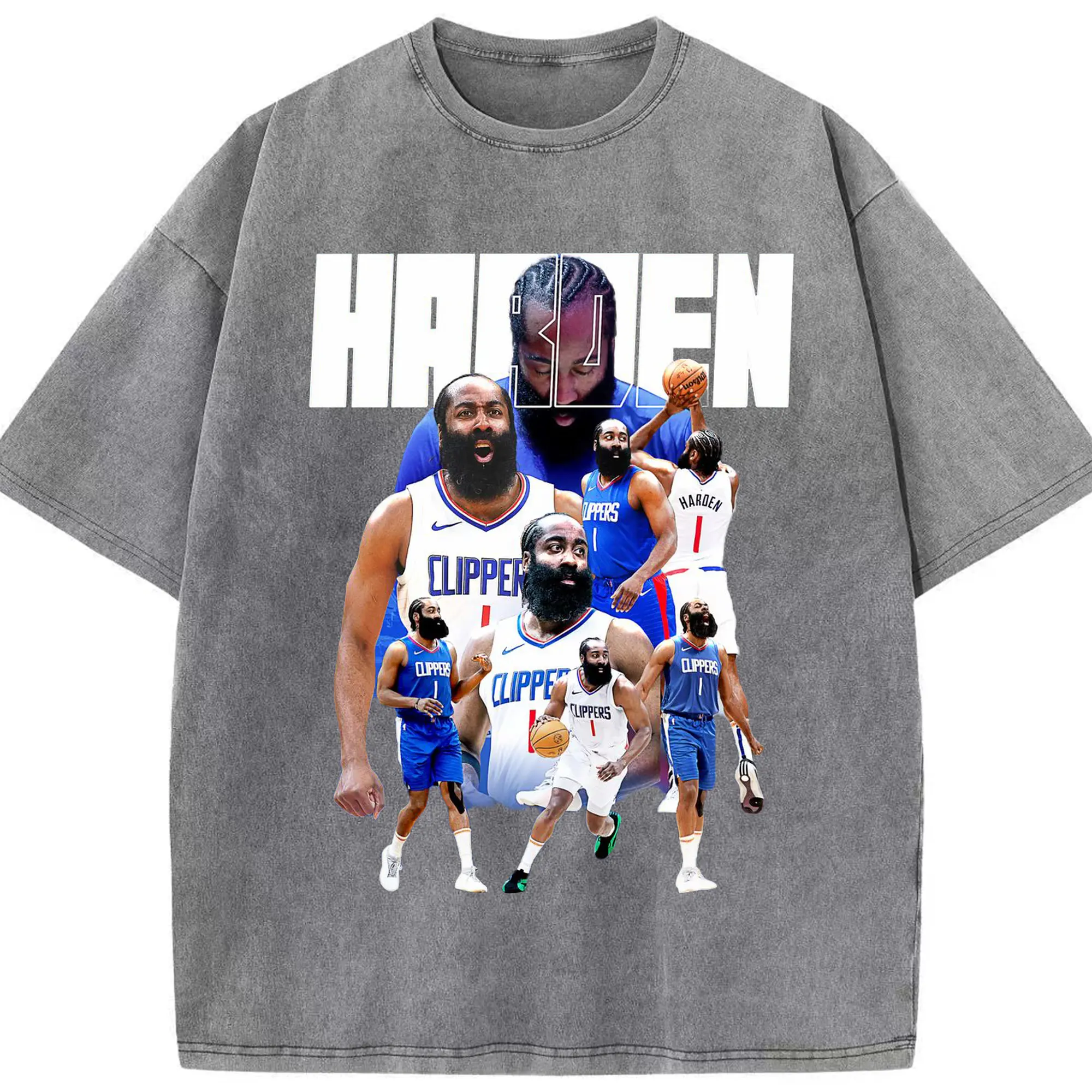 James Harden #1 LA Clippers Shirt - Washed Vintage Look 230g Cotton Oversized T-Shirt With Front Heat Transfer Print – Soft, Lightweight, Stylish Fit – Comfortable Casual Wear For Sports & Everyday Use