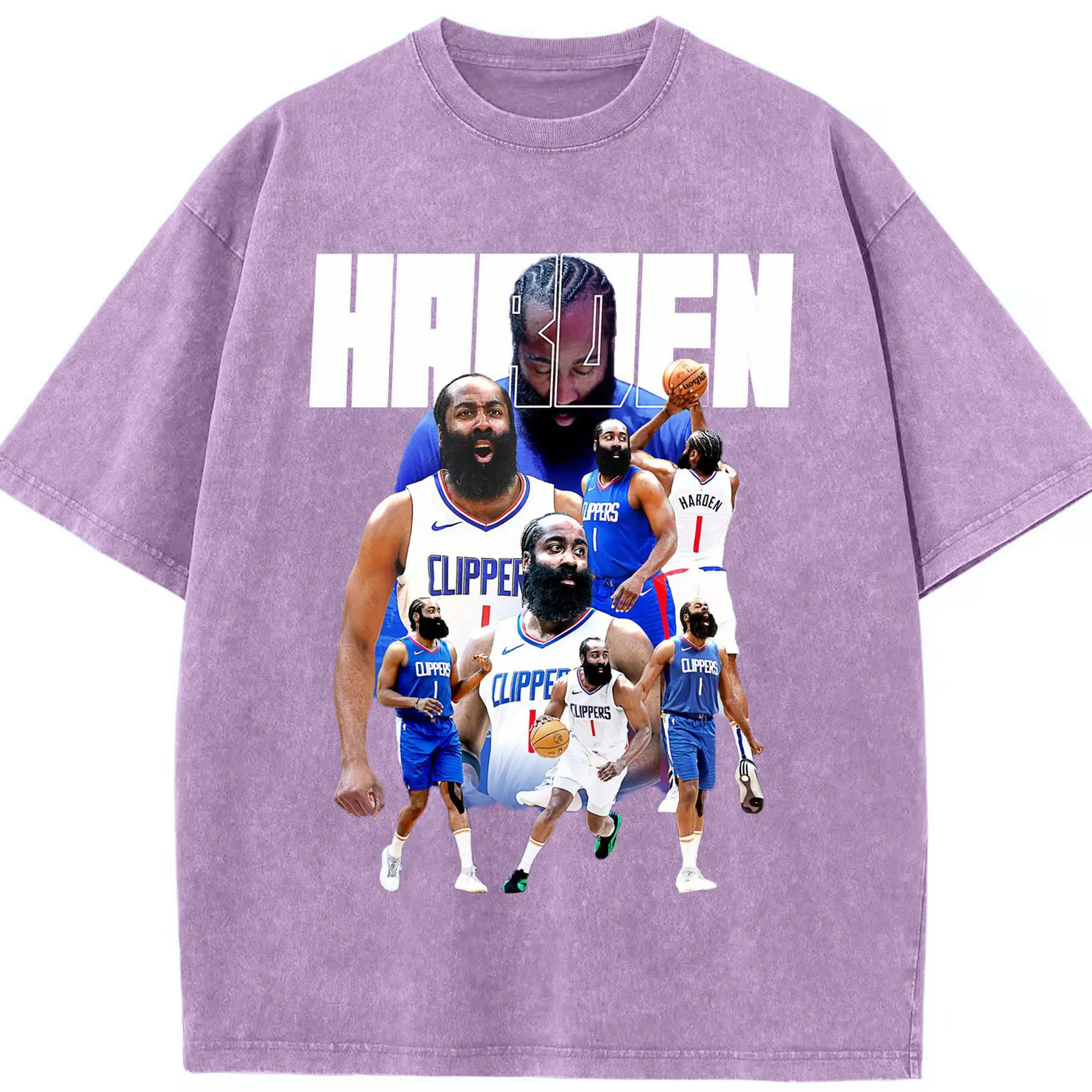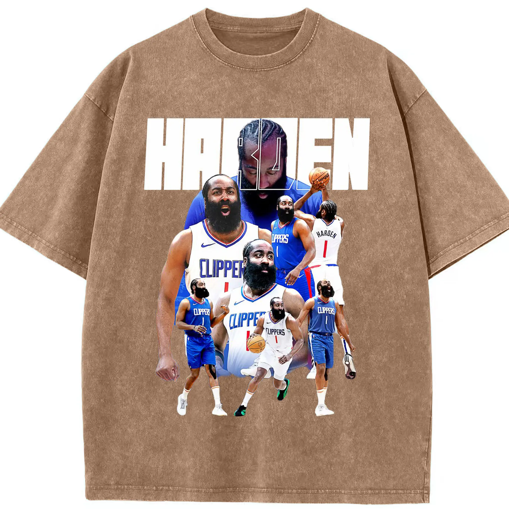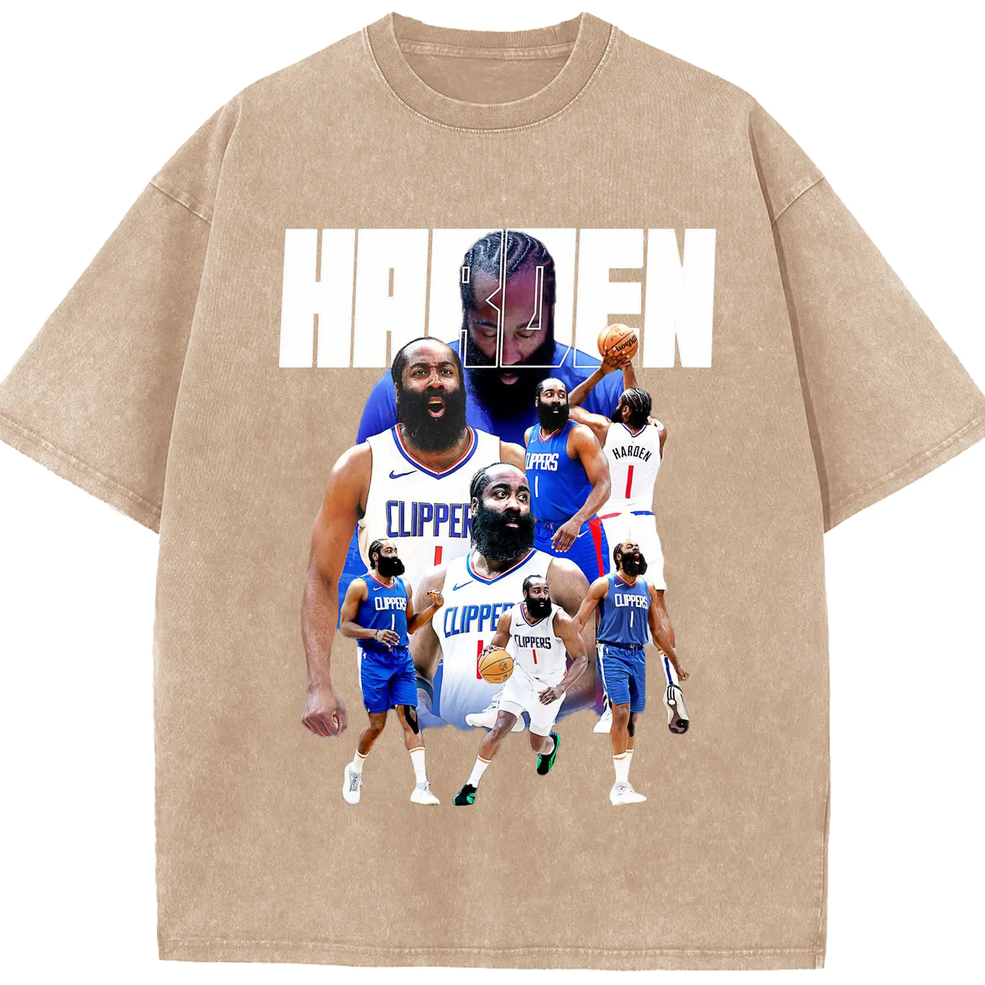 James Harden #1 LA Clippers Shirt - Washed Vintage Look 230g Cotton Oversized T-Shirt With Front Heat Transfer Print – Soft, Lightweight, Stylish Fit – Comfortable Casual Wear For Sports & Everyday Use