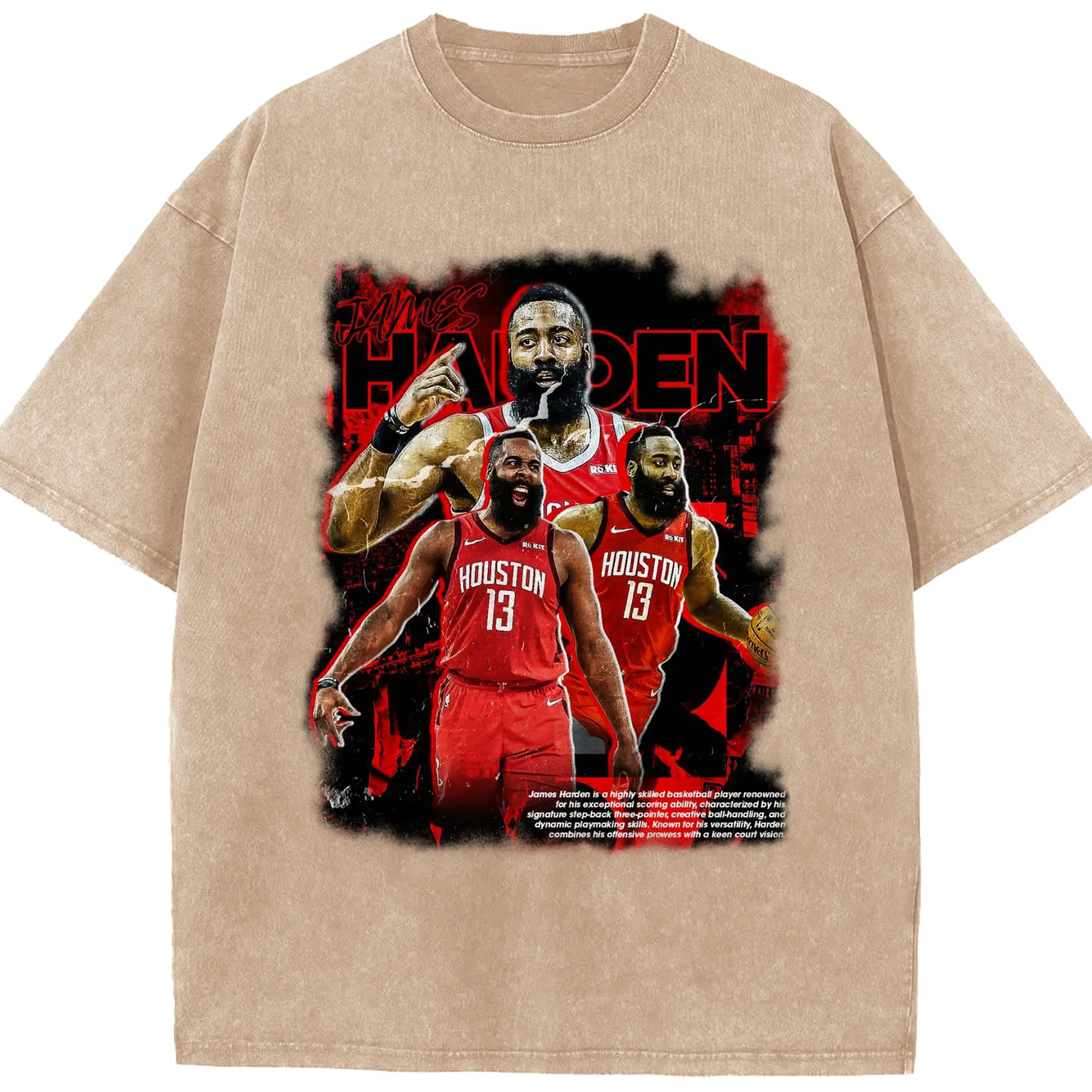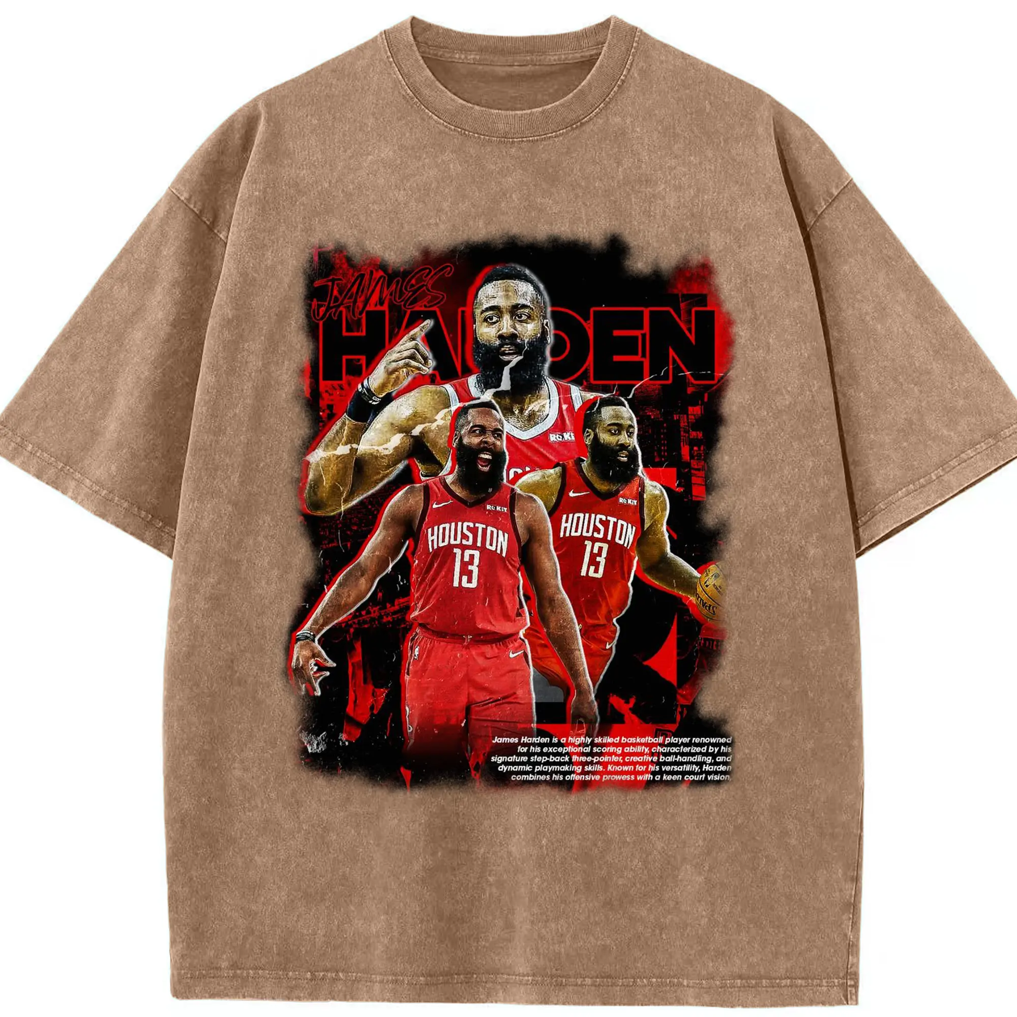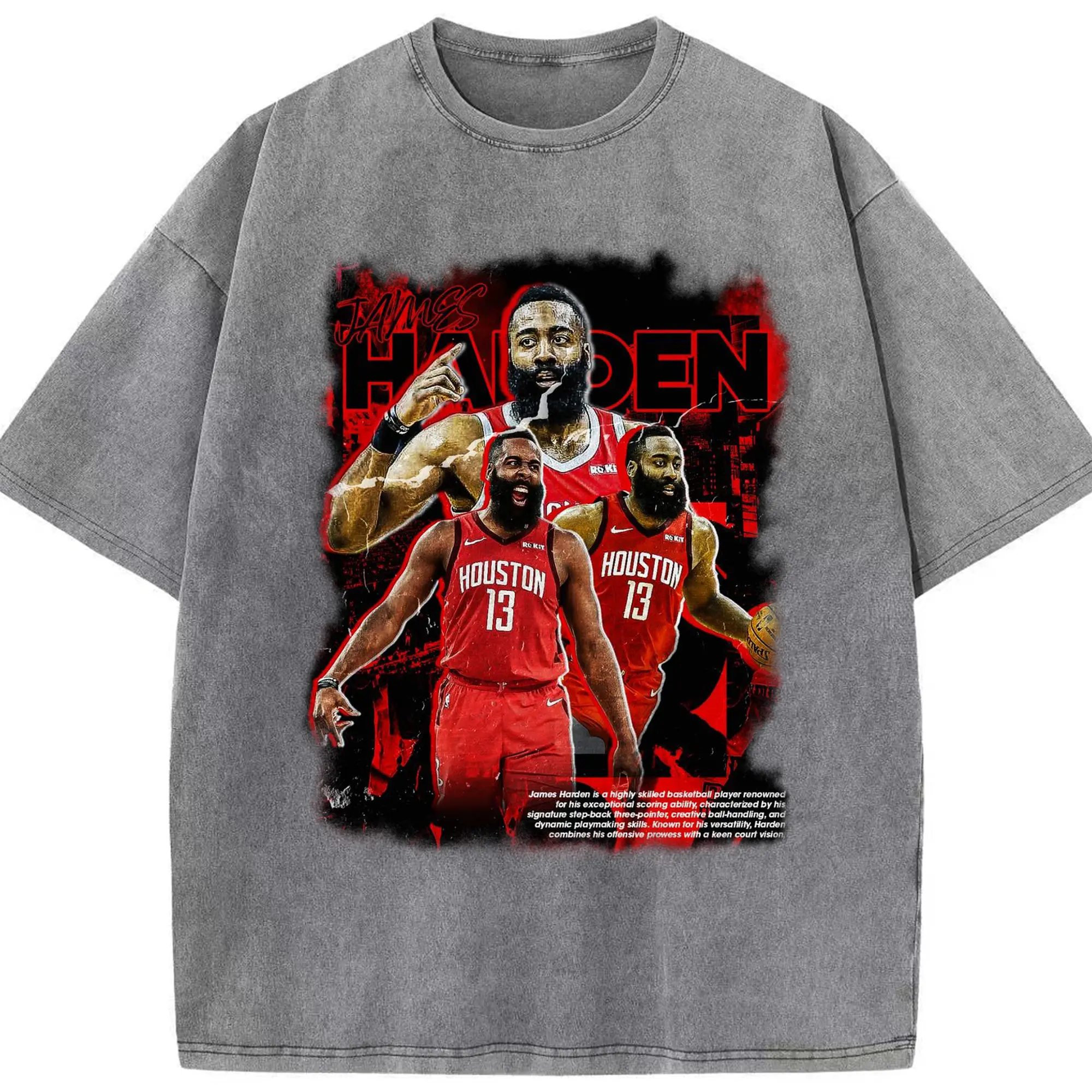 James Harden #13 Houston Rockets MVP Shirt - Washed Vintage Look 230g Cotton Oversized T-Shirt With Front Heat Transfer Print – Soft, Lightweight, Stylish Fit – Comfortable Casual Wear For Sports & Everyday Use