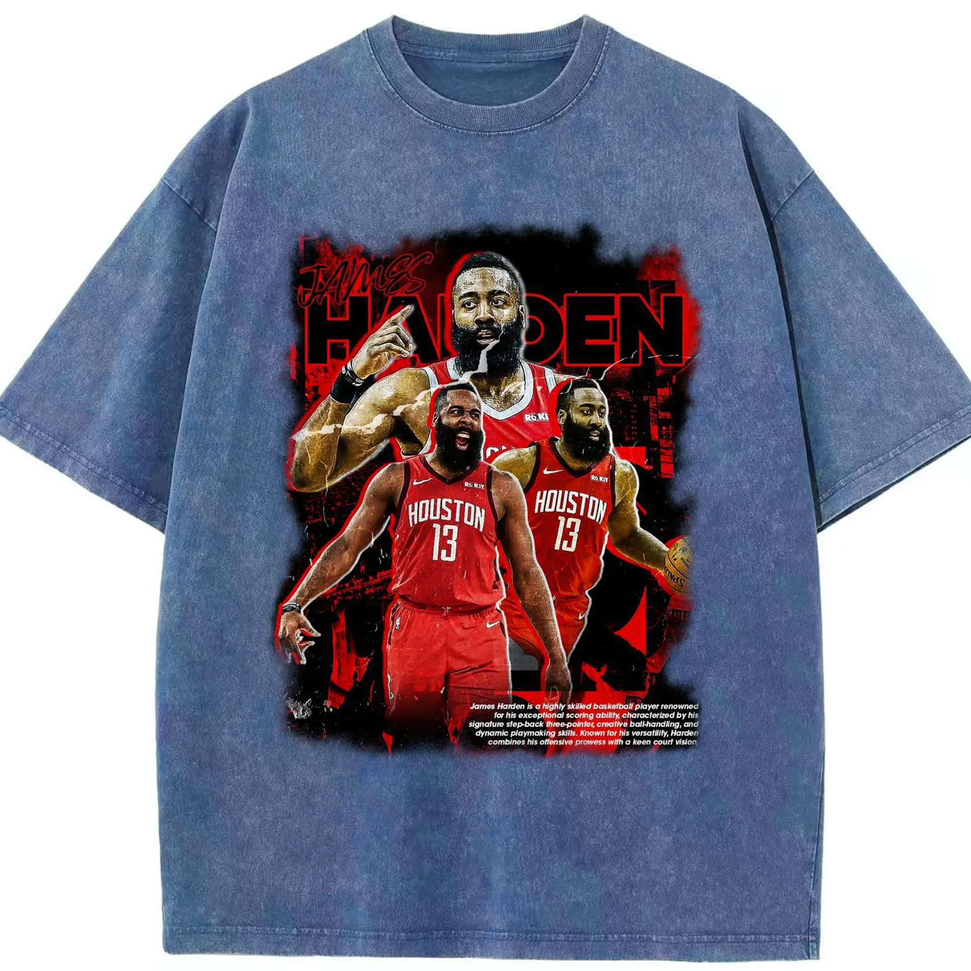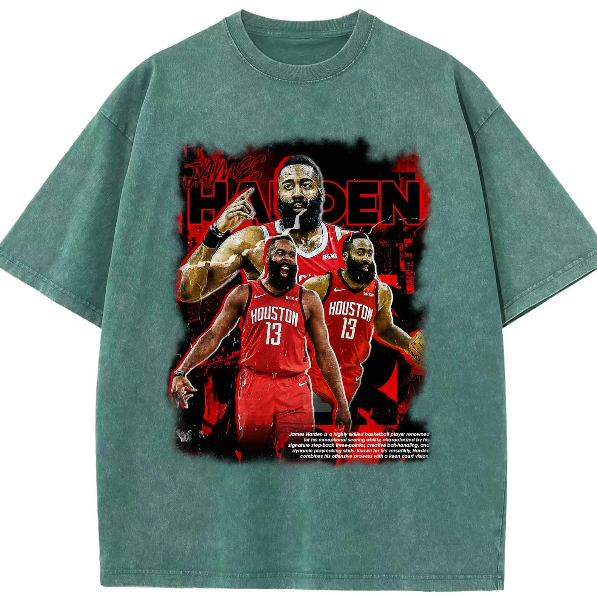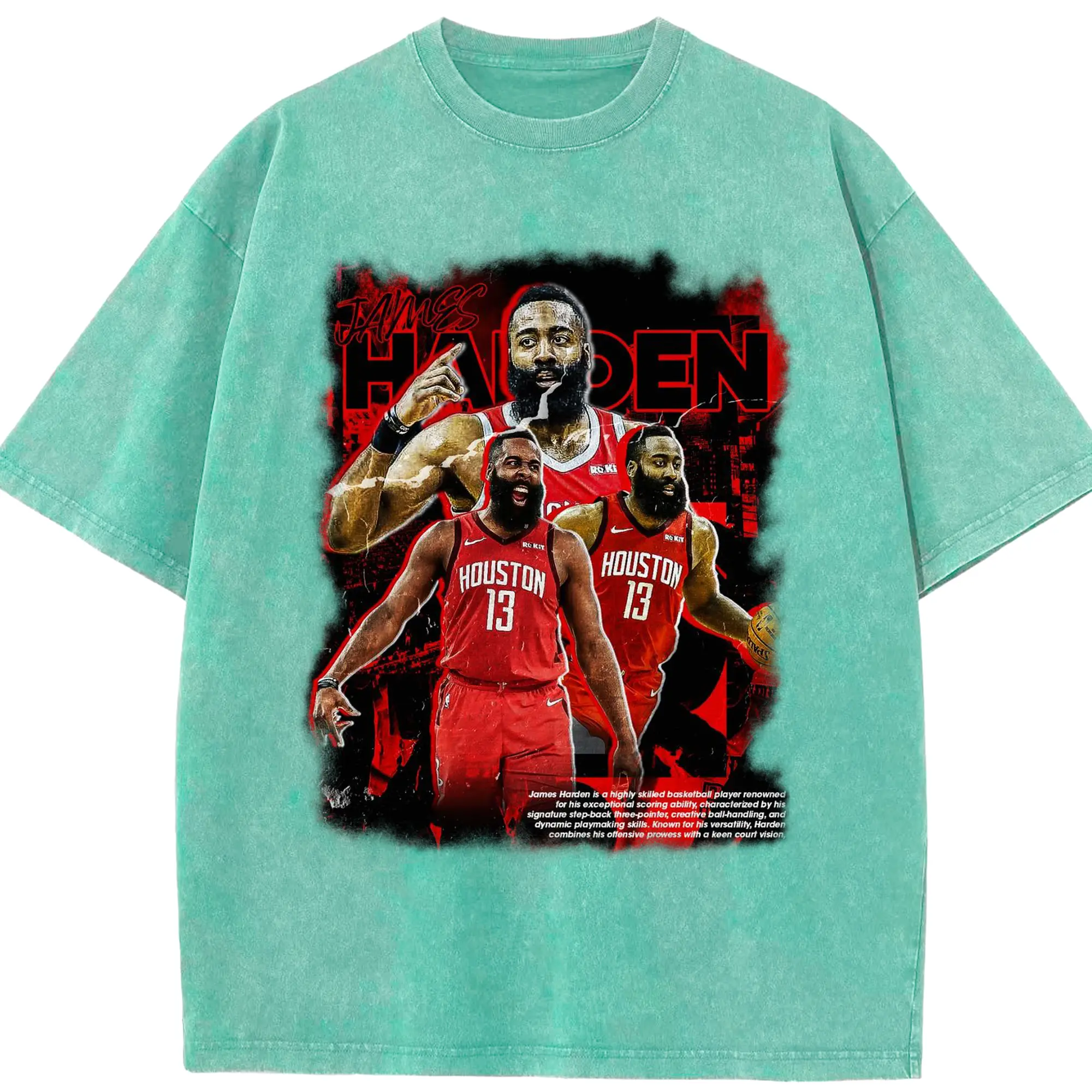 James Harden #13 Houston Rockets MVP Shirt - Washed Vintage Look 230g Cotton Oversized T-Shirt With Front Heat Transfer Print – Soft, Lightweight, Stylish Fit – Comfortable Casual Wear For Sports & Everyday Use