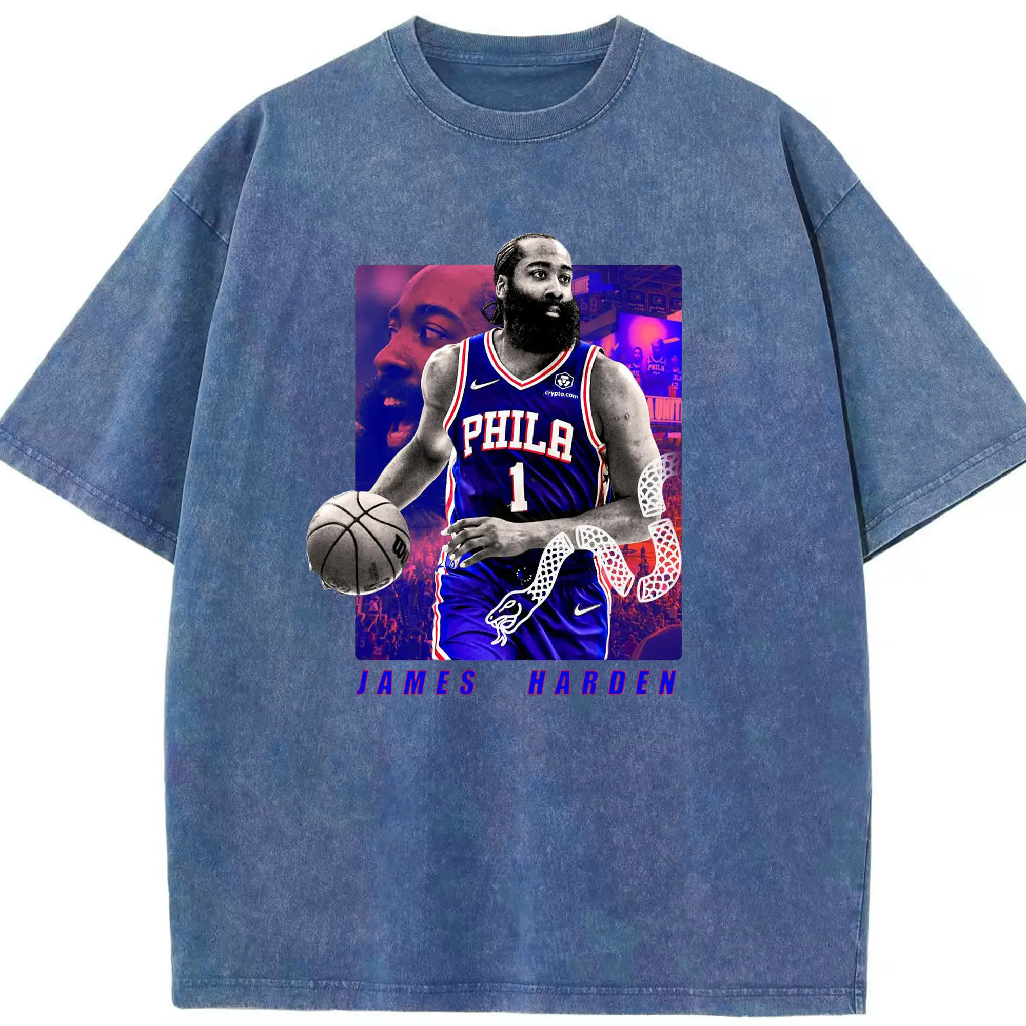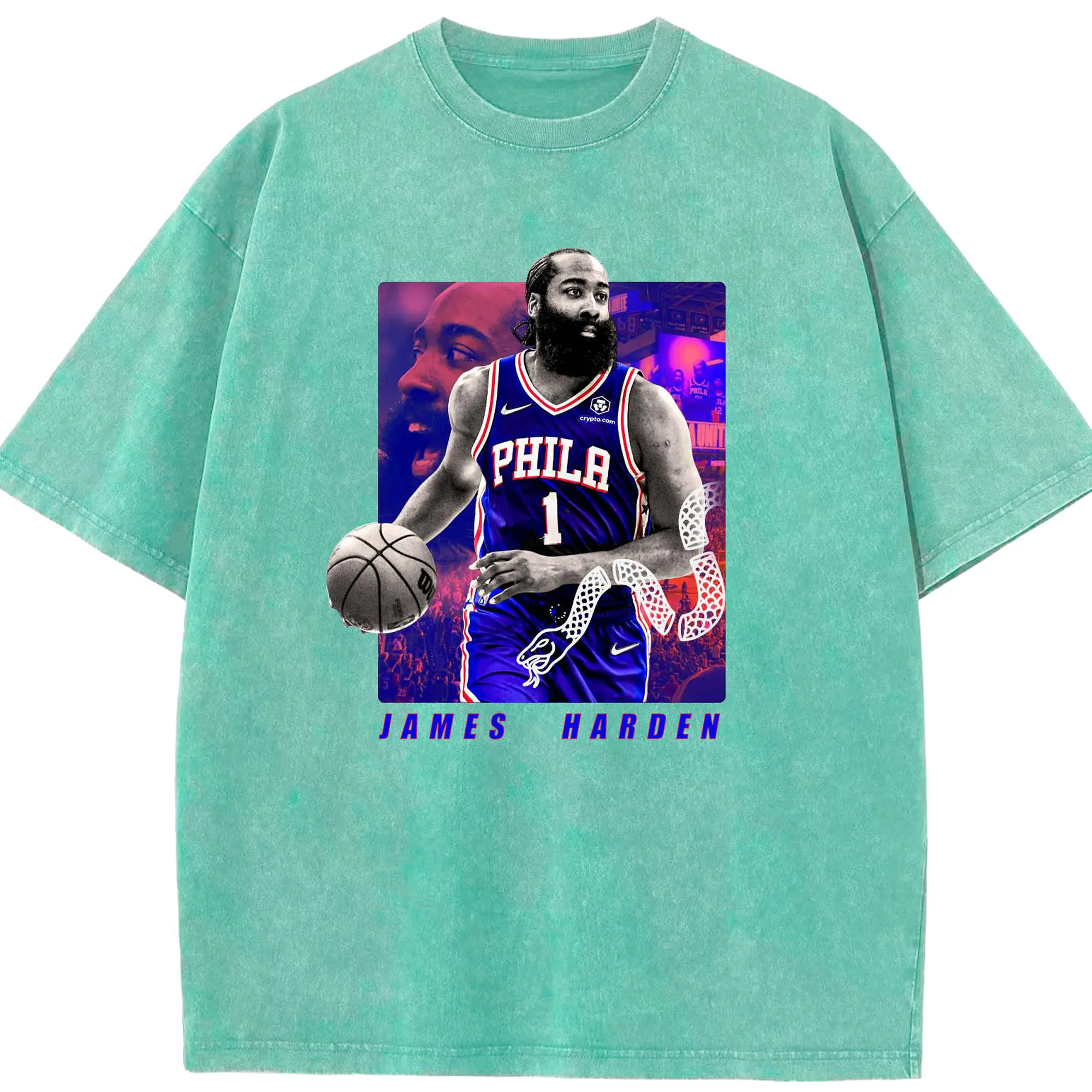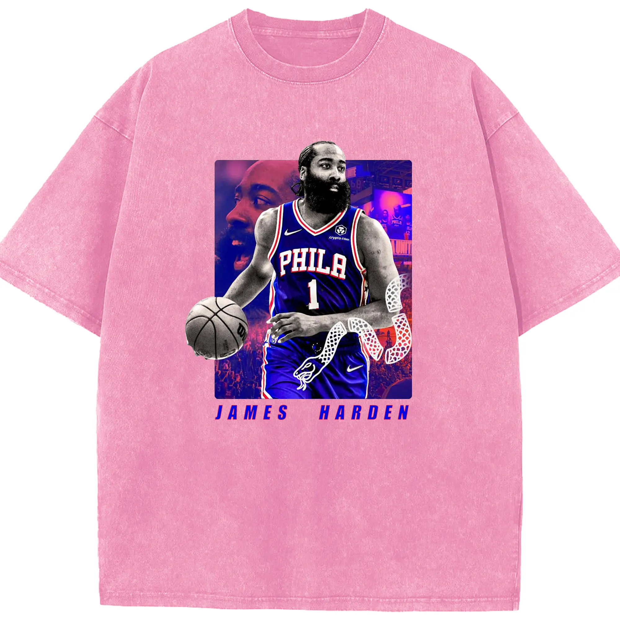 James Harden 76ers #1 White Mamba Art Shirt - Washed Vintage Look 230g Cotton Oversized T-Shirt With Front Heat Transfer Print – Soft, Lightweight, Stylish Fit – Comfortable Casual Wear For Sports & Everyday Use