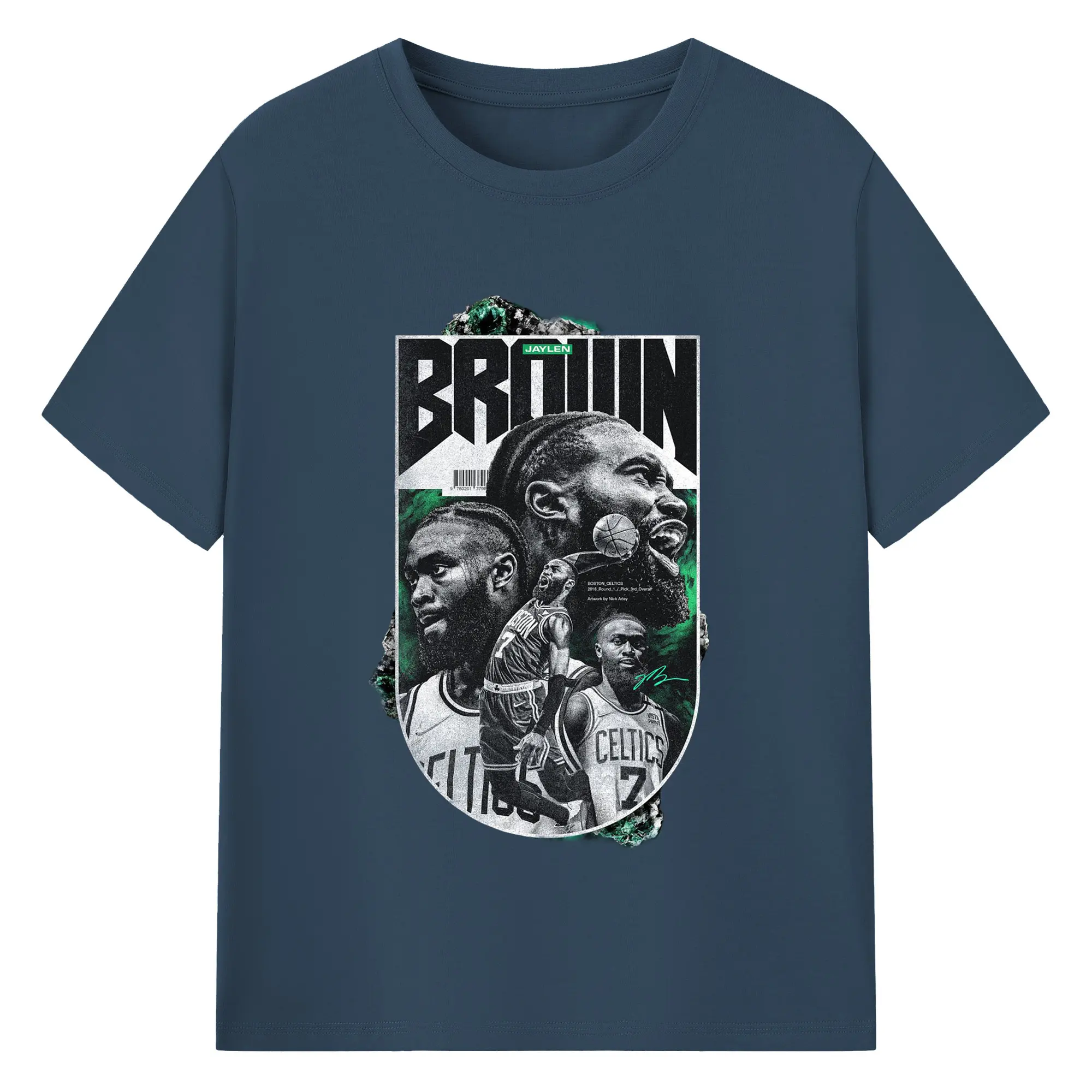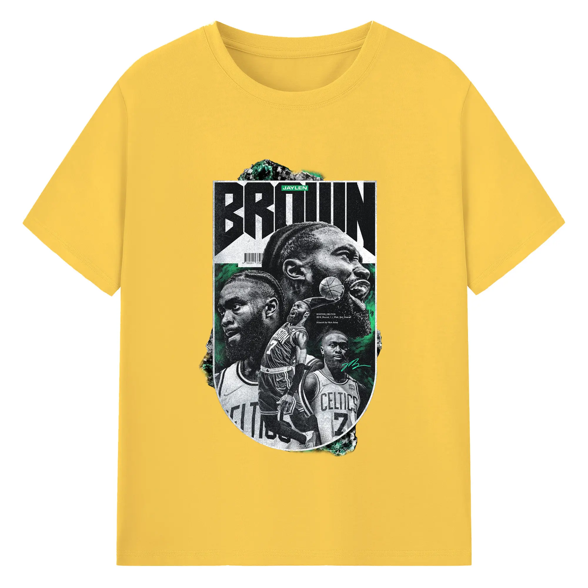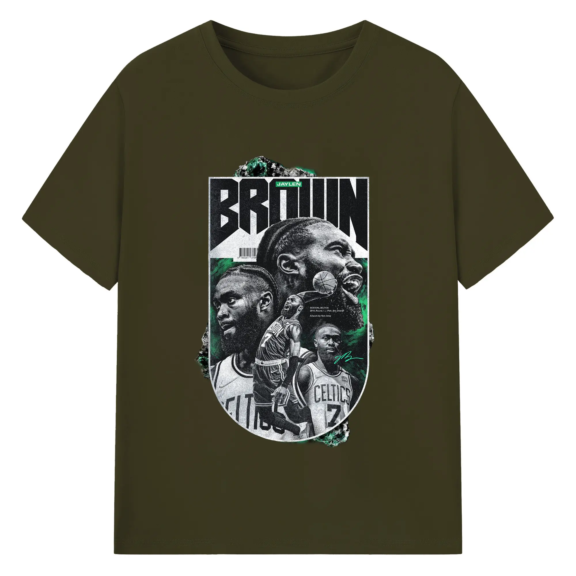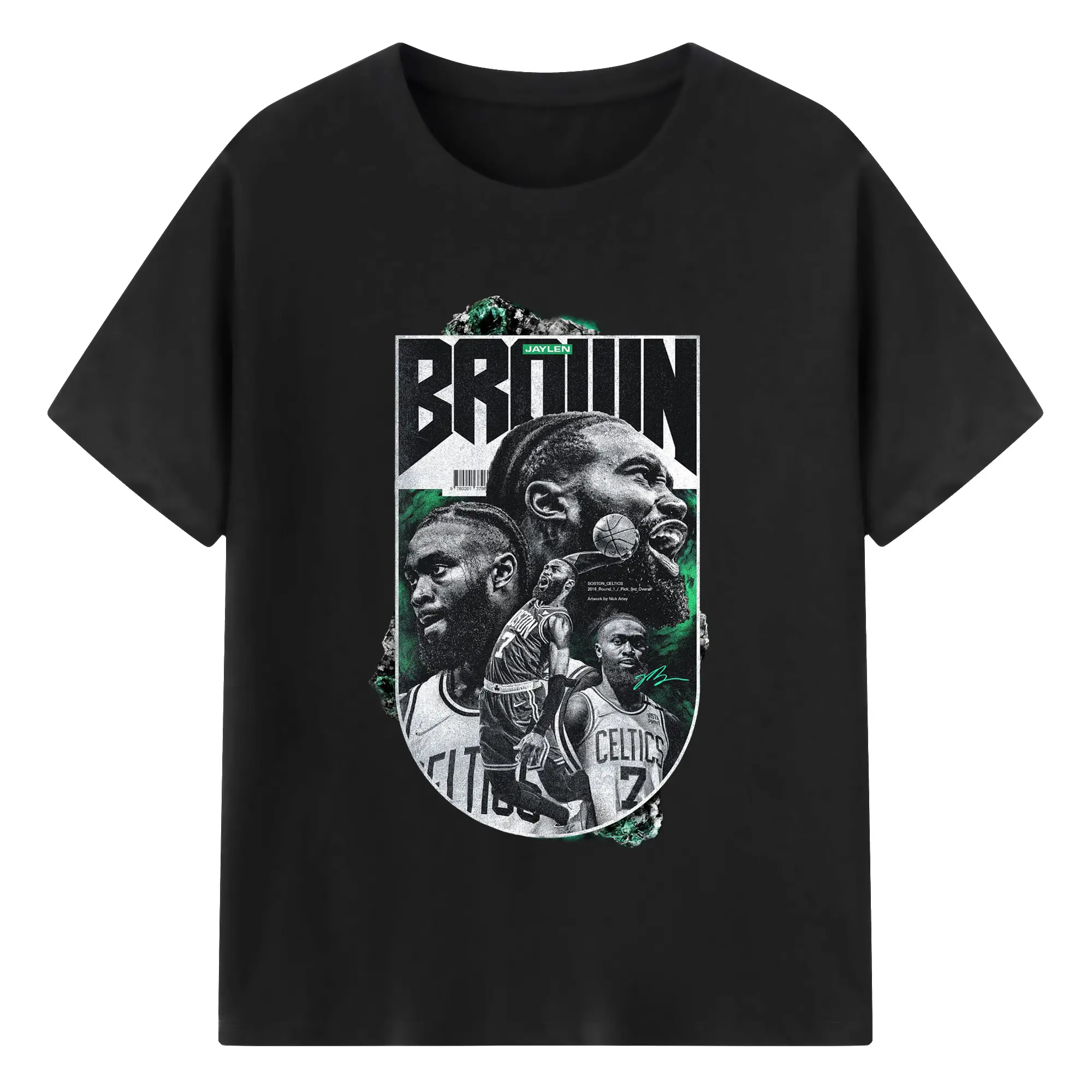 Jaylen Brown Celtics #7 Vintage Black & Green NBA Finals Graphic Shirt - 180g Cotton T-Shirt With Front Heat Transfer Print – Soft, Lightweight, Fitted Design – Comfortable Casual Wear For Sports & Everyday Use