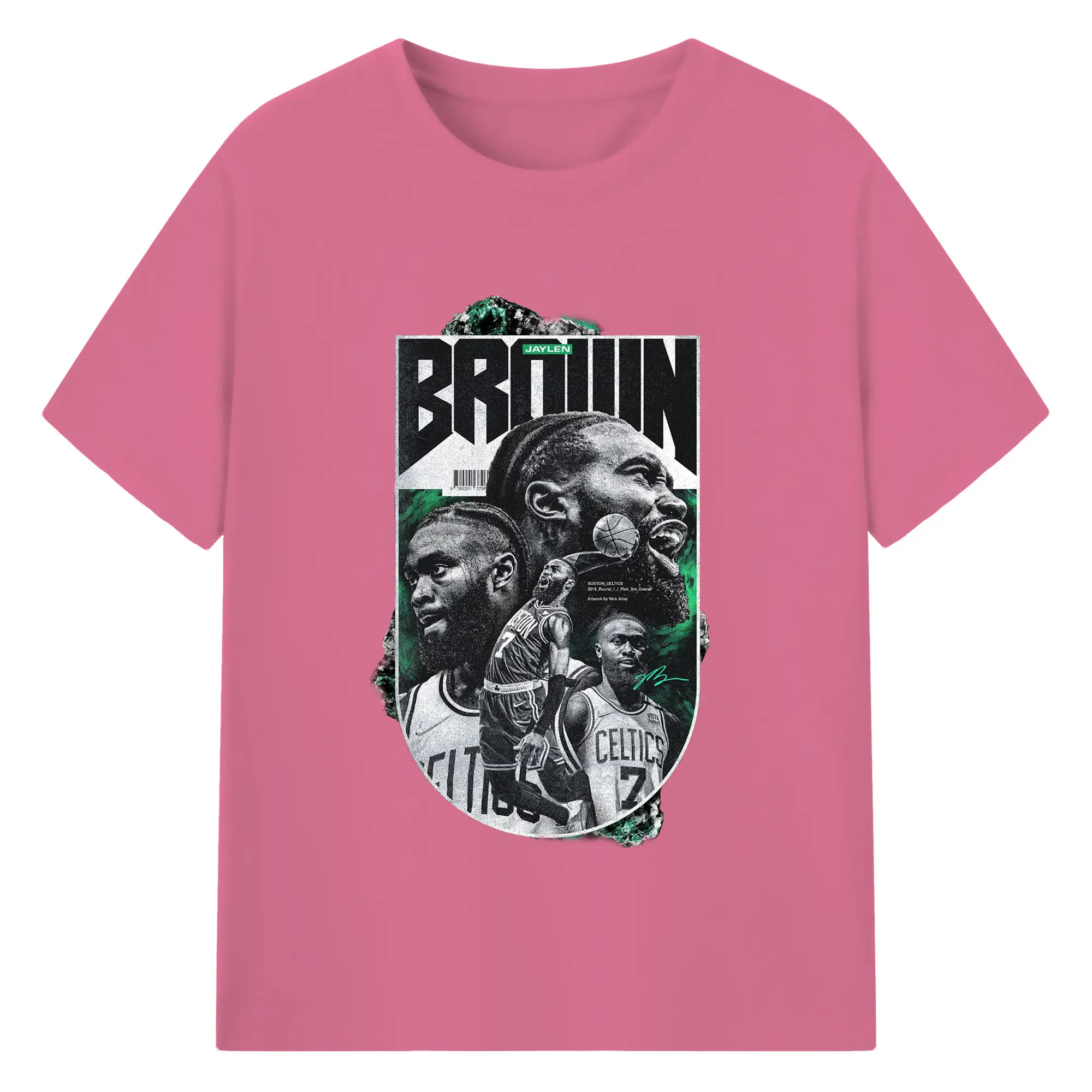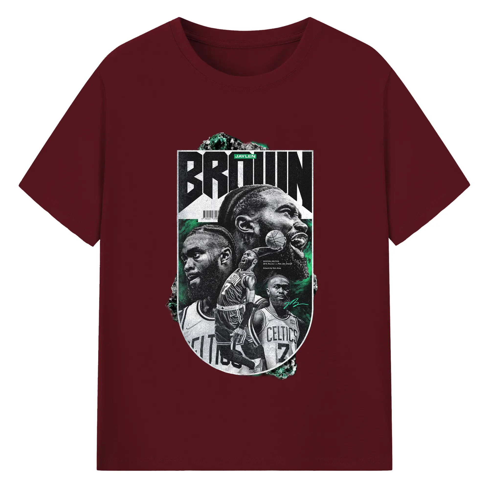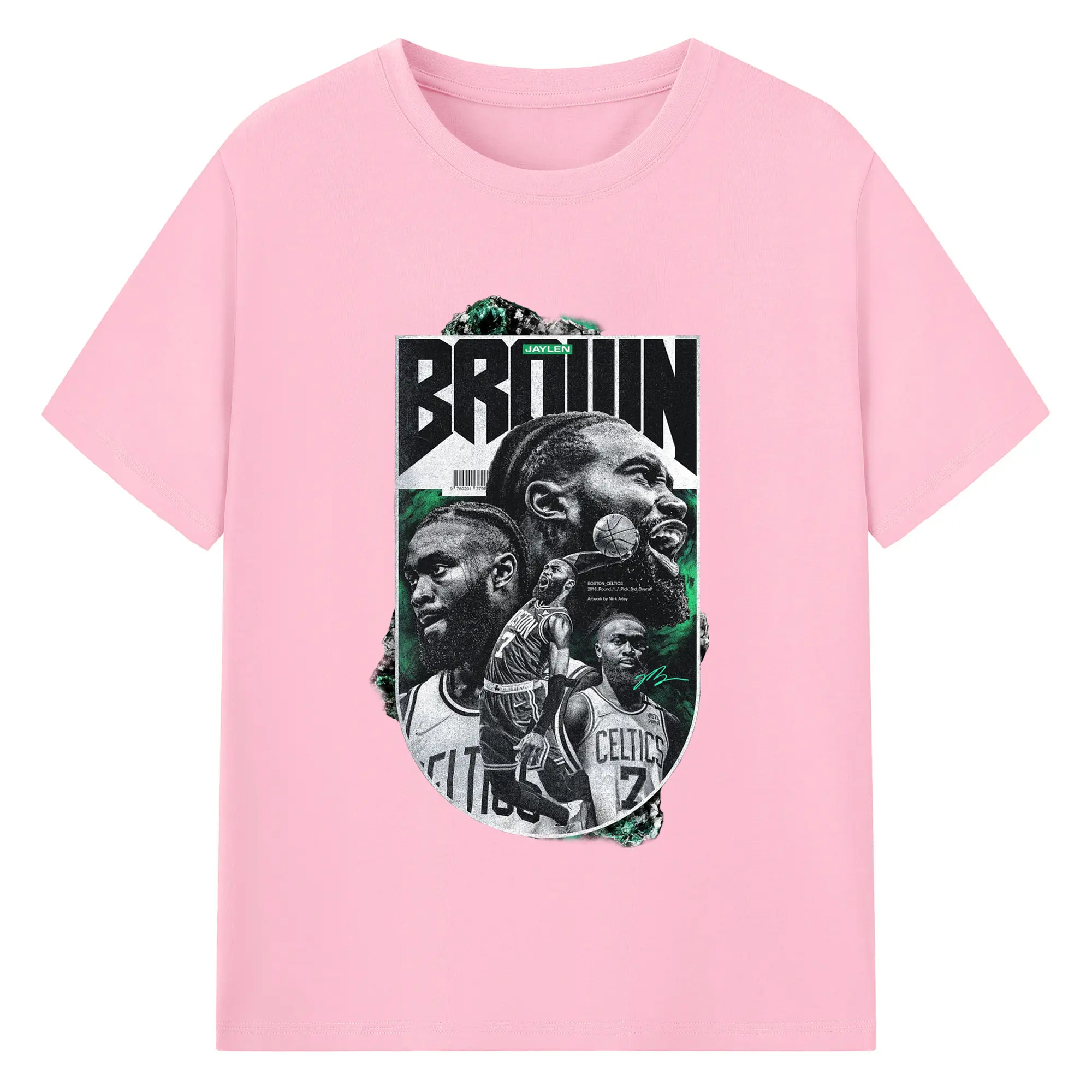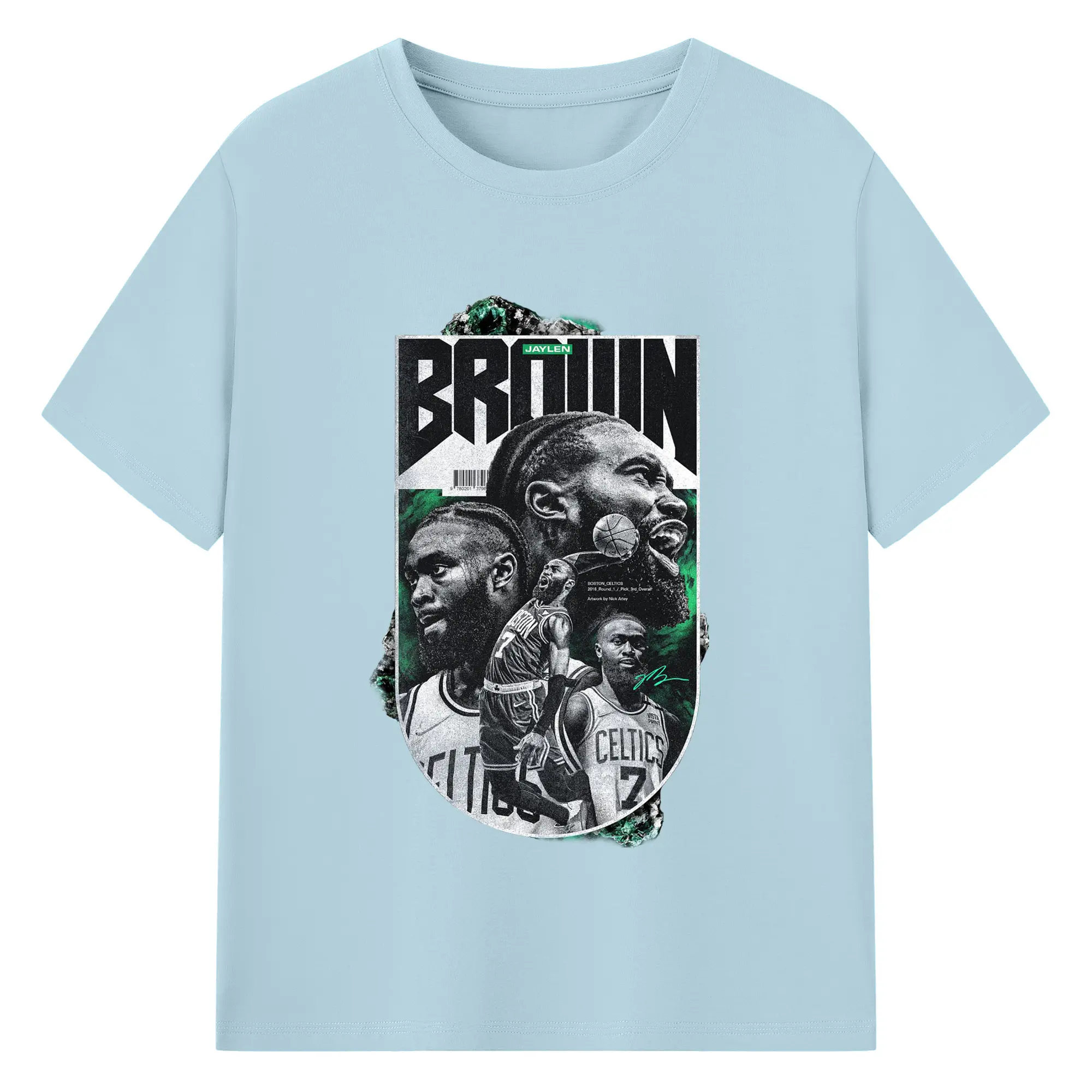 Jaylen Brown Celtics #7 Vintage Black & Green NBA Finals Graphic Shirt - 180g Cotton T-Shirt With Front Heat Transfer Print – Soft, Lightweight, Fitted Design – Comfortable Casual Wear For Sports & Everyday Use