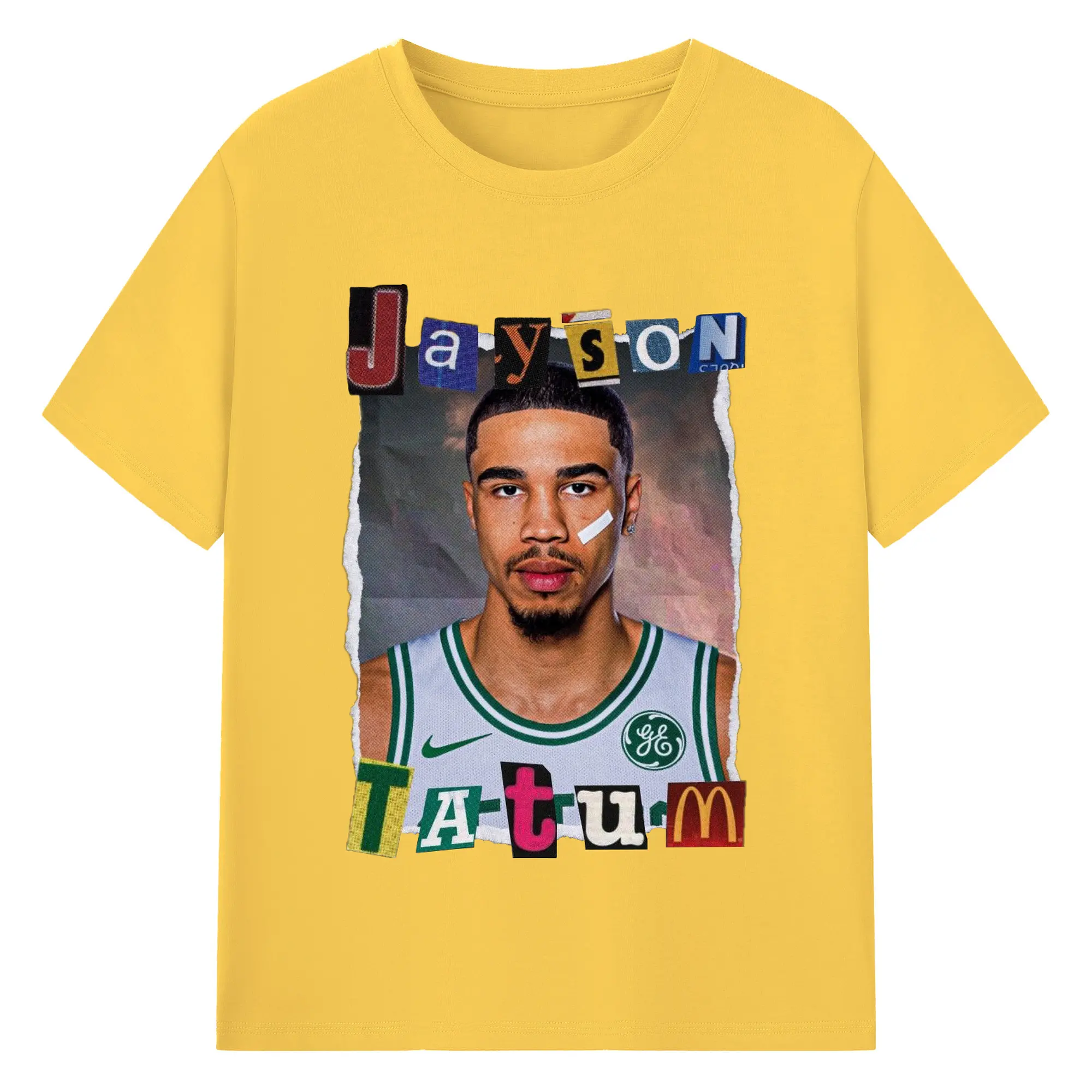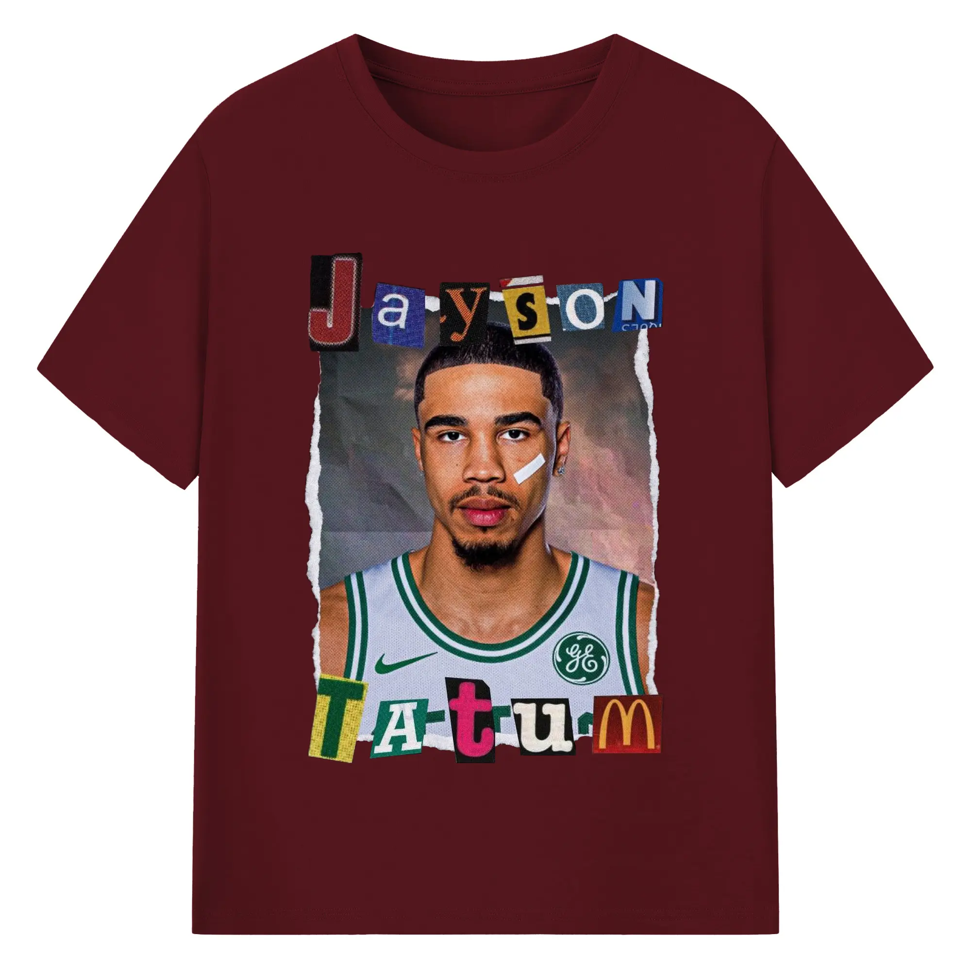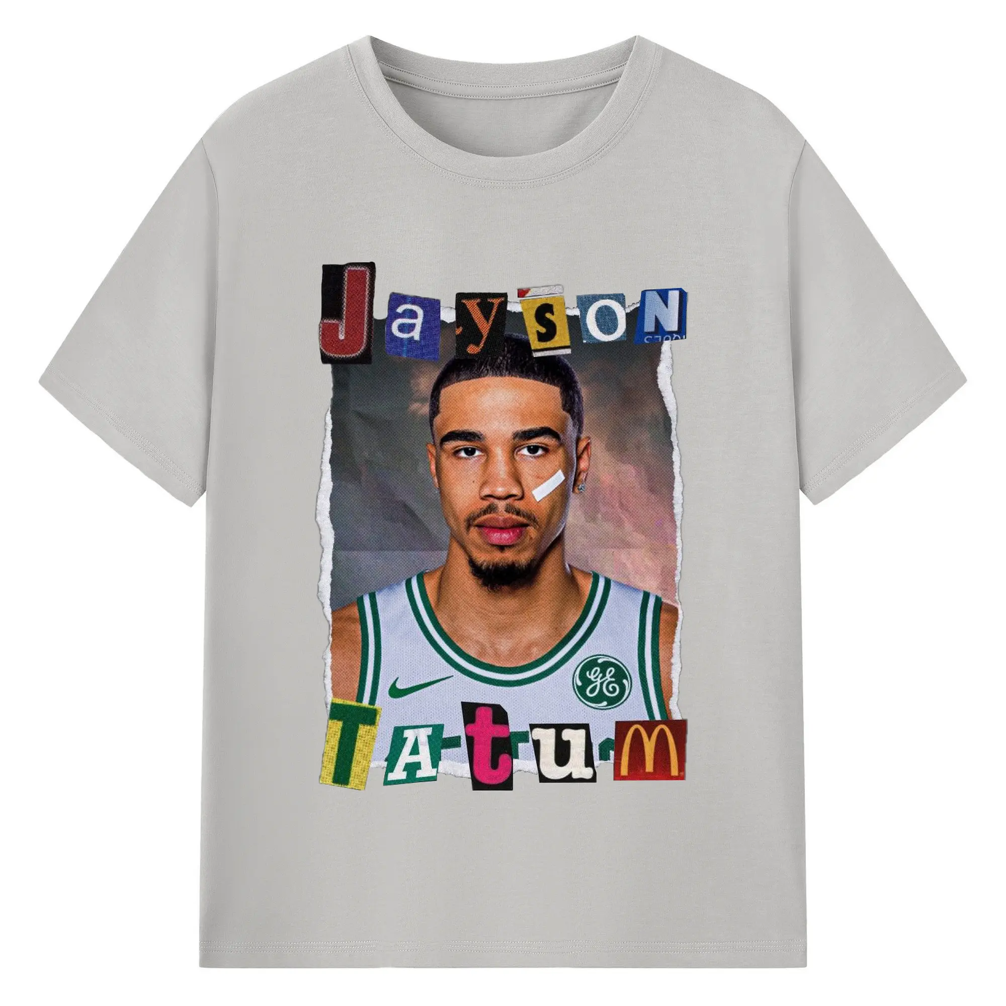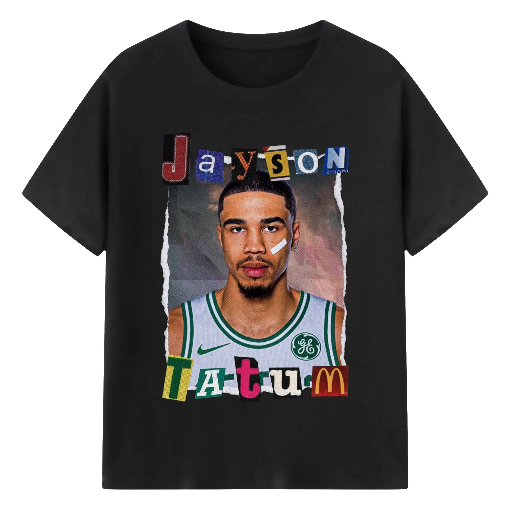 Jayson Tatum Boston Celtics Creative collage design Shirt - 180g Cotton T-Shirt With Front Heat Transfer Print – Soft, Lightweight, Fitted Design – Comfortable Casual Wear For Sports & Everyday Use