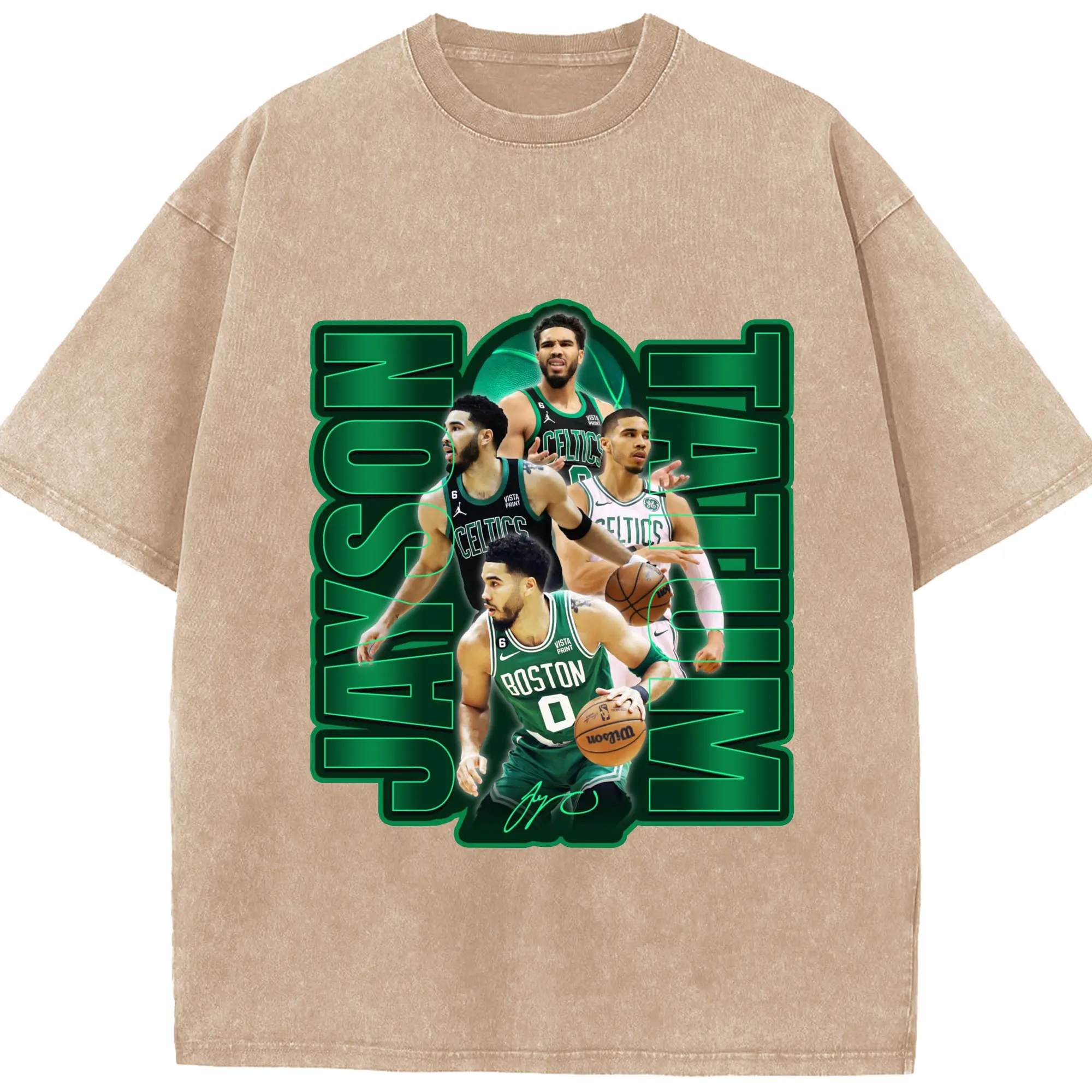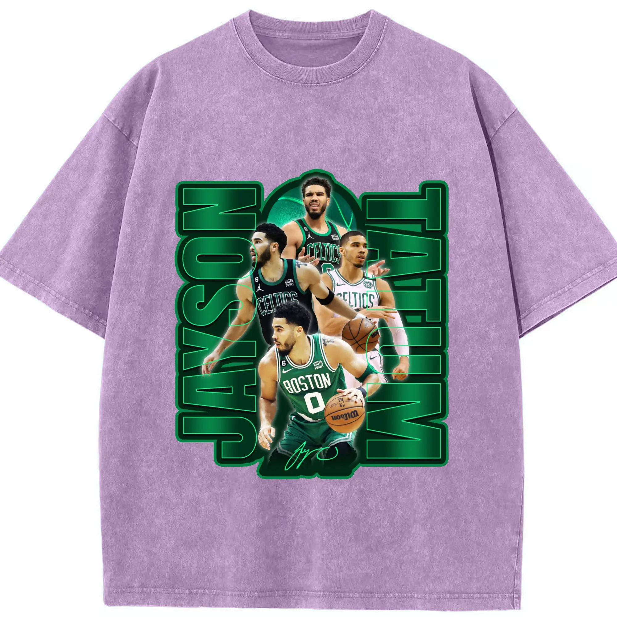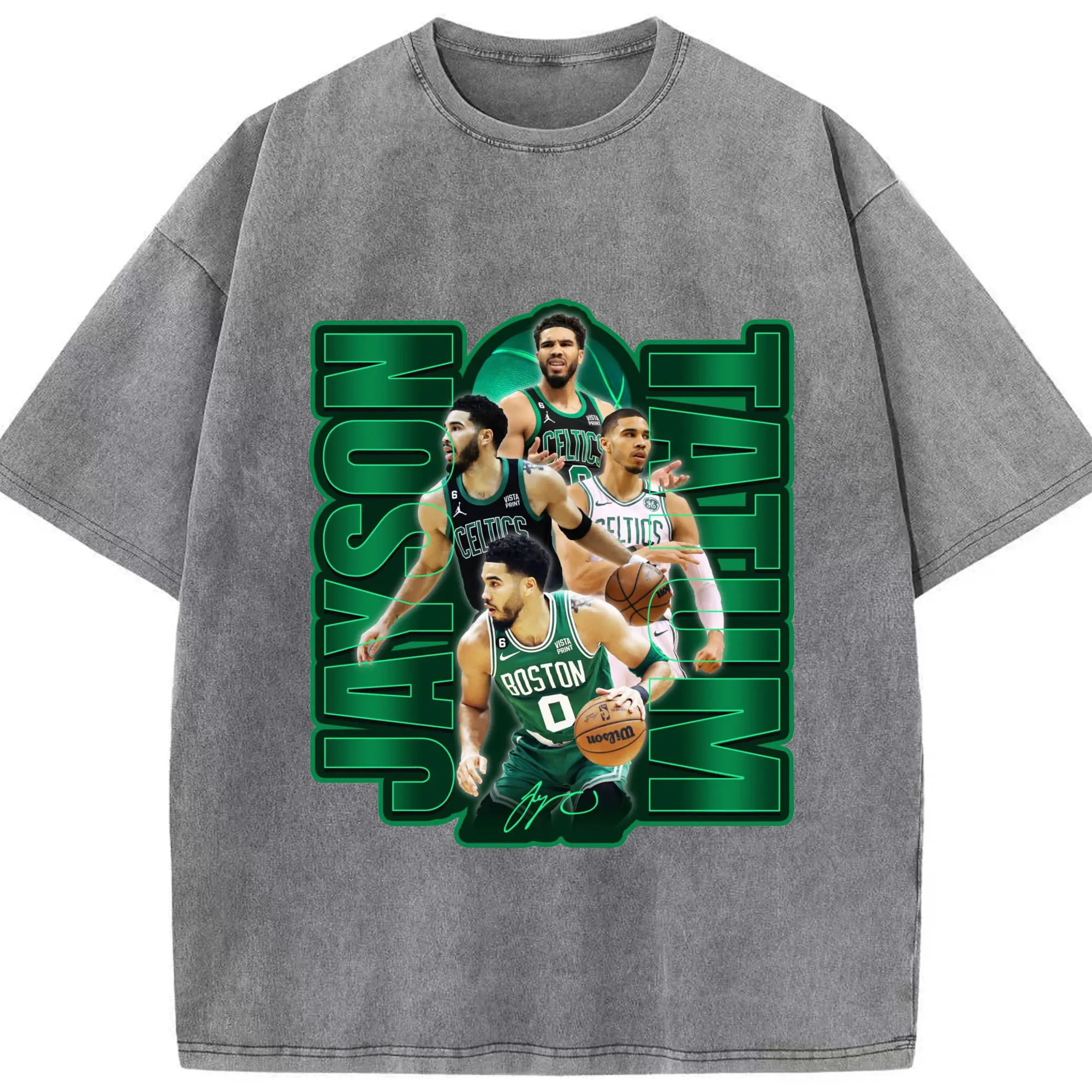 Jayson TatumJersey Graphic Shirt with Neon Signature Design - Washed Vintage Look 230g Cotton Oversized T-Shirt With Front Heat Transfer Print – Soft, Lightweight, Stylish Fit – Comfortable Casual Wear For Sports & Everyday Use