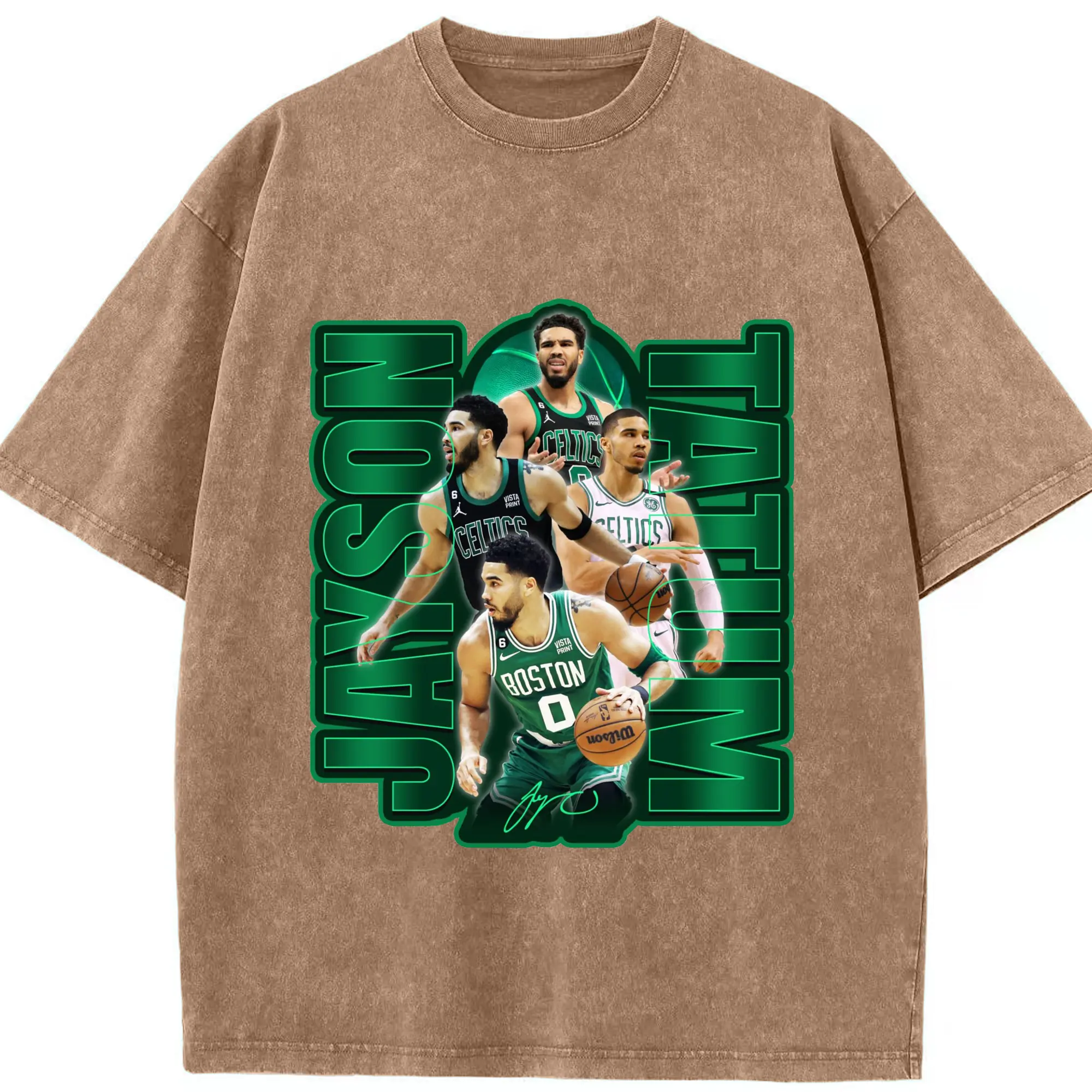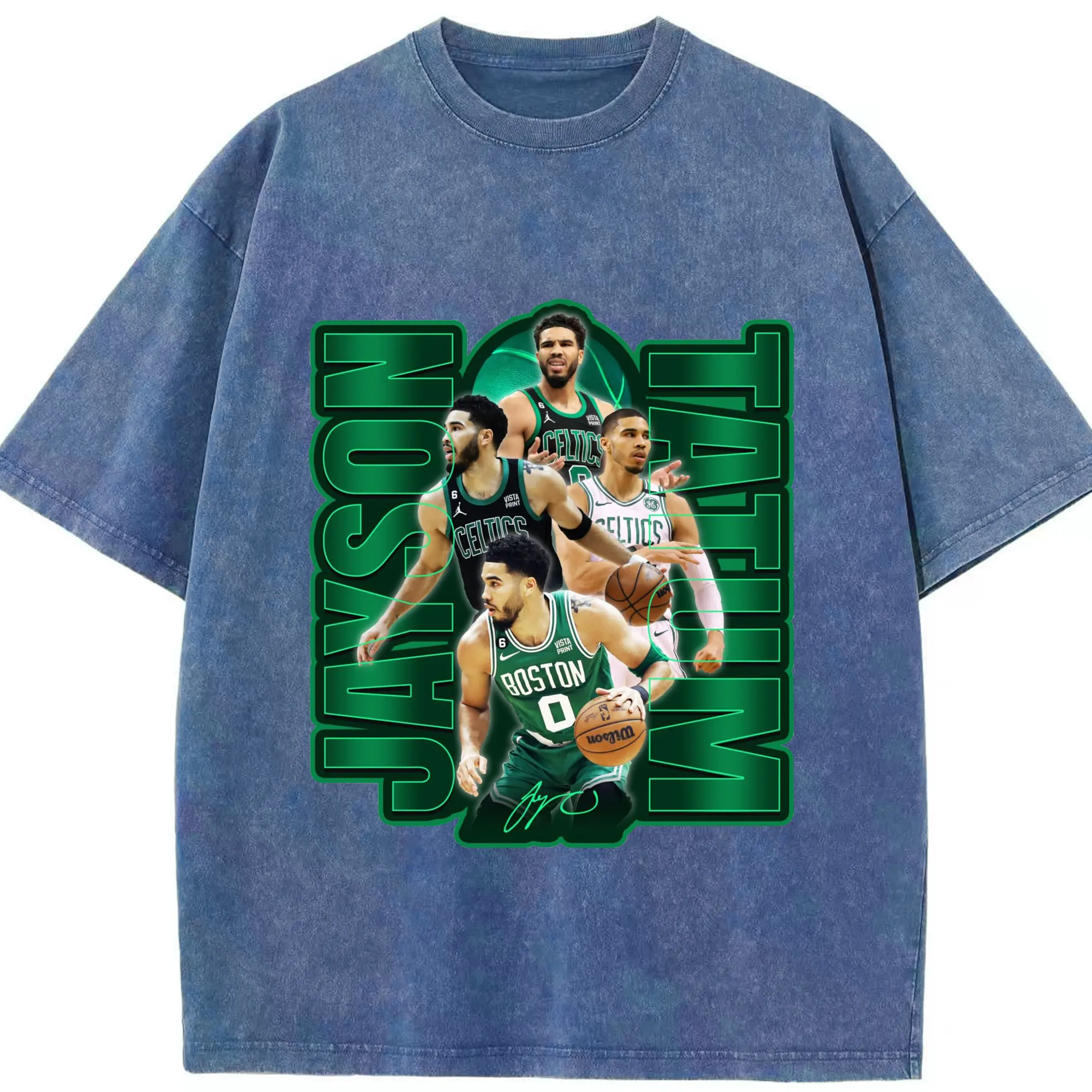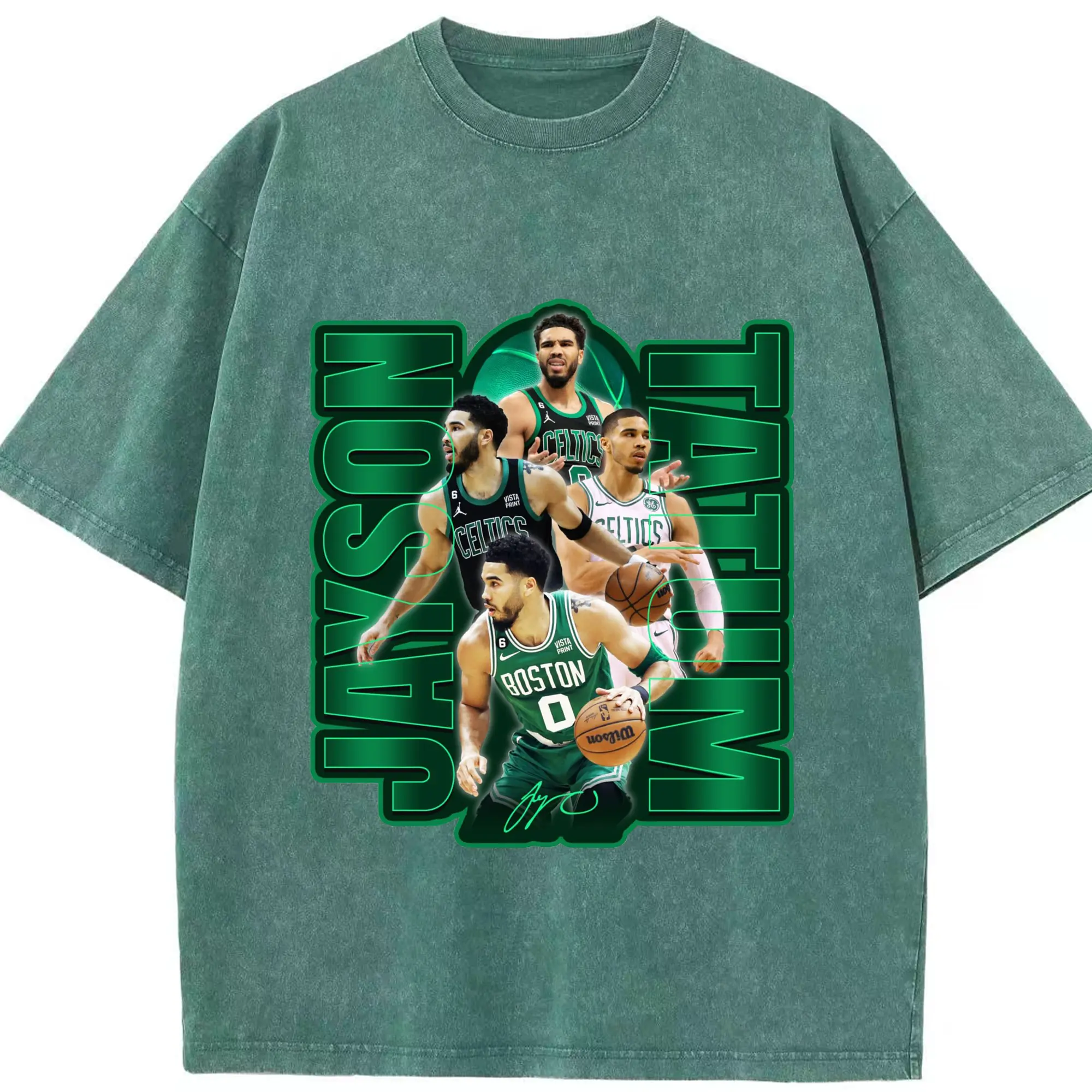Jayson TatumJersey Graphic Shirt with Neon Signature Design - Washed Vintage Look 230g Cotton Oversized T-Shirt With Front Heat Transfer Print – Soft, Lightweight, Stylish Fit – Comfortable Casual Wear For Sports & Everyday Use