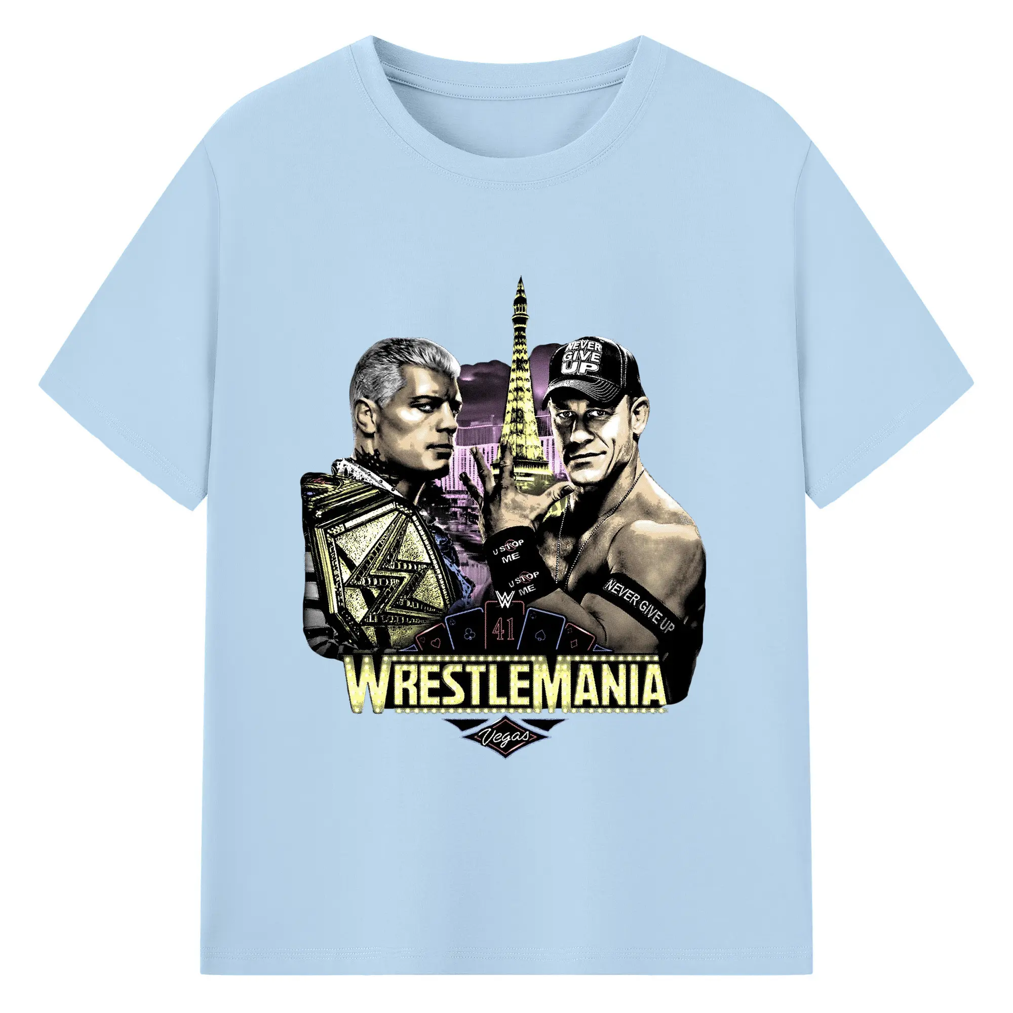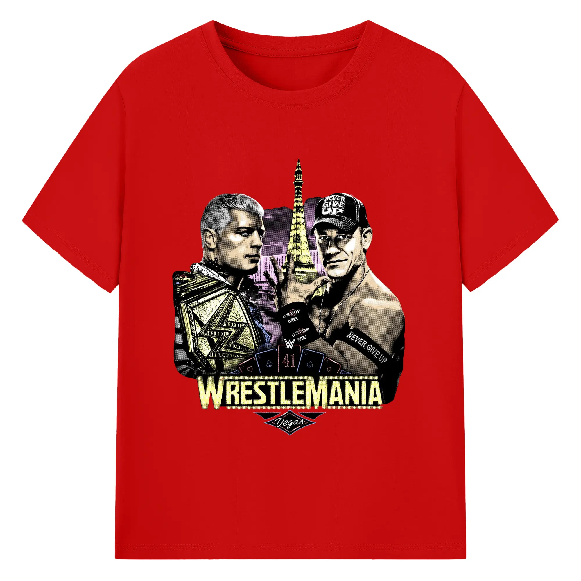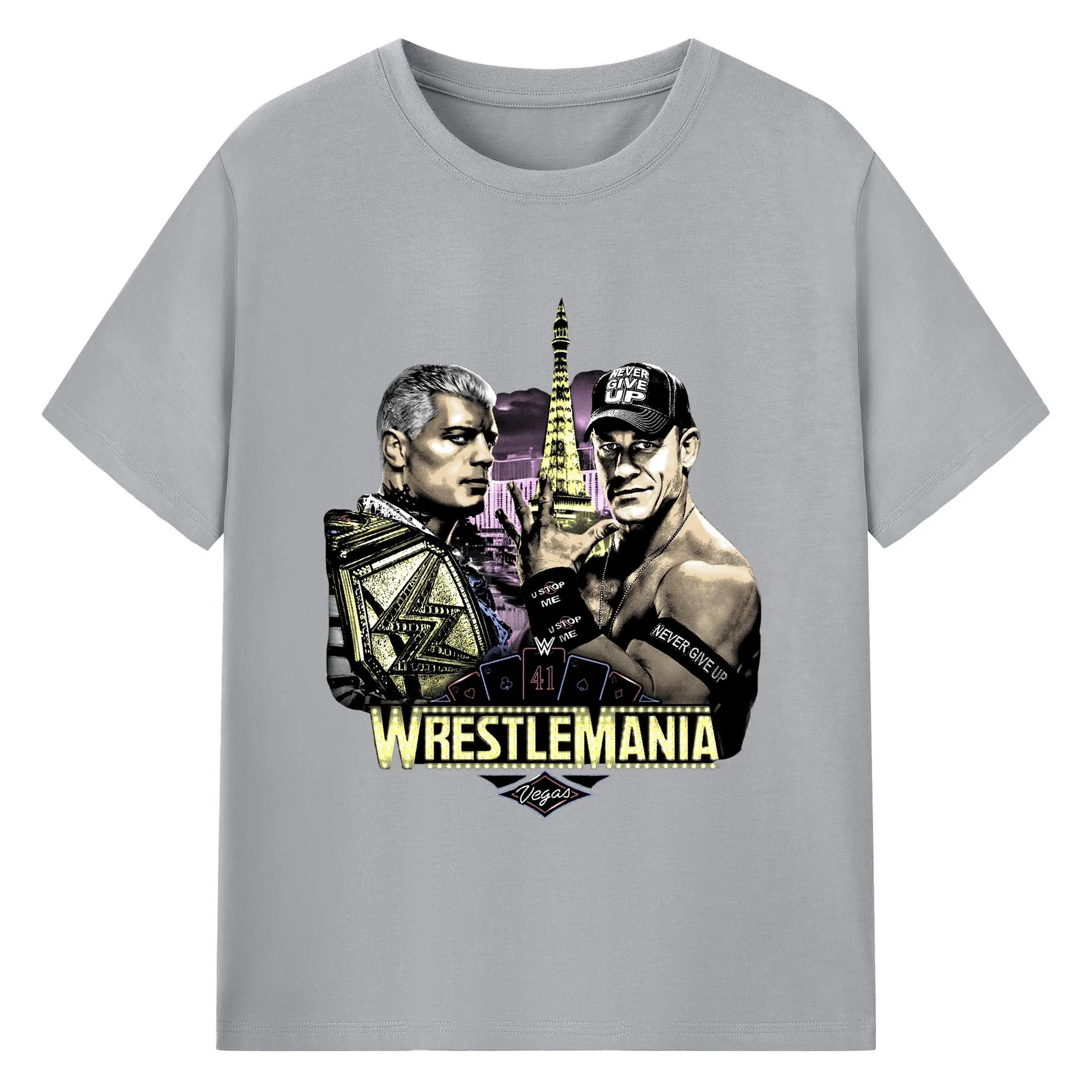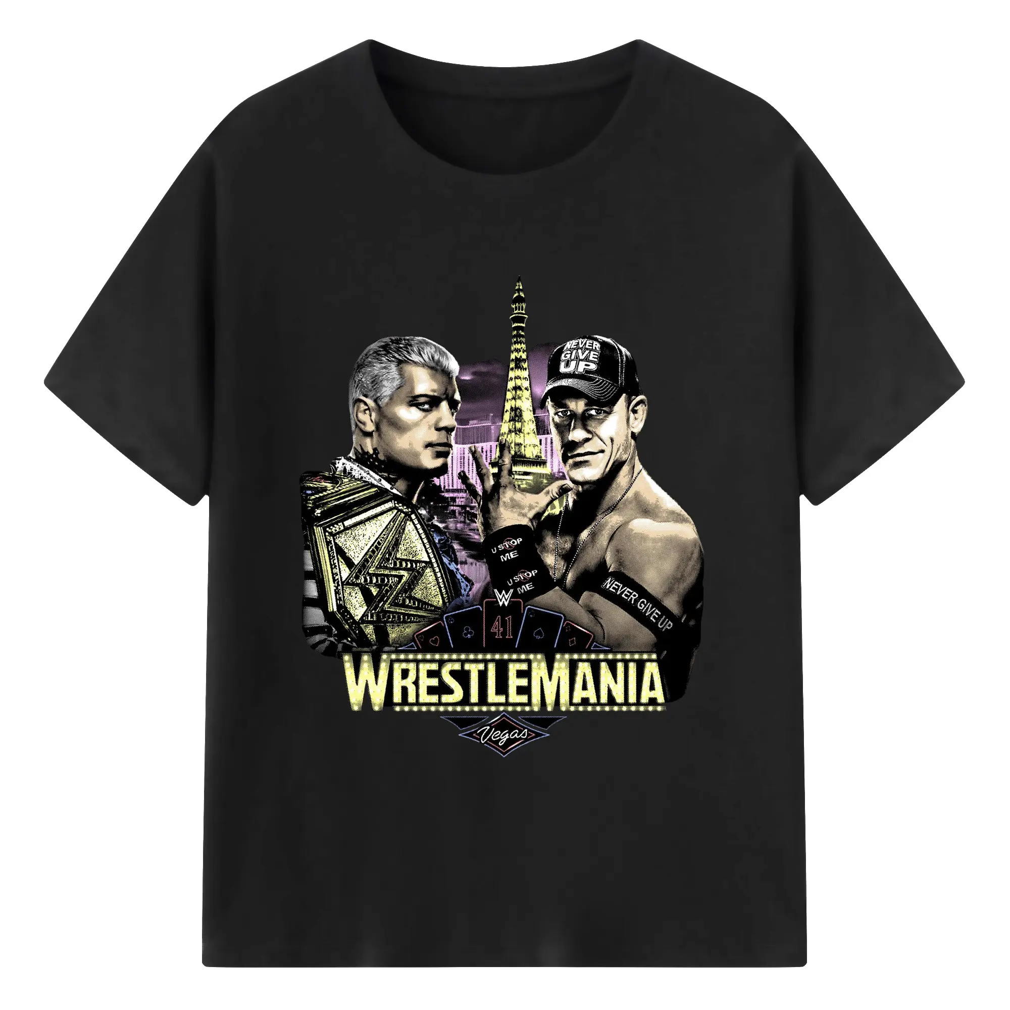 John Cena&Cody Rhodes WWE WrestleMania Las Vegas Wrestling DIY Shirt - 180g Cotton T-Shirt With Front Heat Transfer Print – Soft, Lightweight, Fitted Design – Comfortable Casual Wear For Sports & Everyday Use