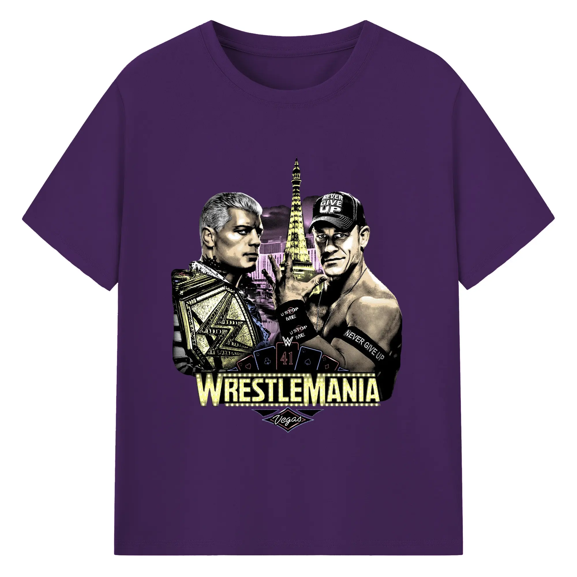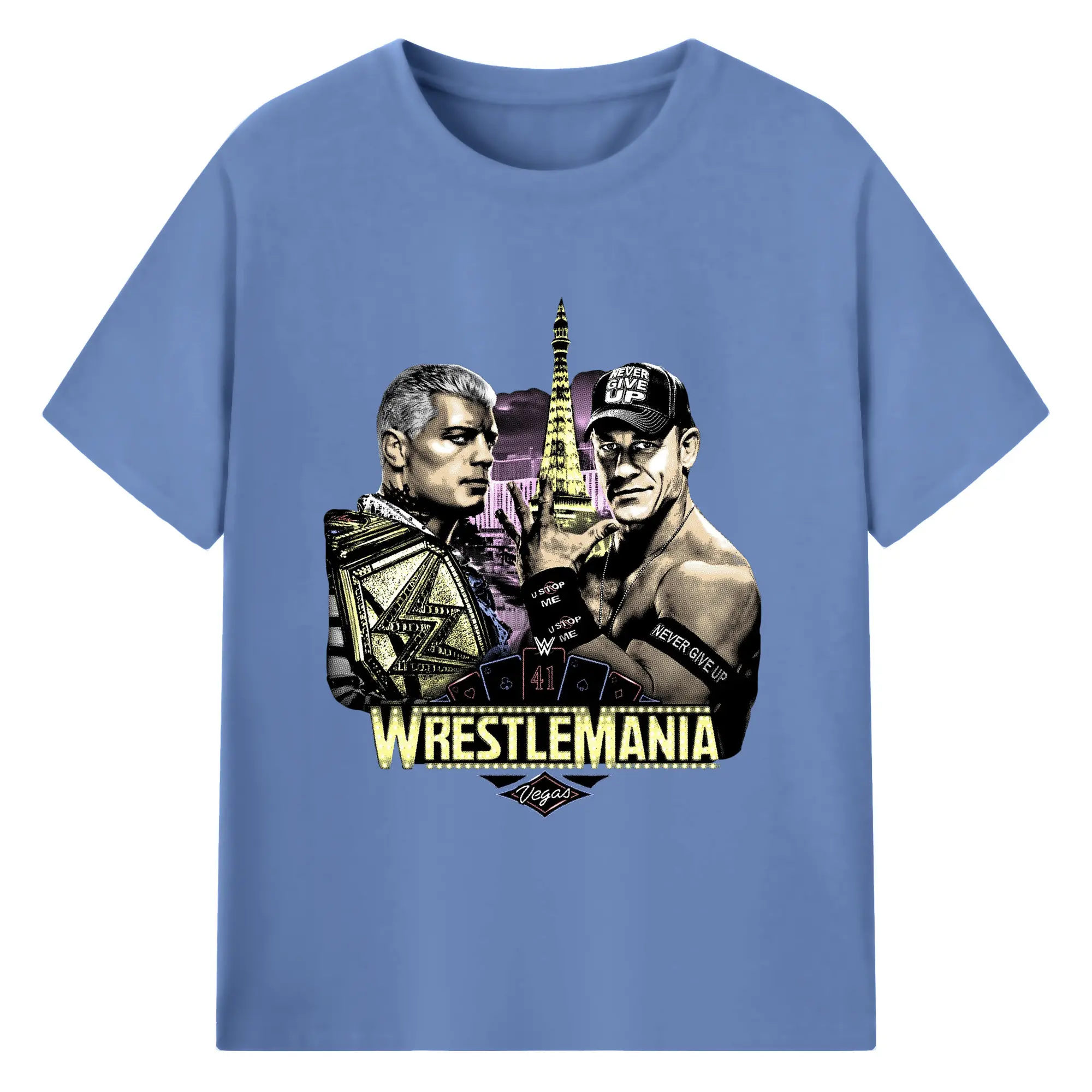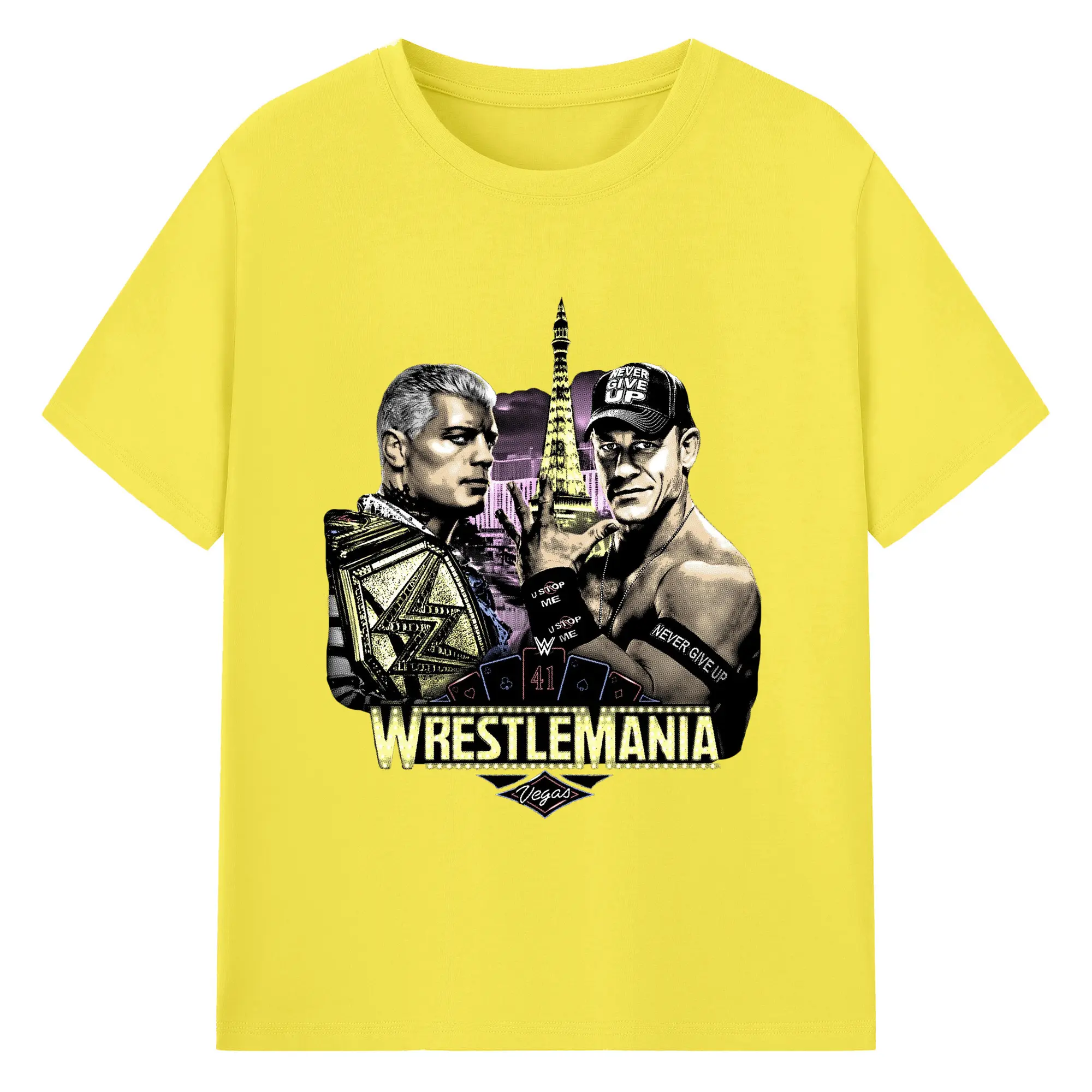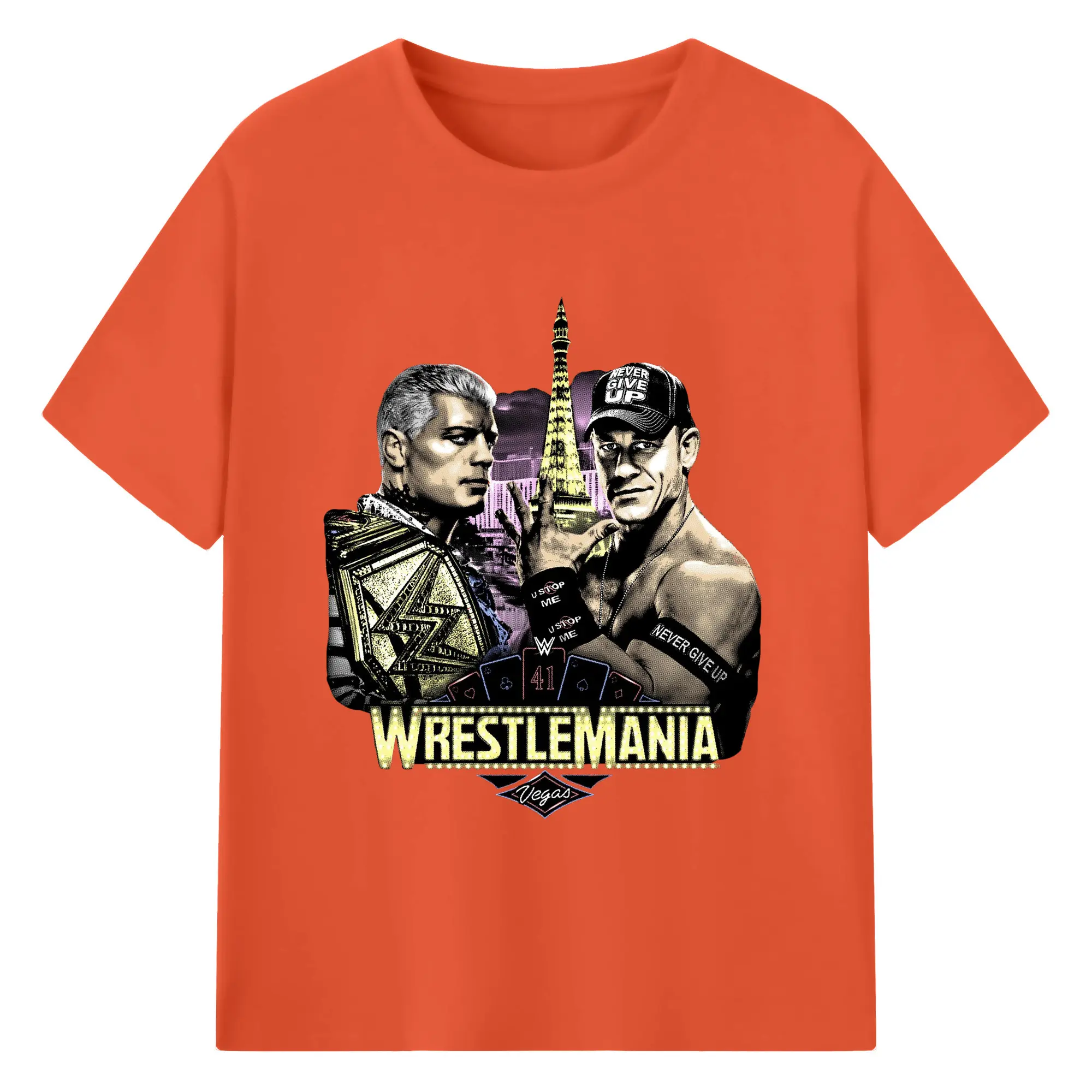 John Cena&Cody Rhodes WWE WrestleMania Las Vegas Wrestling DIY Shirt - 180g Cotton T-Shirt With Front Heat Transfer Print – Soft, Lightweight, Fitted Design – Comfortable Casual Wear For Sports & Everyday Use