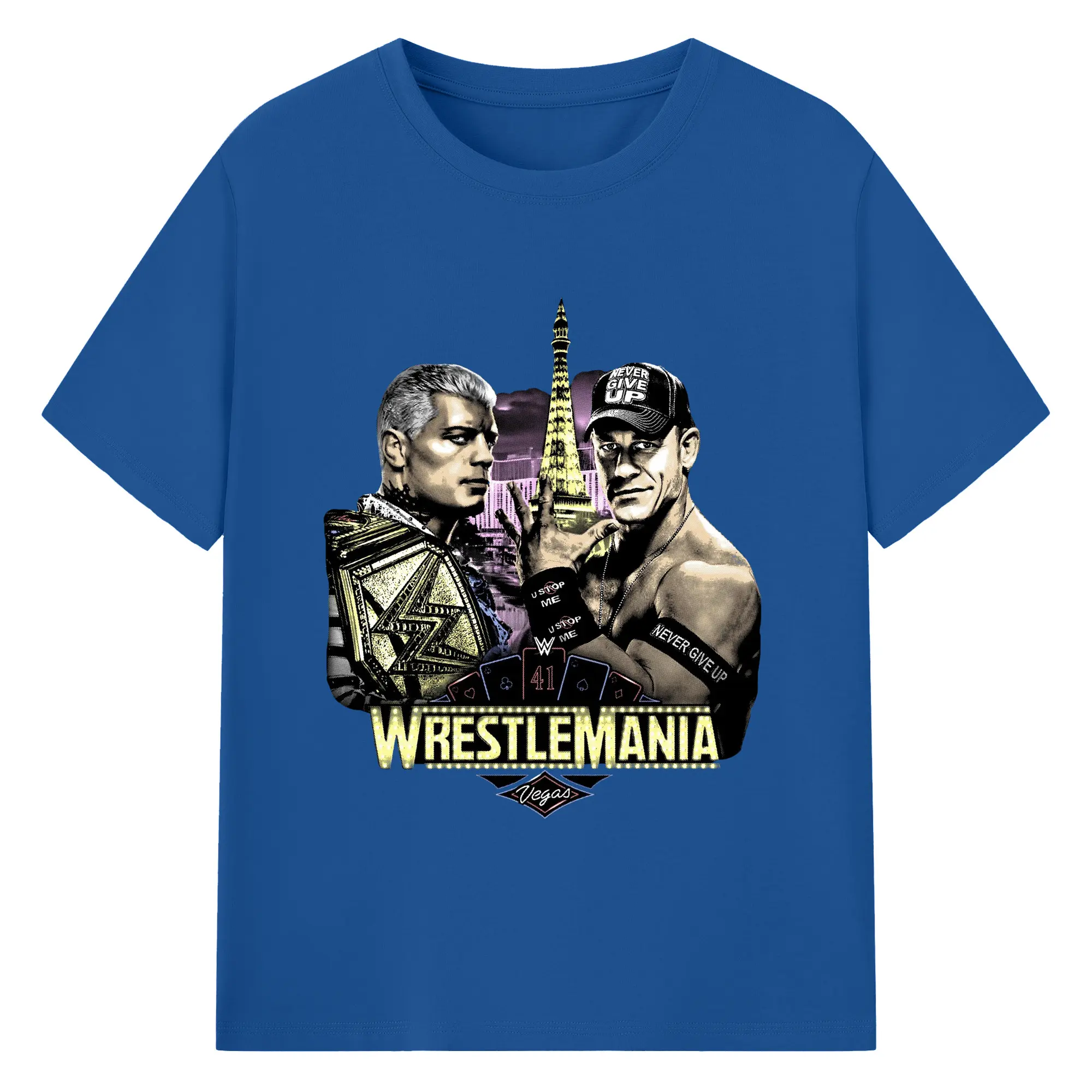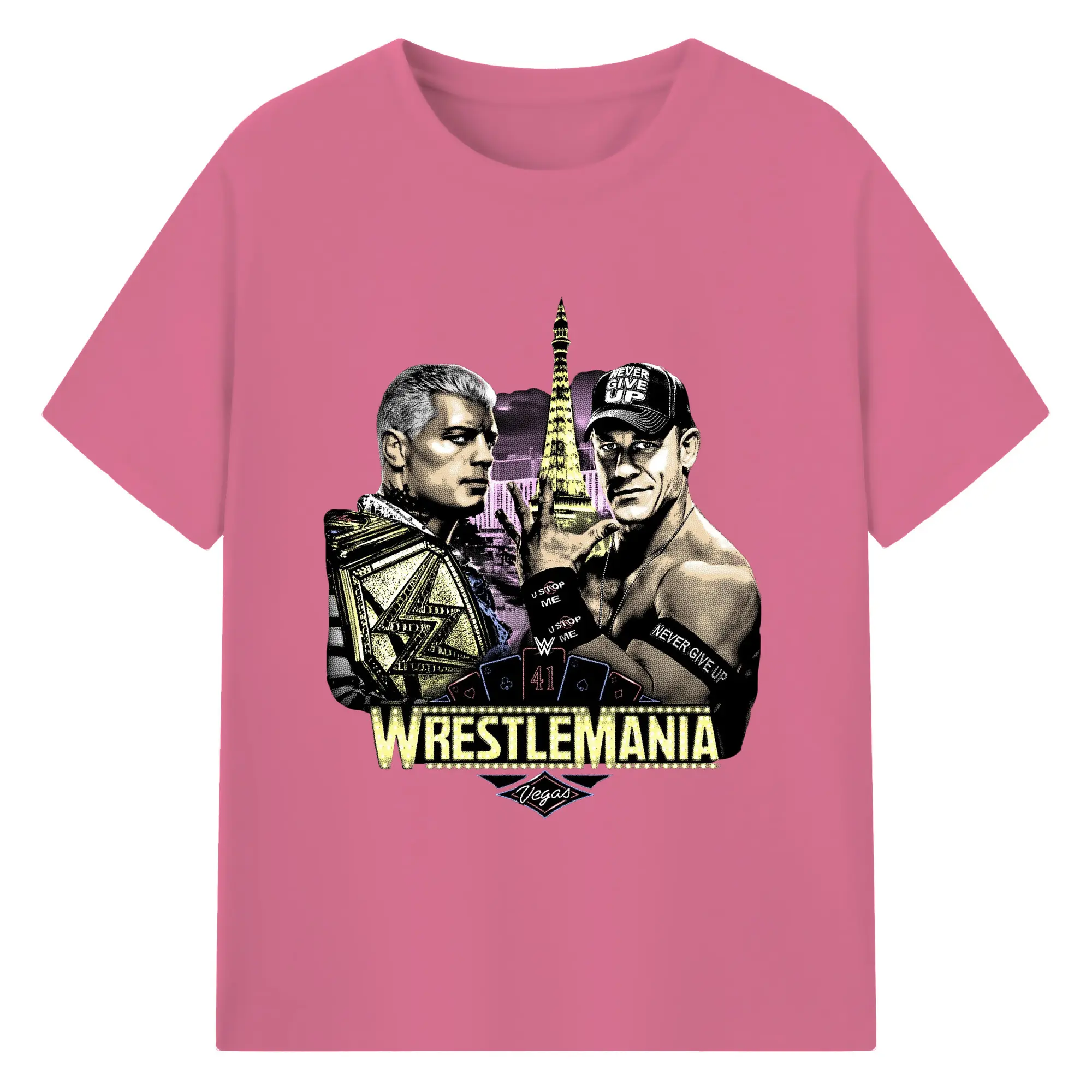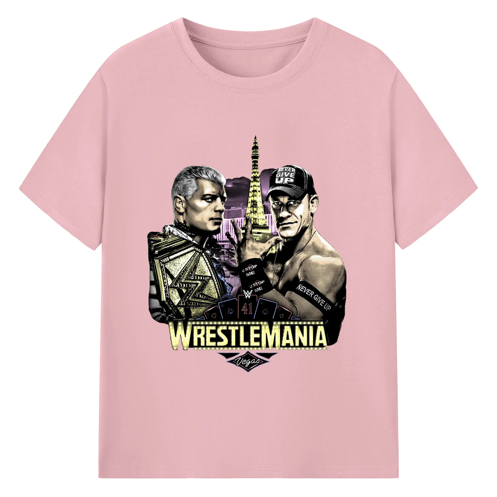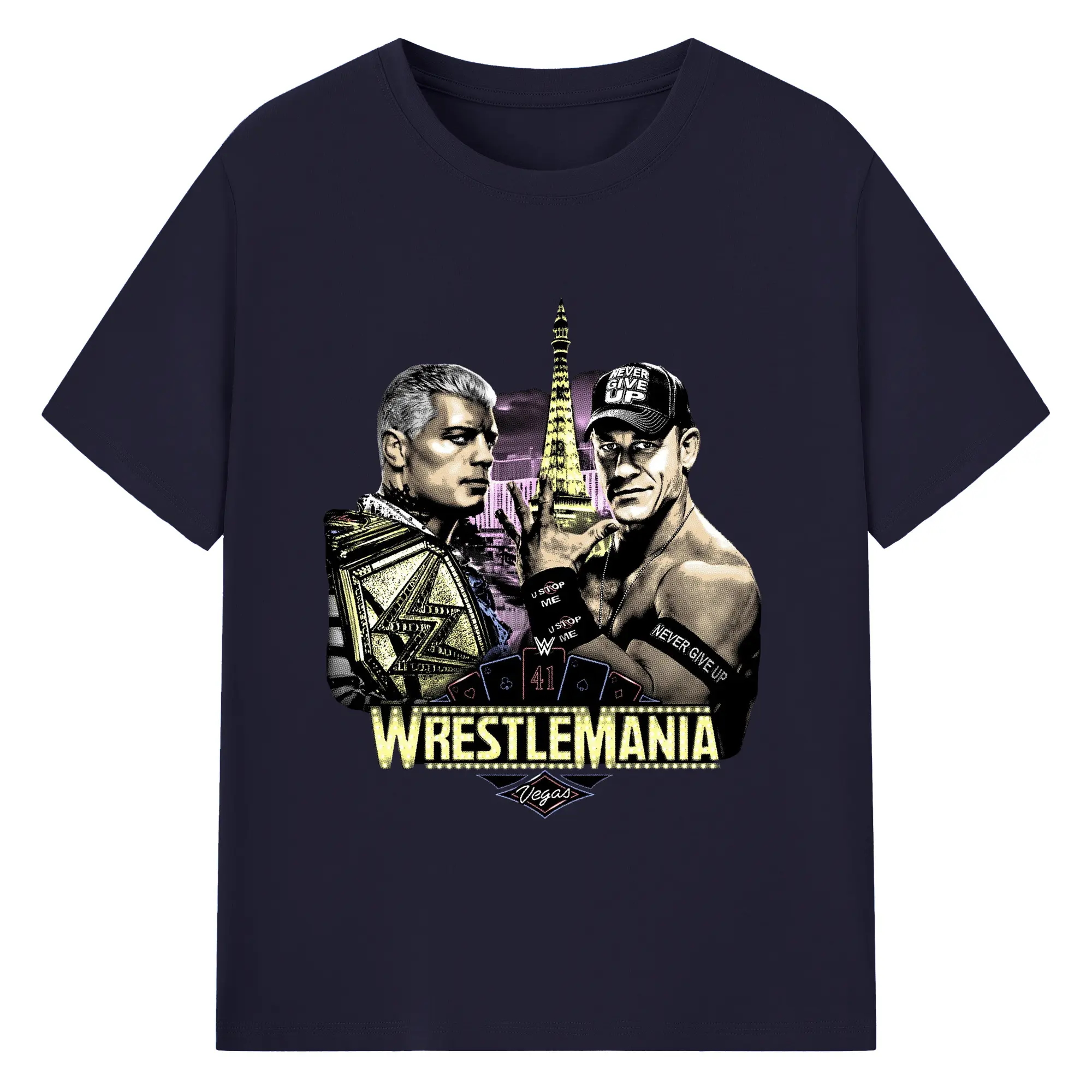 John Cena&Cody Rhodes WWE WrestleMania Las Vegas Wrestling DIY Shirt - 180g Cotton T-Shirt With Front Heat Transfer Print – Soft, Lightweight, Fitted Design – Comfortable Casual Wear For Sports & Everyday Use