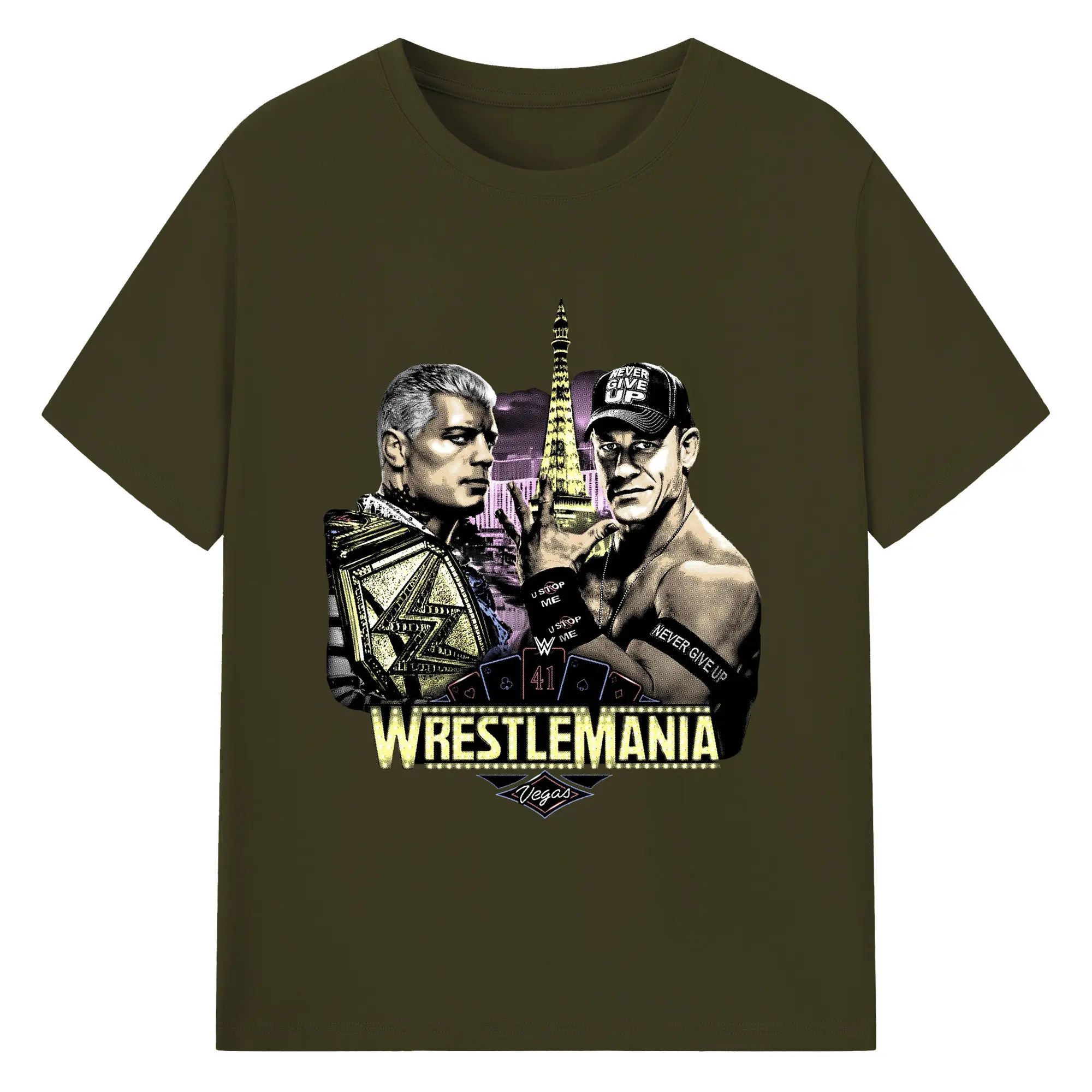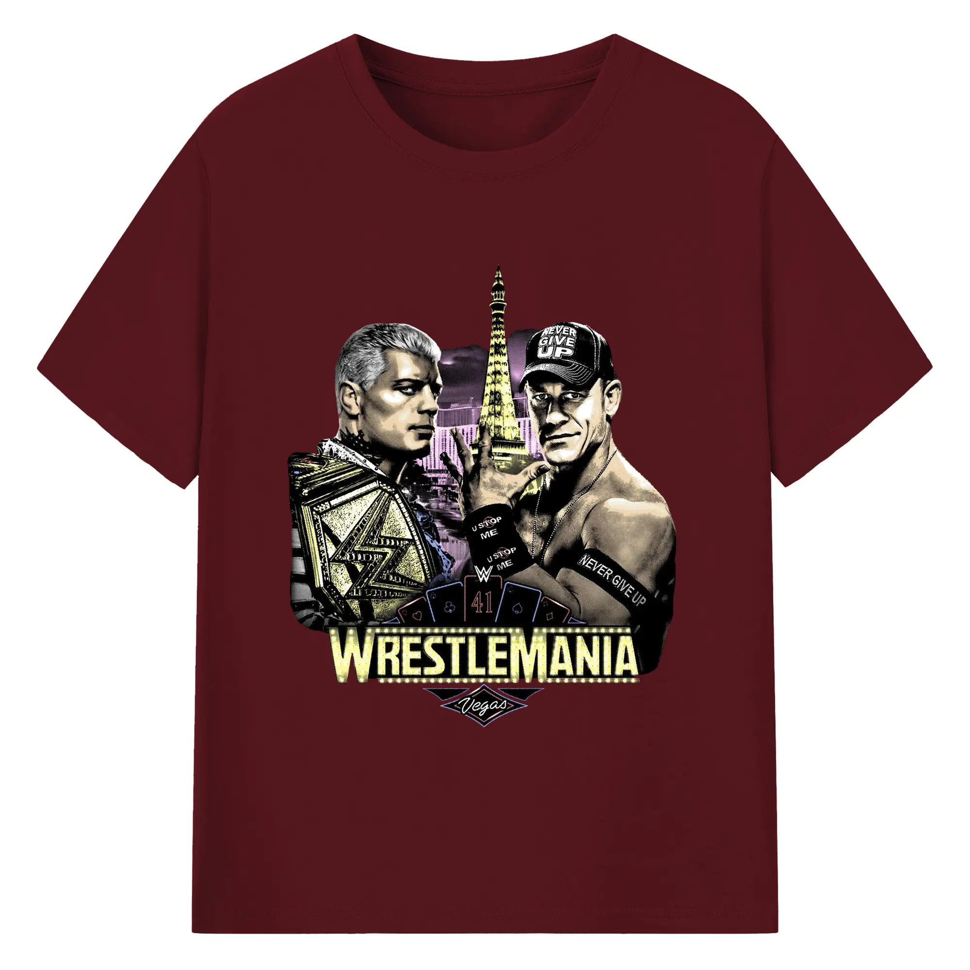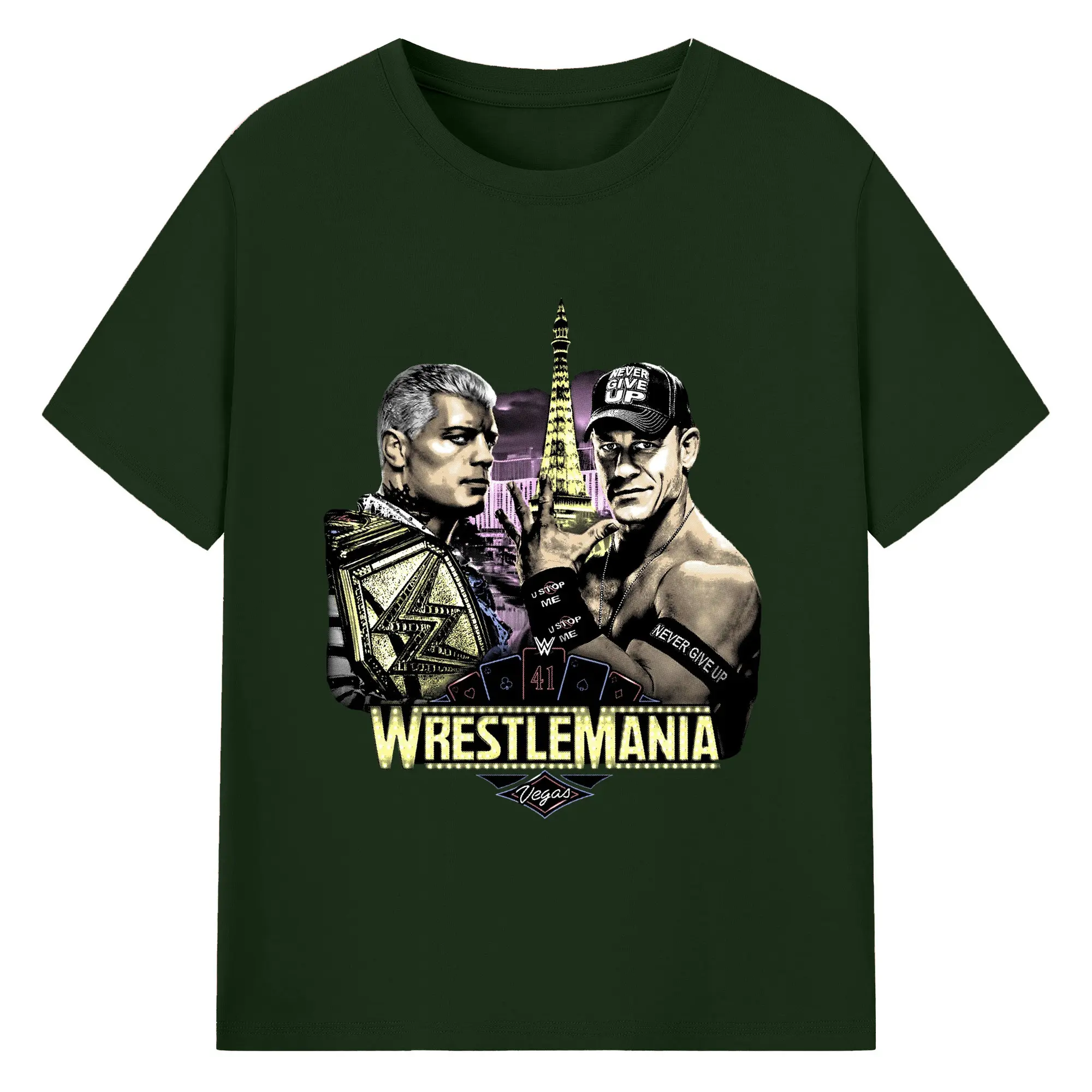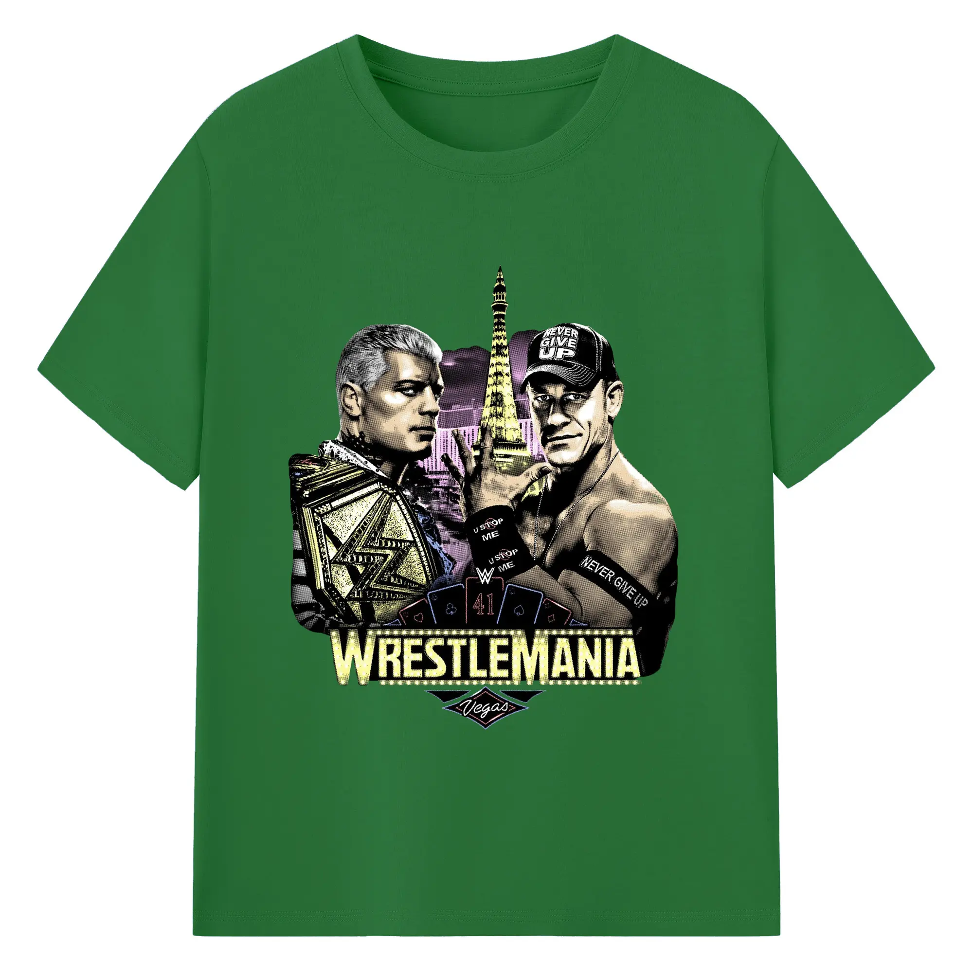 John Cena&Cody Rhodes WWE WrestleMania Las Vegas Wrestling DIY Shirt - 180g Cotton T-Shirt With Front Heat Transfer Print – Soft, Lightweight, Fitted Design – Comfortable Casual Wear For Sports & Everyday Use